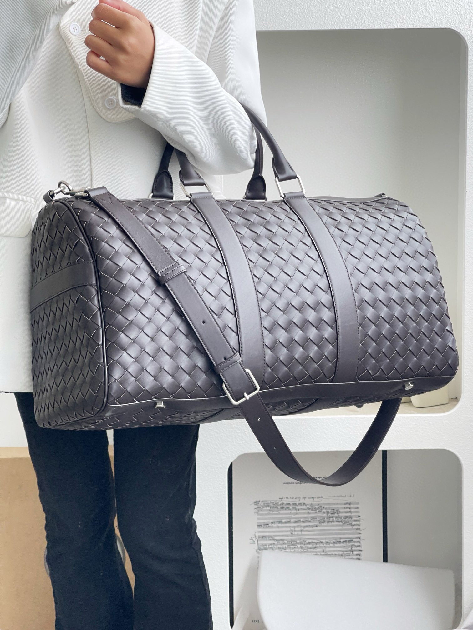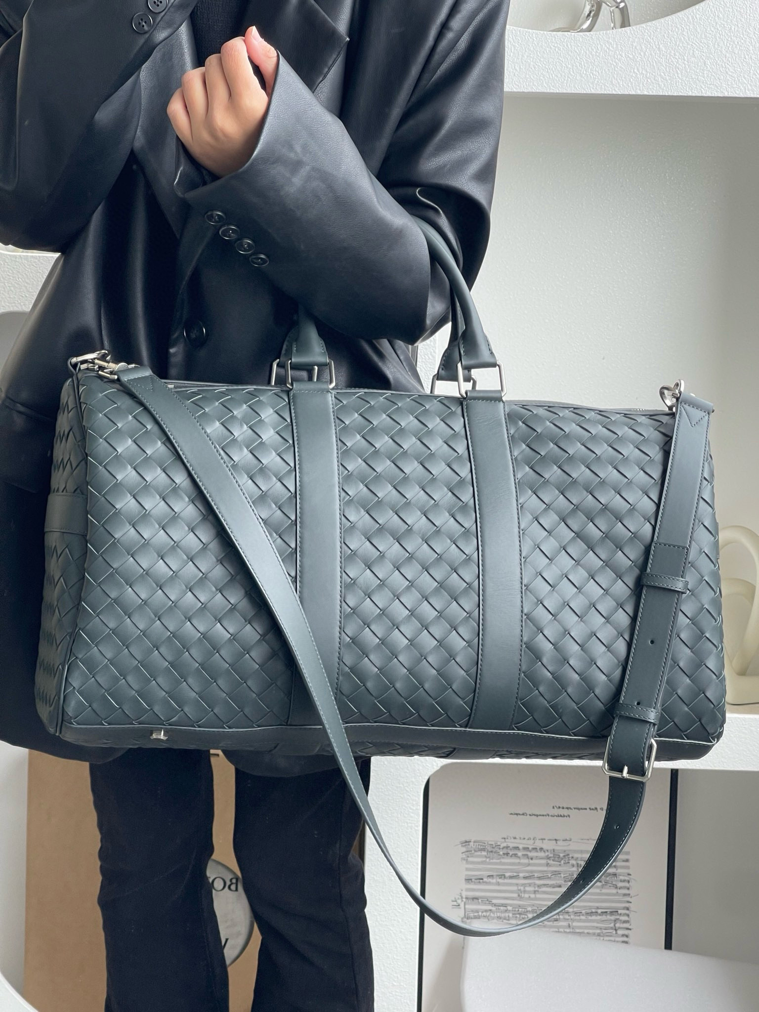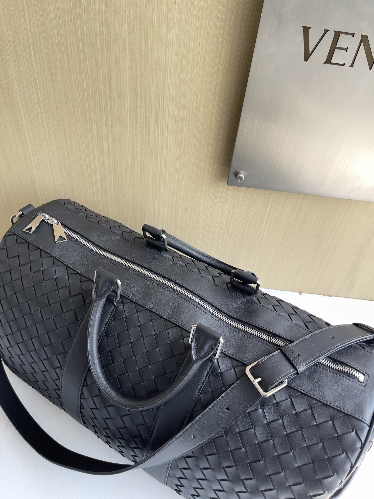 NIGO Bottega Veneta Intrecciato Men's Solid Color Adjustable Detachable Shoulder Strap Woven Calfskin Travel Bag #nigo77472