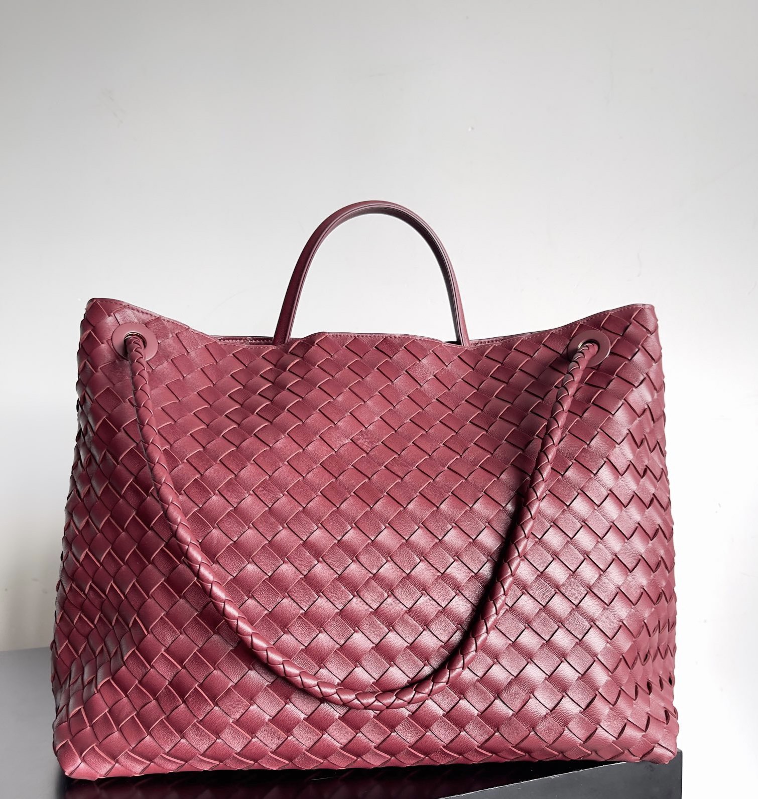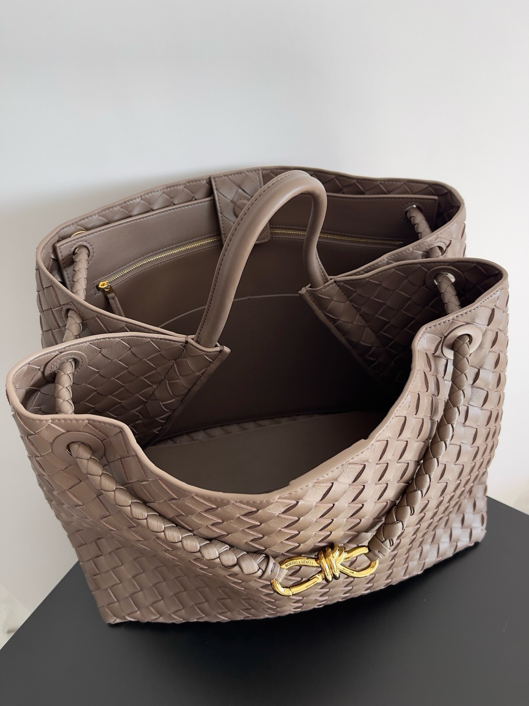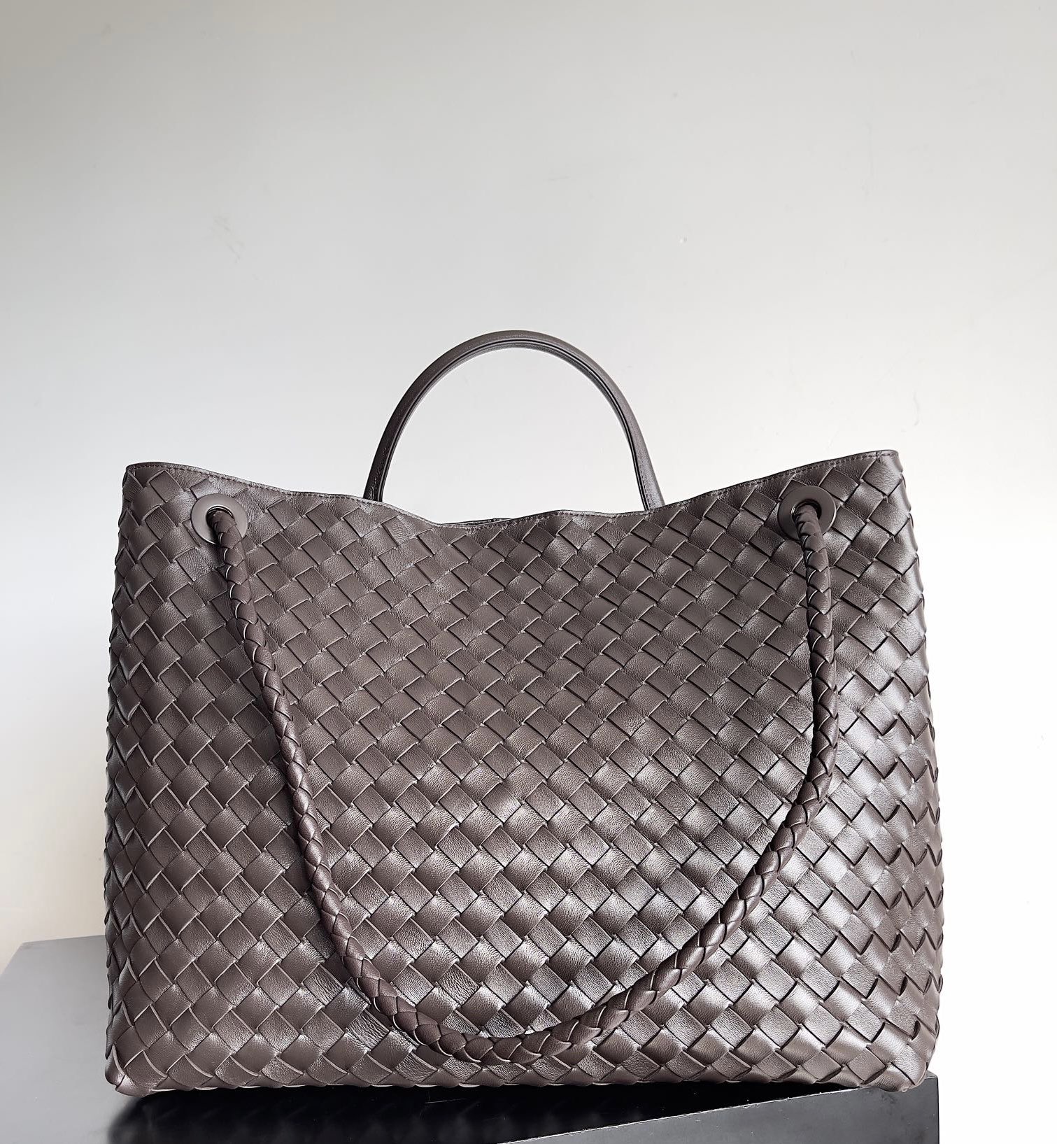 NIGO Bottega Veneta Large Andiamo Women's Woven Solid Color Magnetic Clasp Closure Sheepskin Tote Bag Bags #nigo76912
