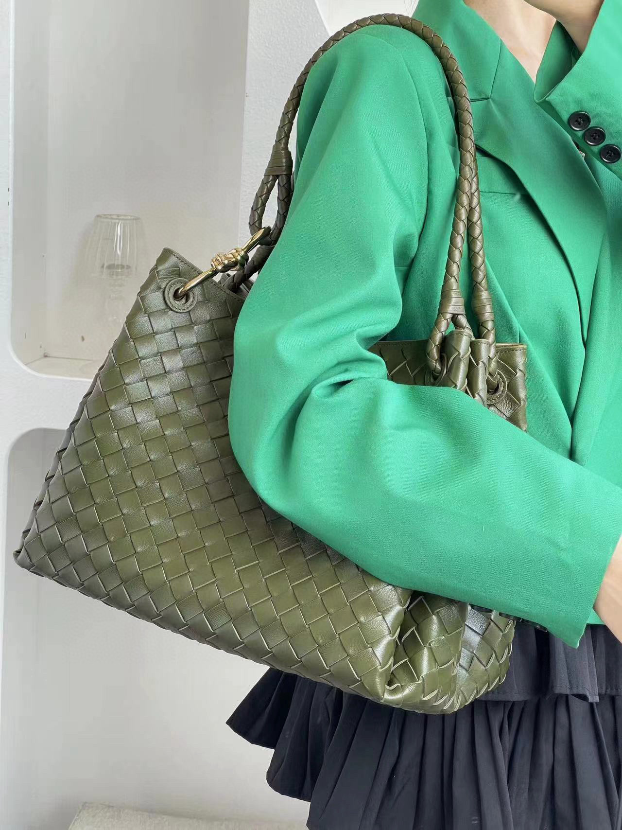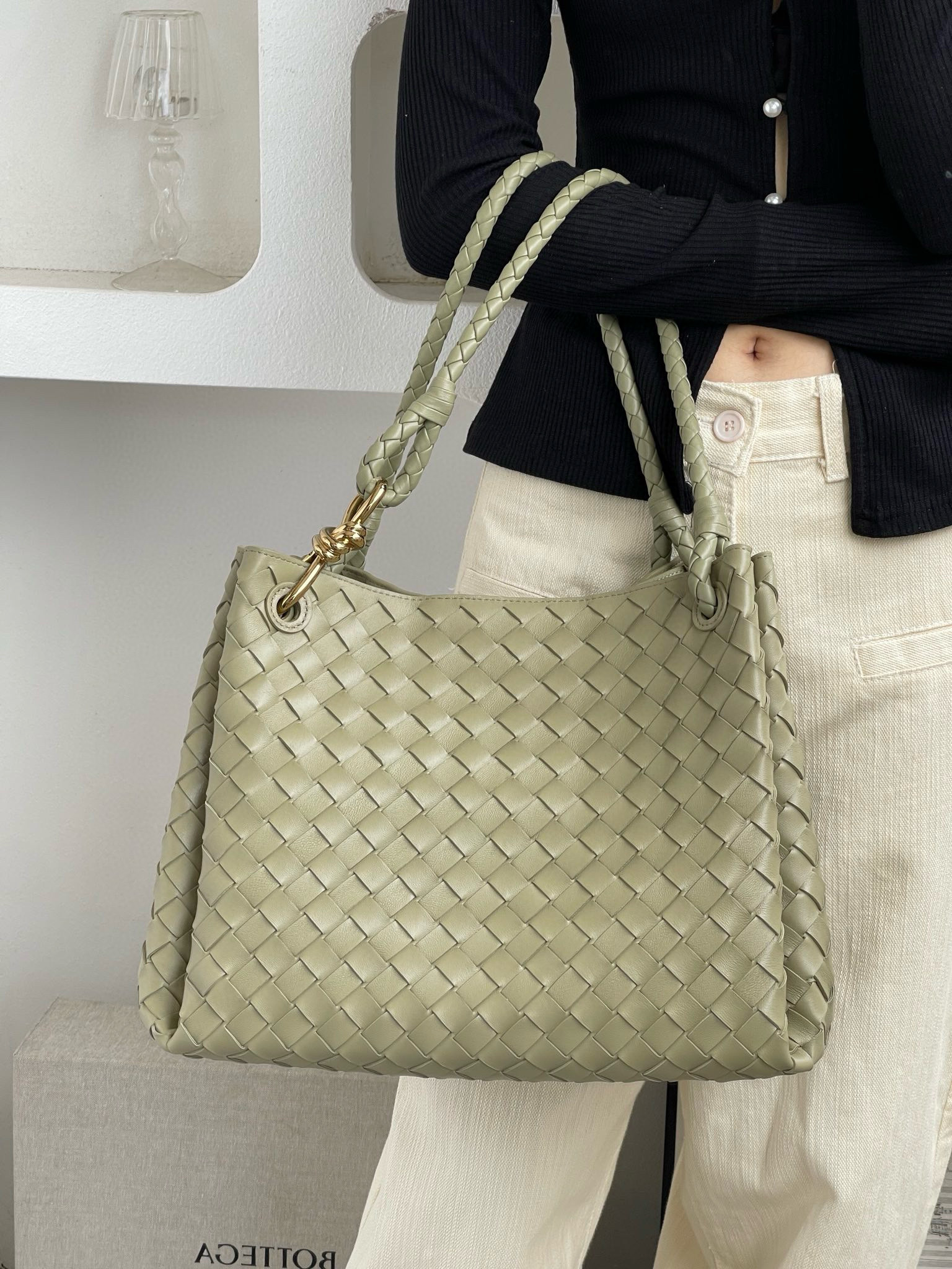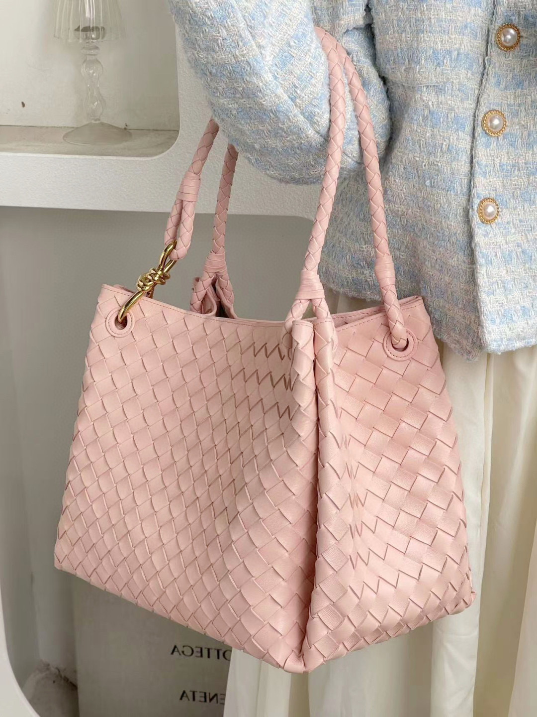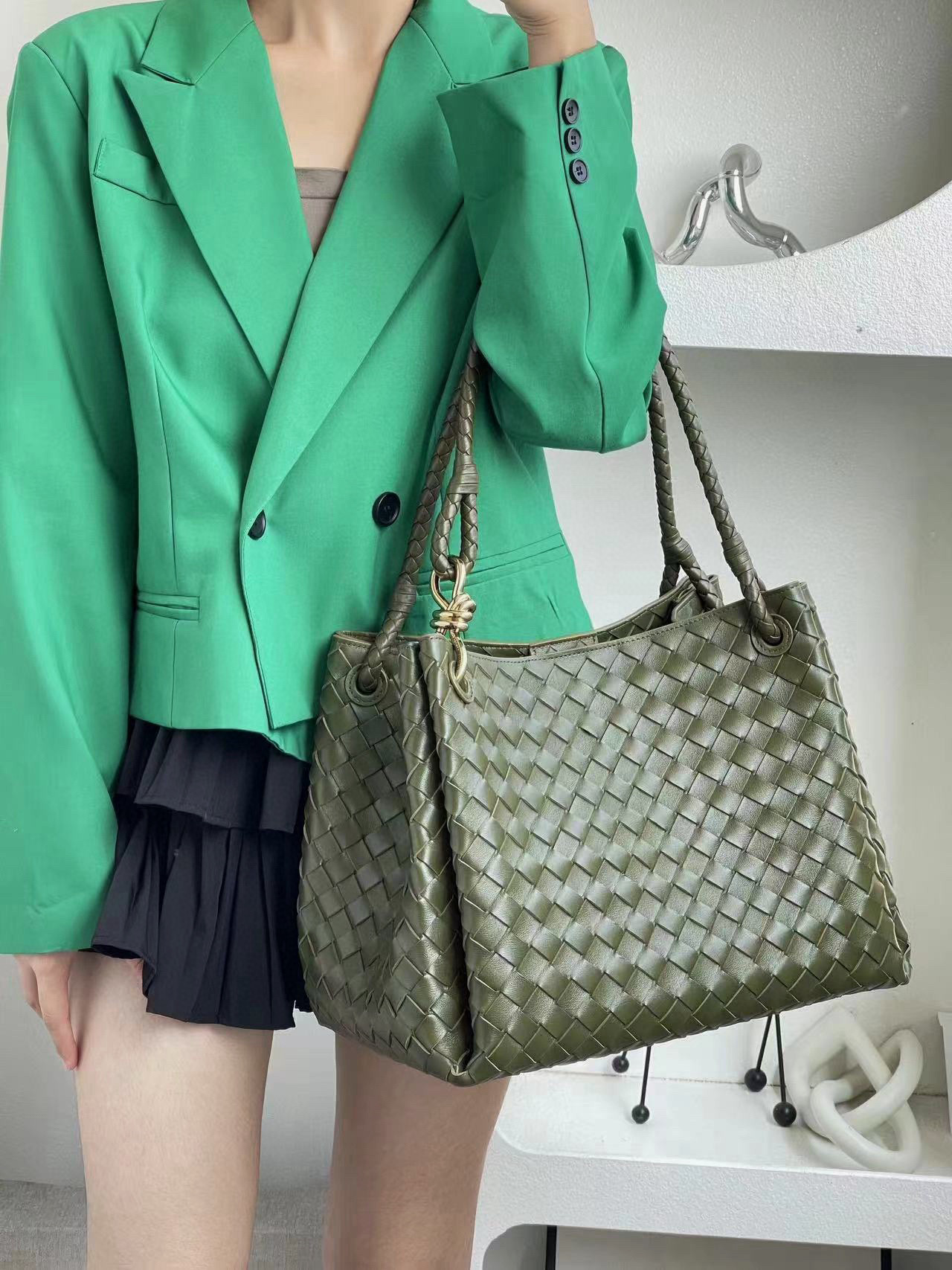 NIGO Bottega Veneta Large Parachute Women's Solid Color Lambskin Woven Tote Bag Bags #nigo76484