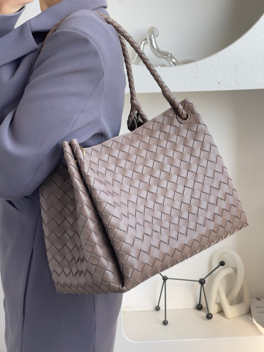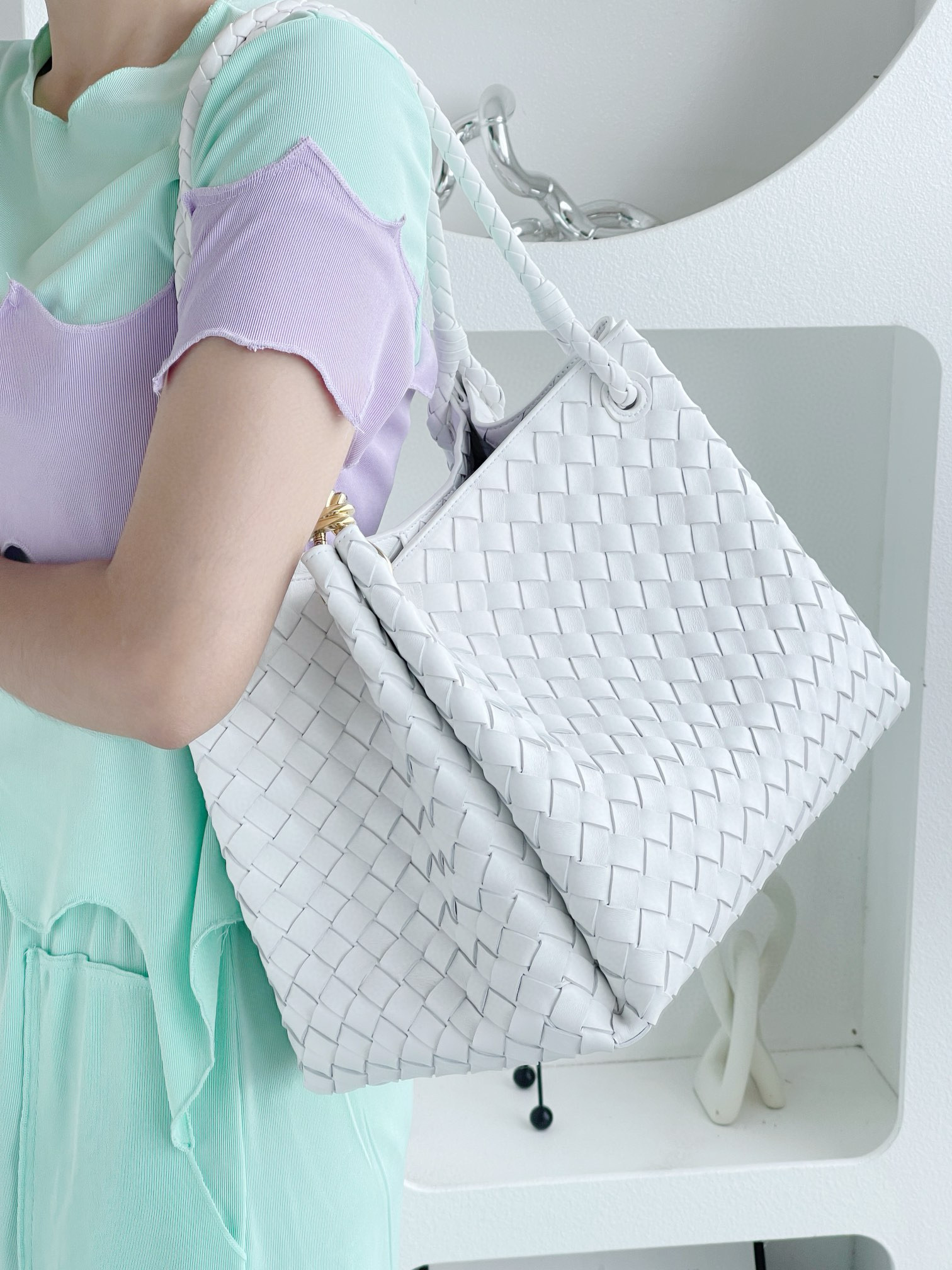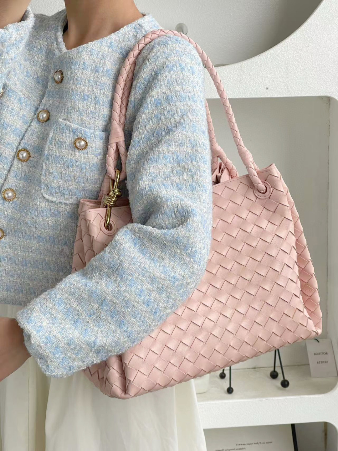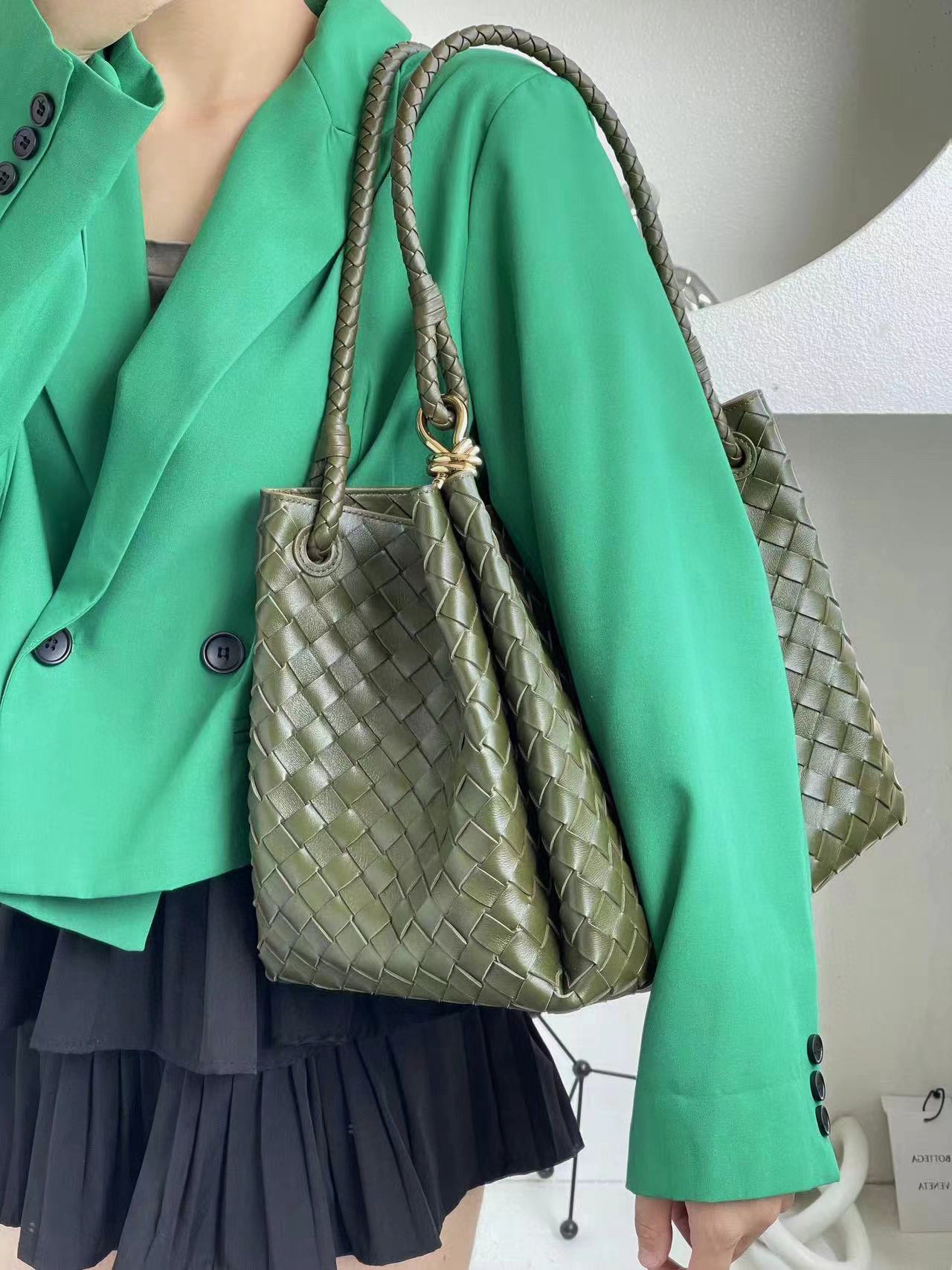 NIGO Bottega Veneta Large Parachute Women's Solid Color Lambskin Woven Tote Bag Bags #nigo76484