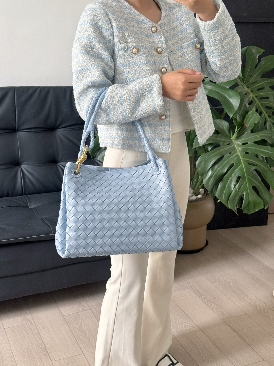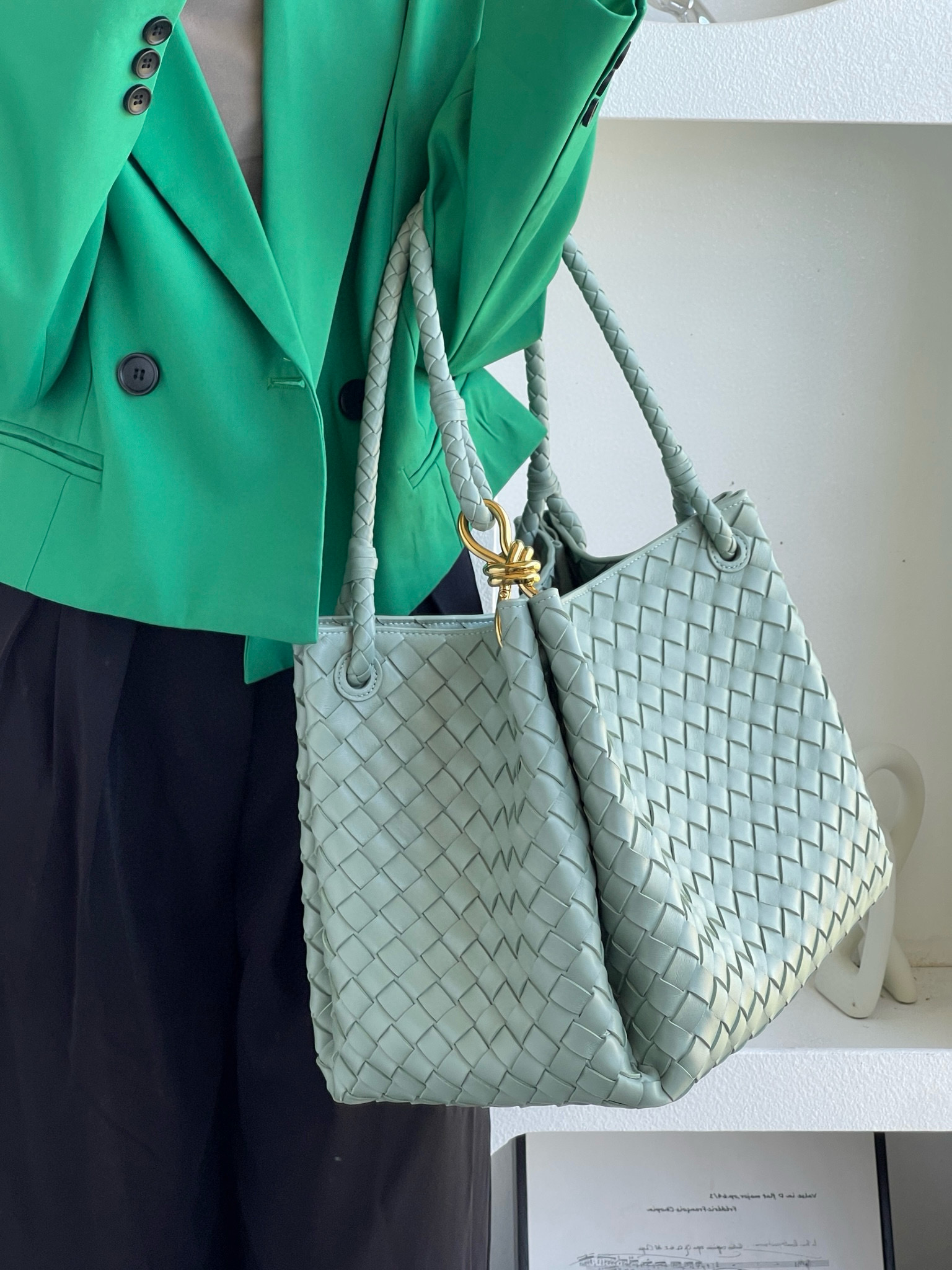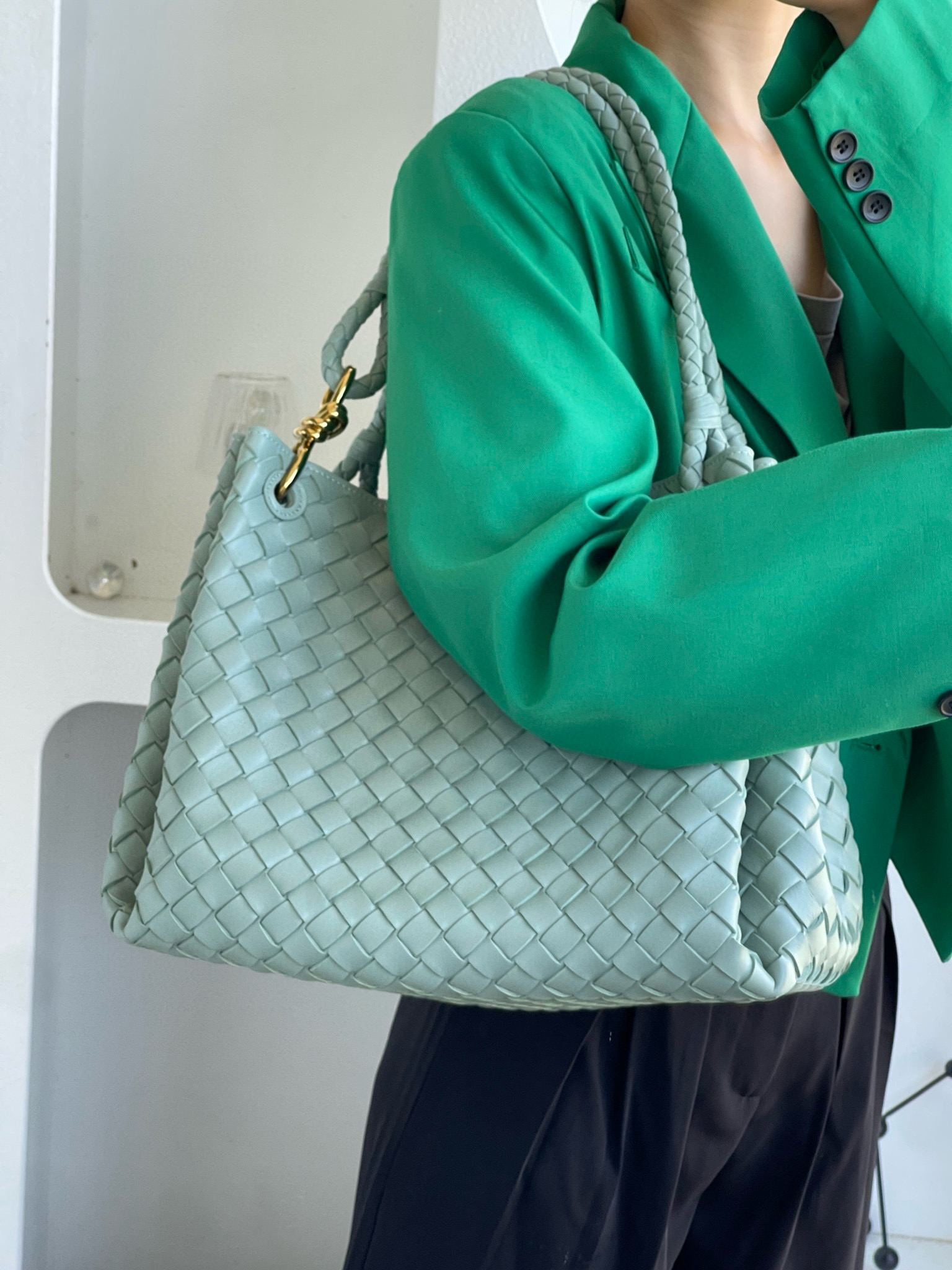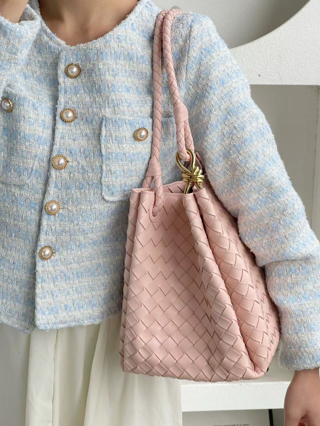 NIGO Bottega Veneta Large Parachute Women's Solid Color Lambskin Woven Tote Bag Bags #nigo76484