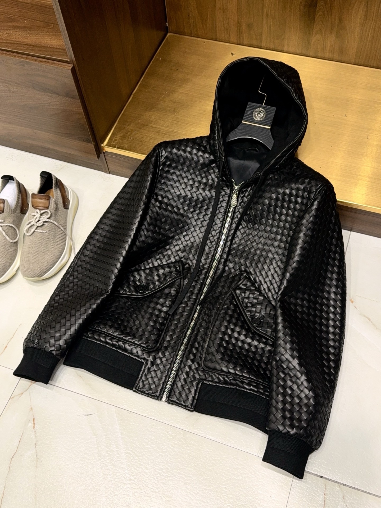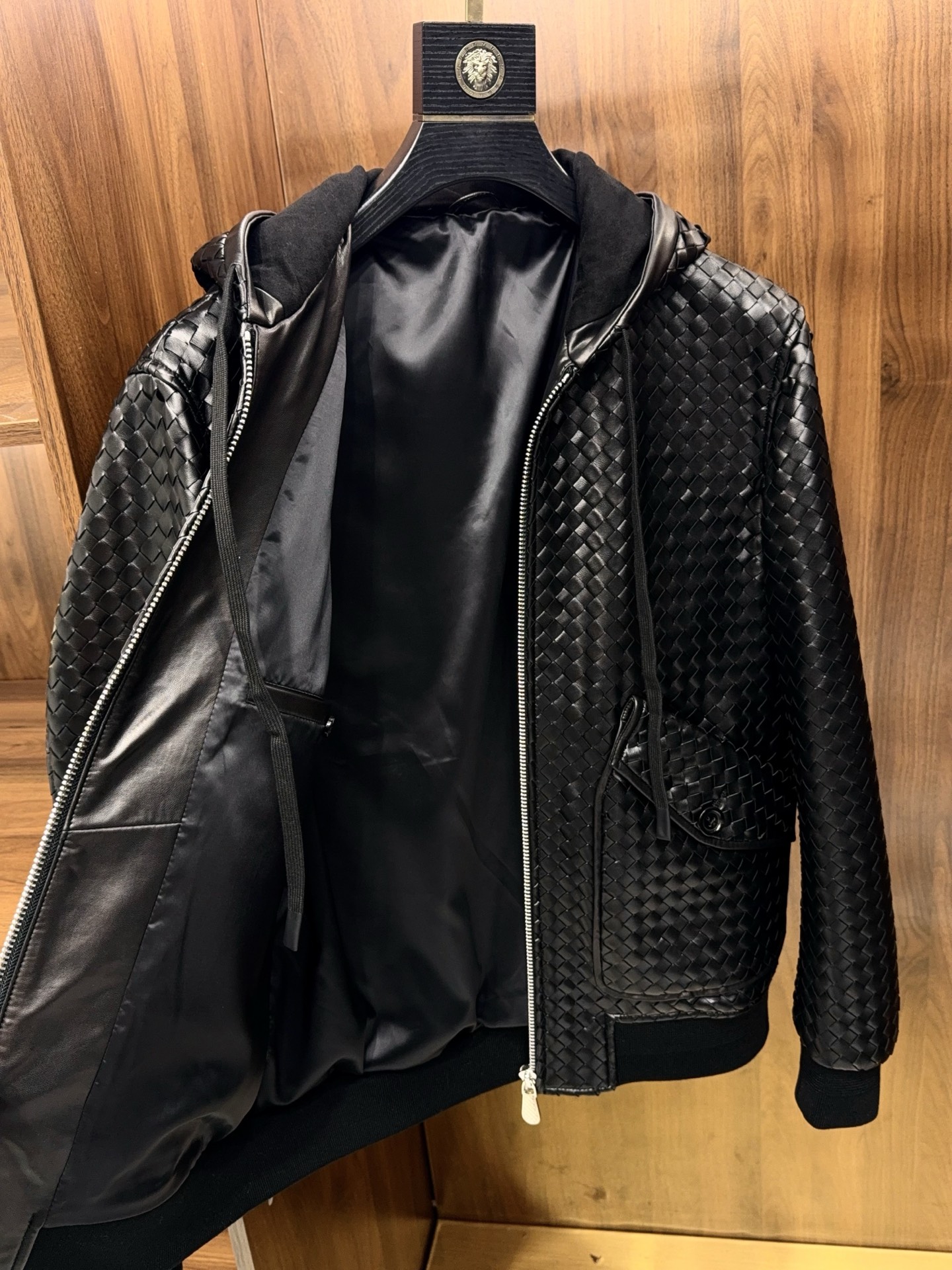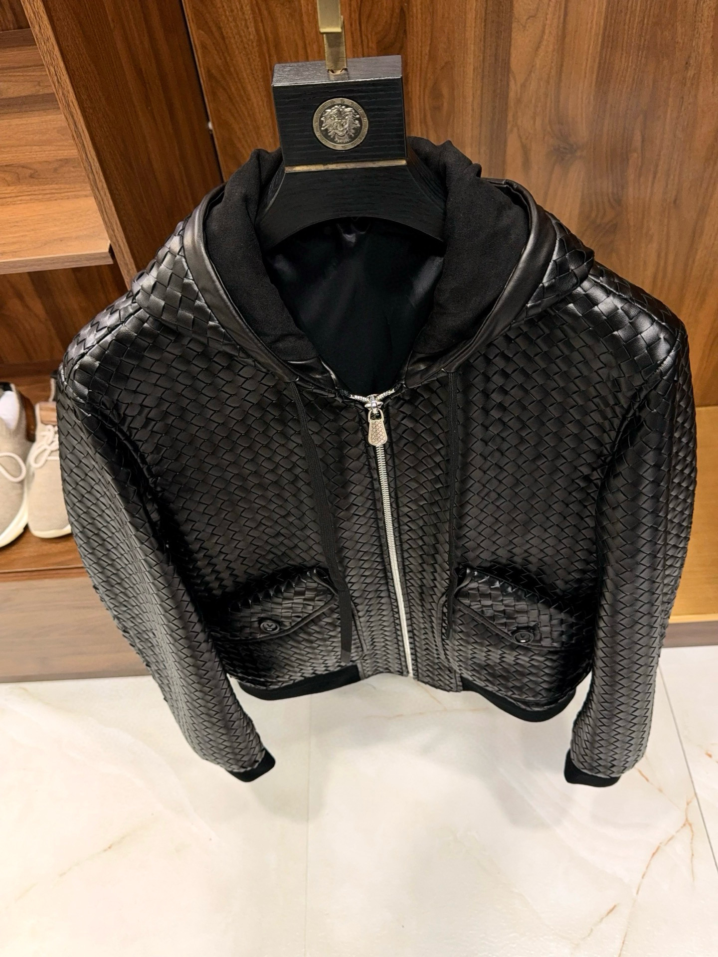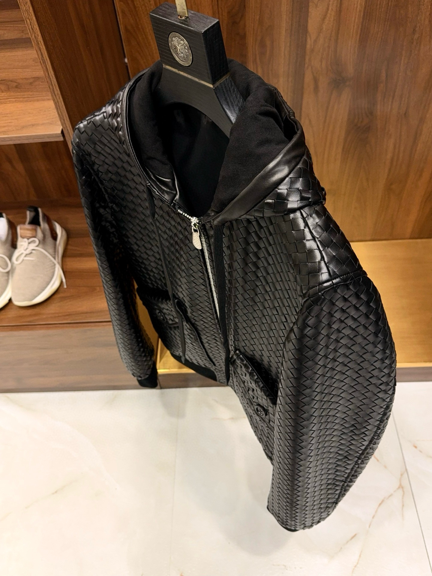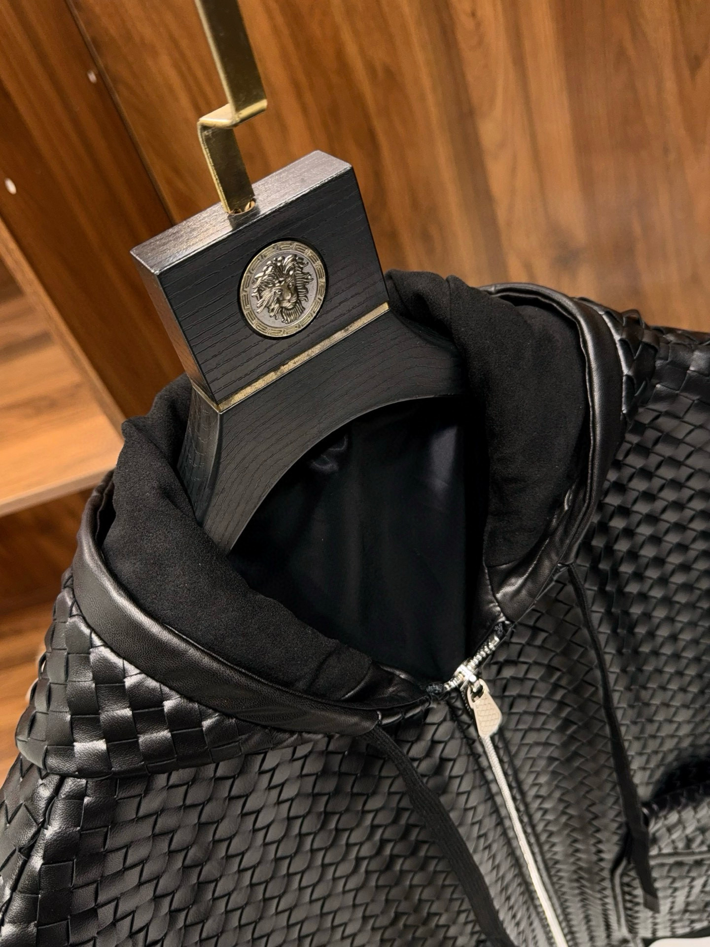 NIGO Bottega Veneta Men's And Women's Spring/Fall Fashion Casual Solid Color Hooded Zipper Shearling Hand Knitted Hooded Jacket with Large Pockets Leather Jacket Outerwear Jacket #nigo78991