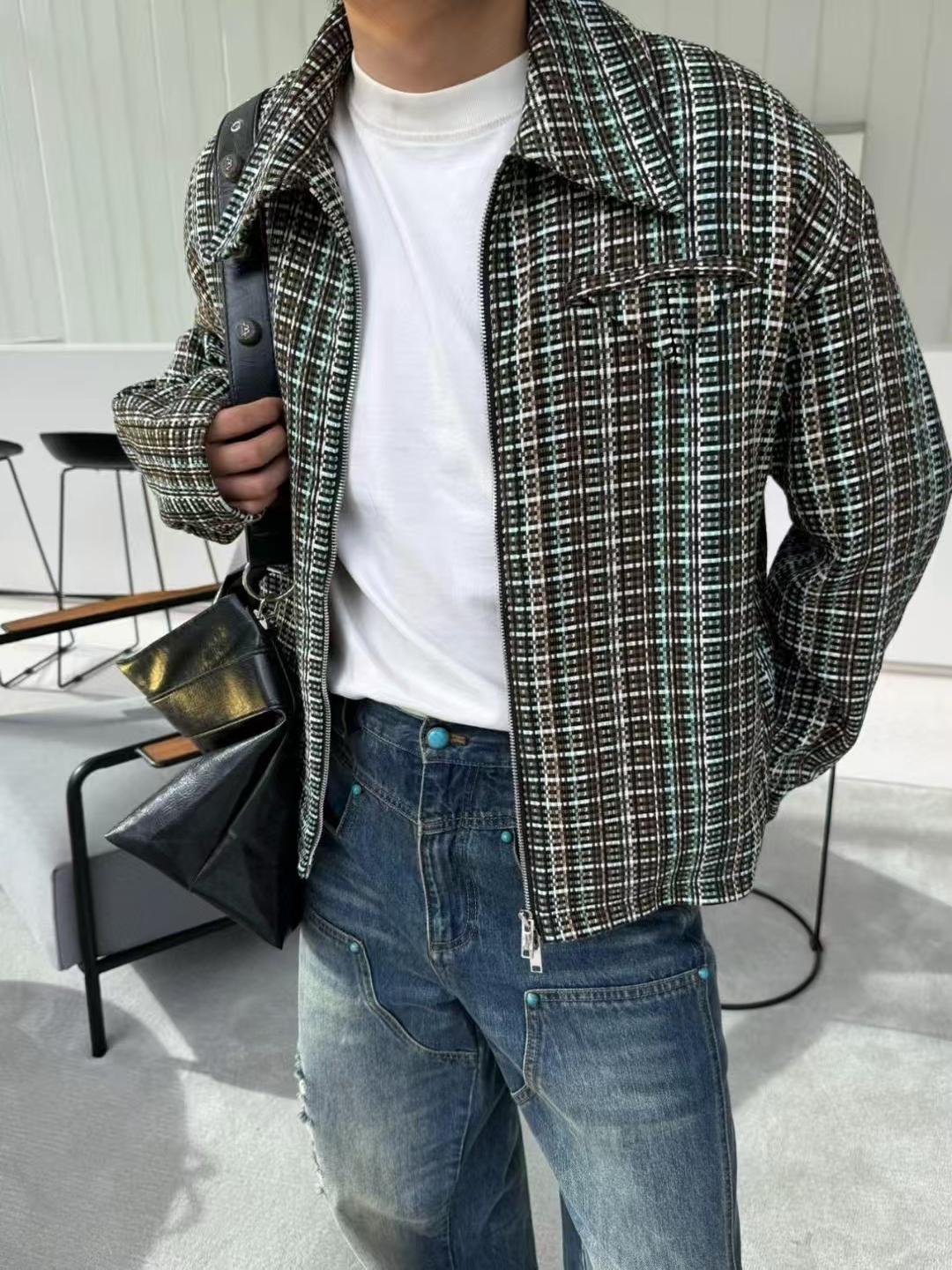 NIGO Bottega Veneta Men's Autumn And Winter Fashion Chunky Woven Multi-color Weaving Zipper Drop Shoulder Jacket Coat Lapel Casual Long Sleeve Jacket Ngvp #nigo2474