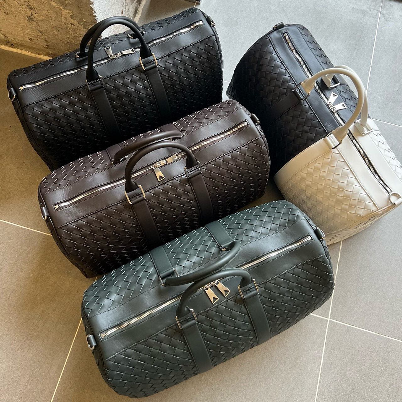 NIGO Bottega Veneta Men's Solid Color Cowhide Woven Travel Bag Removable Inner Bag Fashion Large Handbag Crossbody Bag Ngvp #nigo7791