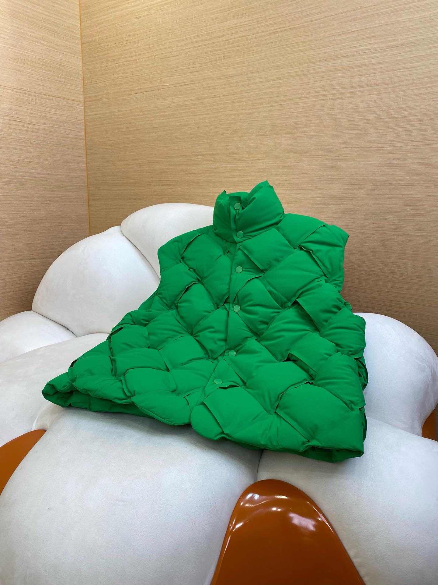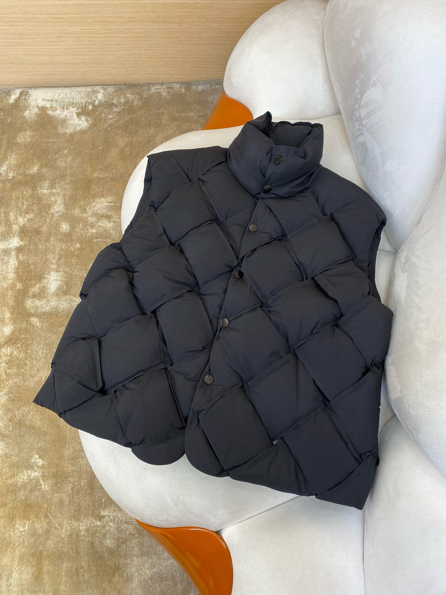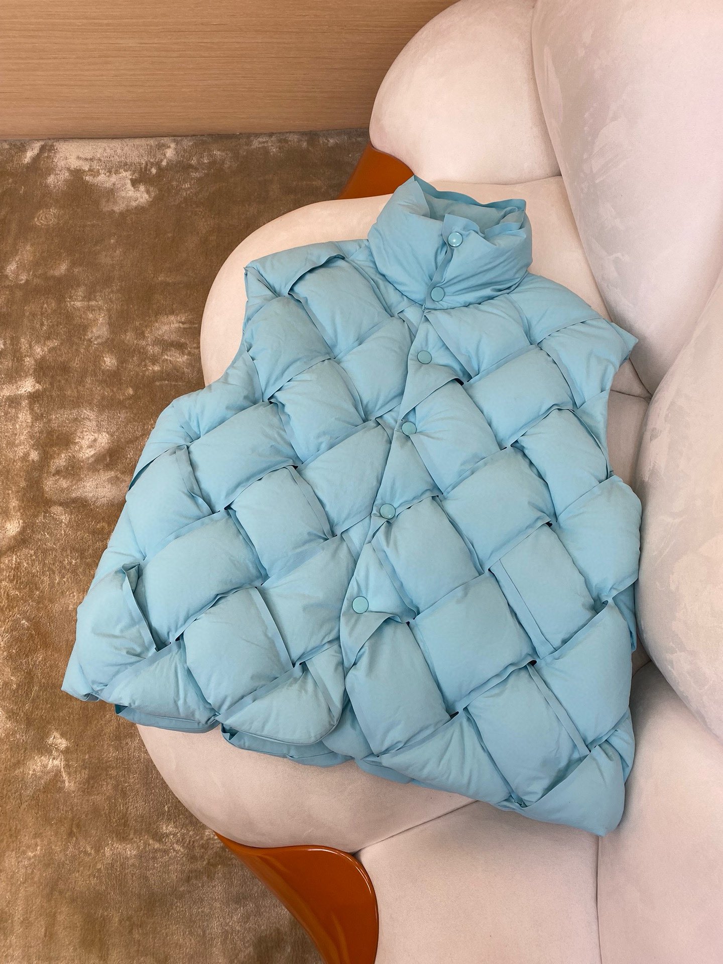 NIGO Bottega Veneta Men's Women's Woven Down Vest Solid Color Standing Collar Single Breasted White Duck Down Jacket Vest Ngvp #nigo7216
