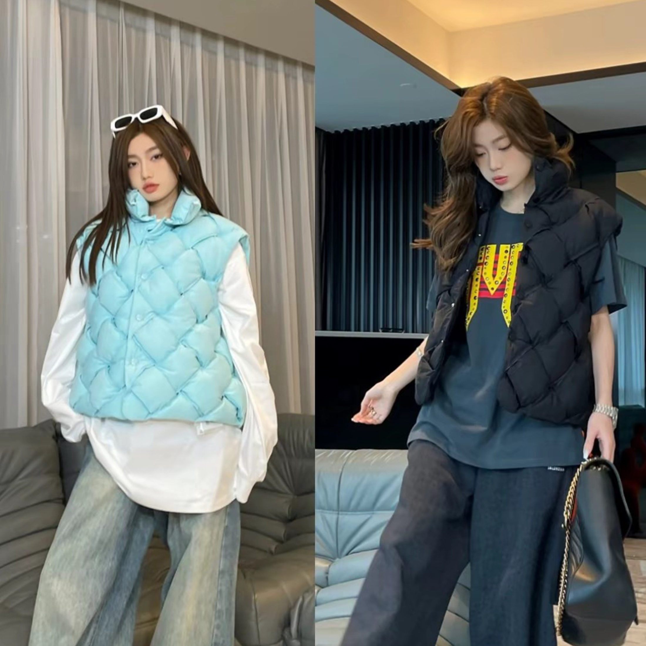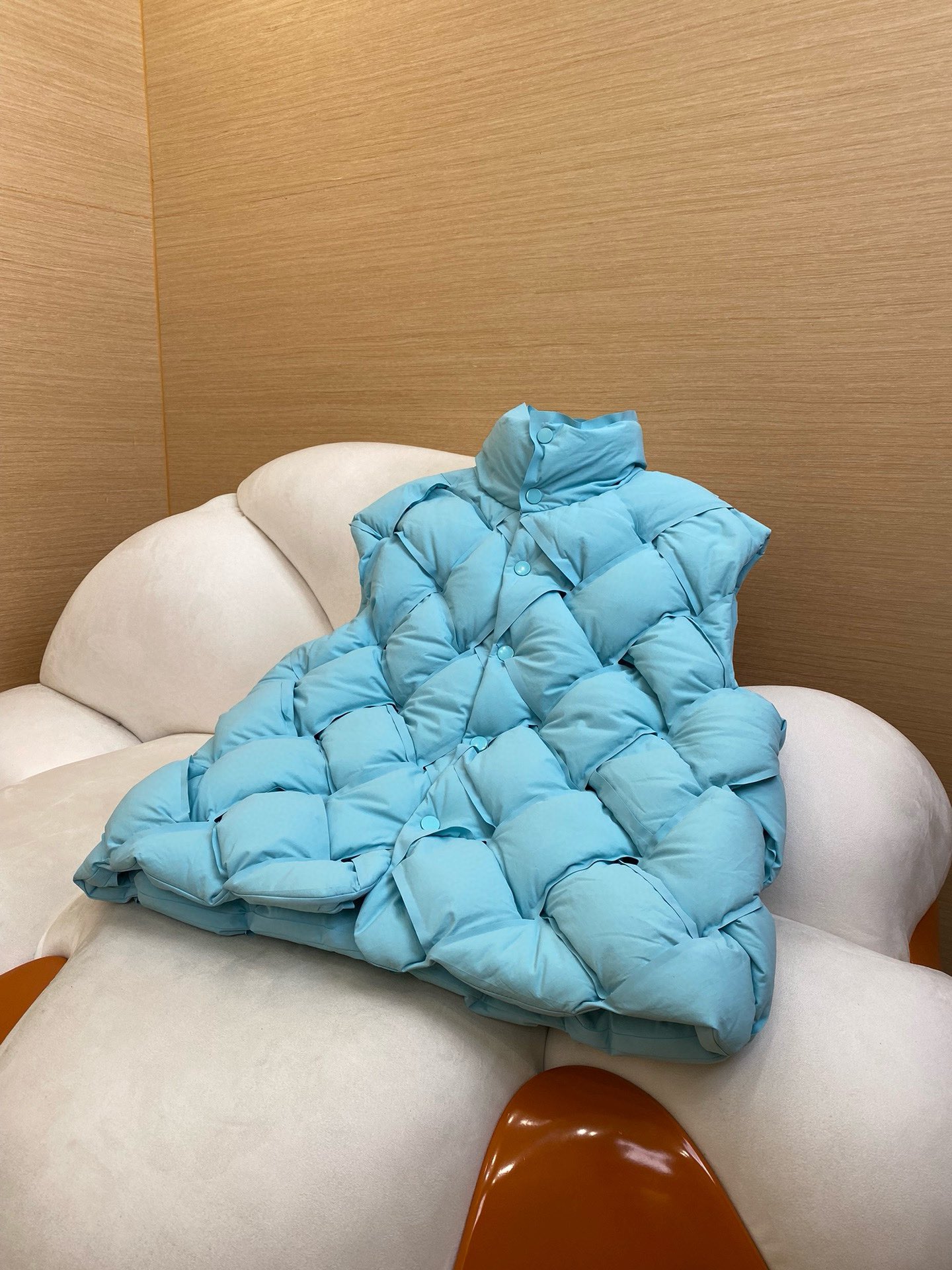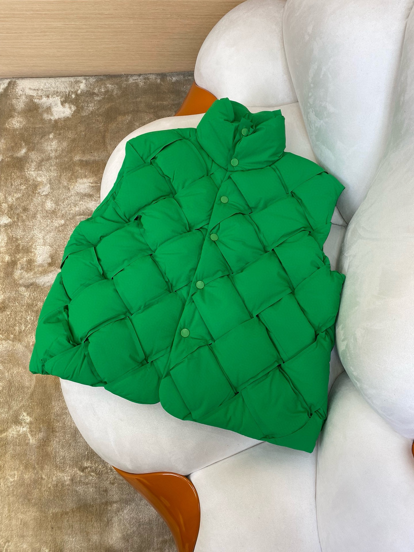 NIGO Bottega Veneta Men's Women's Woven Down Vest Solid Color Standing Collar Single Breasted White Duck Down Jacket Vest Ngvp #nigo7216