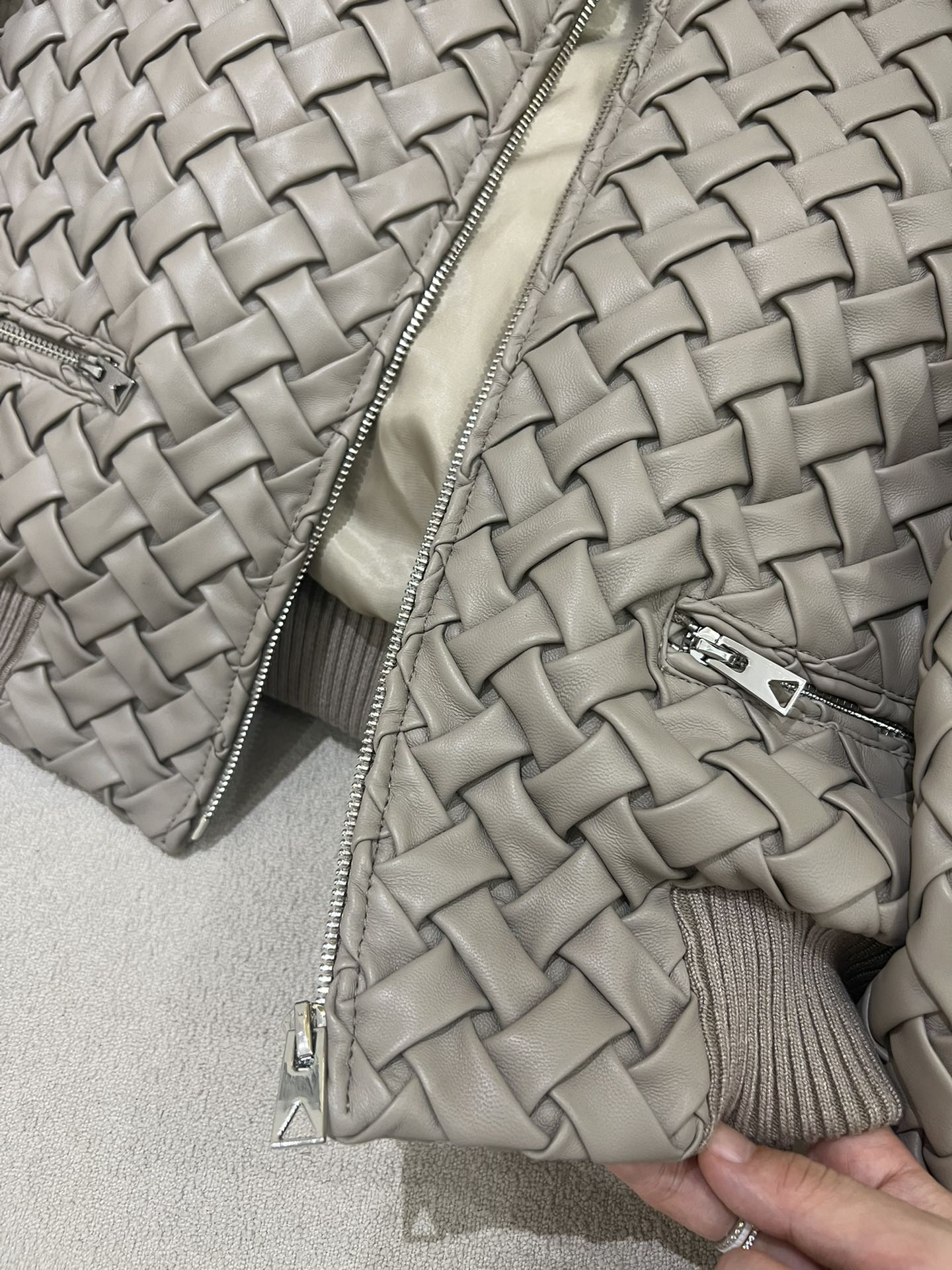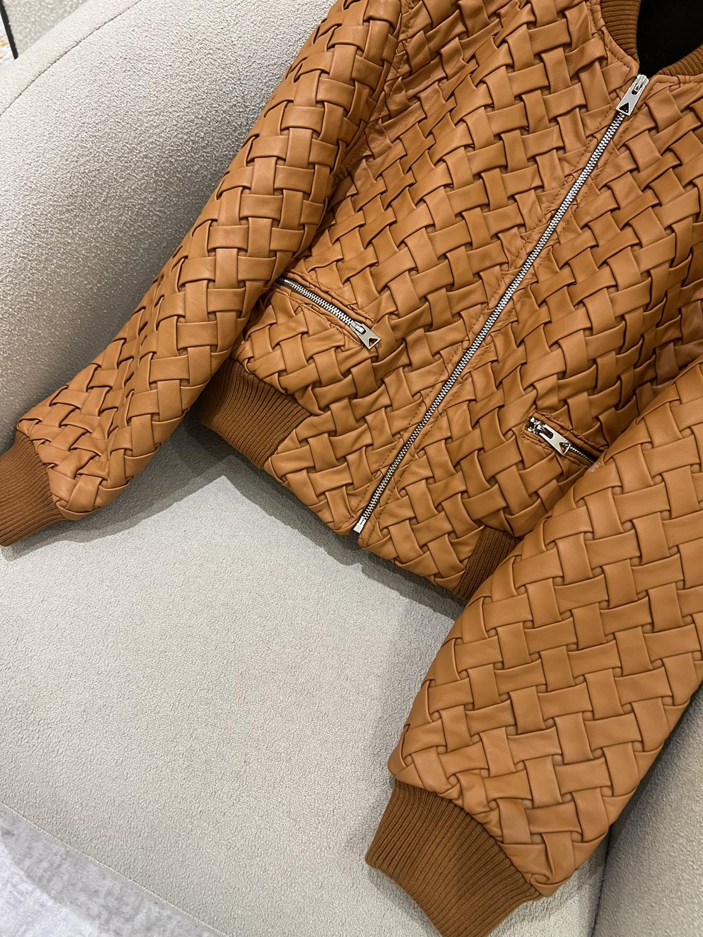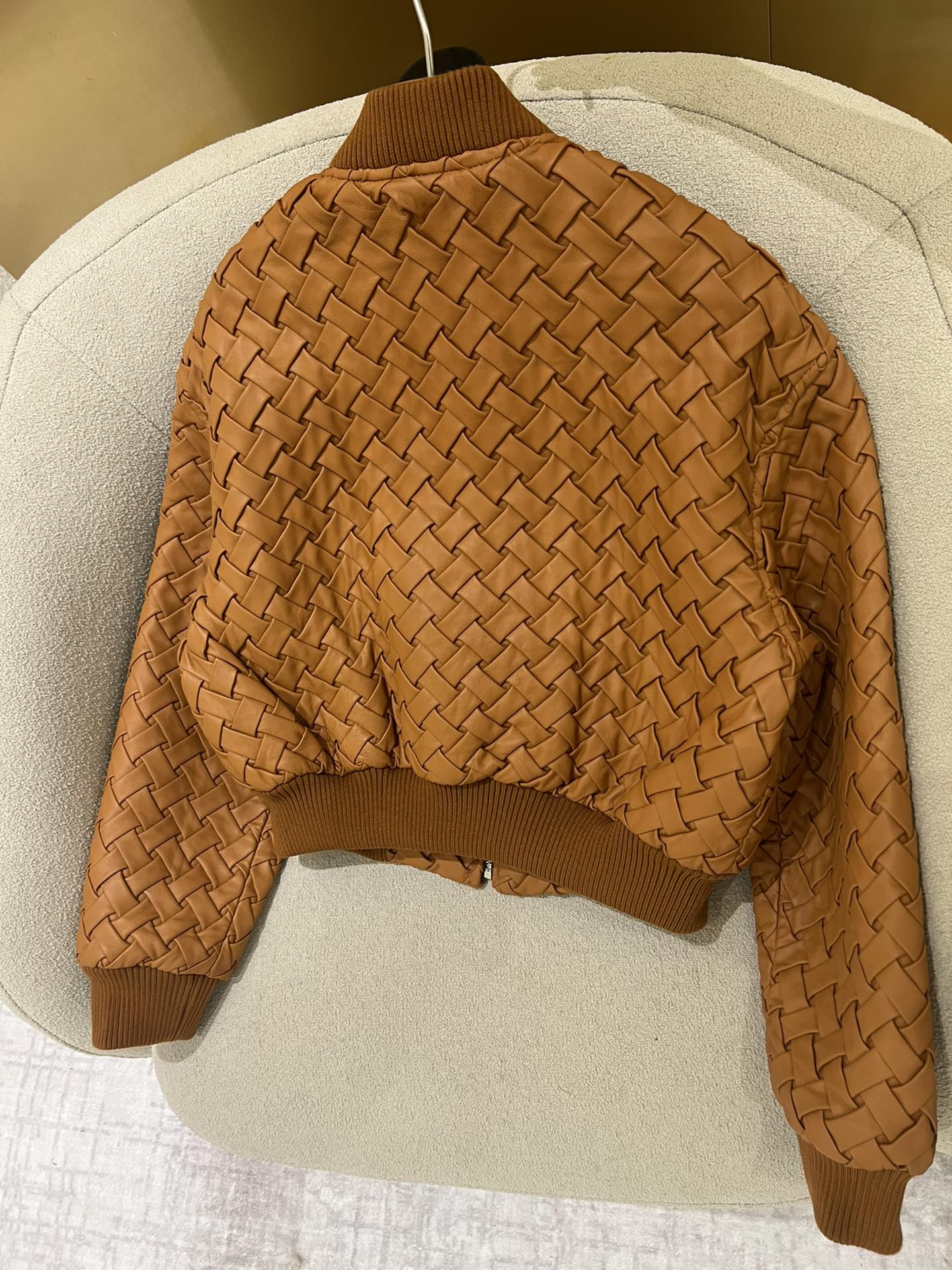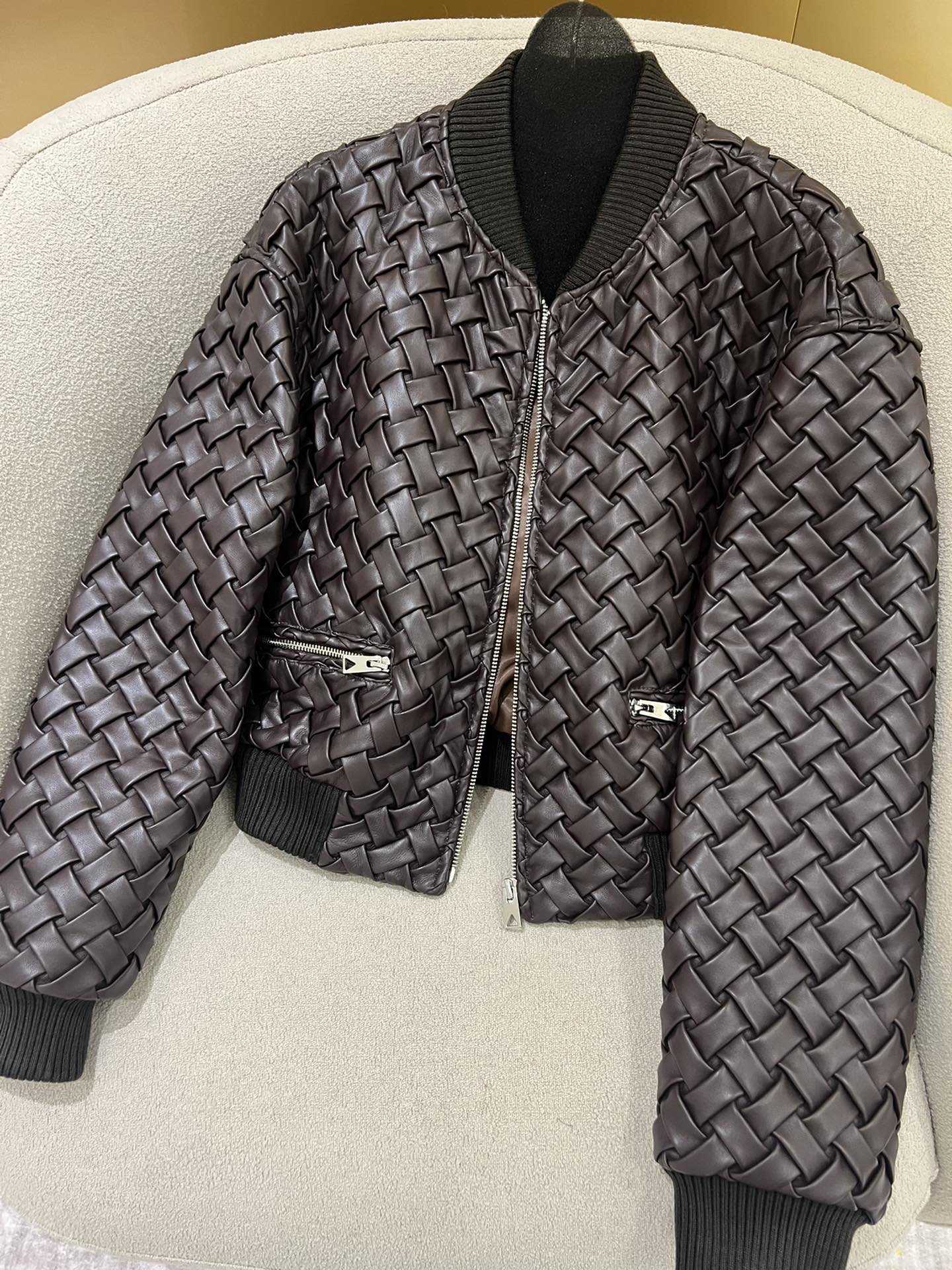 NIGO Bottega Veneta Women's Autumn And Winter Deluxe Solid Color Lapel Flight Suit Leather Button Woven Sheepskin Coat Jacket Ngvp #nigo9136