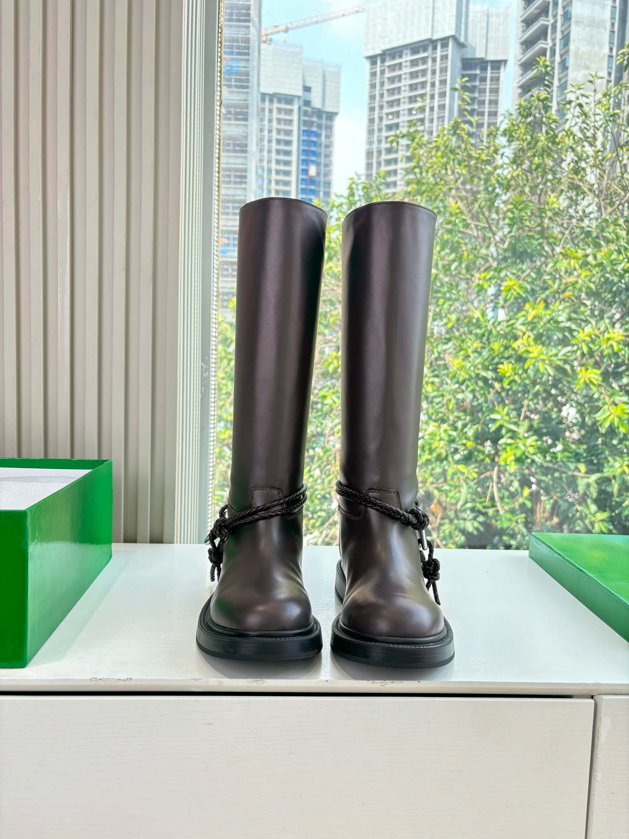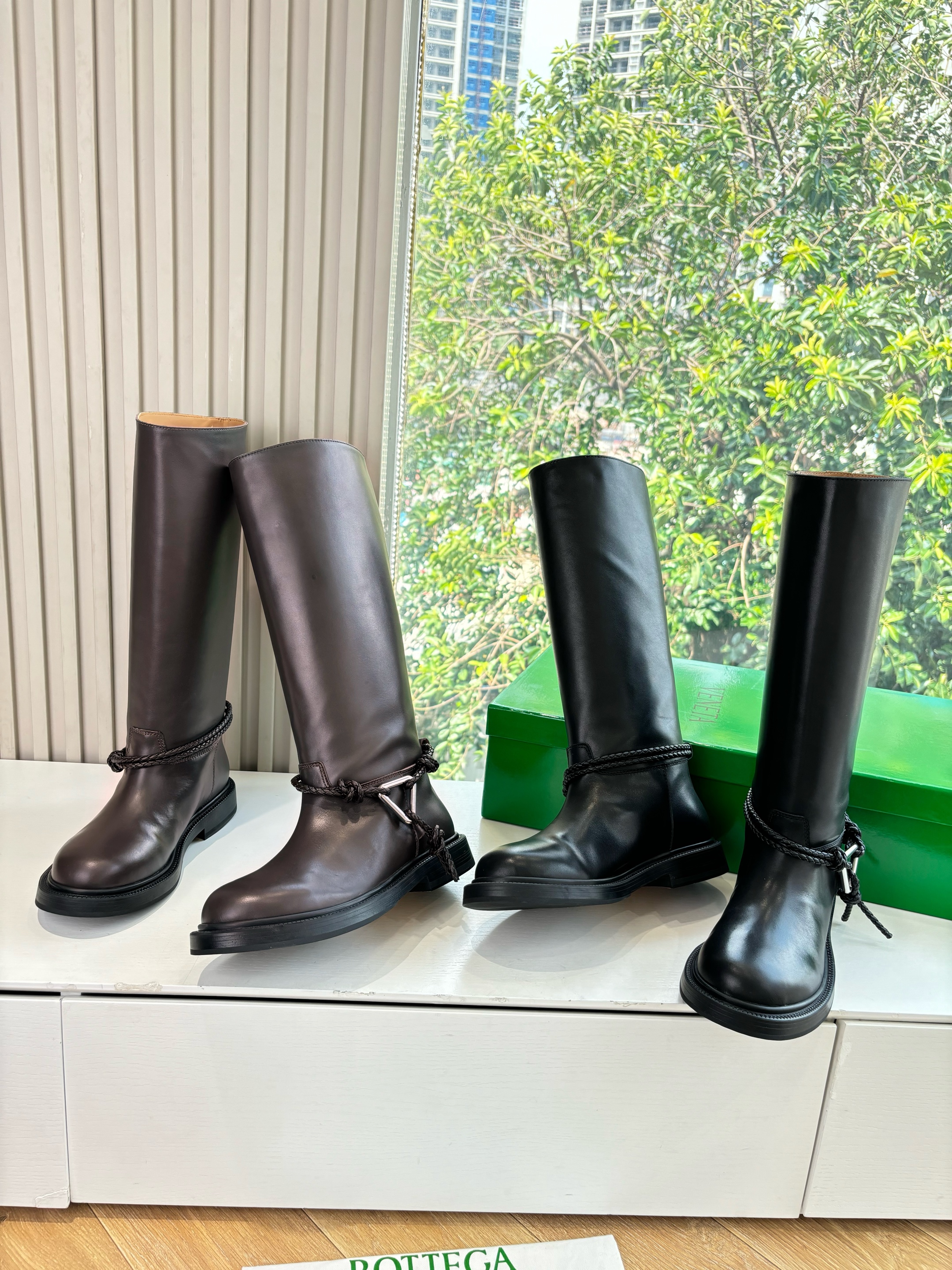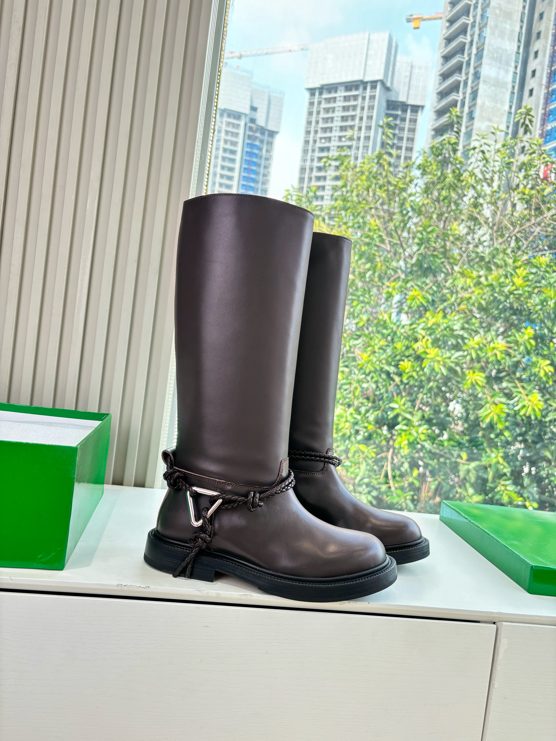 NIGO Bottega Veneta Women's James Knee-High Boots Solid-Color Leather Round-Toe Knee-High Boots Chunky Heel Casual Shoes Ngvp #nigo2574