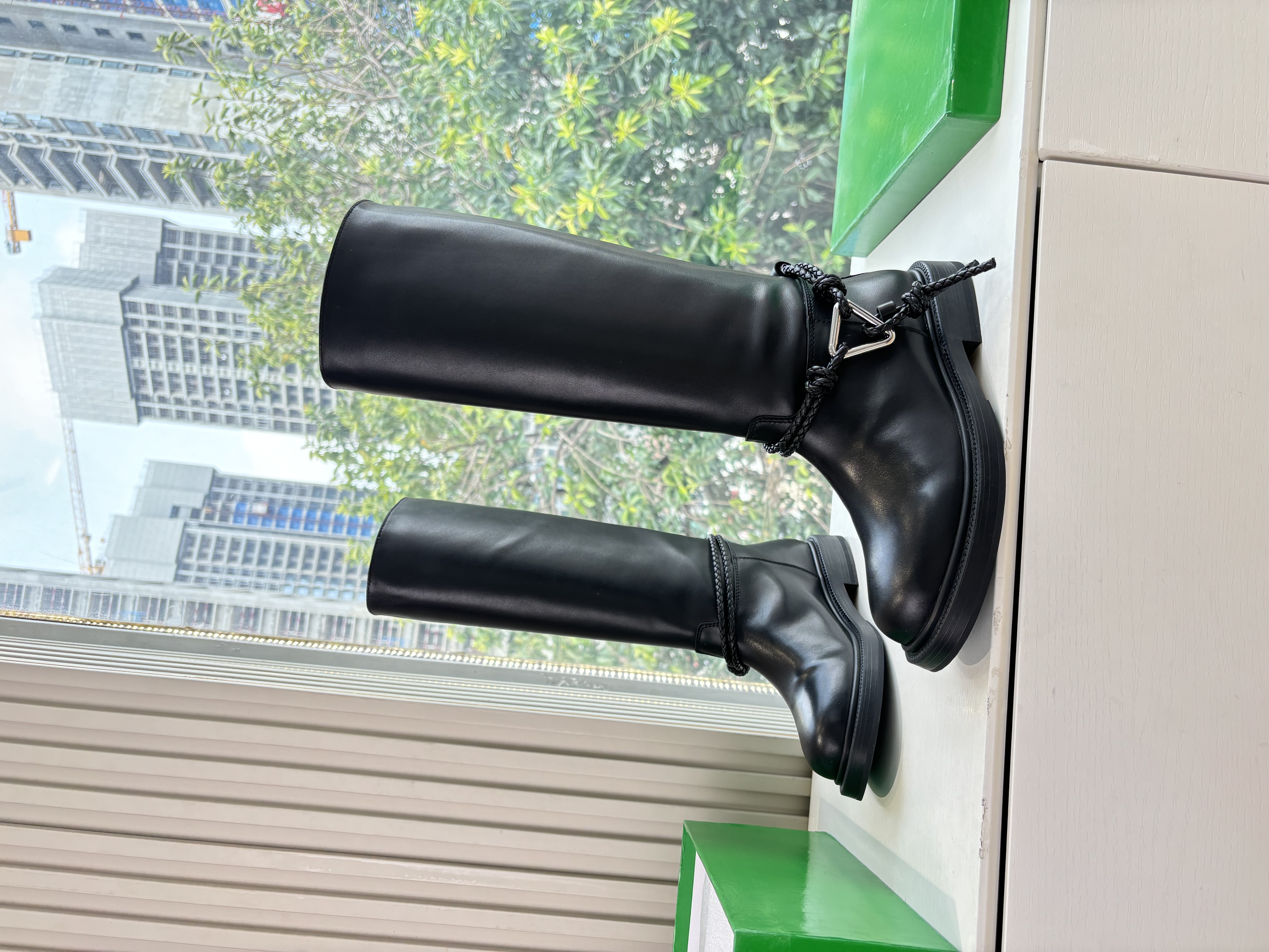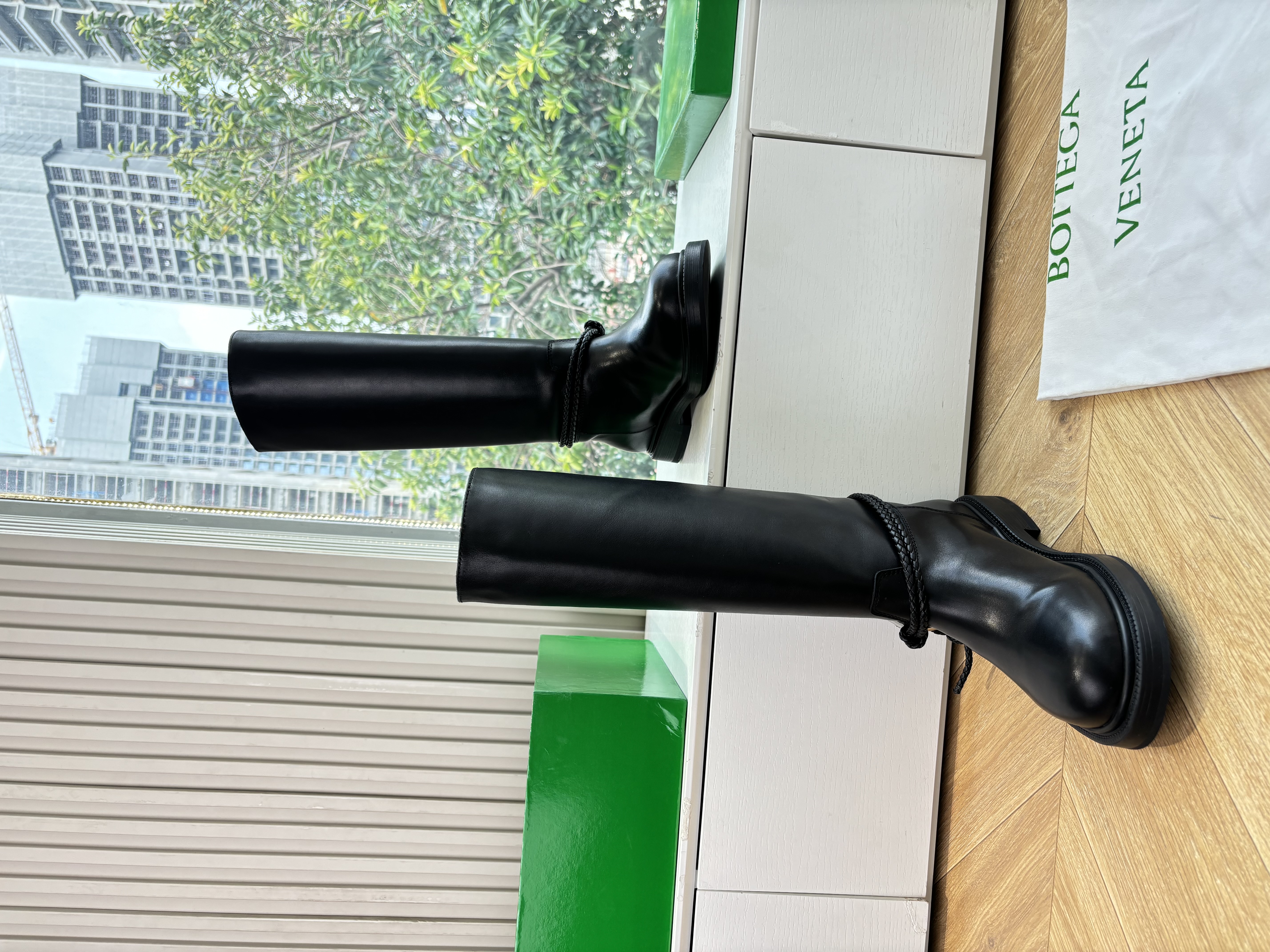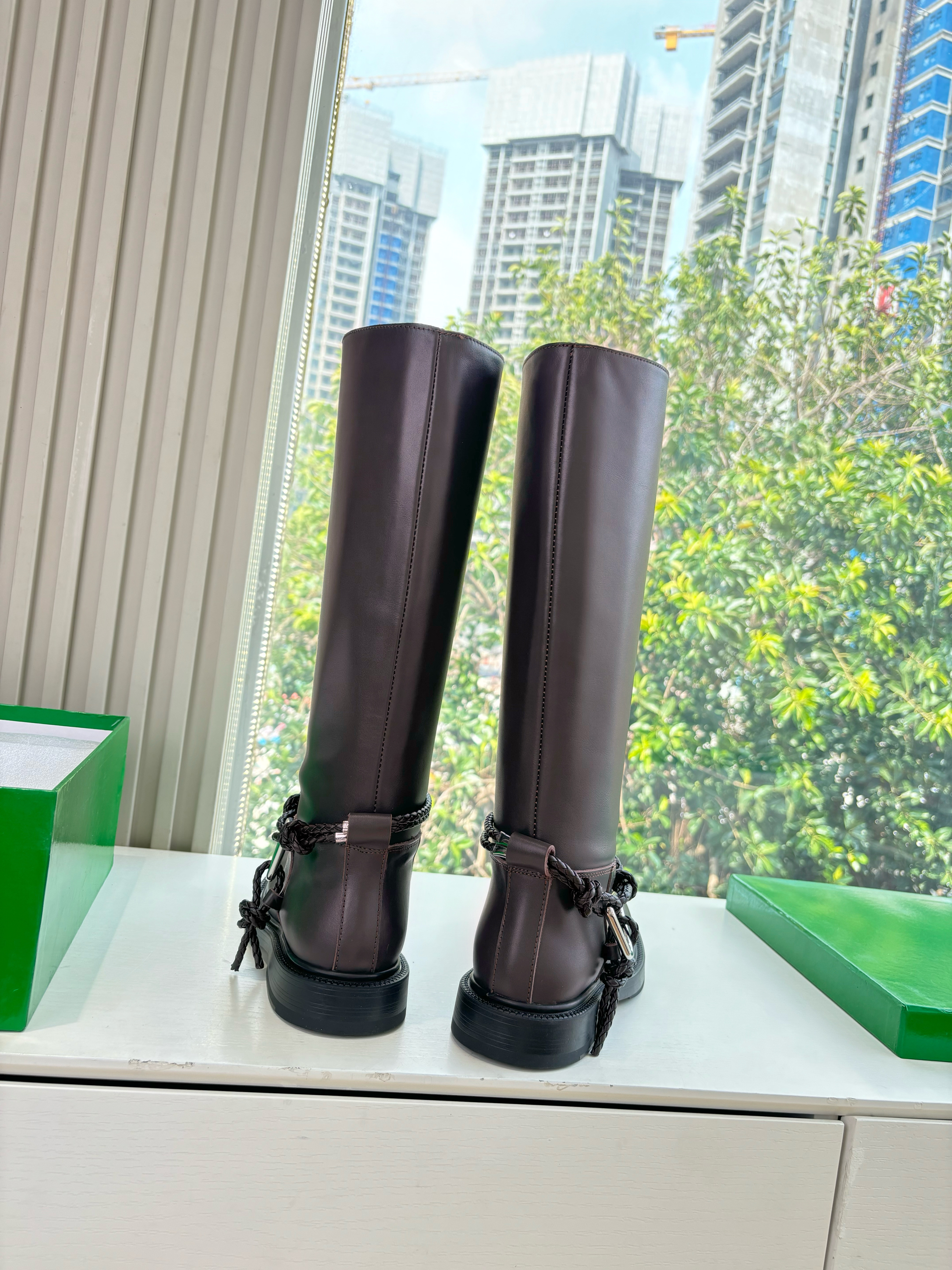 NIGO Bottega Veneta Women's James Knee-High Boots Solid-Color Leather Round-Toe Knee-High Boots Chunky Heel Casual Shoes Ngvp #nigo2574