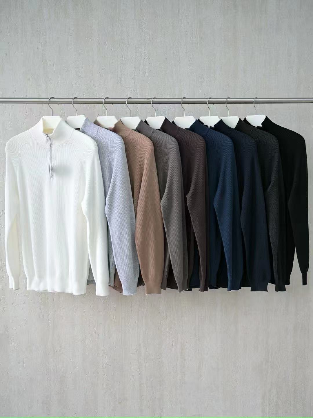 NIGO Brunello Cucinelli Men's British-Style Ribbed Cotton Knit Sweater Spring/Fall/Winter Half-Zip High-Neck Solid-Color Long-Sleeve Sweater Ngvp #nigo2525