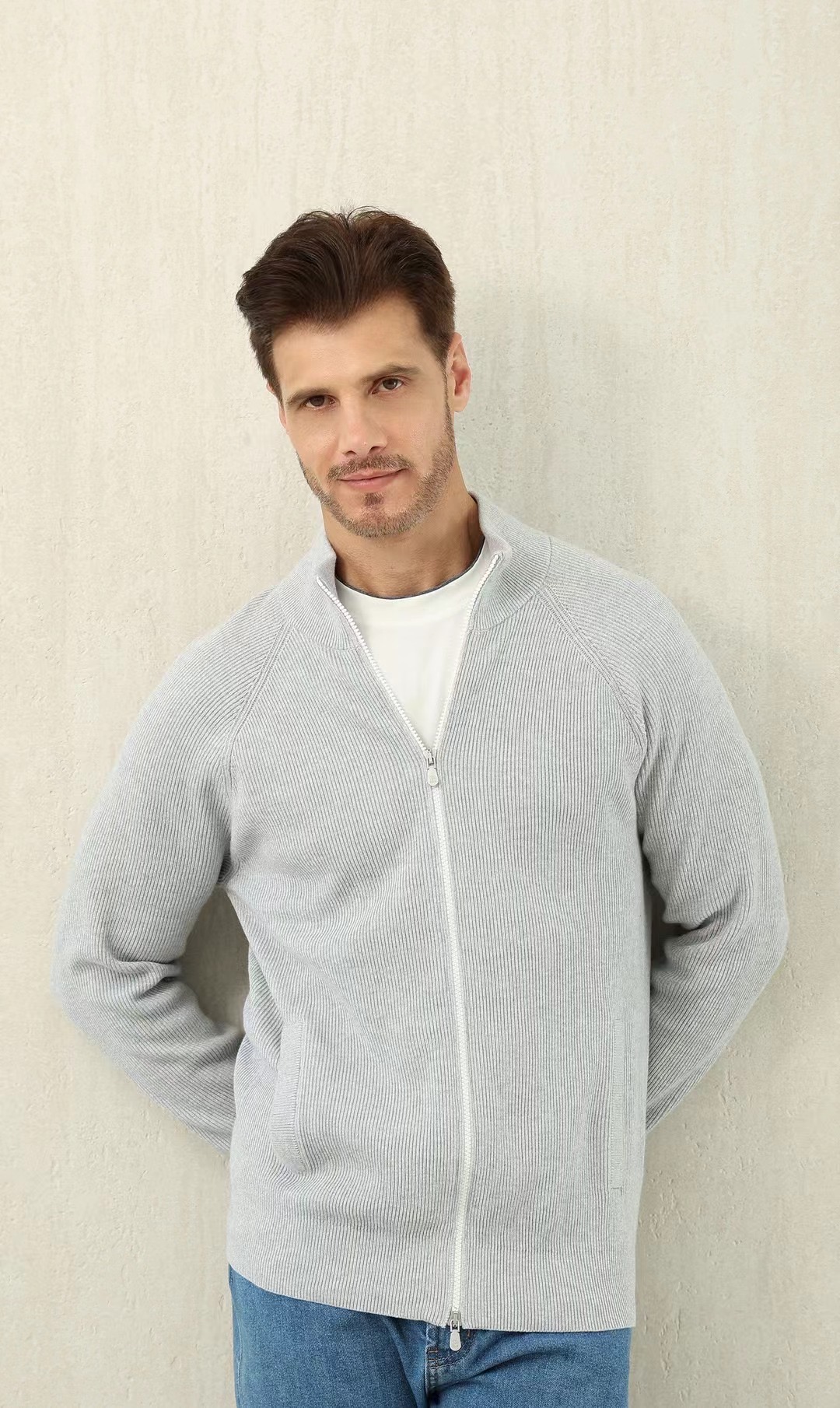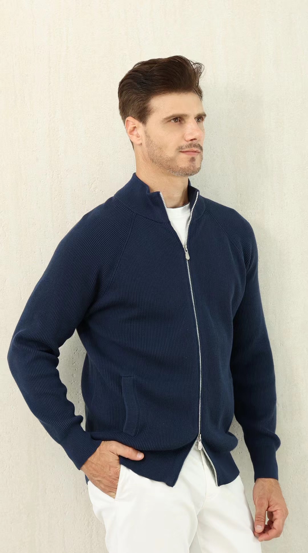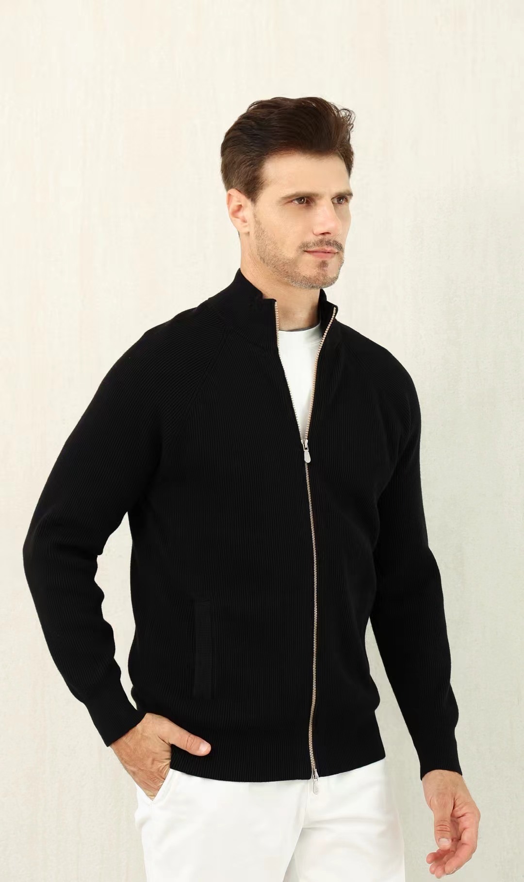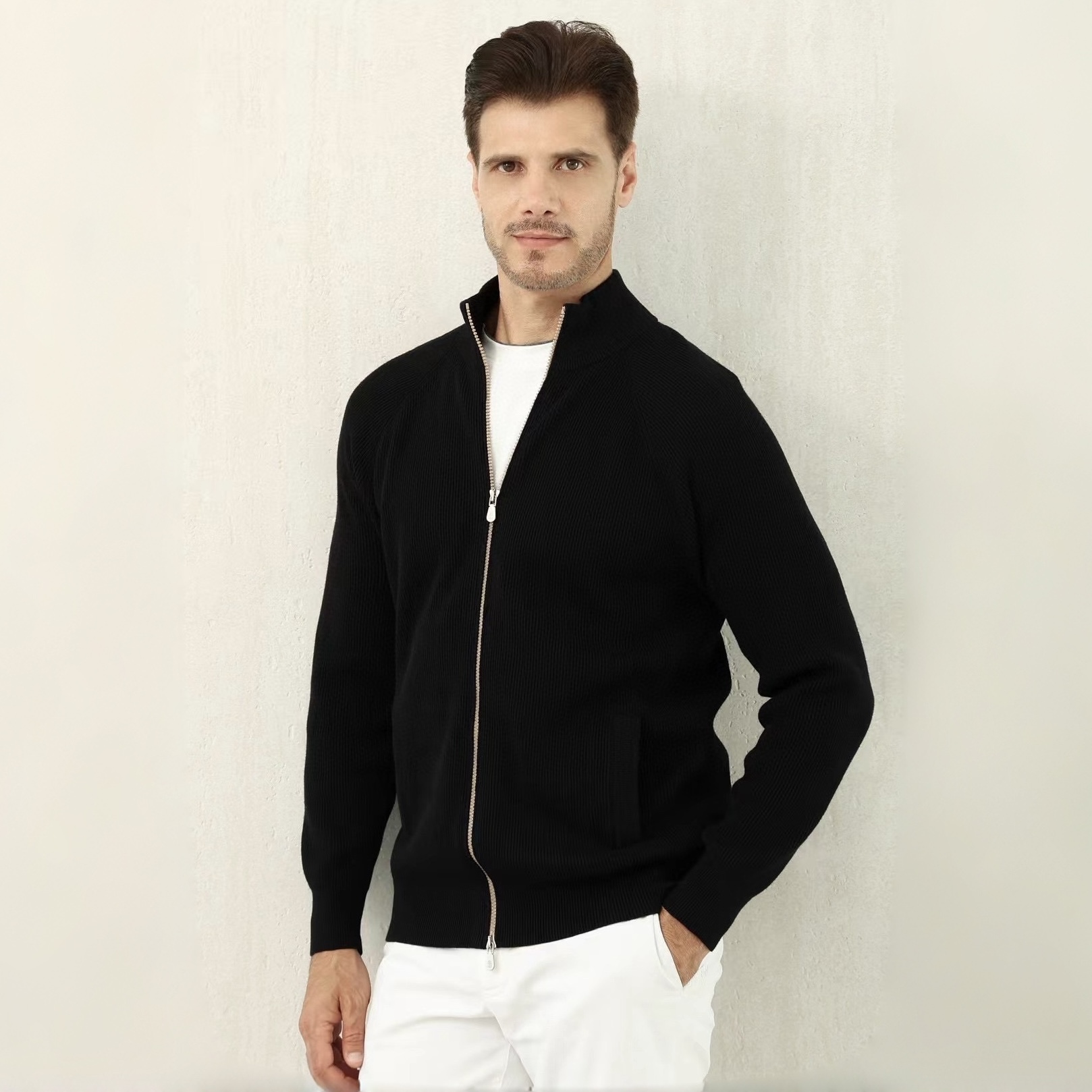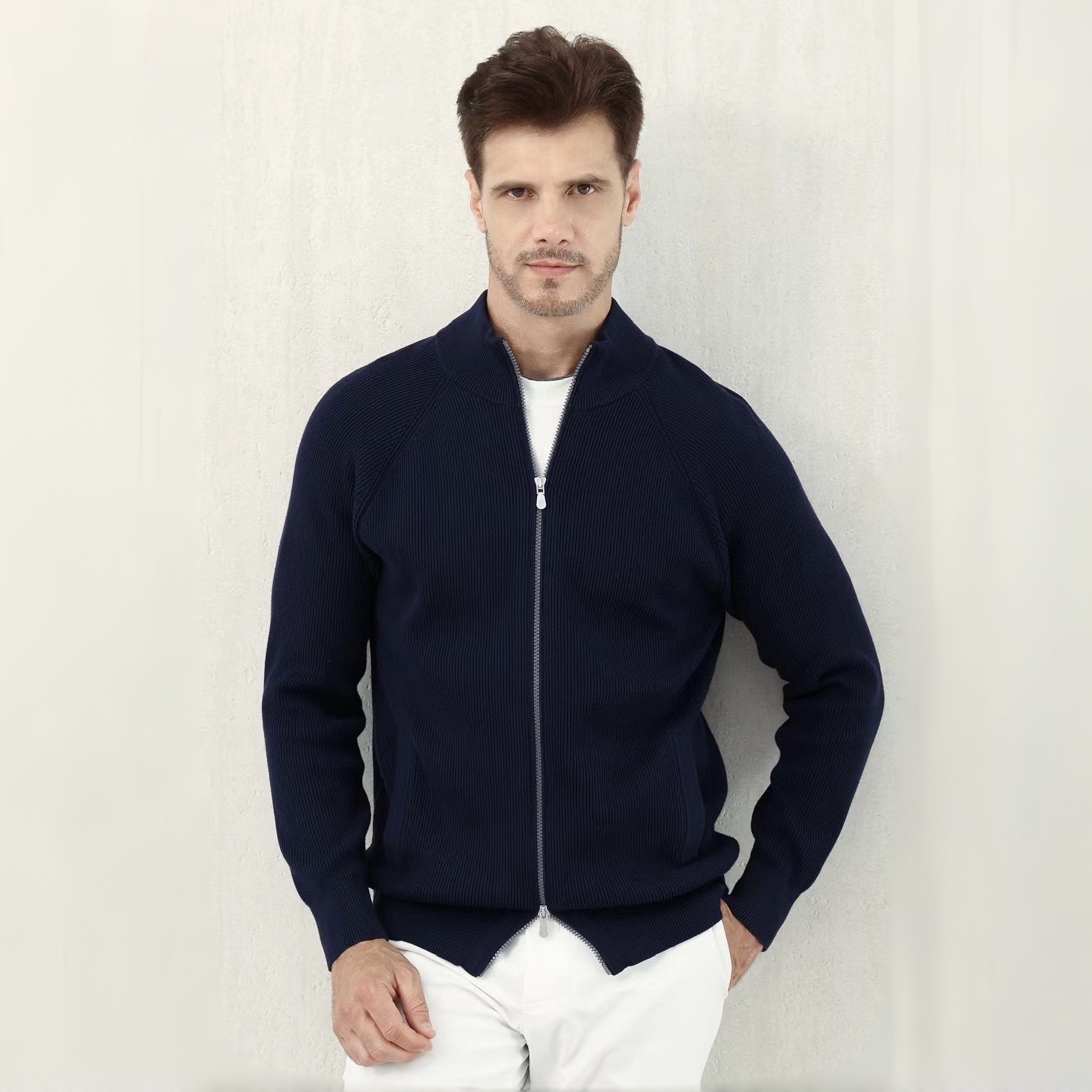 NIGO Brunello Cucinelli Men's Fall/Winter Fashion Casual Solid Color High Neck Double Zip Knit Cardigan #nigo79221