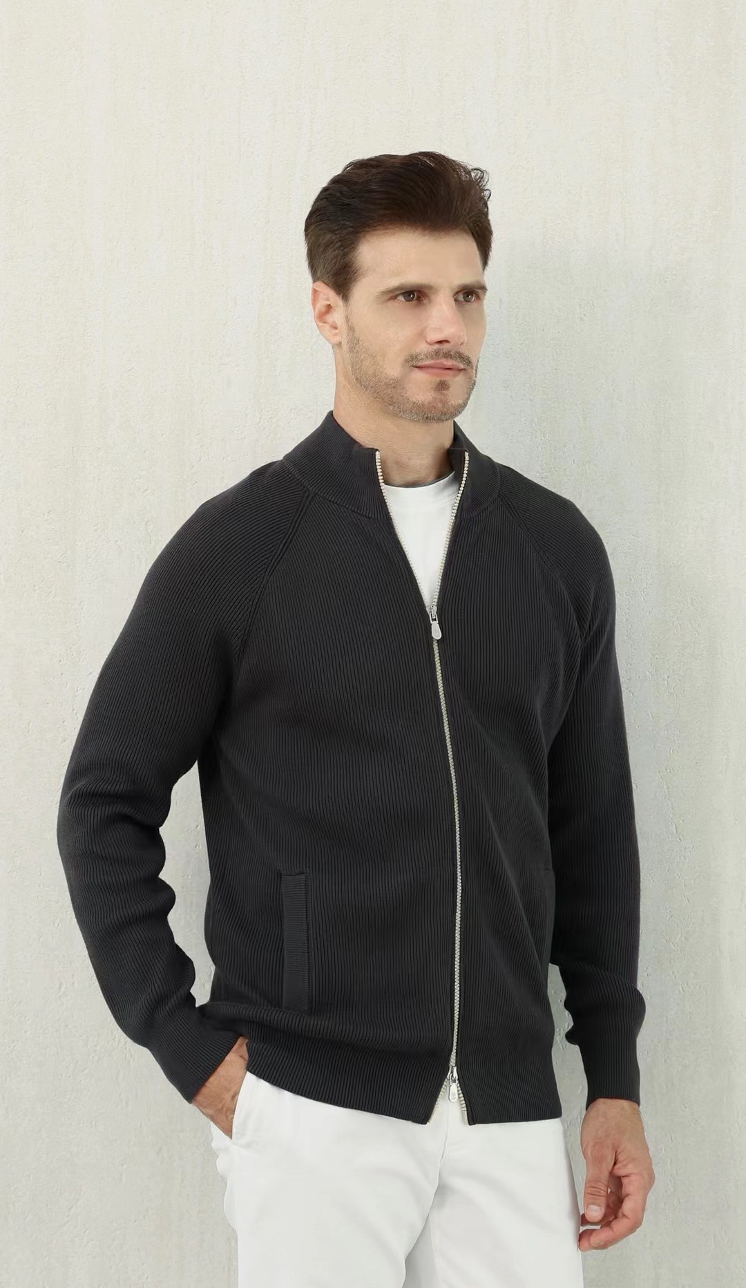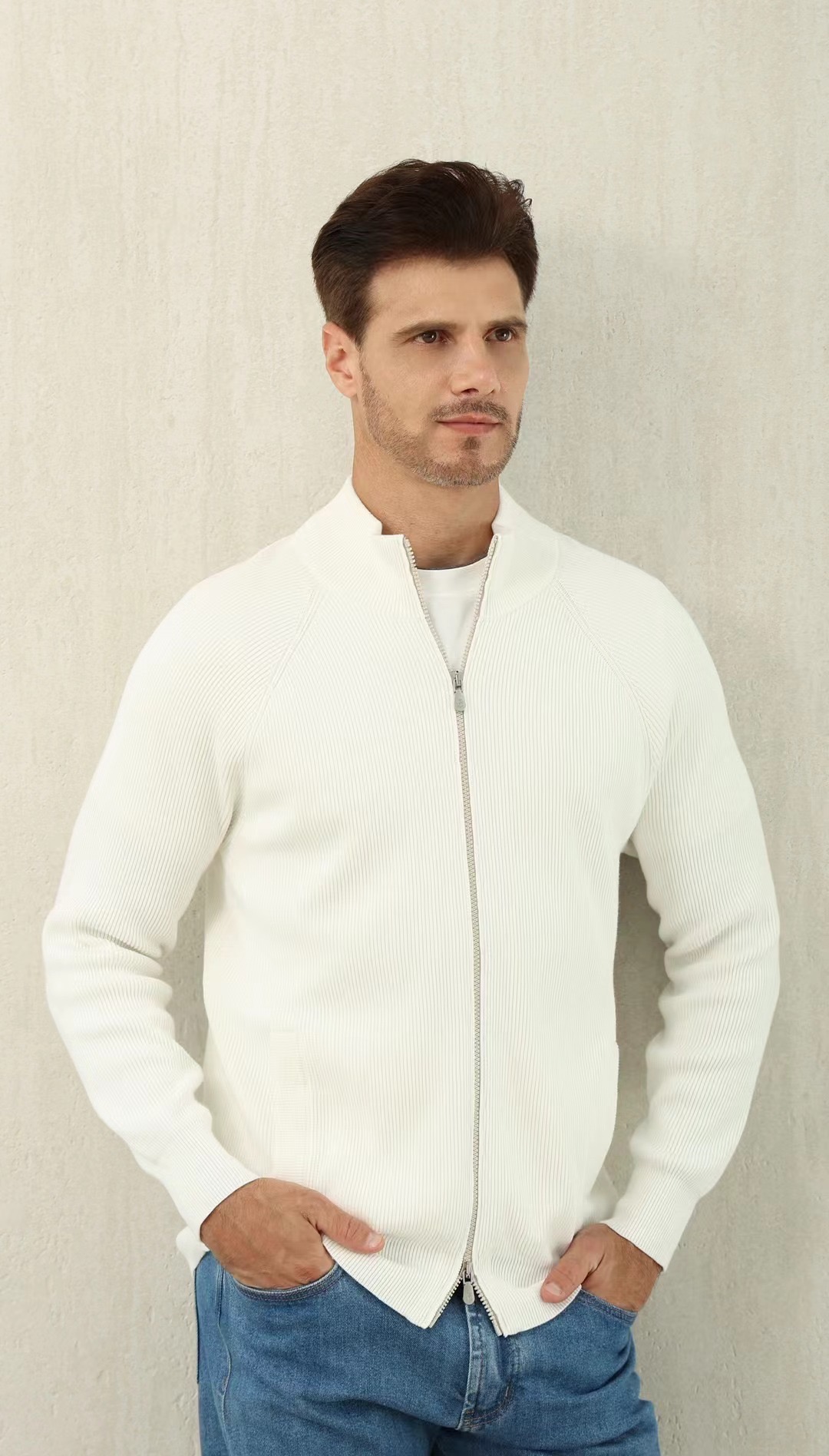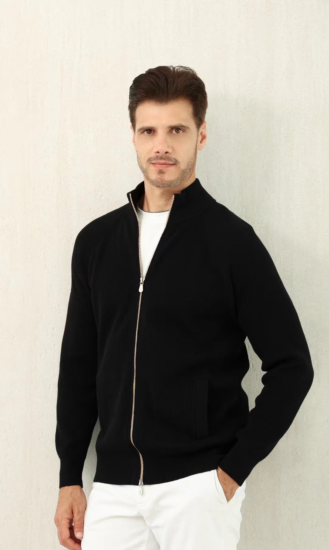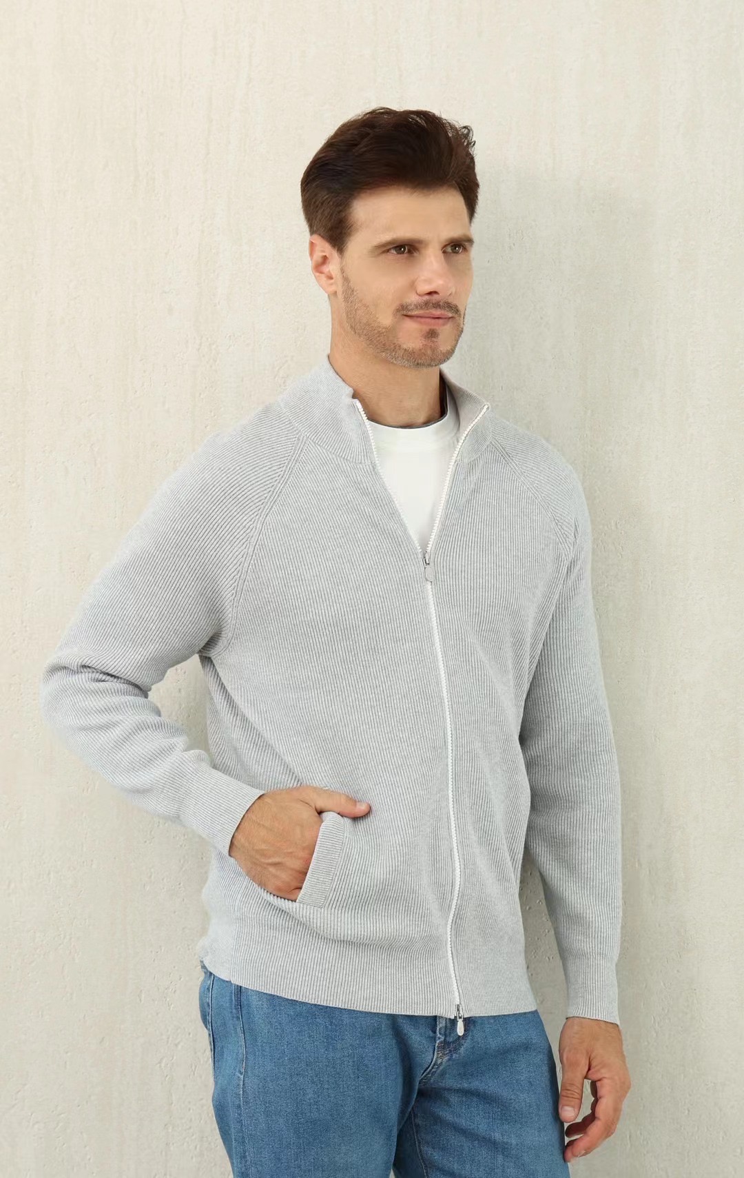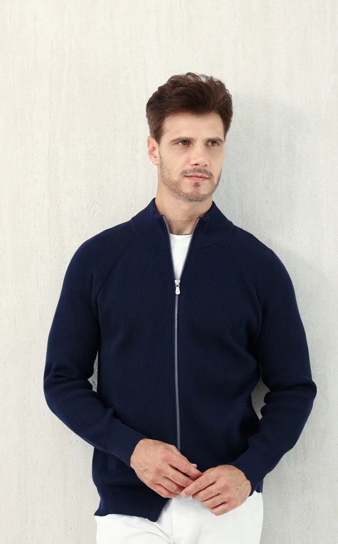 NIGO Brunello Cucinelli Men's Fall/Winter Fashion Casual Solid Color High Neck Double Zip Knit Cardigan #nigo79221
