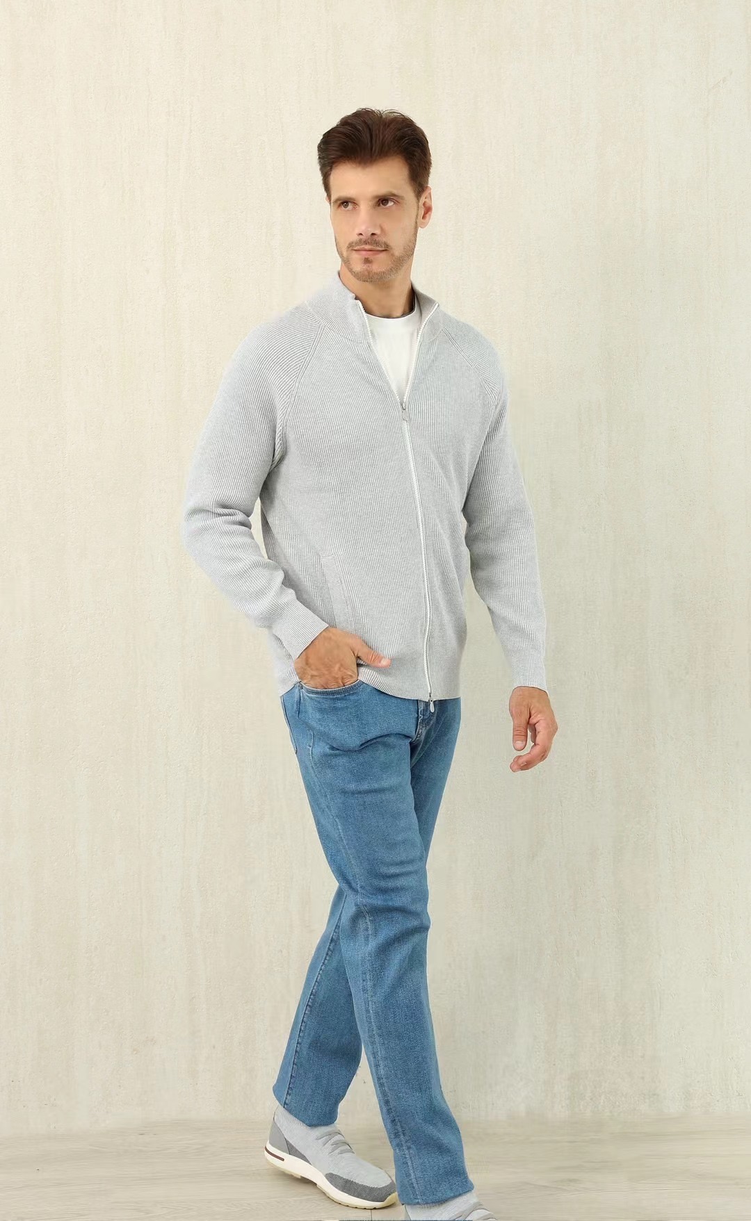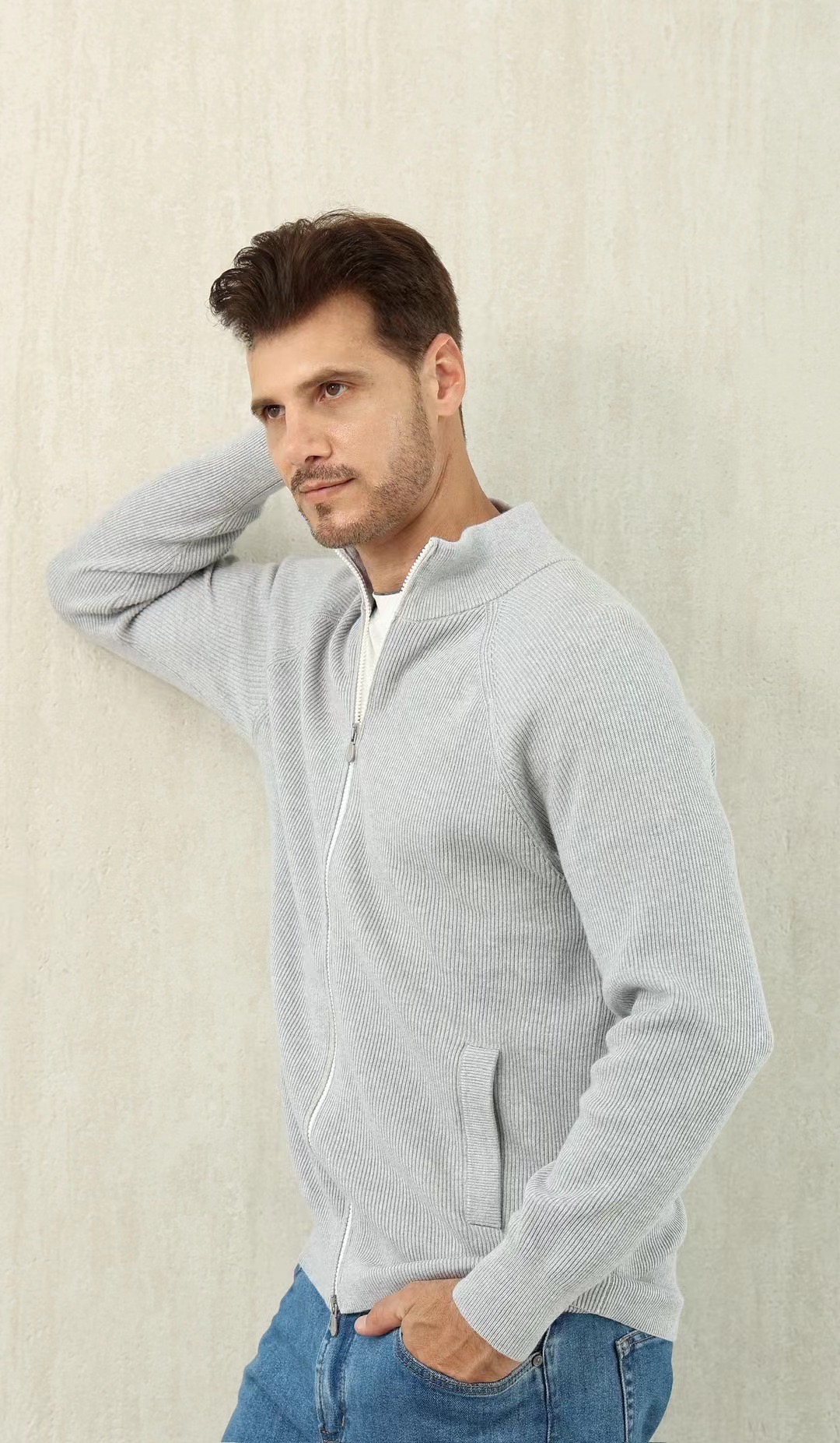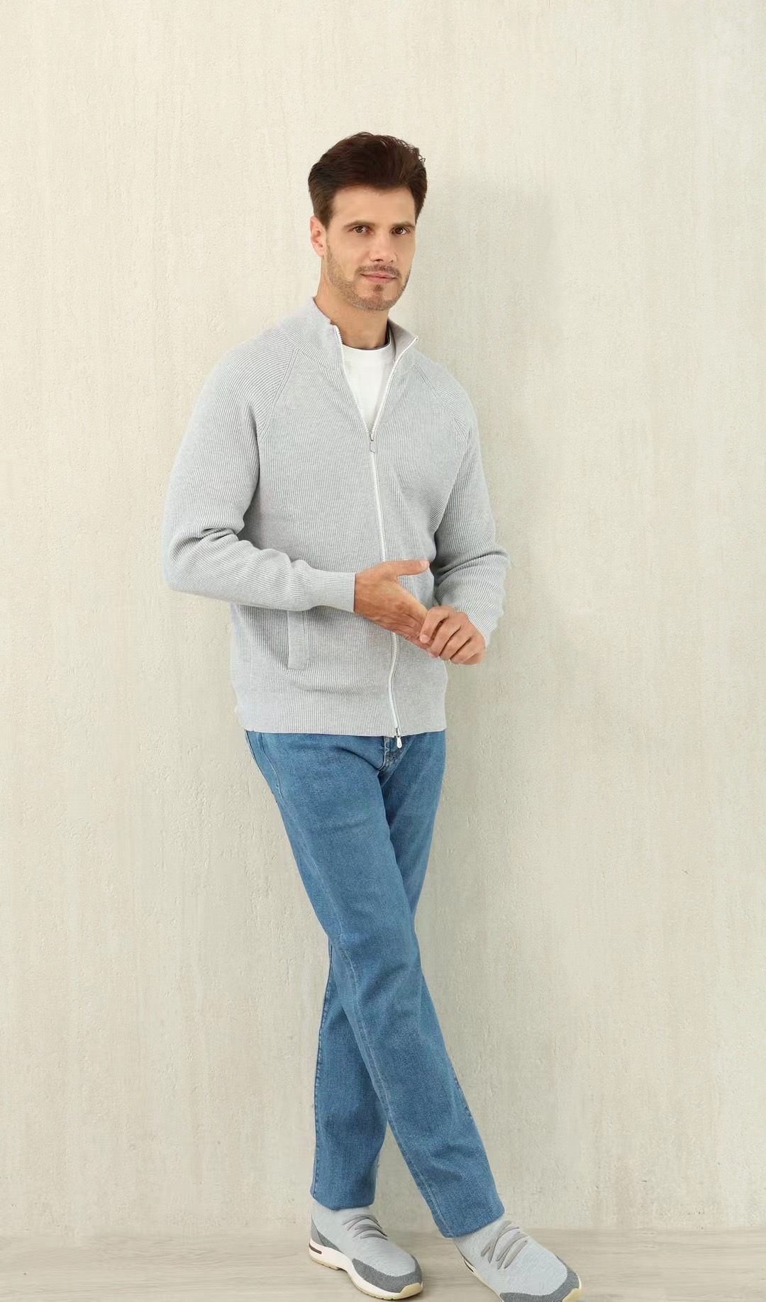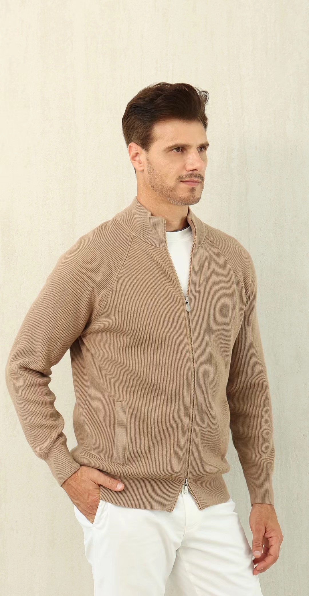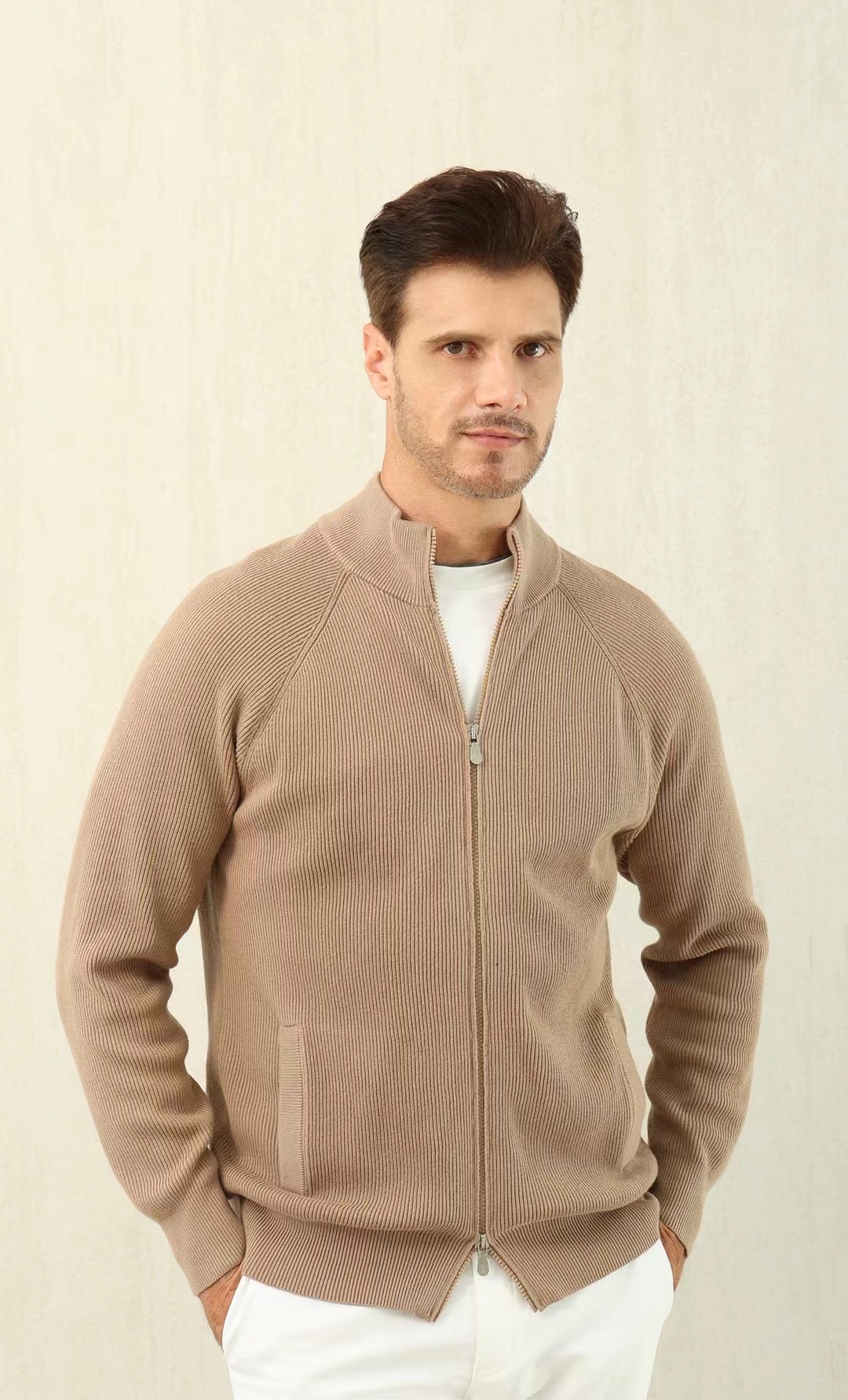NIGO Brunello Cucinelli Men's Fall/Winter Fashion Casual Solid Color High Neck Double Zip Knit Cardigan #nigo79221