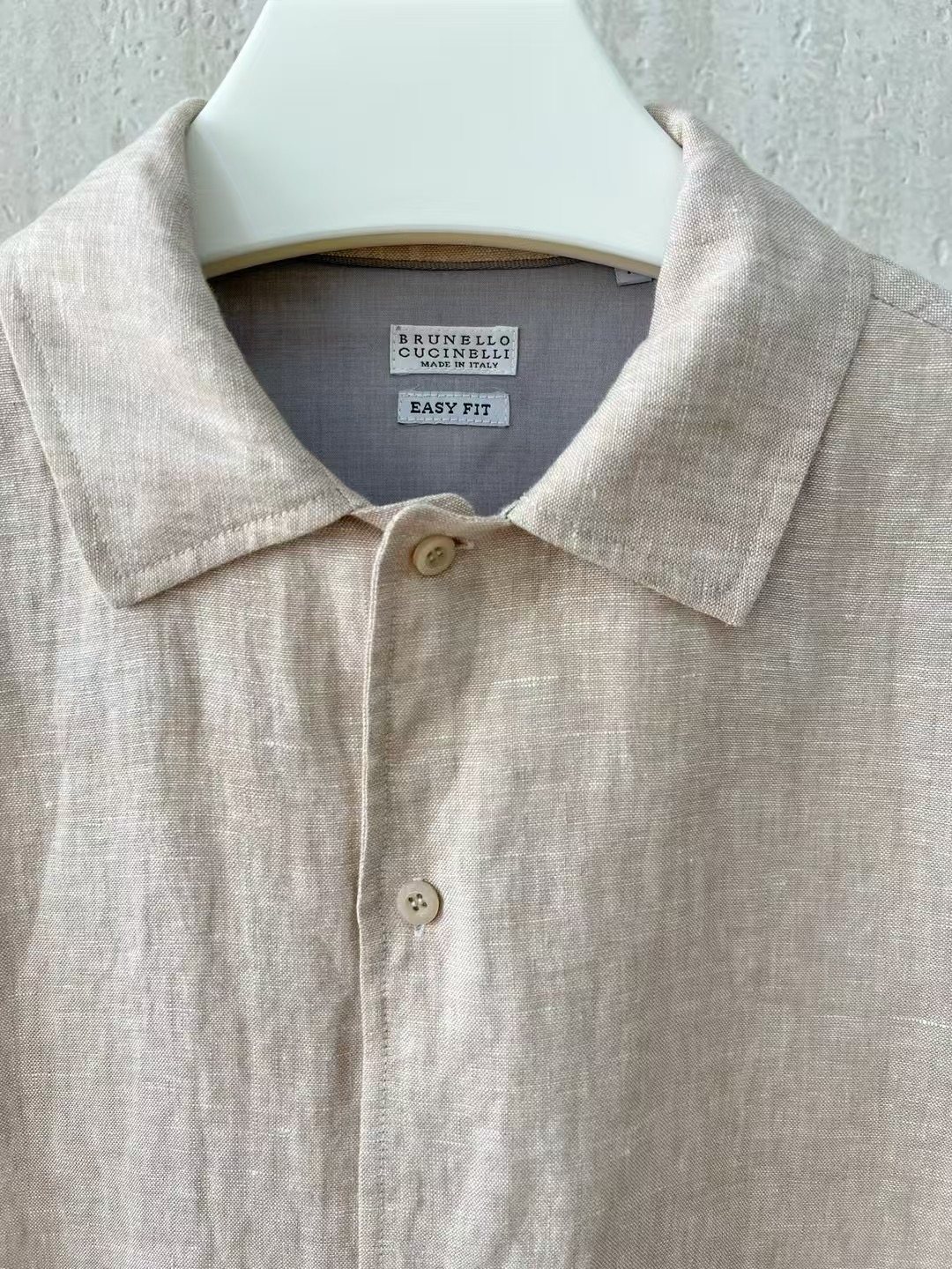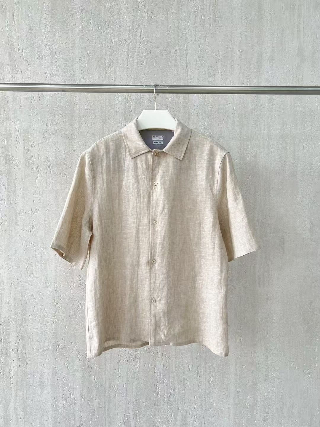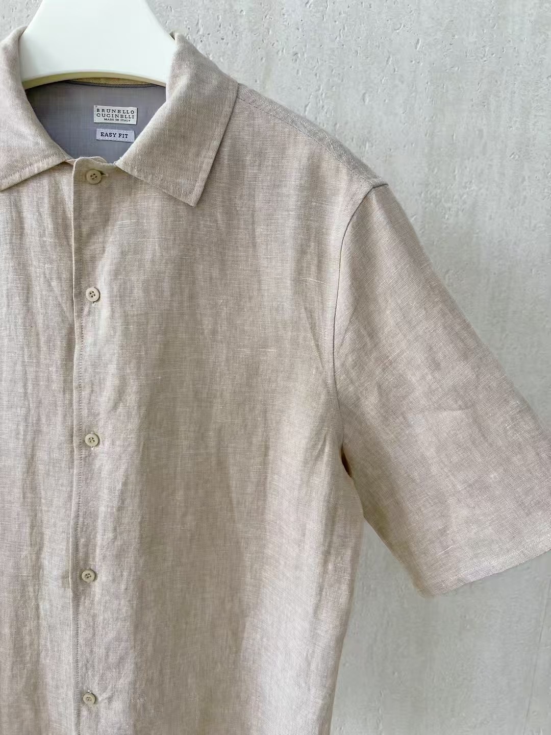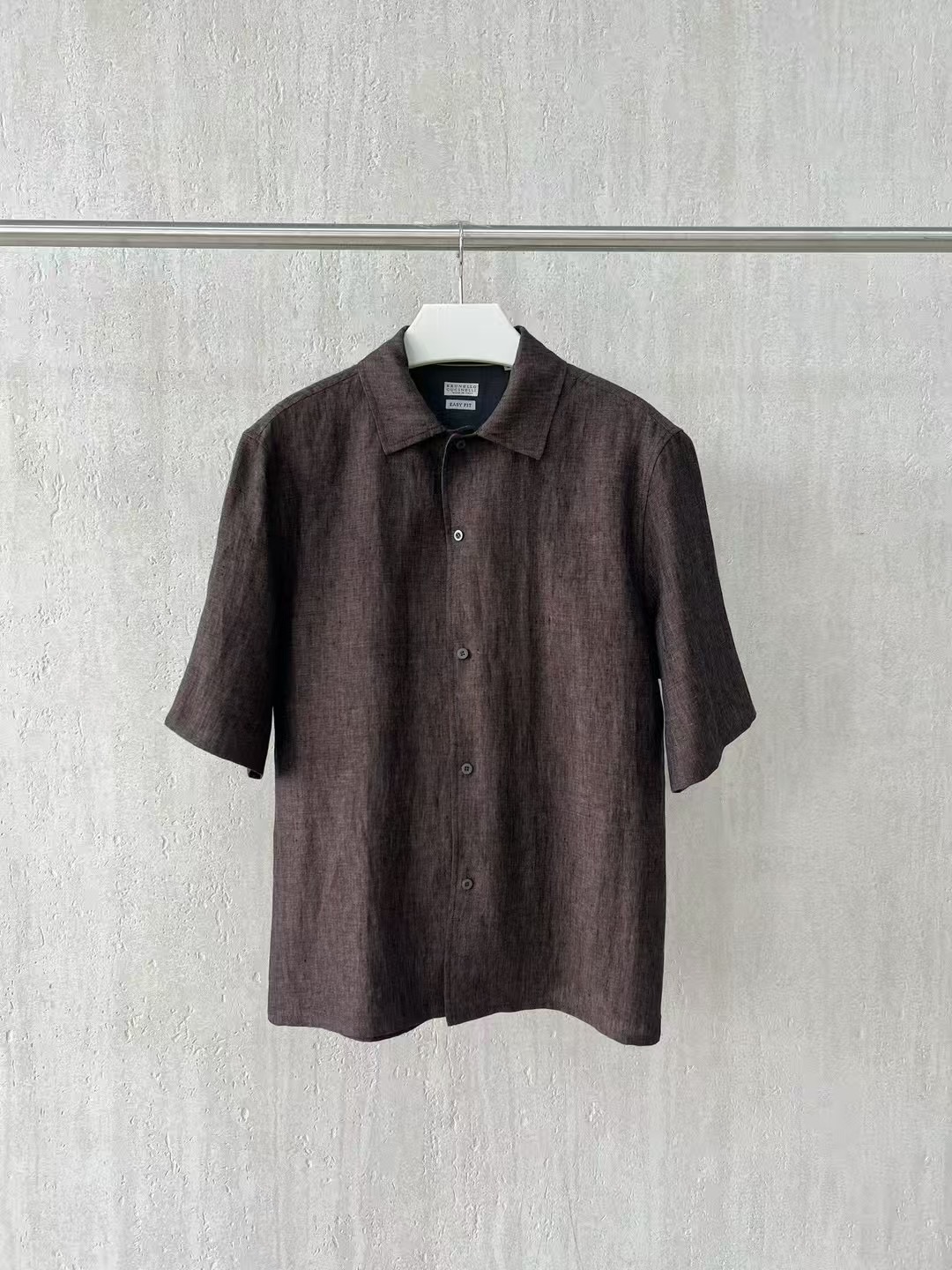 NIGO Brunello Cucinelli Men's Linen Loose Summer Single-Breasted Solid Color Lapel Short Sleeve Shirt Ngvp #nigo1454