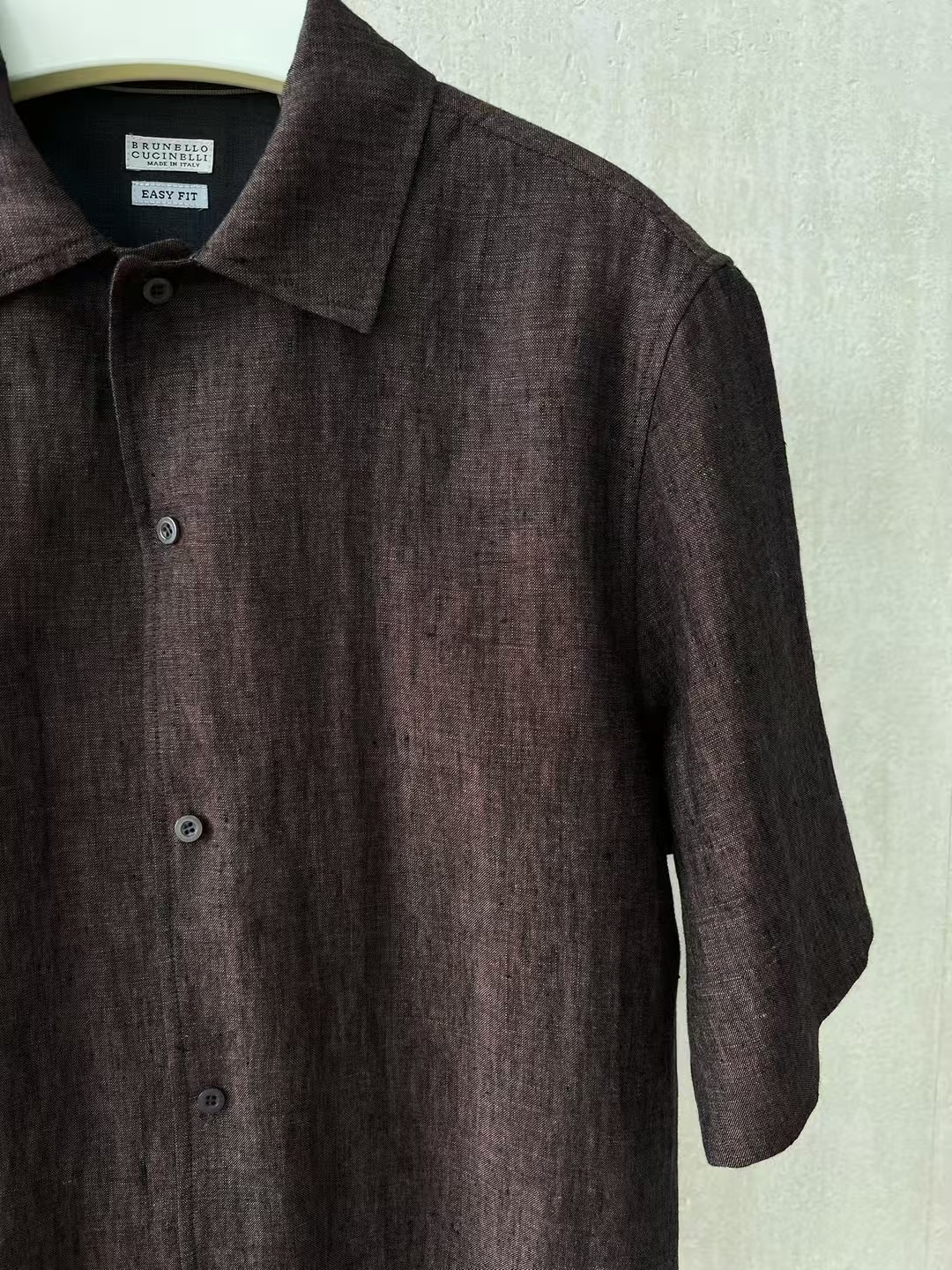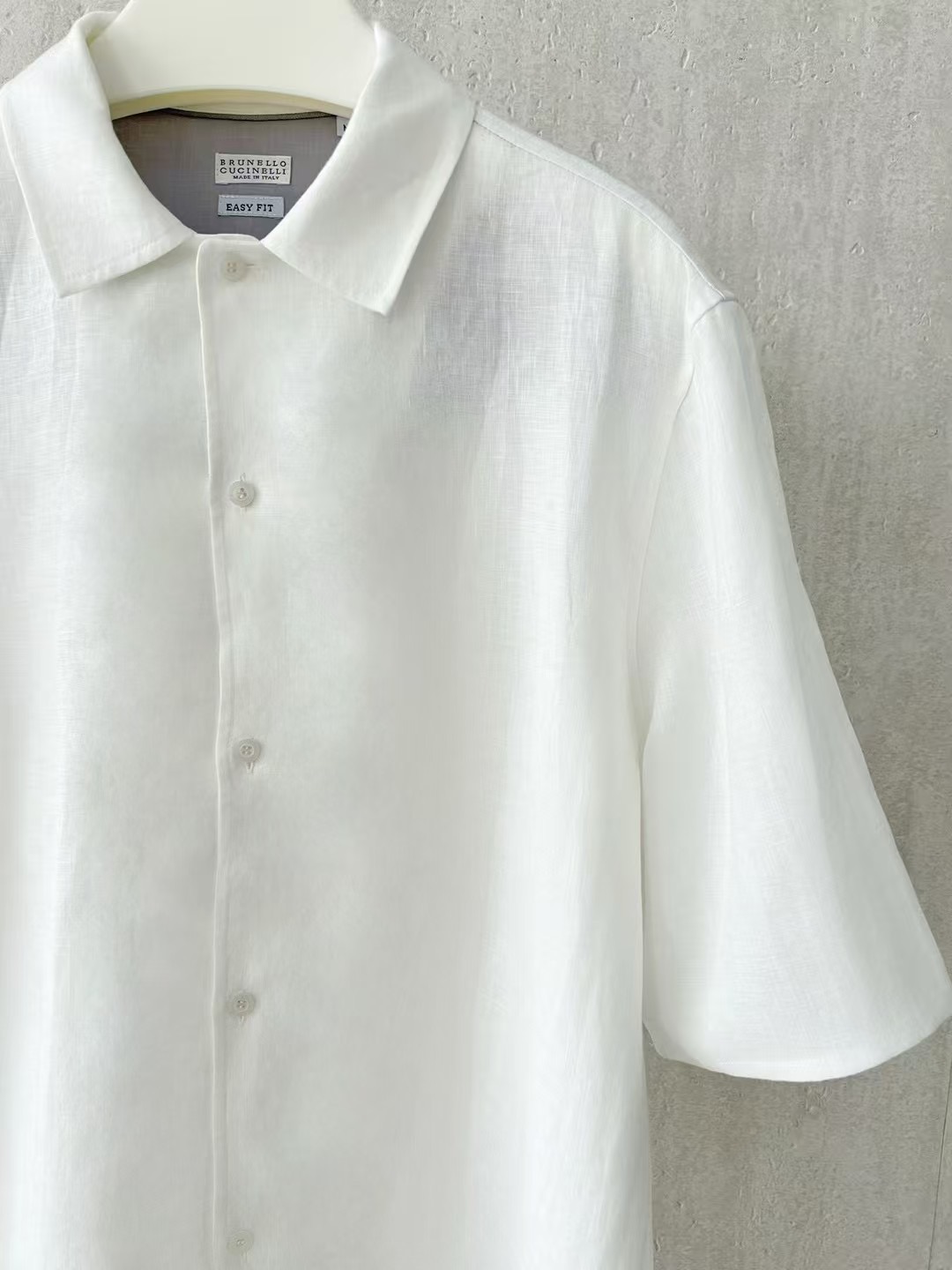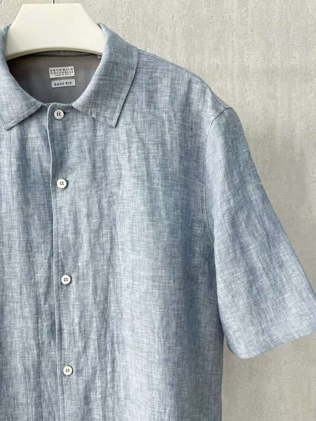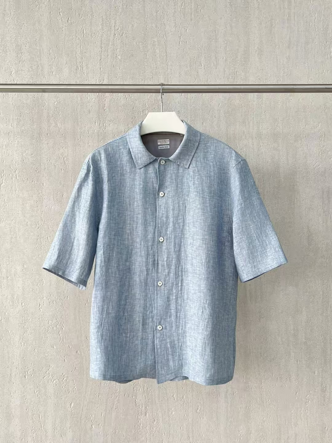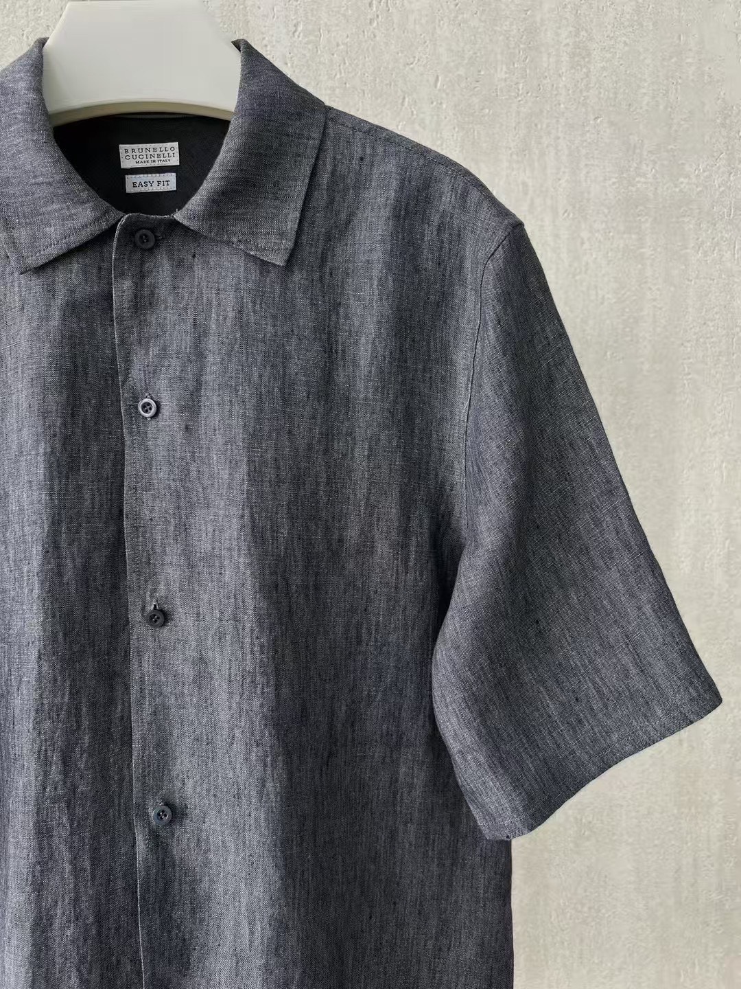 NIGO Brunello Cucinelli Men's Linen Loose Summer Single-Breasted Solid Color Lapel Short Sleeve Shirt Ngvp #nigo1454