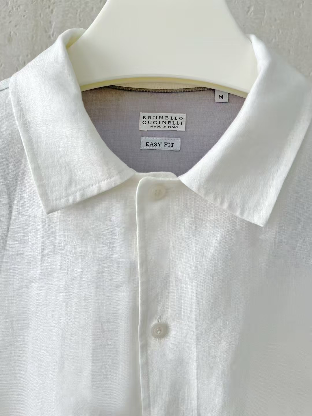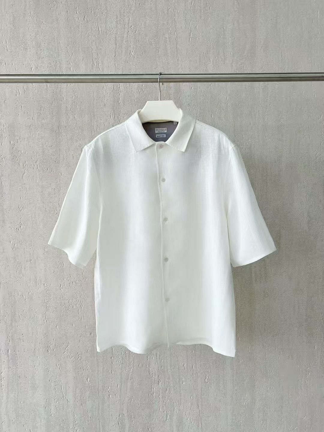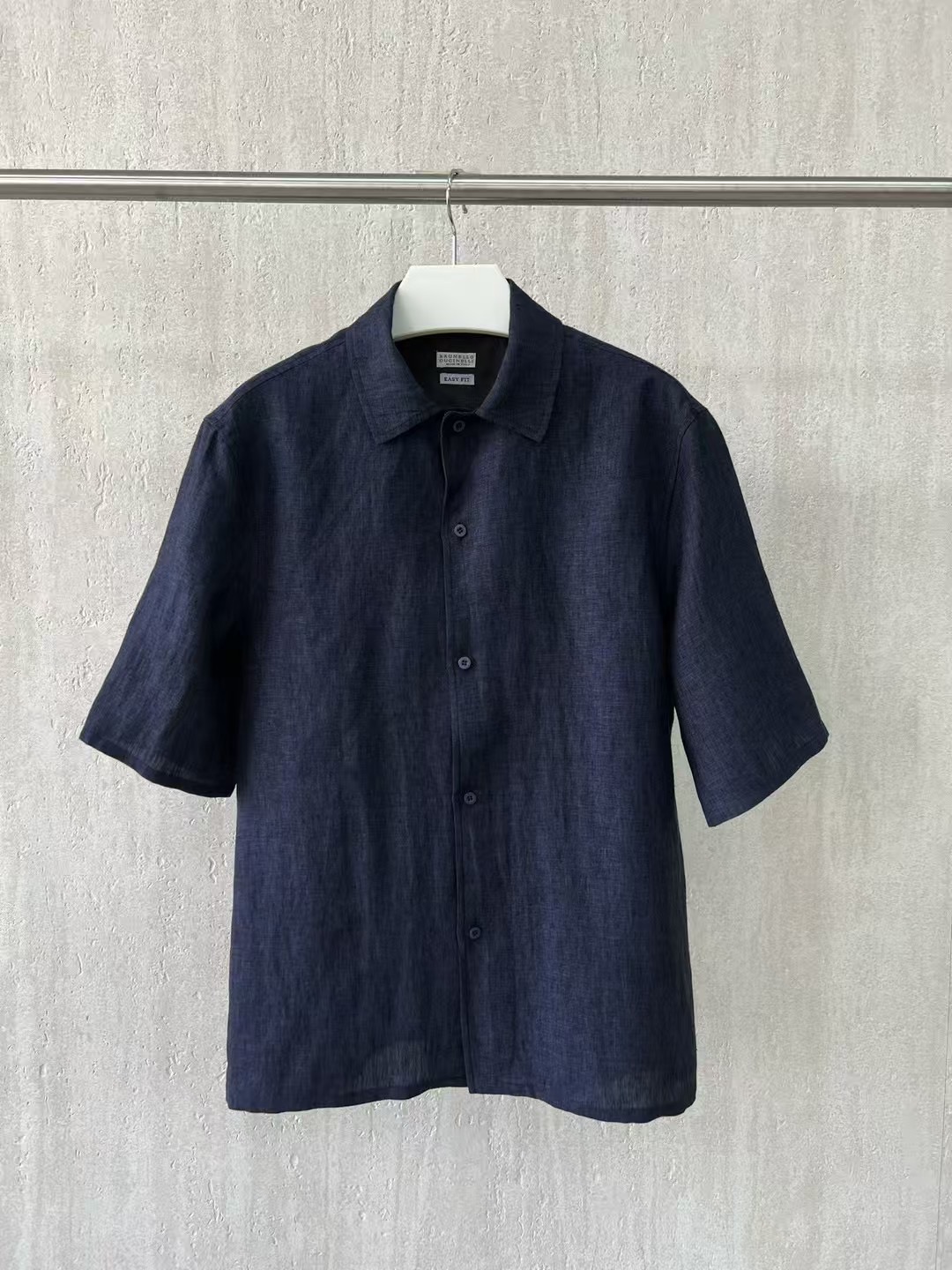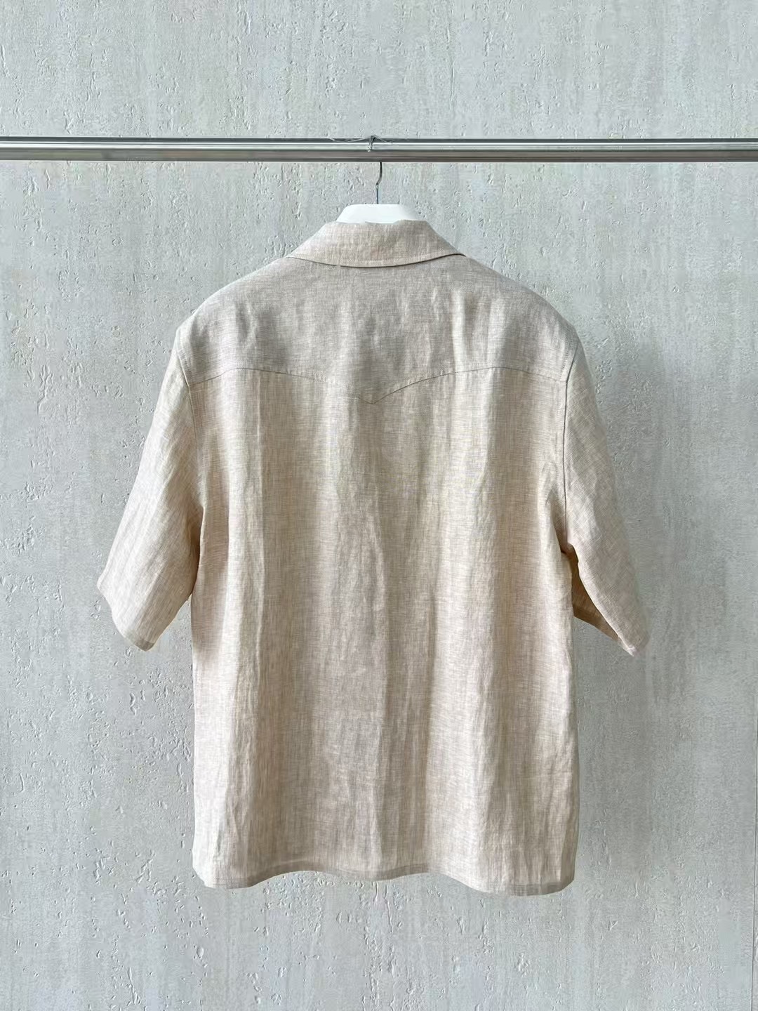 NIGO Brunello Cucinelli Men's Linen Loose Summer Single-Breasted Solid Color Lapel Short Sleeve Shirt Ngvp #nigo1454