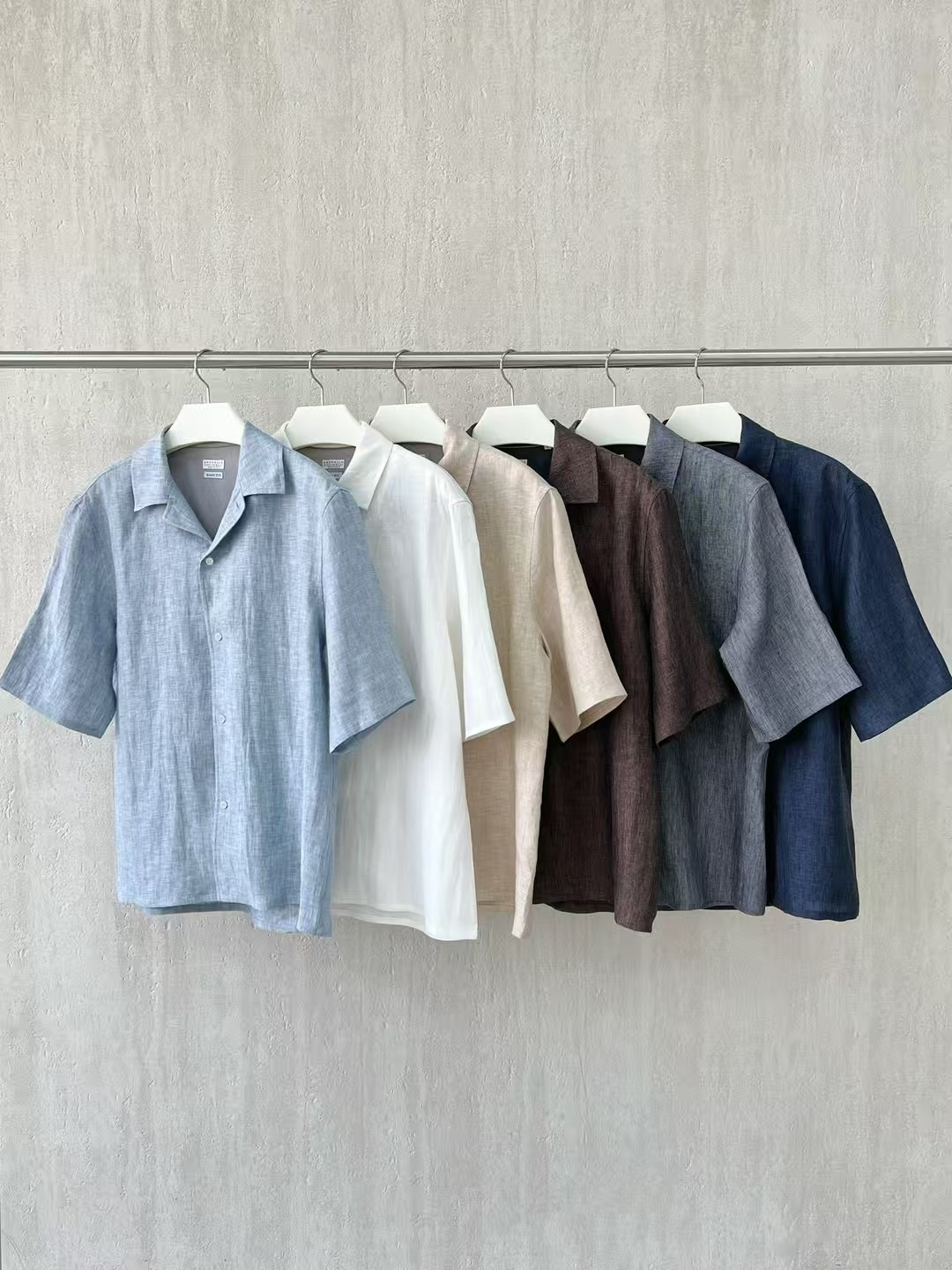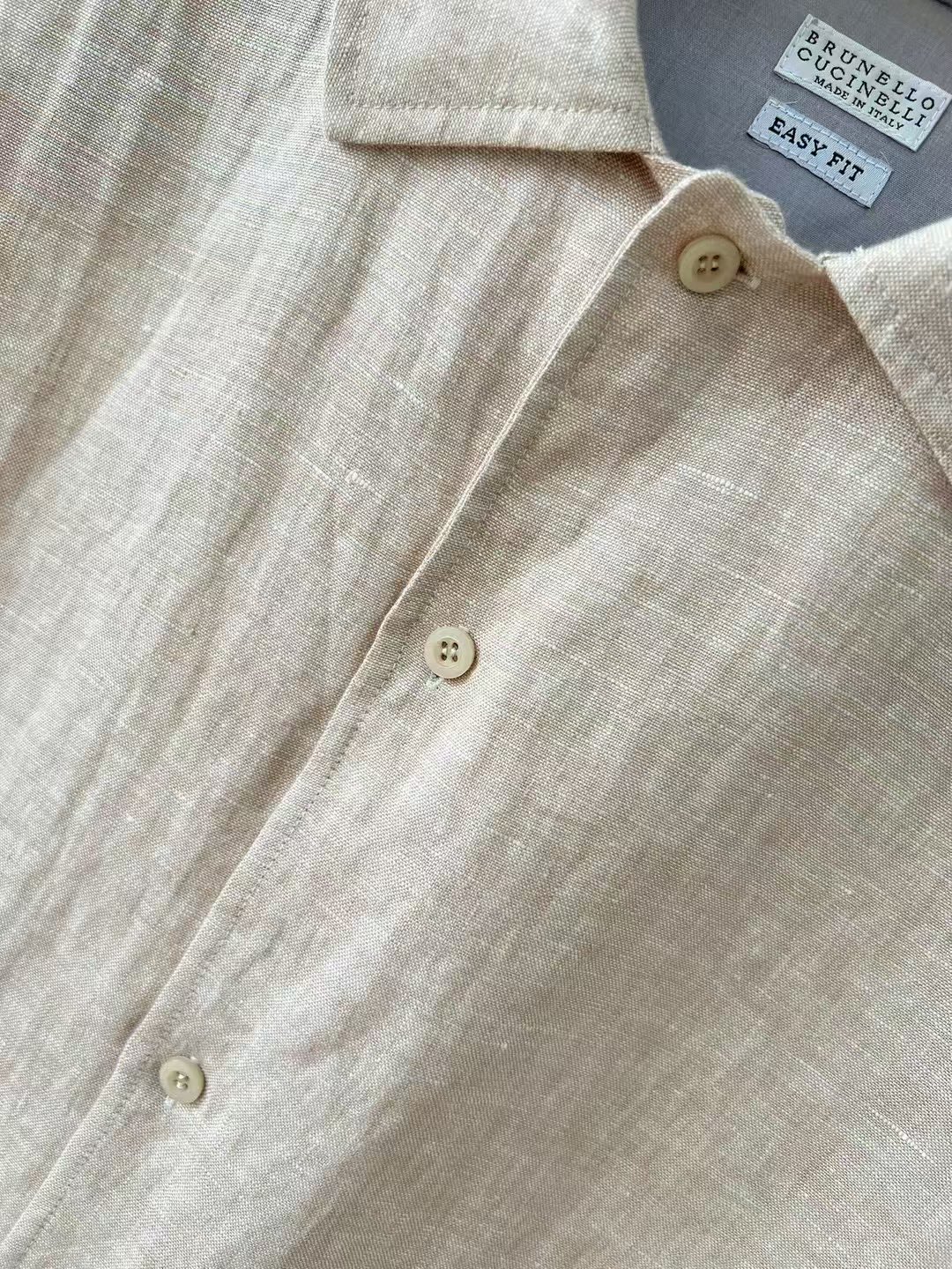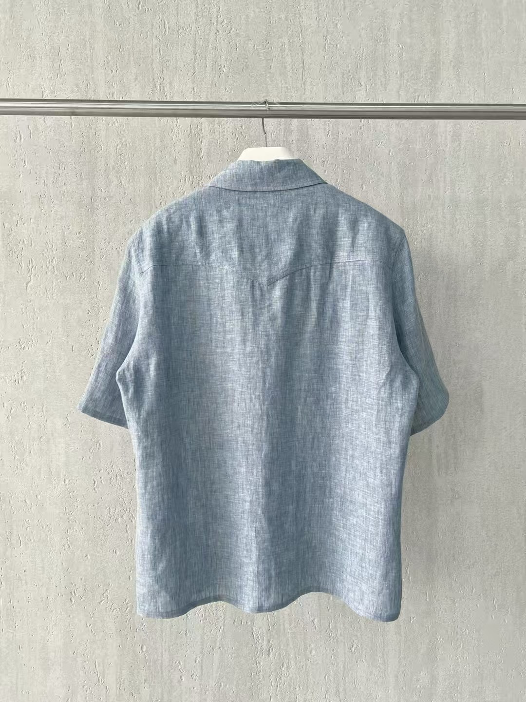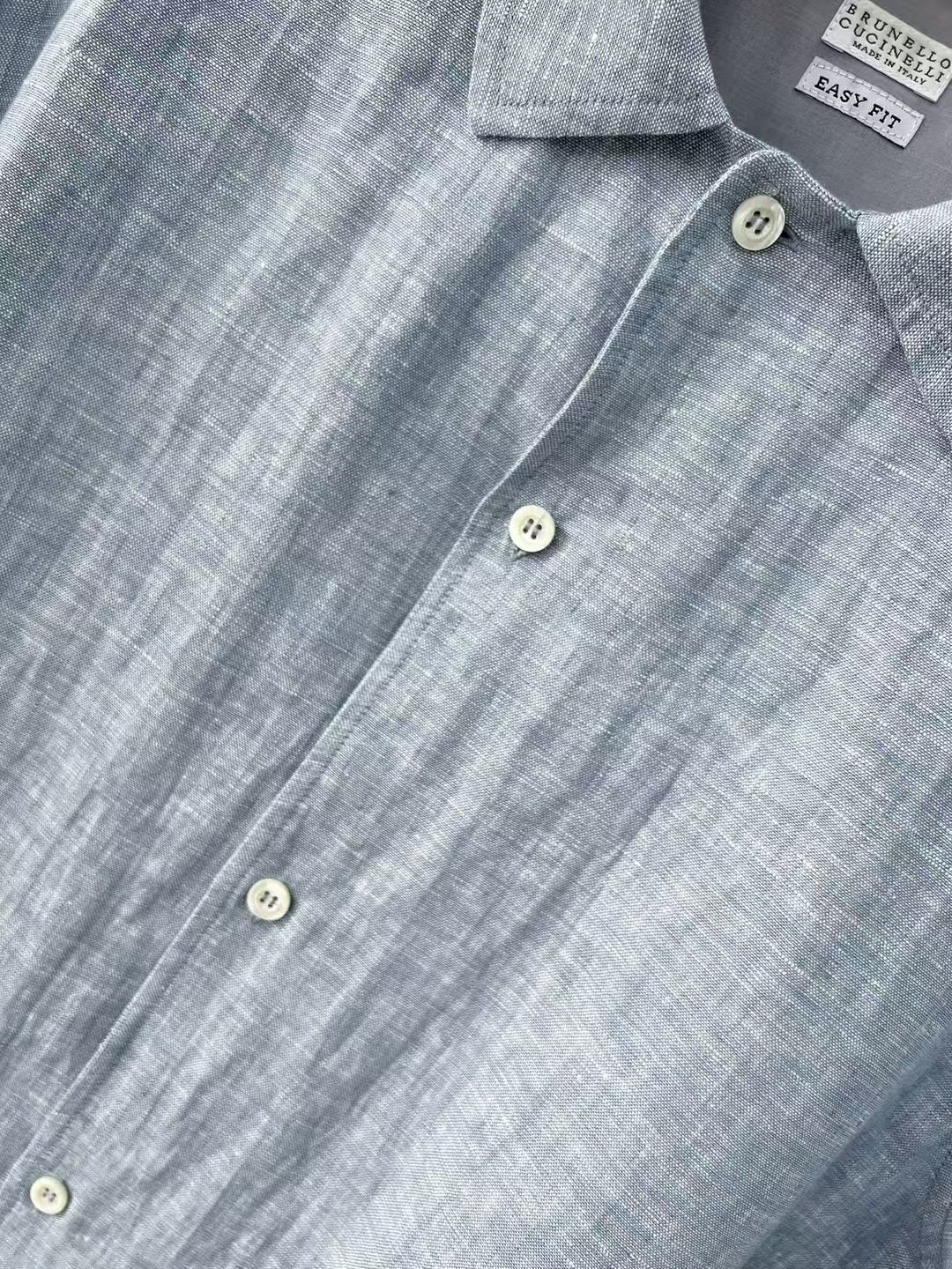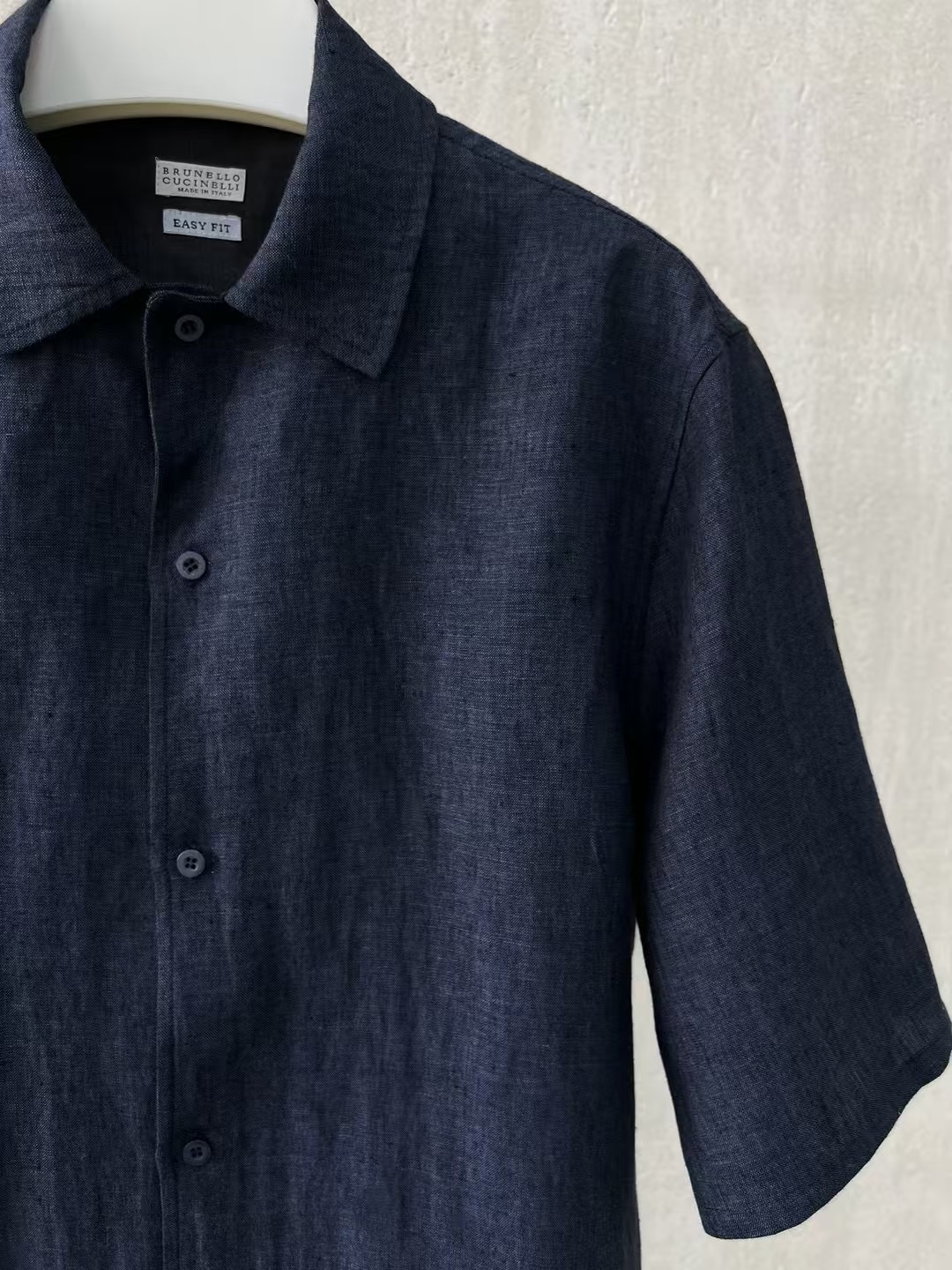 NIGO Brunello Cucinelli Men's Linen Loose Summer Single-Breasted Solid Color Lapel Short Sleeve Shirt Ngvp #nigo1454