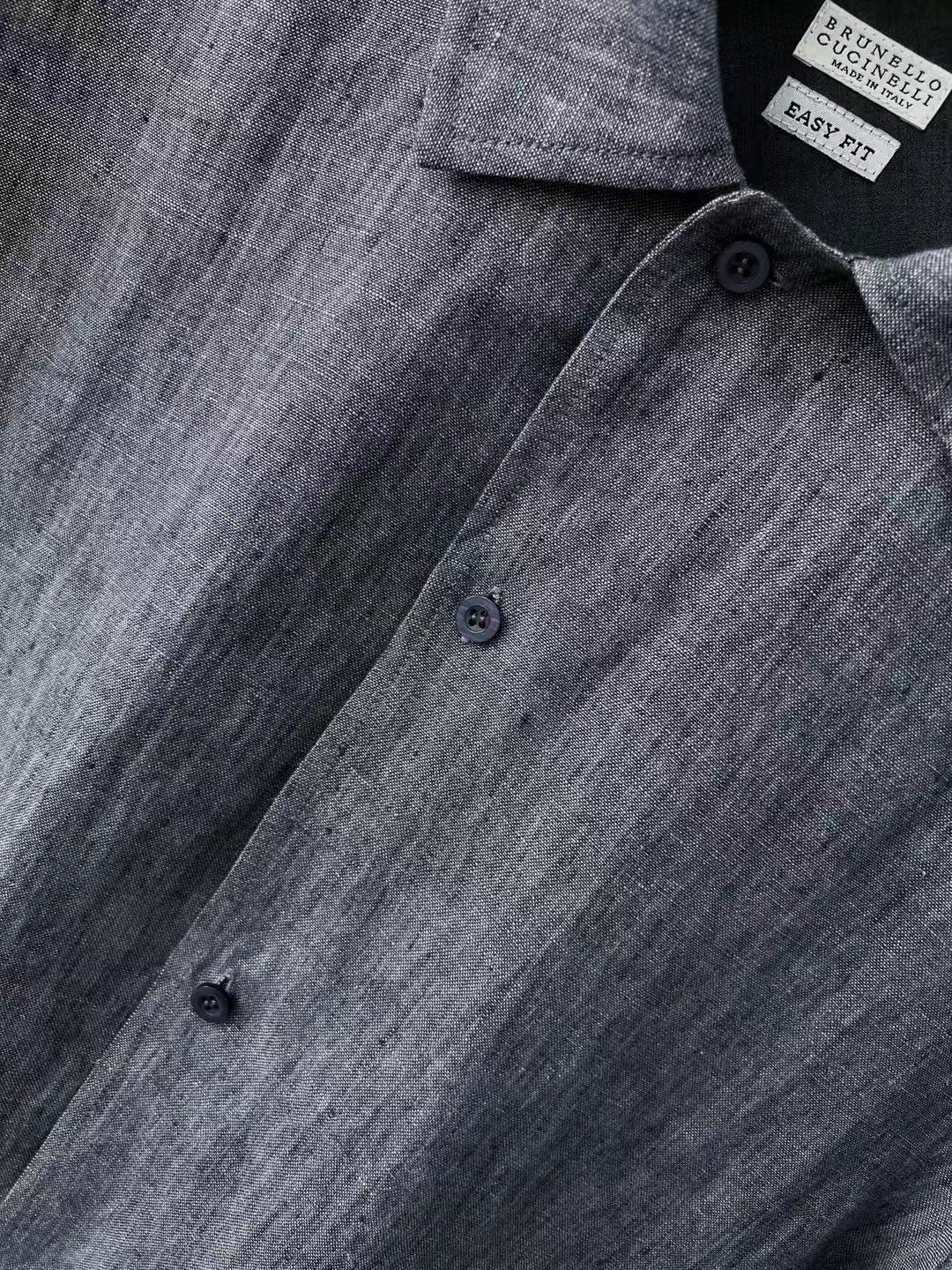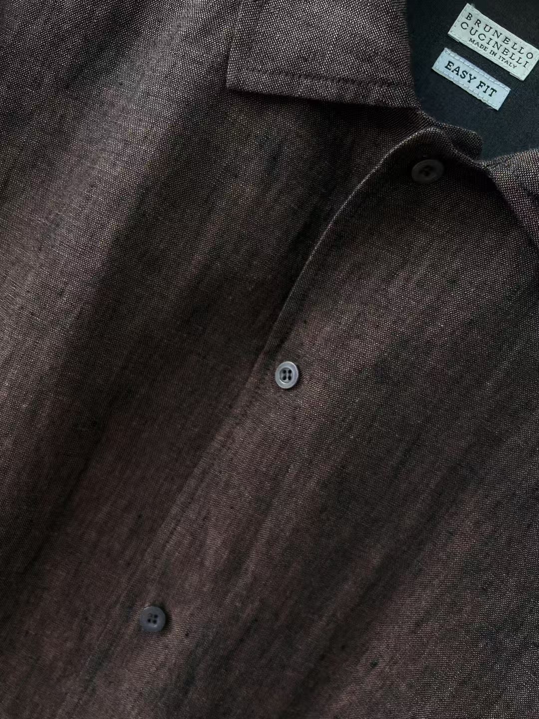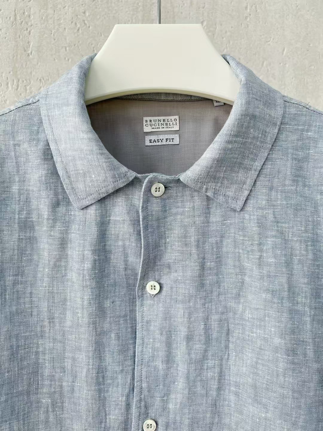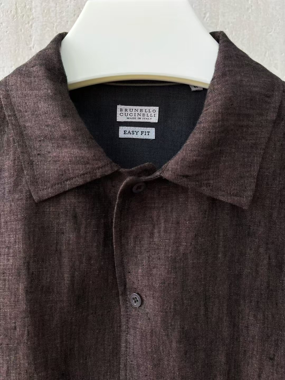 NIGO Brunello Cucinelli Men's Linen Loose Summer Single-Breasted Solid Color Lapel Short Sleeve Shirt Ngvp #nigo1454