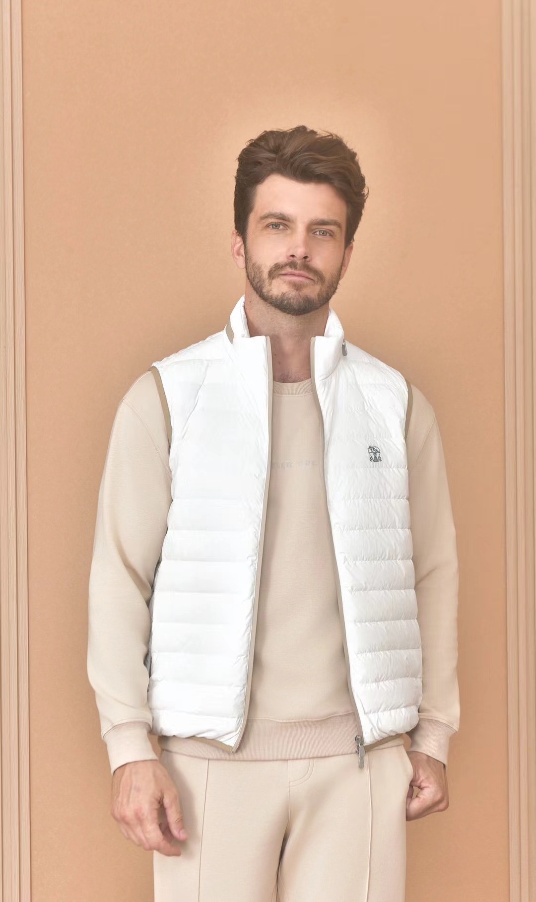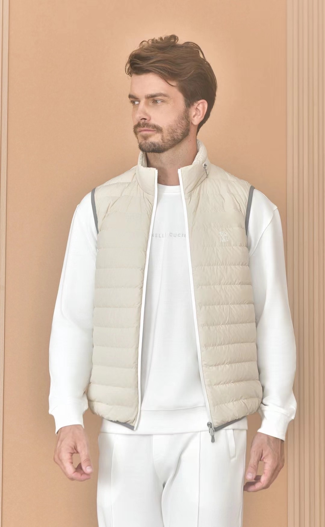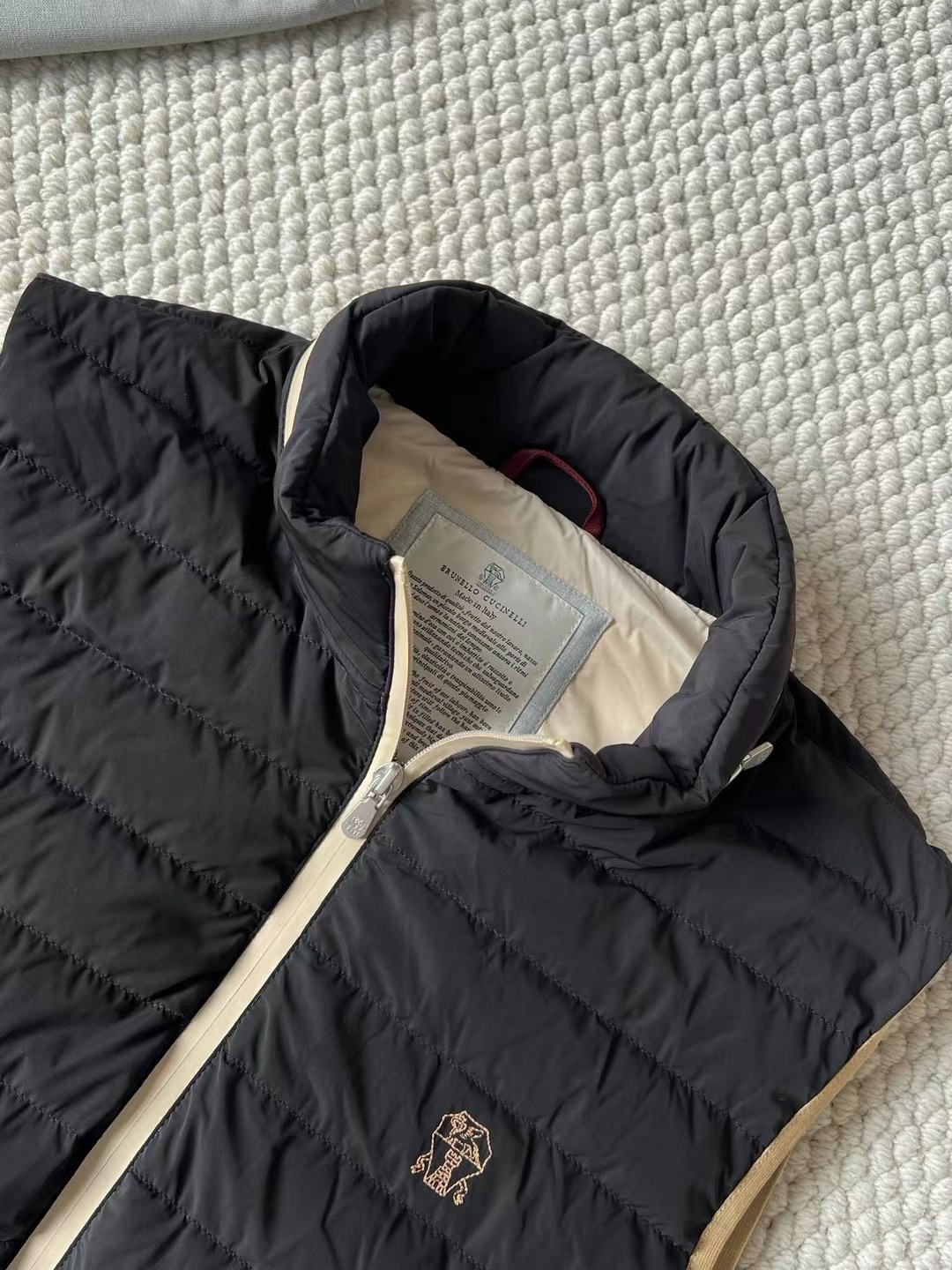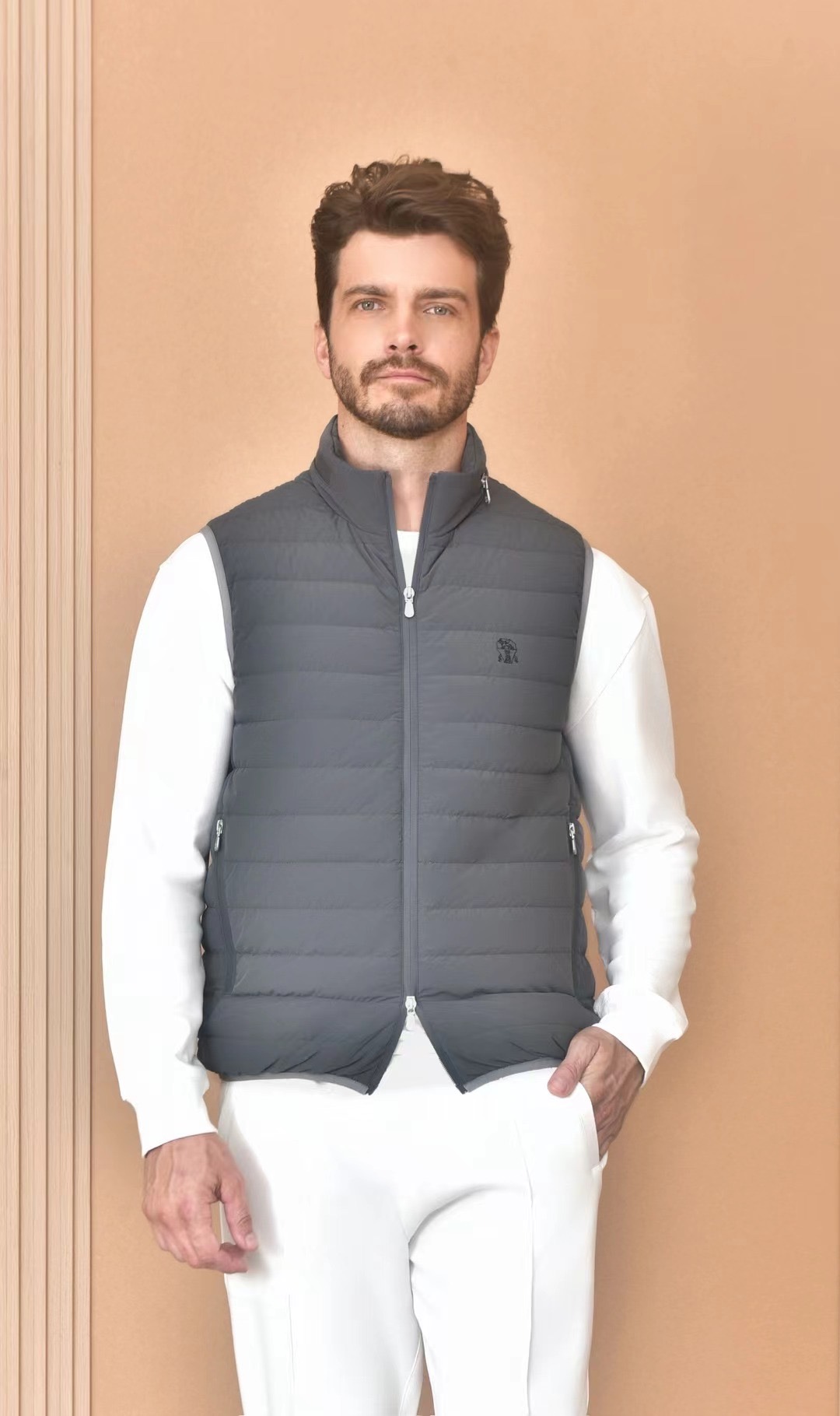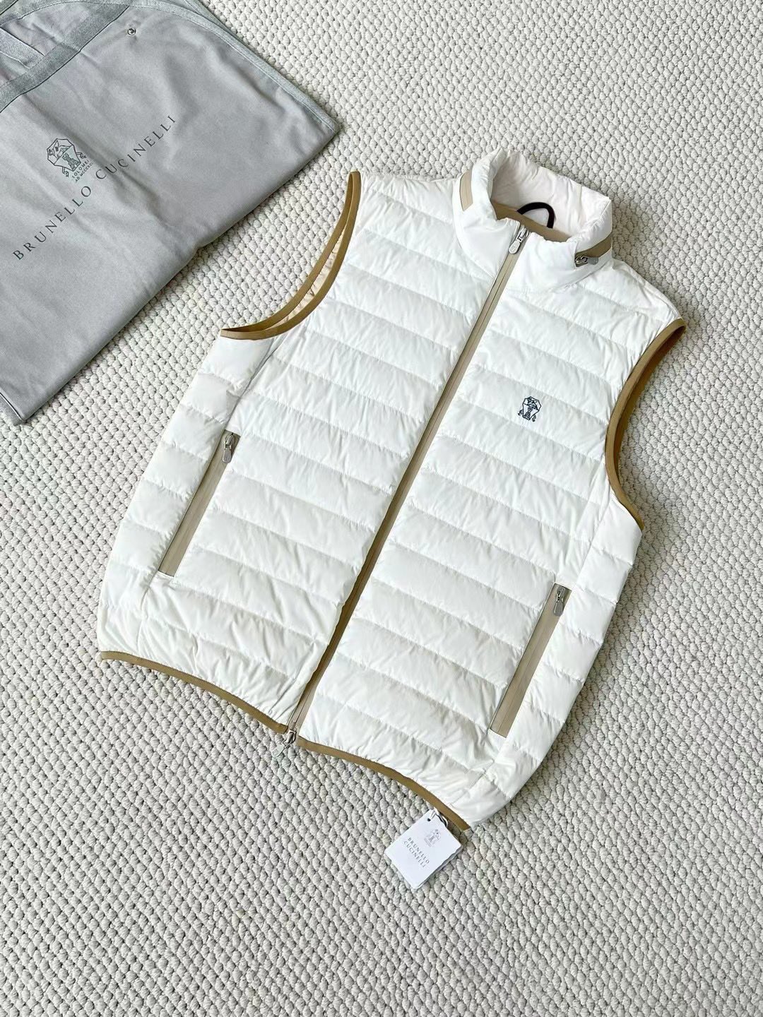 NIGO Brunello Cucinelli Men's Logo Embroidered High Neck Zipper Solid Color Fitted Straight Sleeveless Down Vest Ngvp #nigo9665