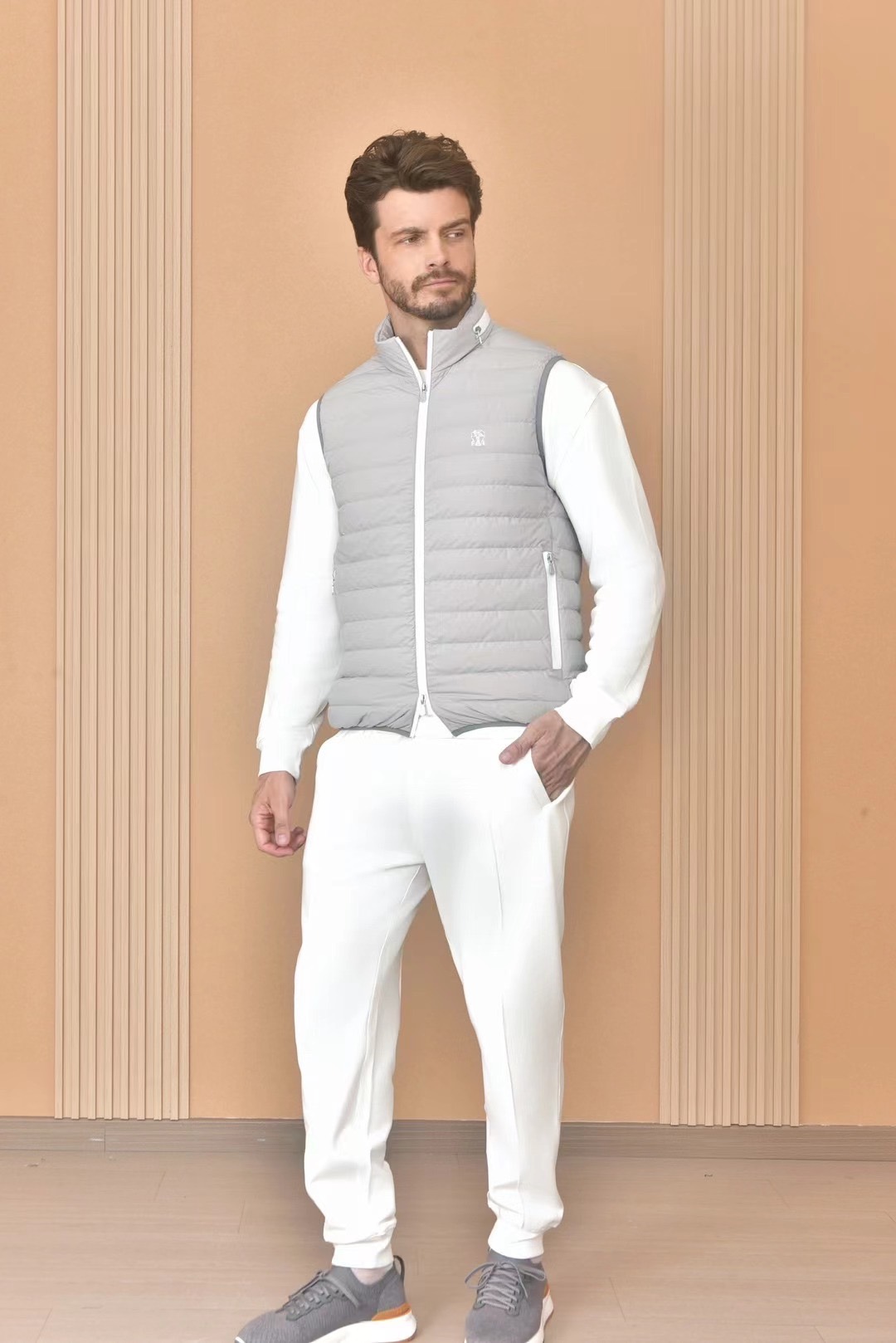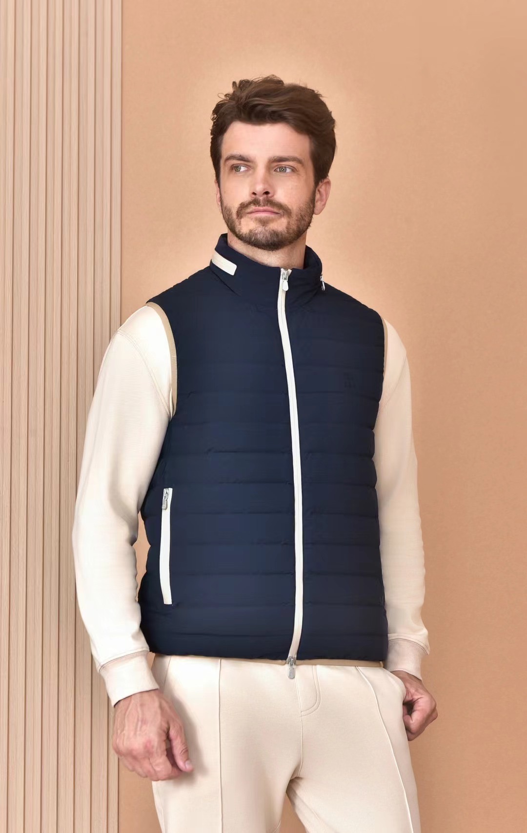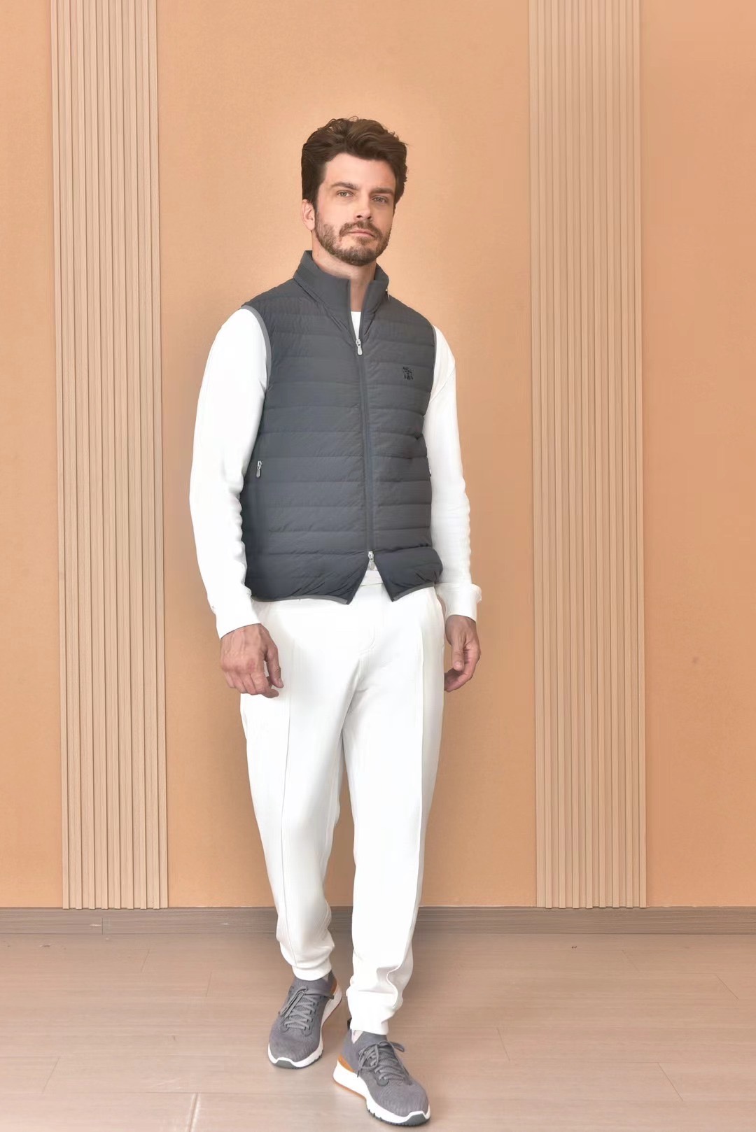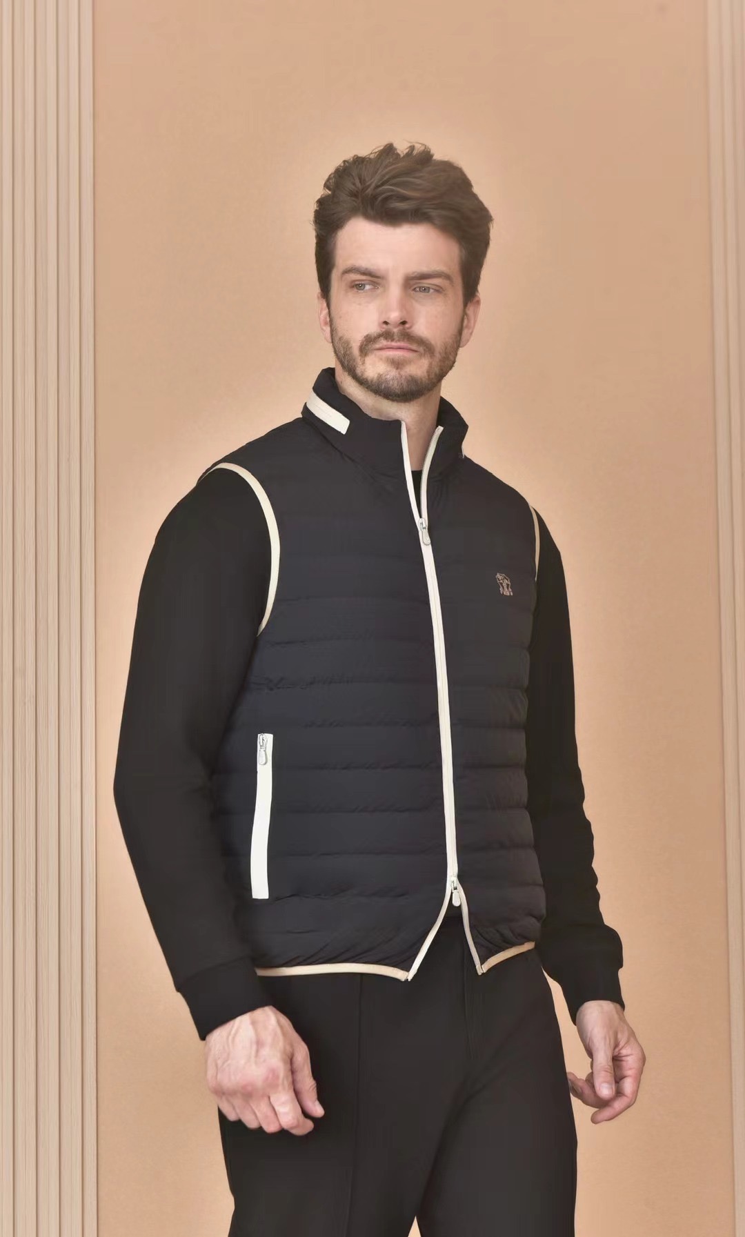 NIGO Brunello Cucinelli Men's Logo Embroidered High Neck Zipper Solid Color Fitted Straight Sleeveless Down Vest Ngvp #nigo9665