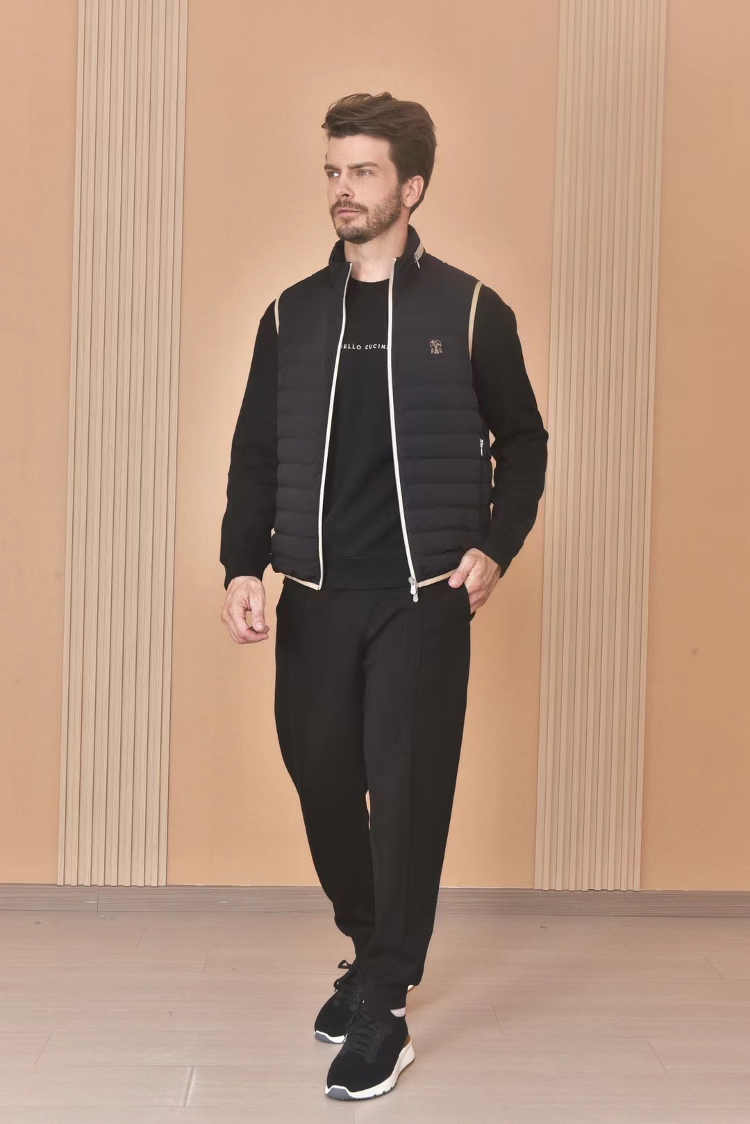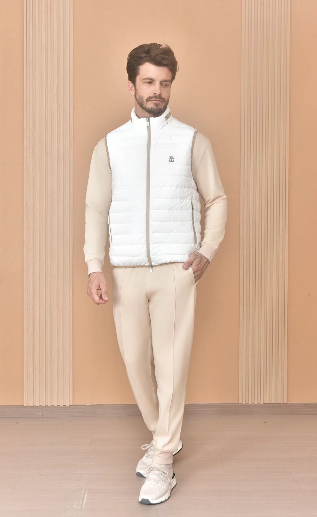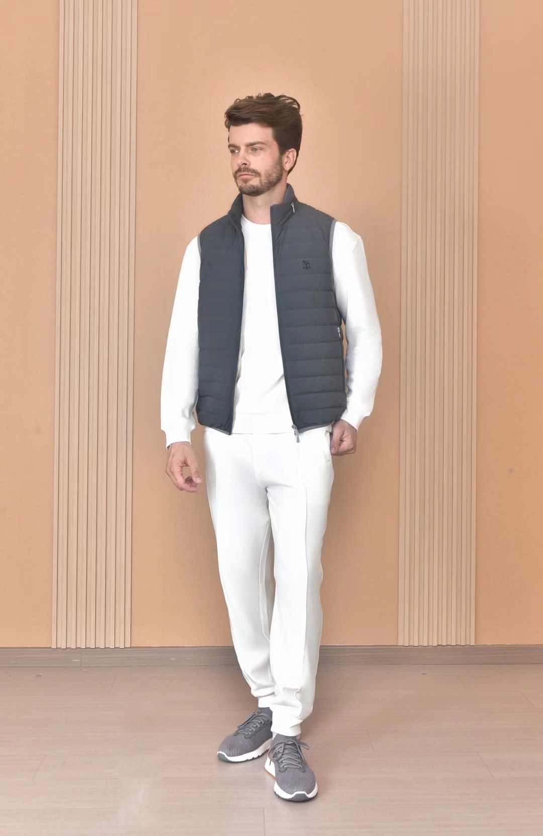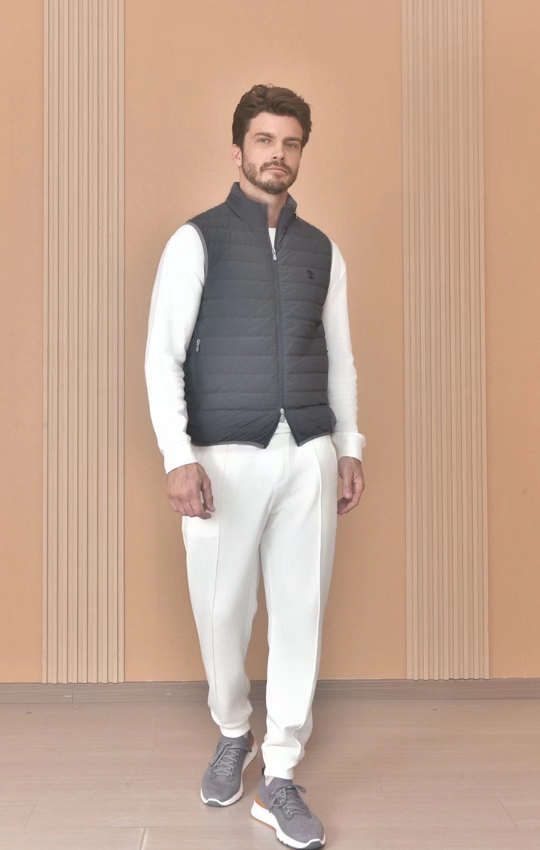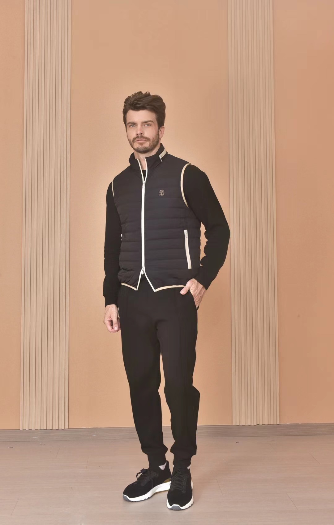 NIGO Brunello Cucinelli Men's Logo Embroidered High Neck Zipper Solid Color Fitted Straight Sleeveless Down Vest Ngvp #nigo9665