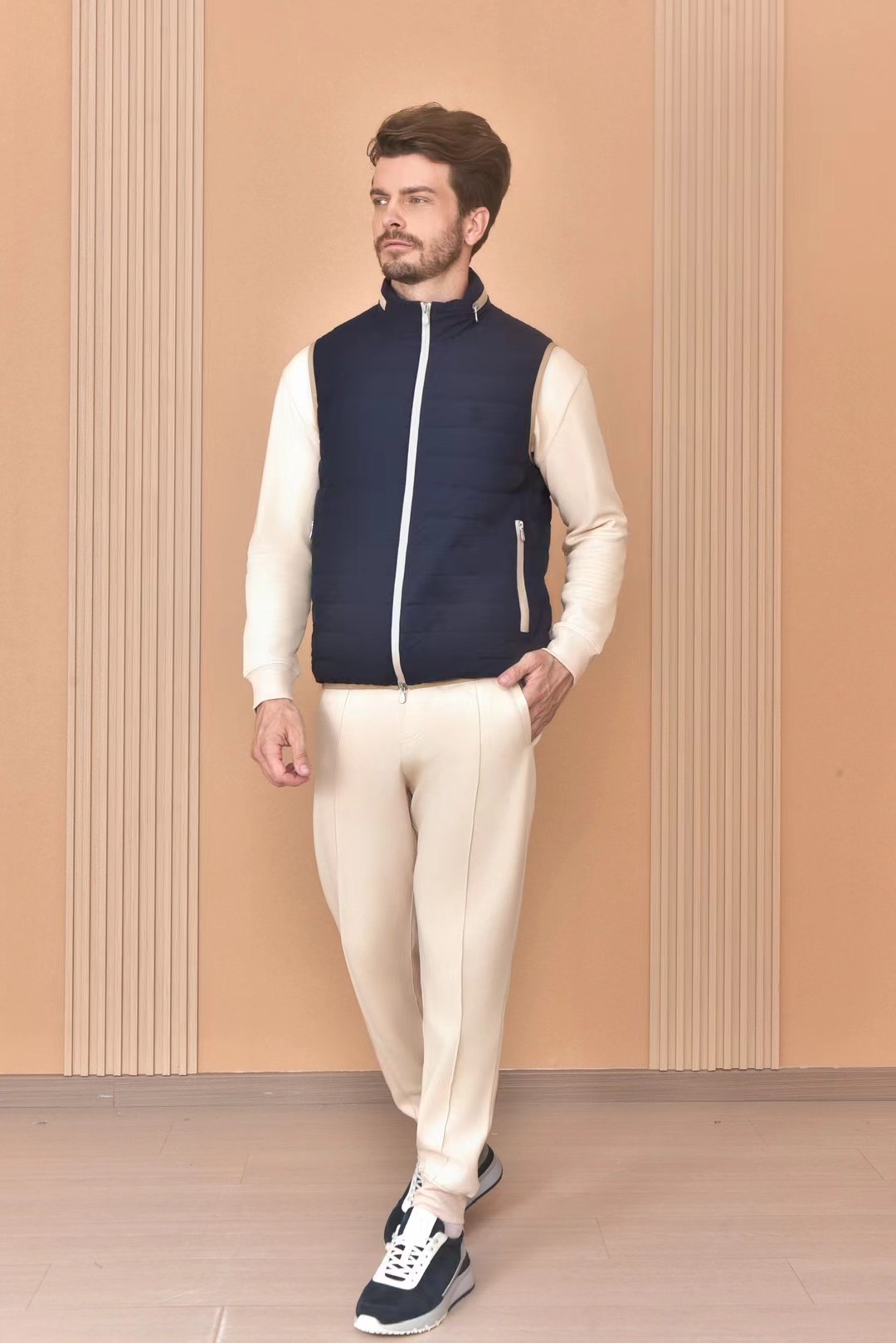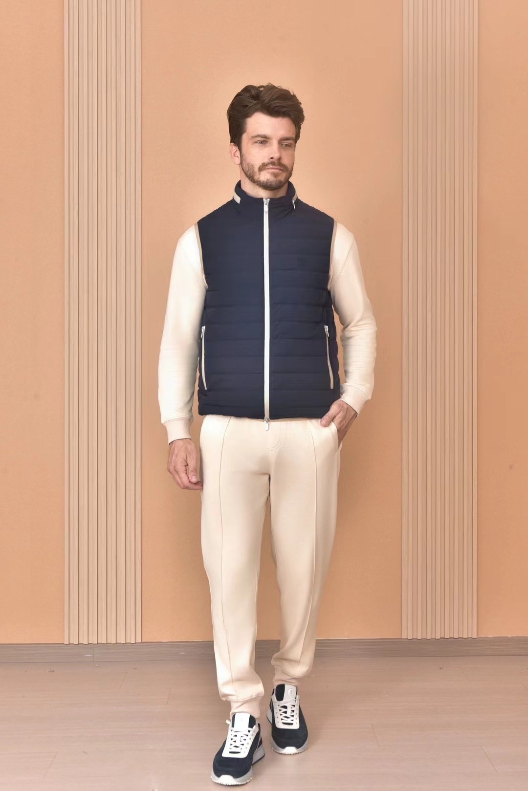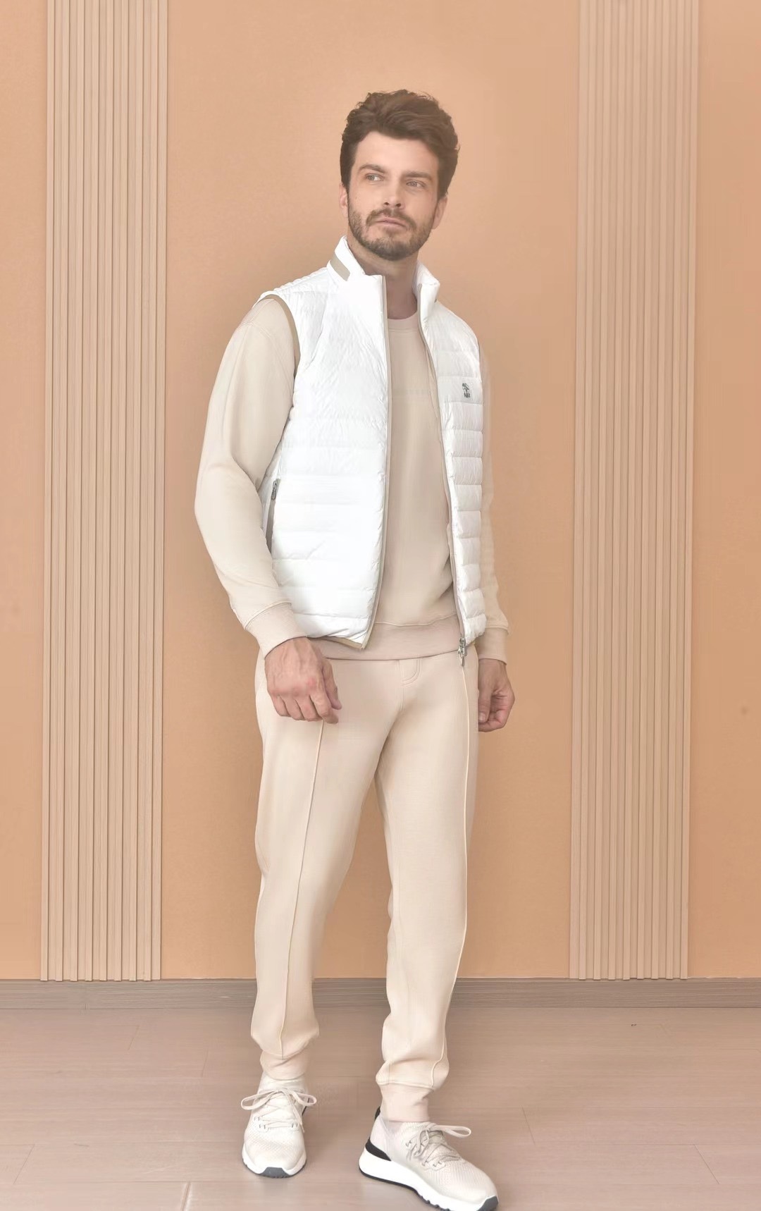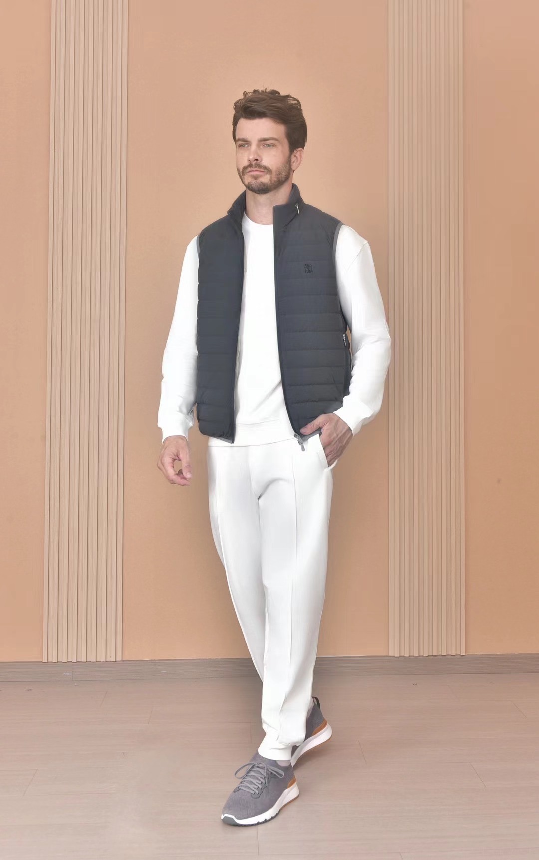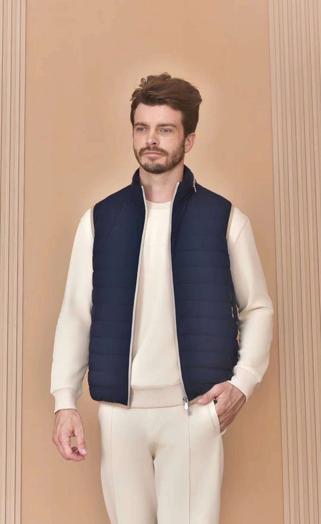 NIGO Brunello Cucinelli Men's Logo Embroidered High Neck Zipper Solid Color Fitted Straight Sleeveless Down Vest Ngvp #nigo9665