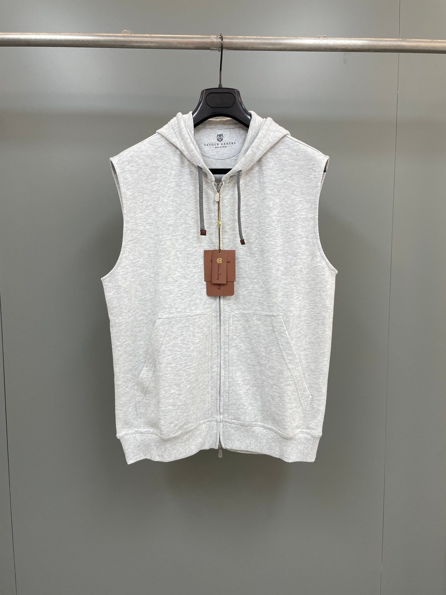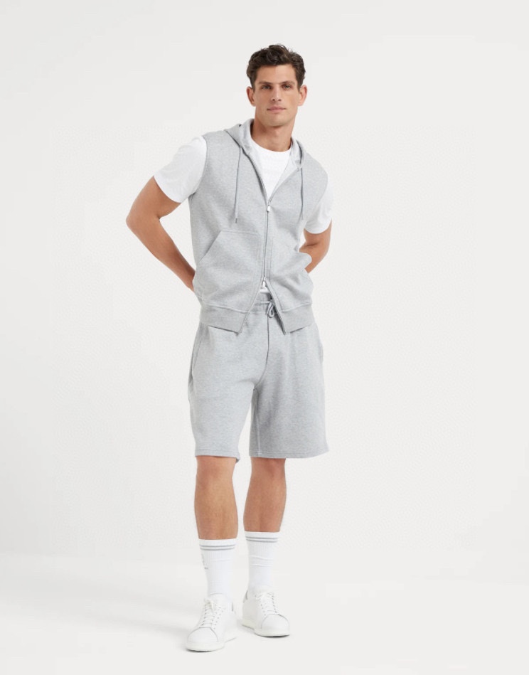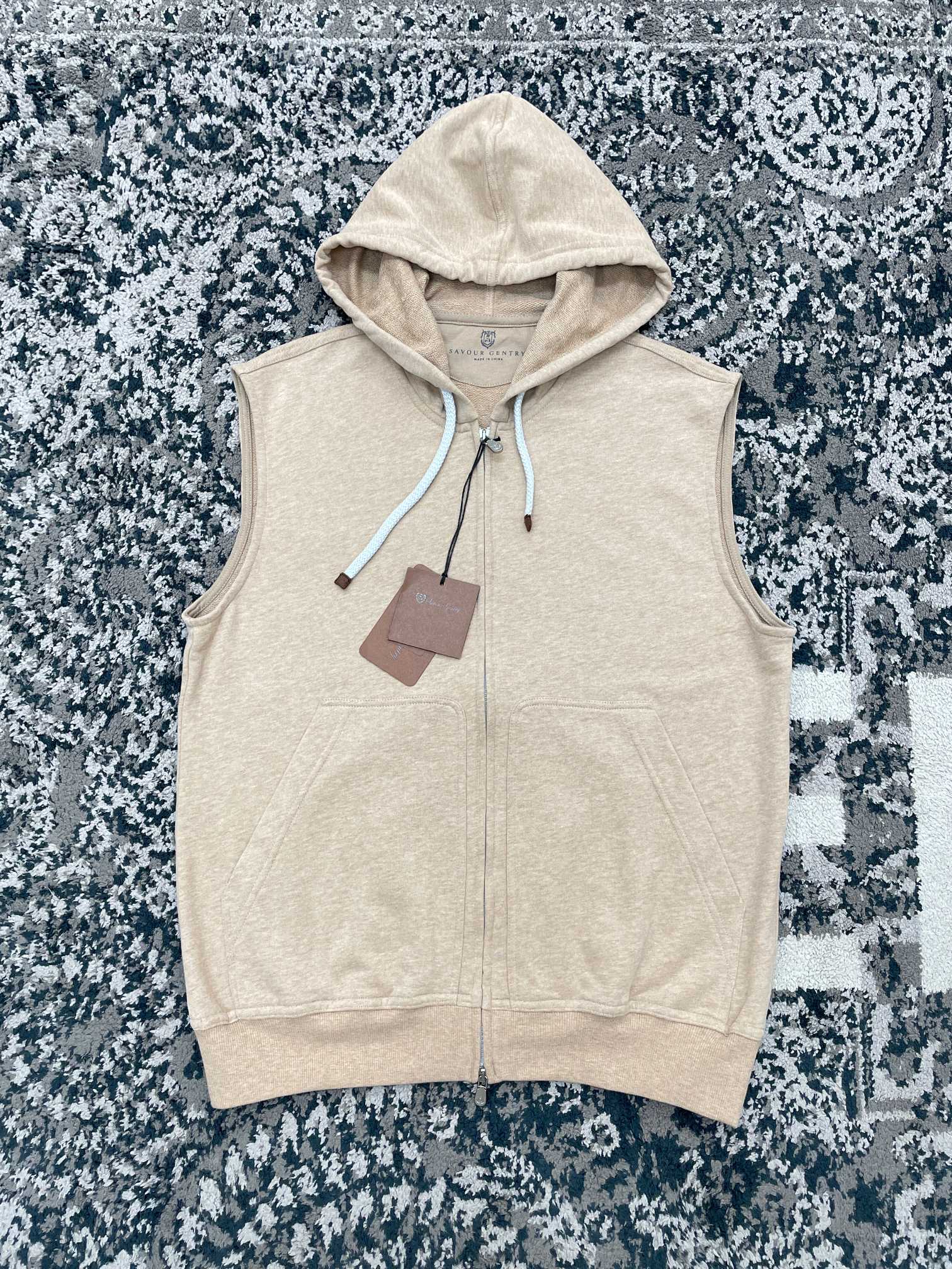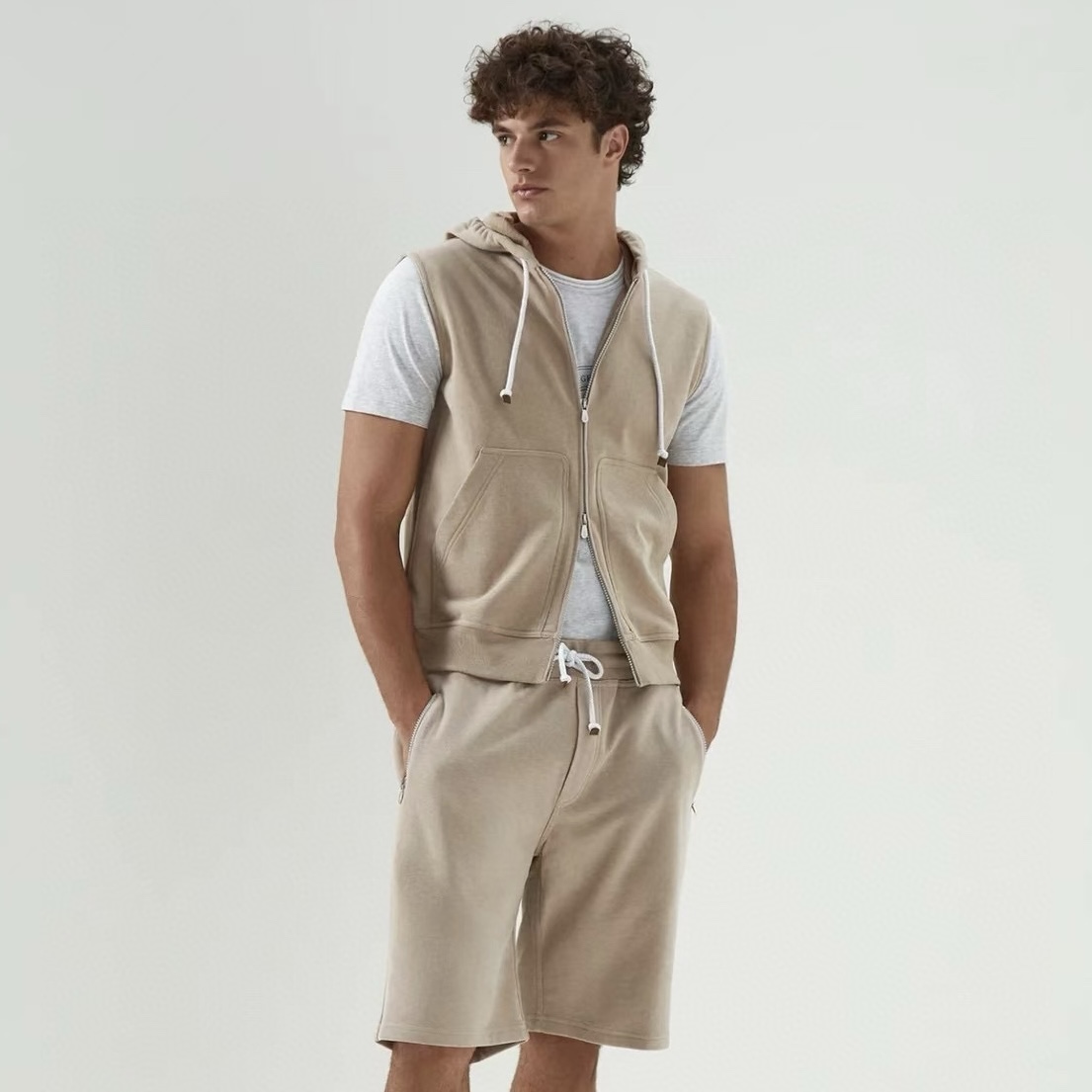 NIGO Brunello Cucinelli Men's Spring And Autumn Solid Color Zipper Drawstring Cotton Hooded Vest Casual Tie Shorts Ngvp #nigo9218