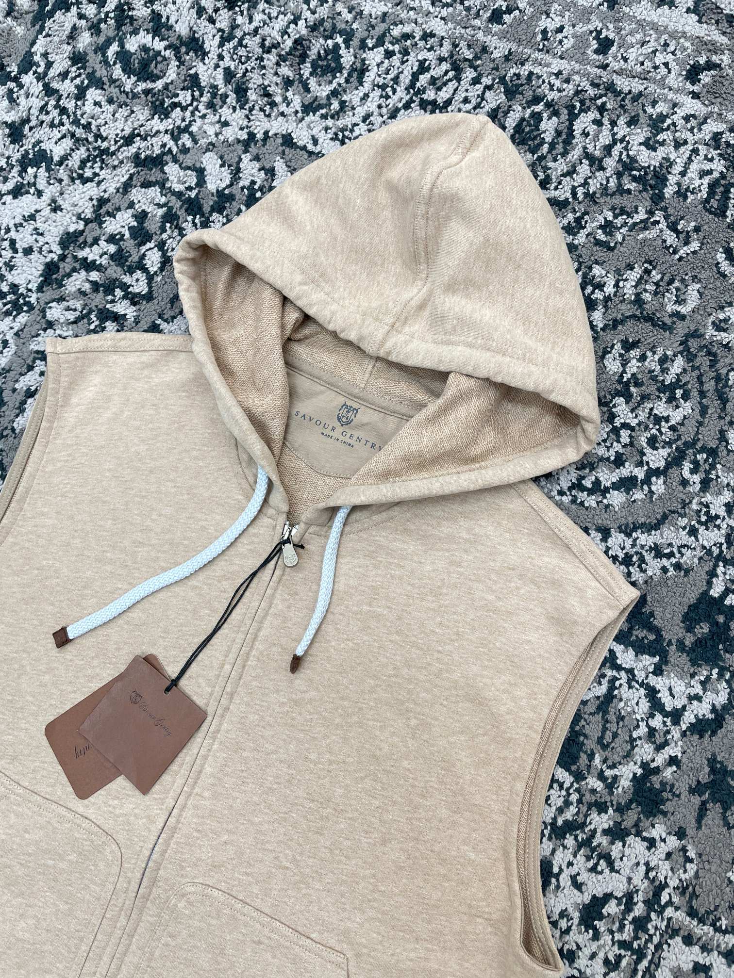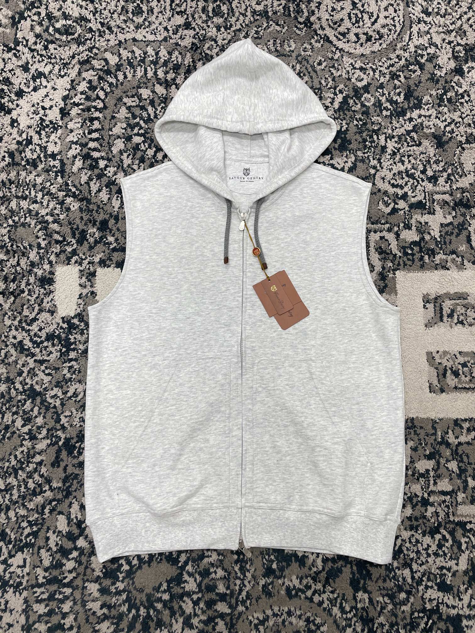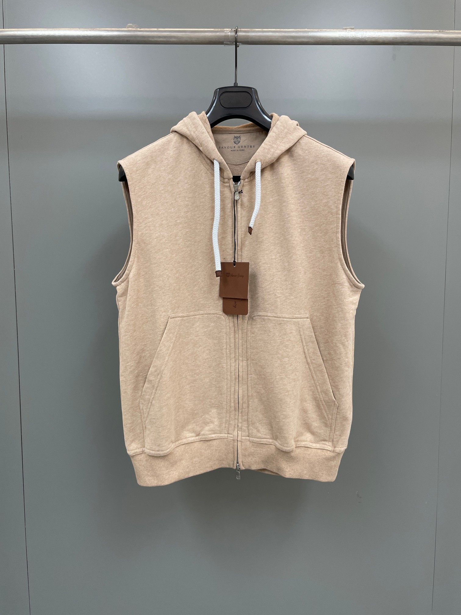 NIGO Brunello Cucinelli Men's Spring And Autumn Solid Color Zipper Drawstring Cotton Hooded Vest Casual Tie Shorts Ngvp #nigo9218