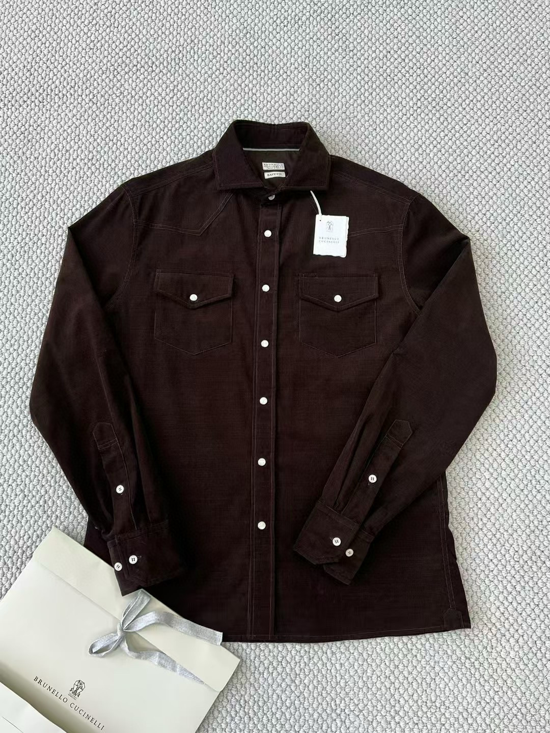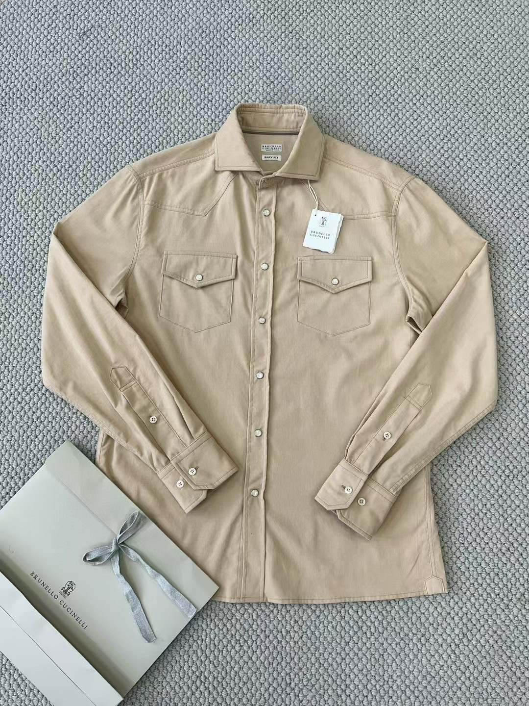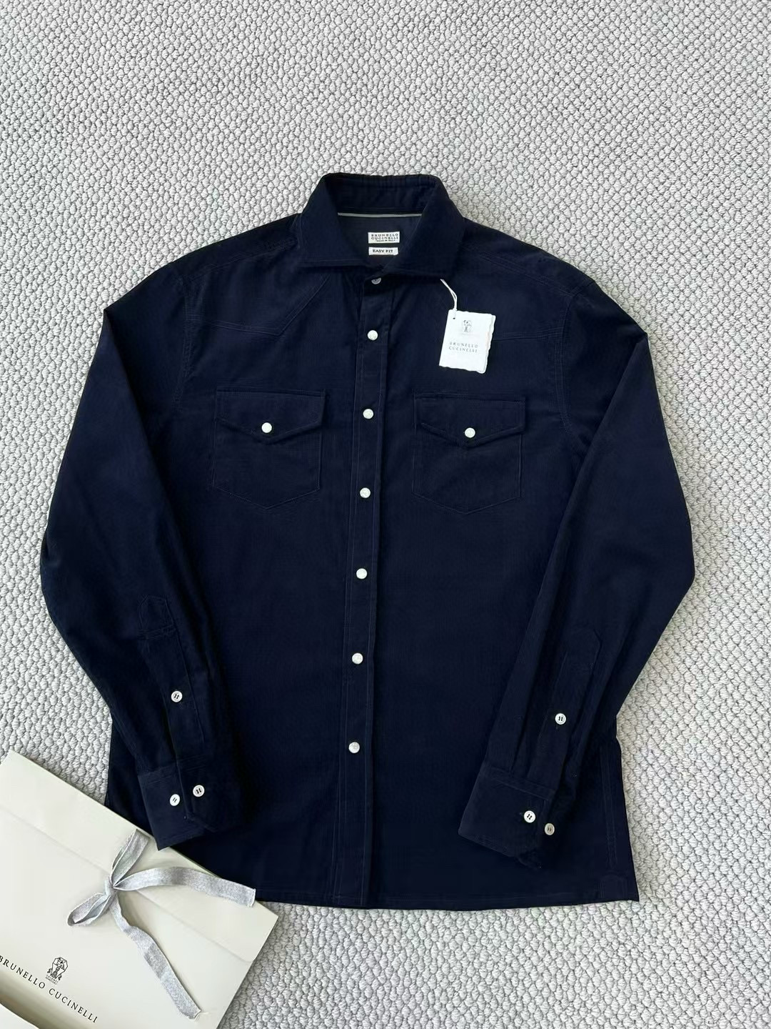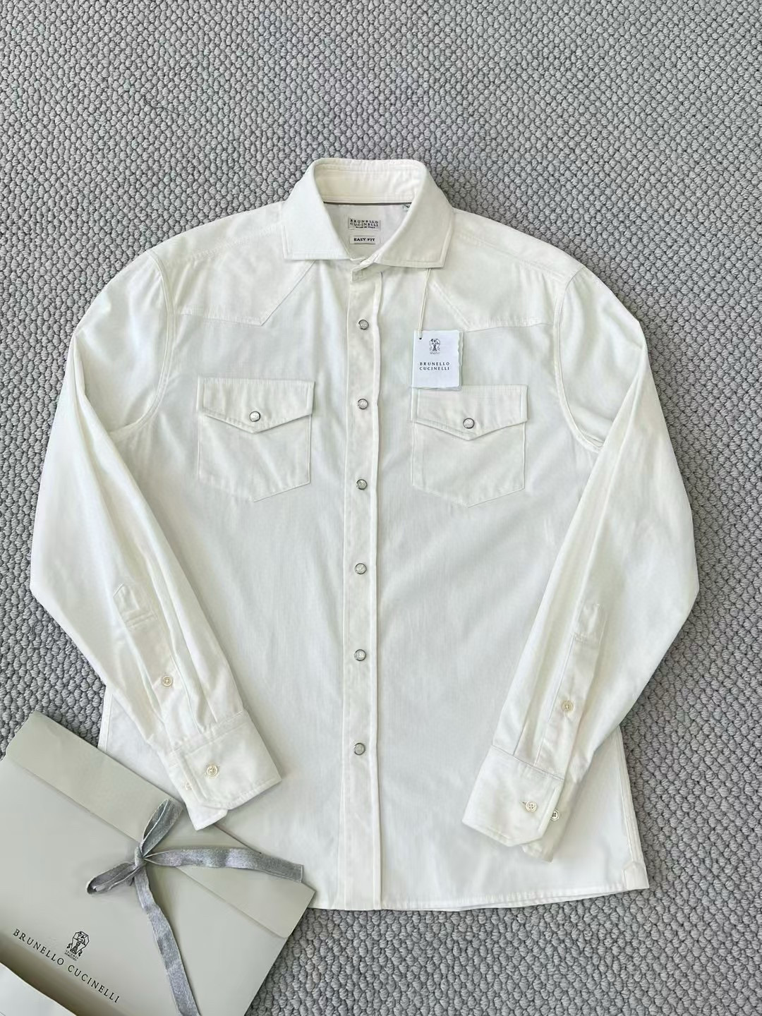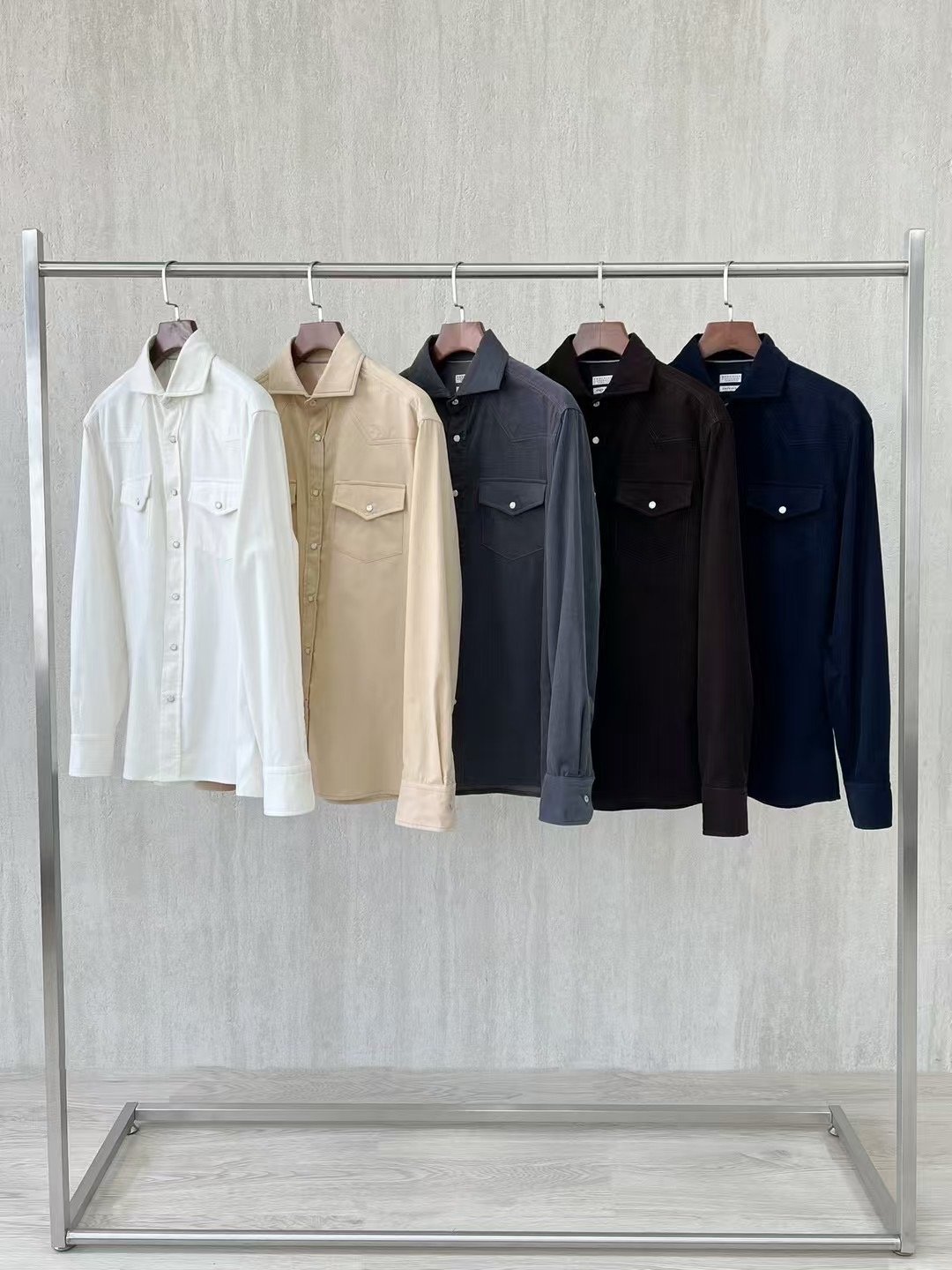 NIGO Brunello Cucinelli Men's Spring And Fall Cotton Lapel Solid Color Single-Breasted Chest Pocket Long Sleeve Fitted Shirt Ngvp #nigo1557