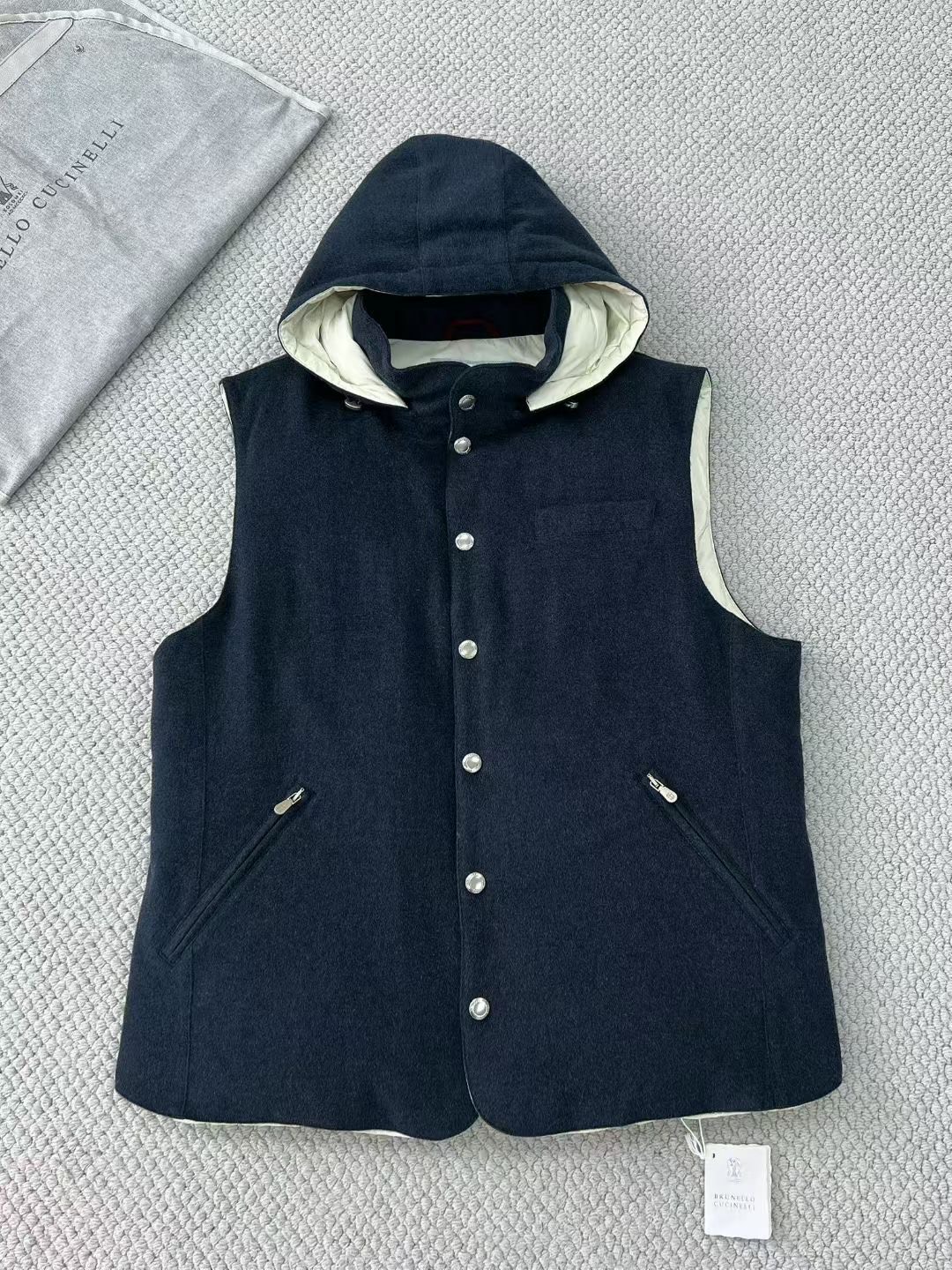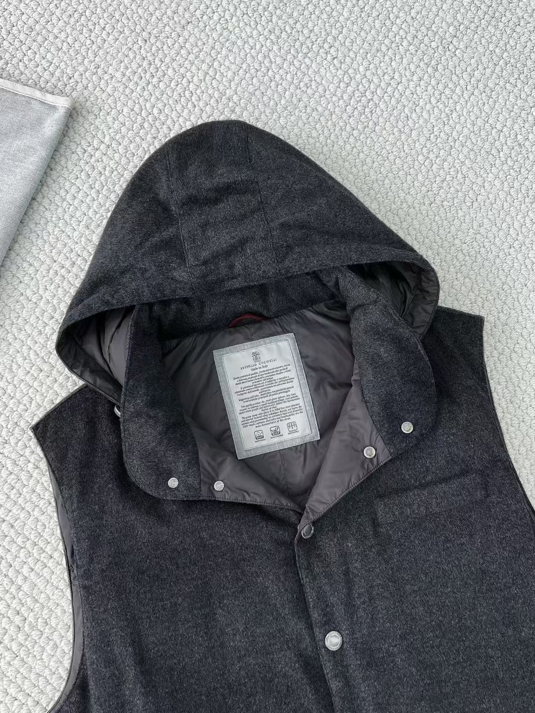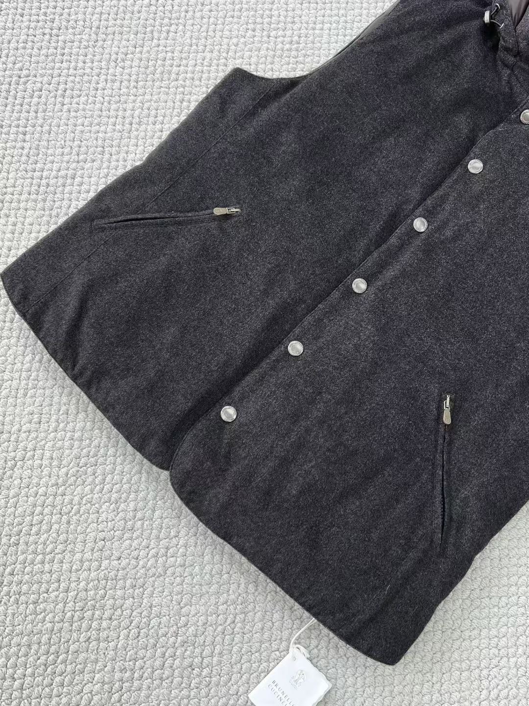 NIGO Brunello Cucinelli Men's Spring/Autumn Detachable Hooded Solid Color Single-Breasted Bonded Wool Flannel Down Vest Ngvp #nigo2293