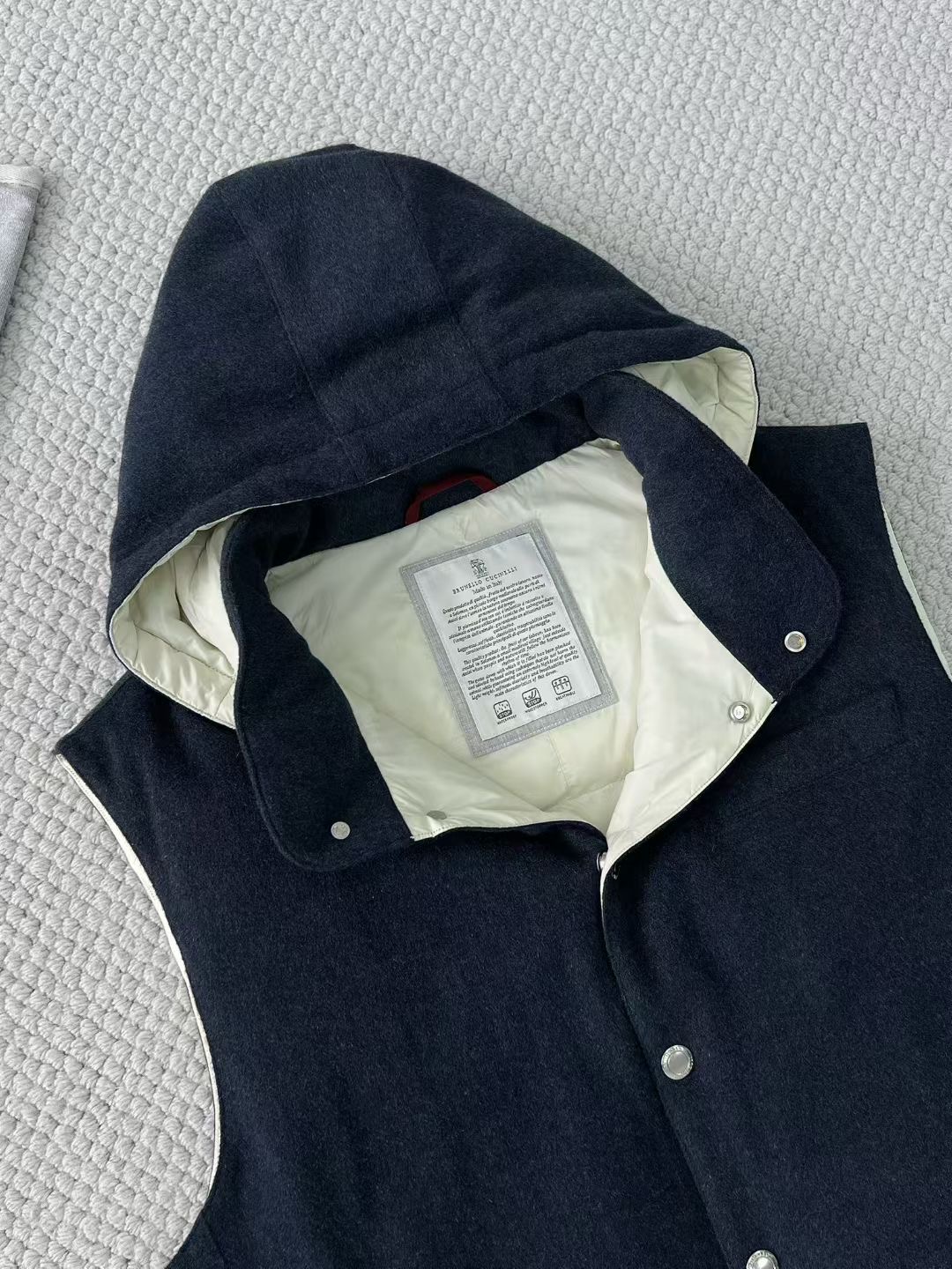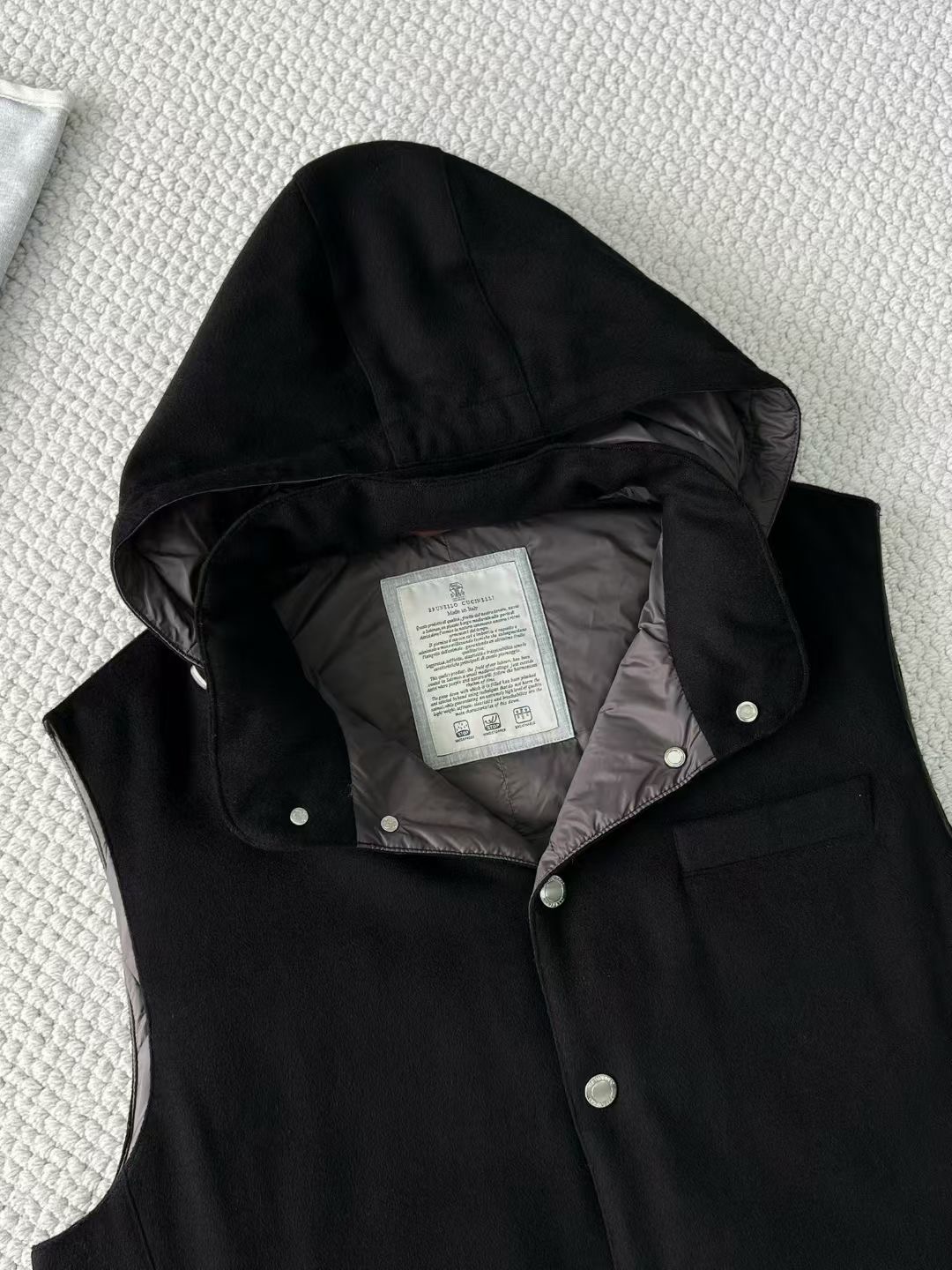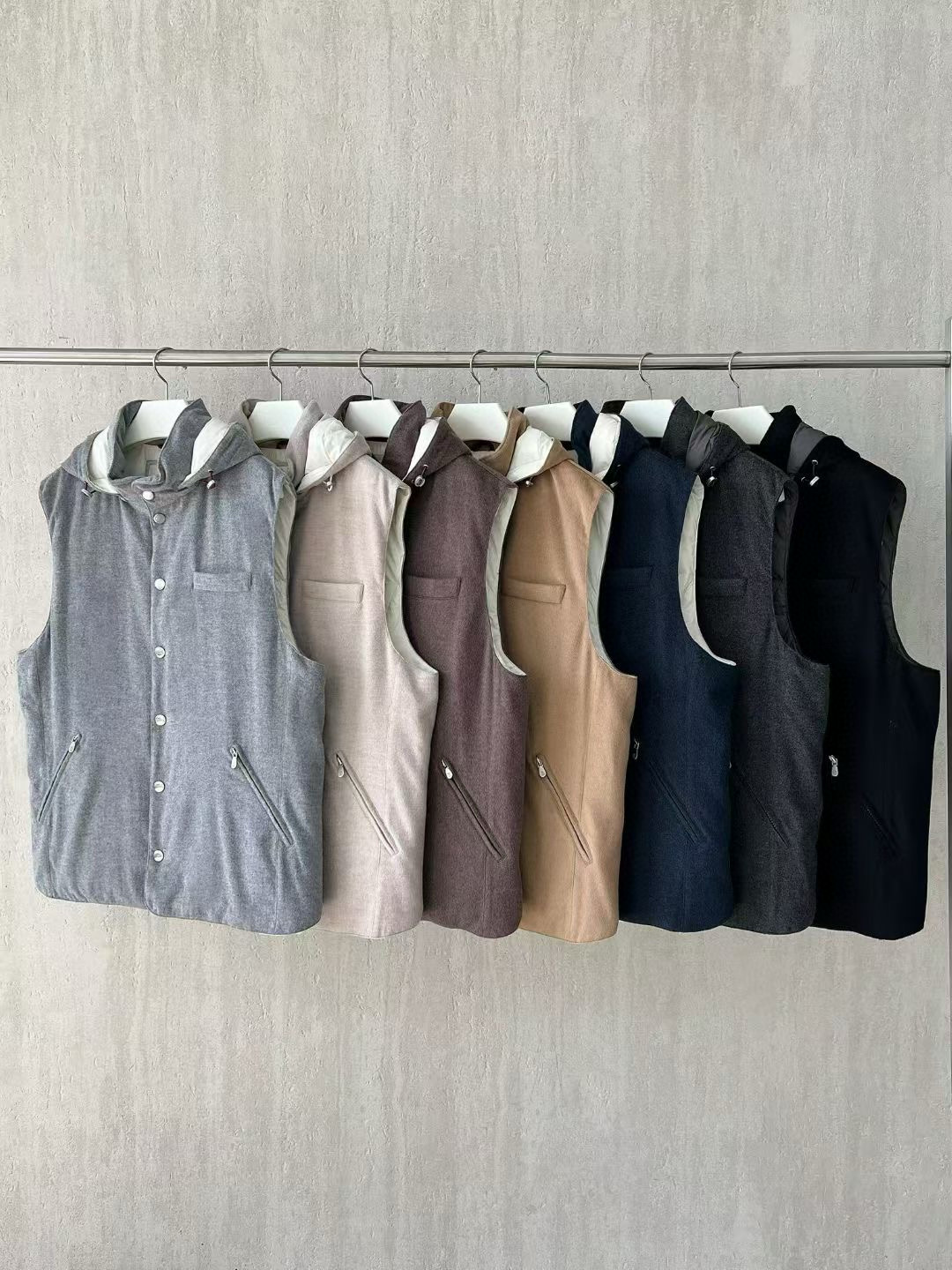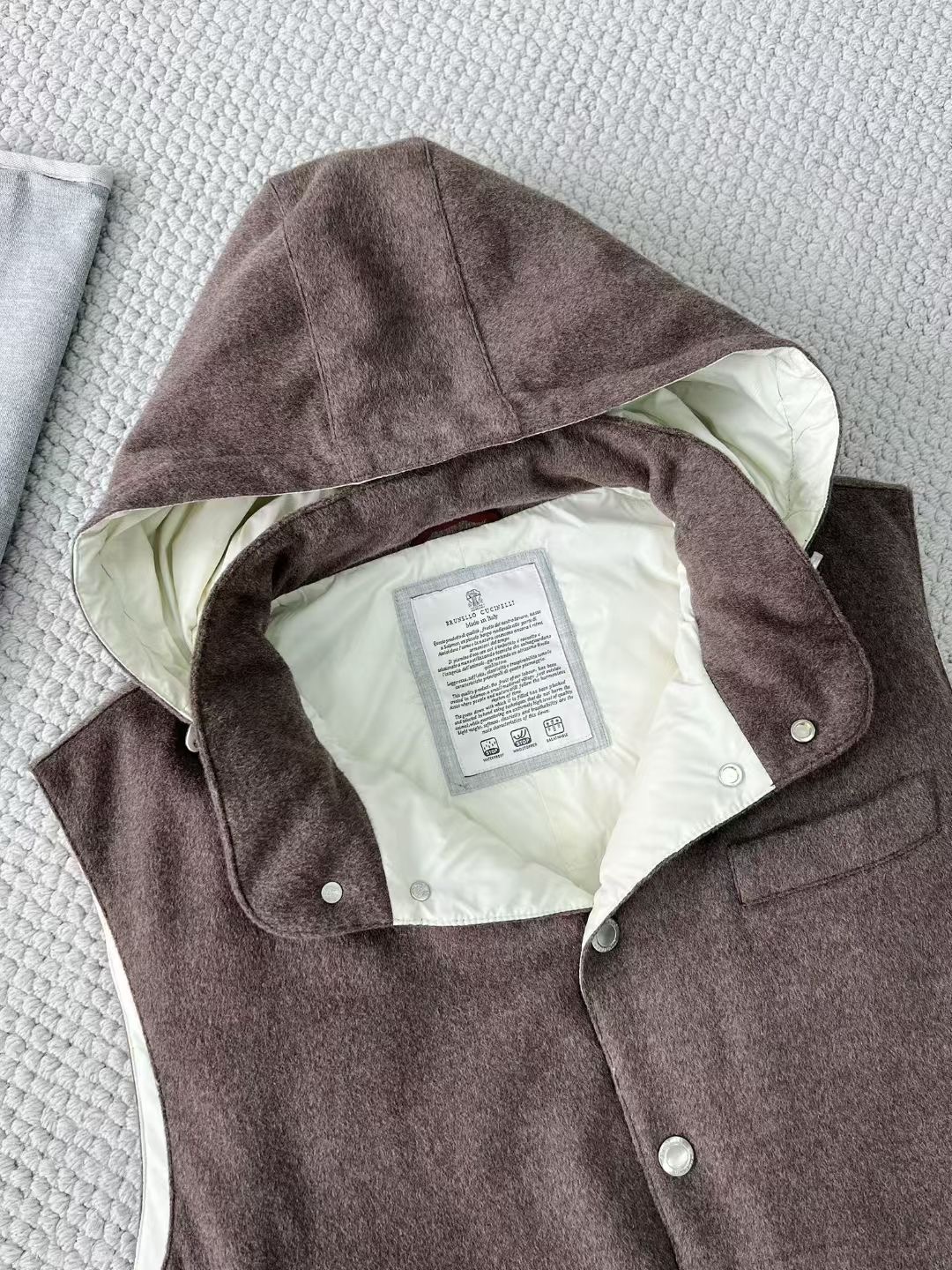 NIGO Brunello Cucinelli Men's Spring/Autumn Detachable Hooded Solid Color Single-Breasted Bonded Wool Flannel Down Vest Ngvp #nigo2293