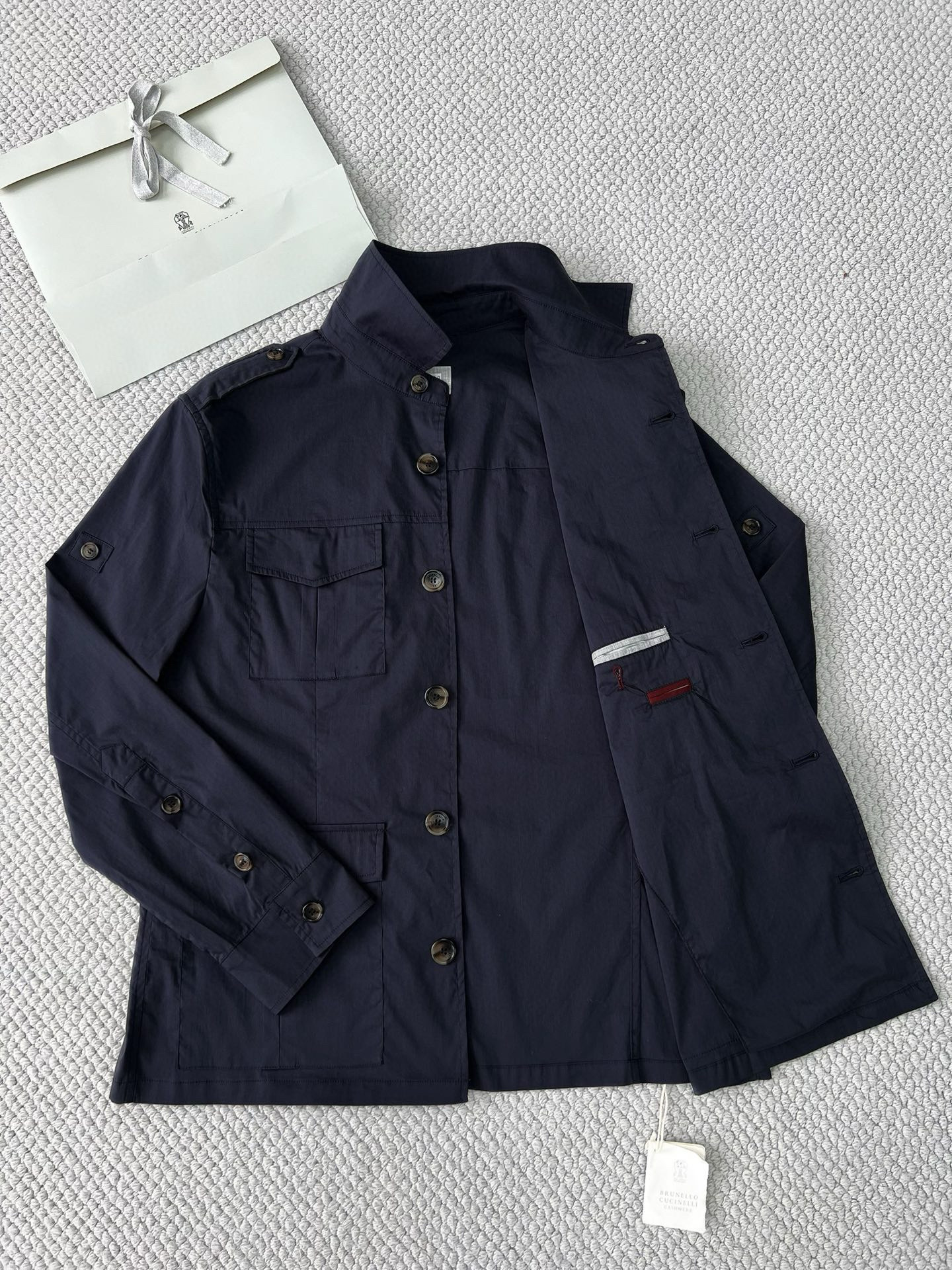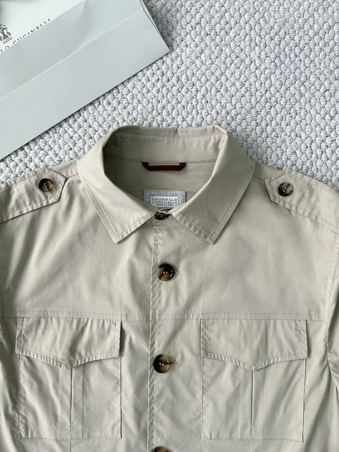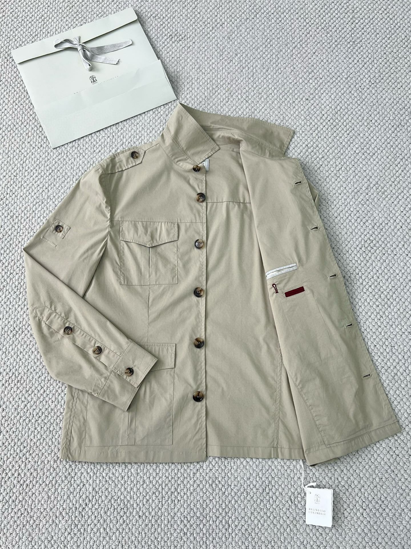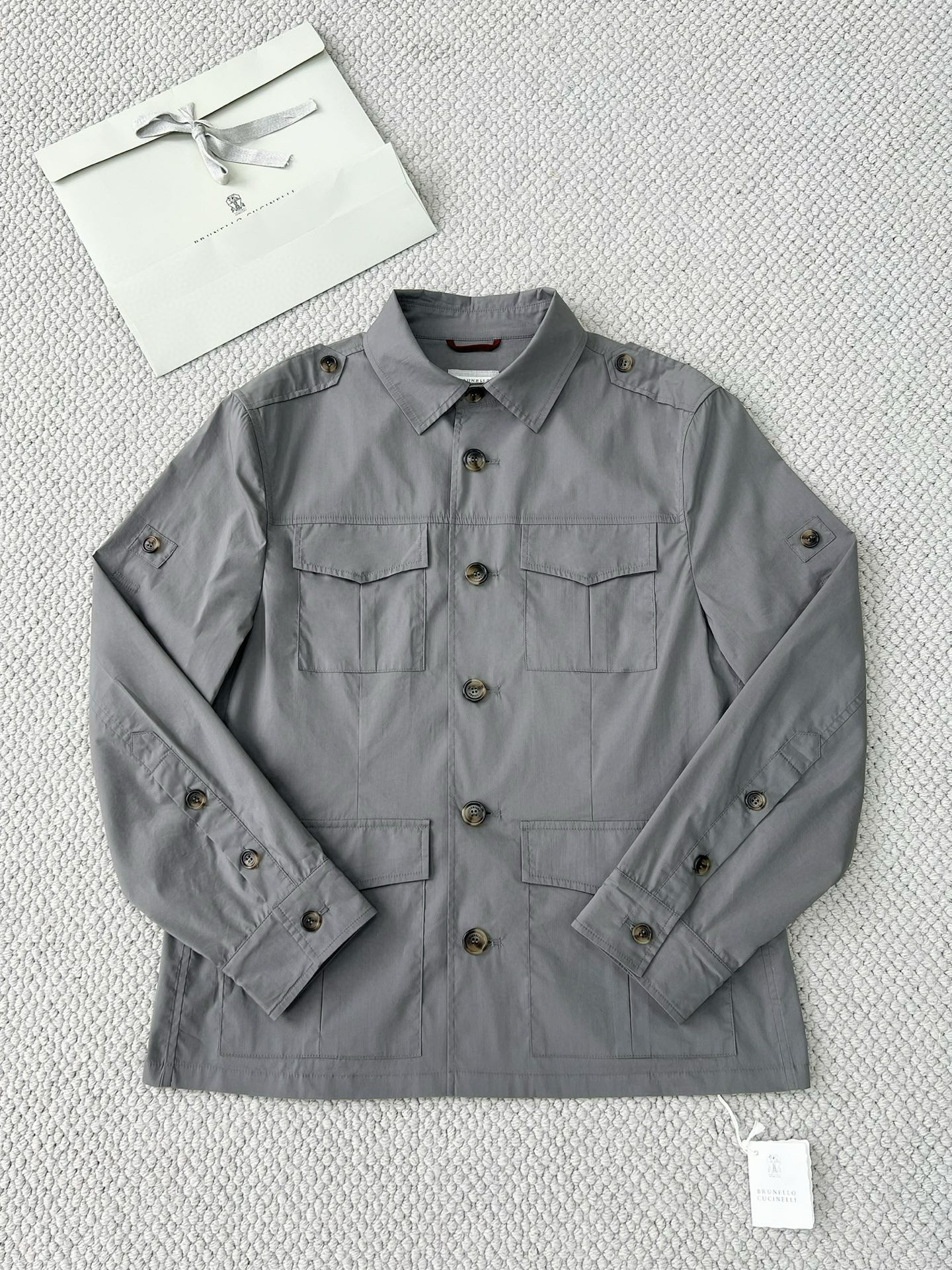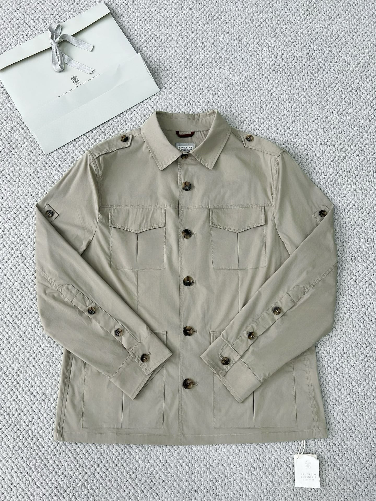 NIGO Brunello Cucinelli Men's Spring & Fall Lightweight Water-Resistant Techno Cotton Unlined Safari Jacket Solid Color Lapel Single Breasted Shirt Style Jacket Ngvp #nigo1946