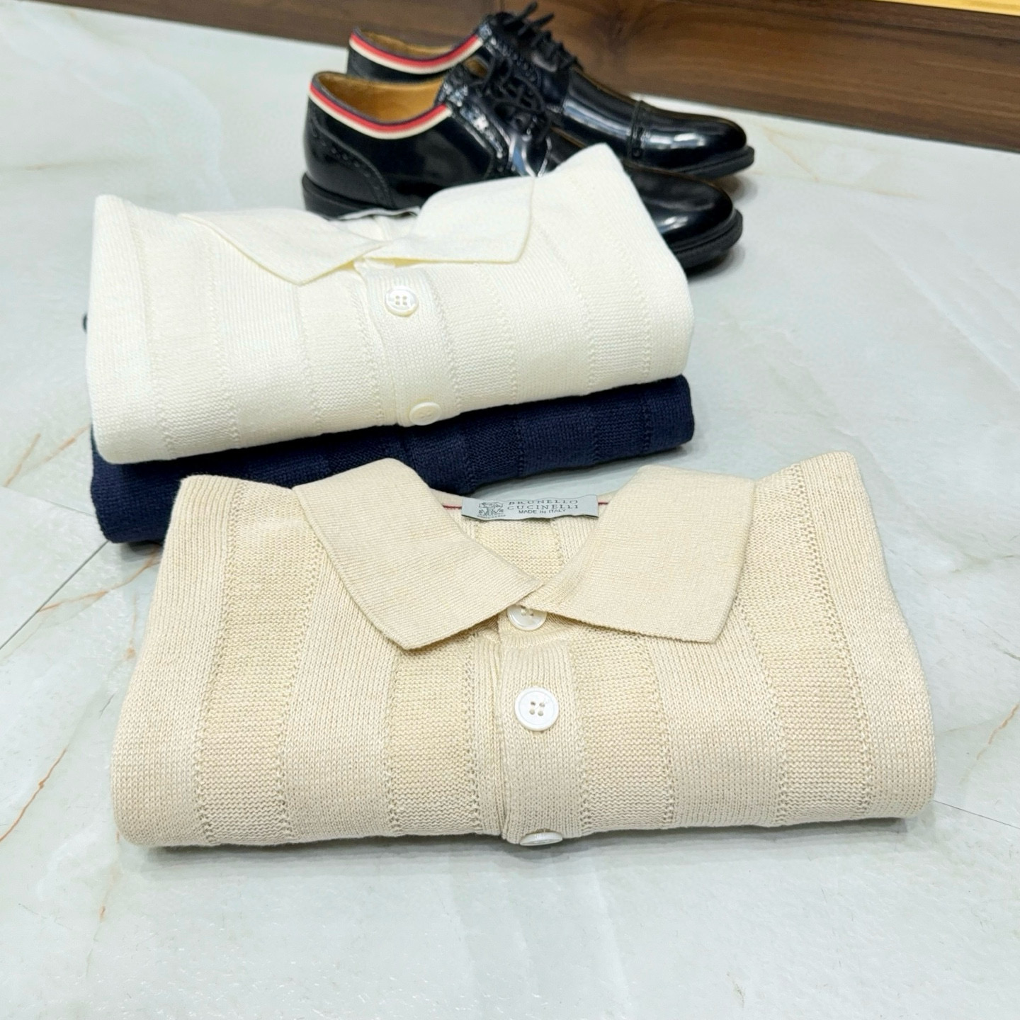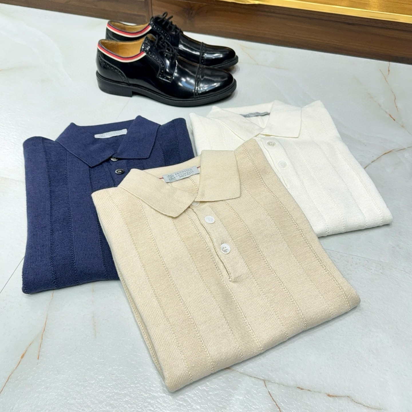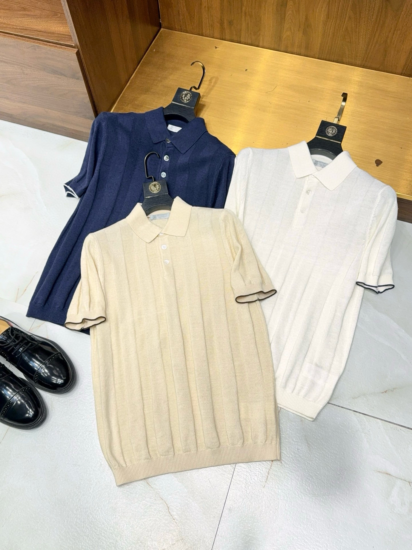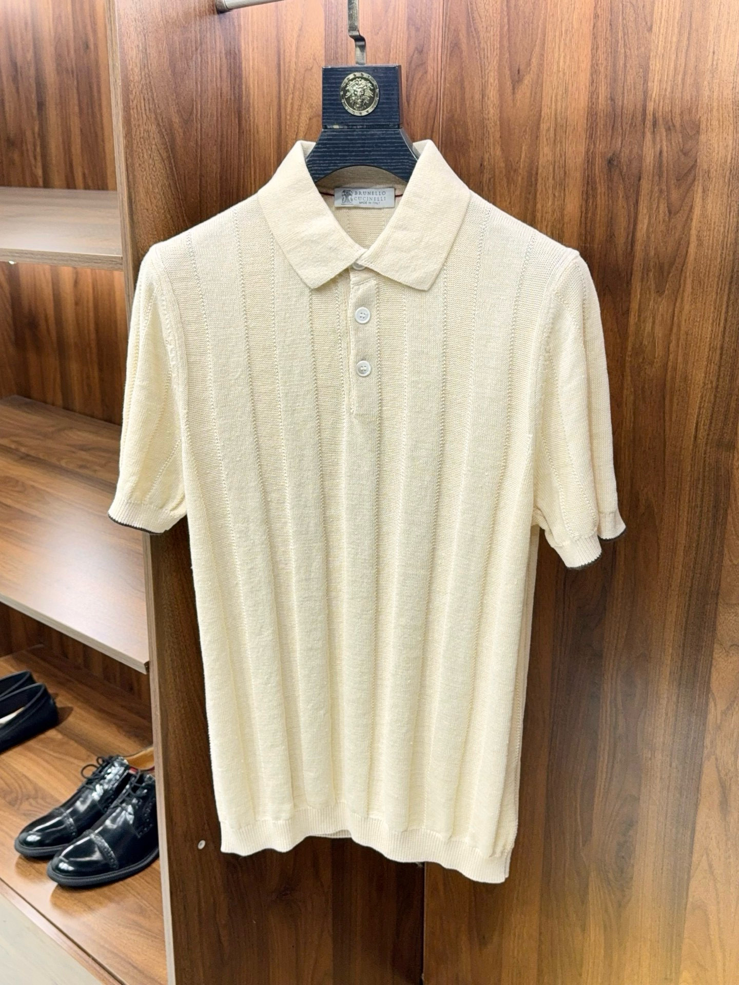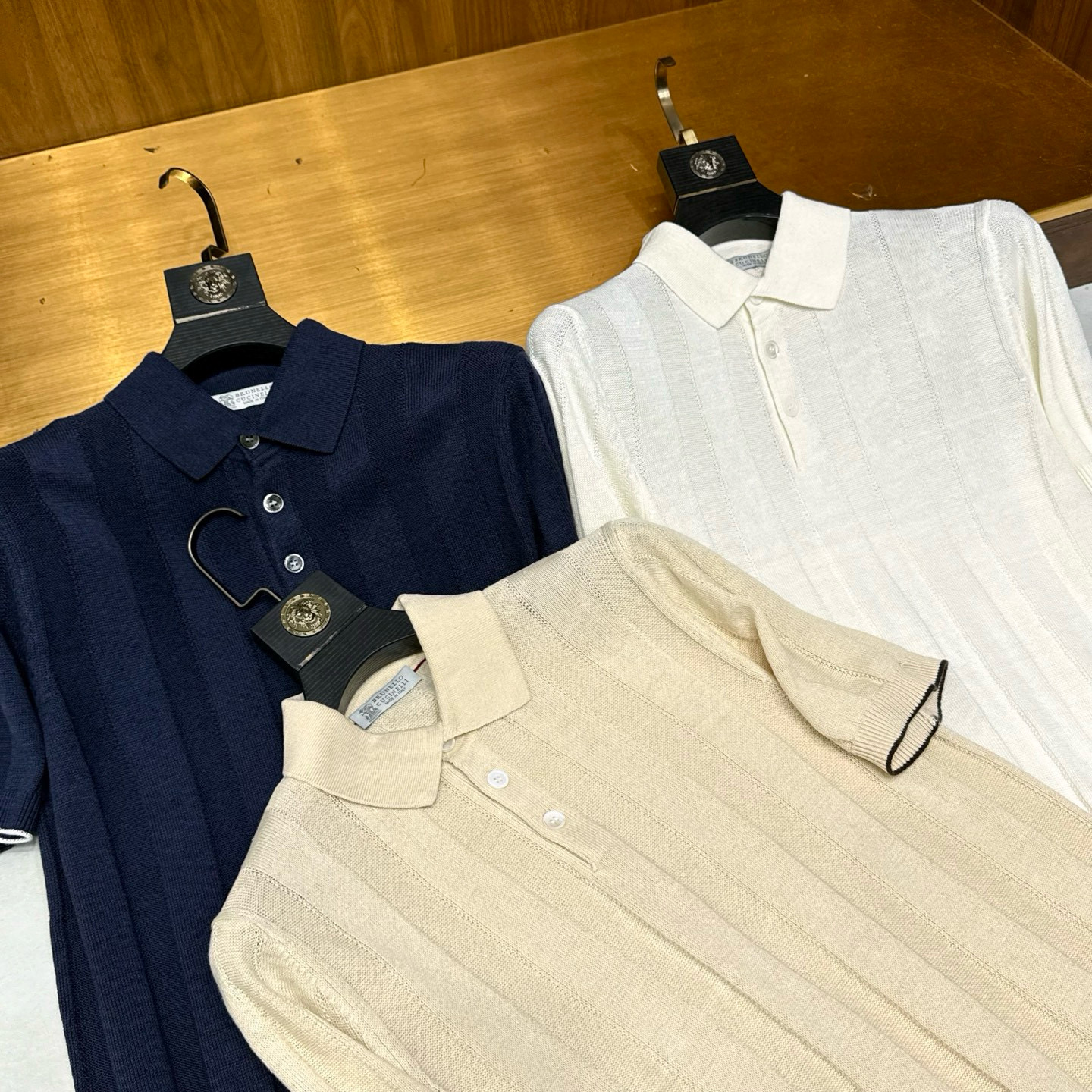 NIGO Brunello Cucinelli Men's Summer Solid Color Fitted Short Sleeve Linen And Cotton Wide Rib Knit Polo Shirt Ngvp #nigo1559