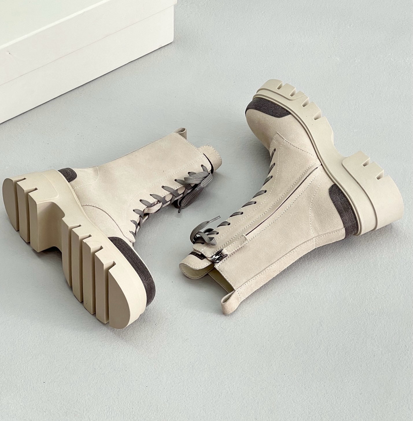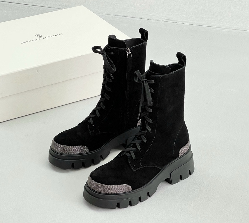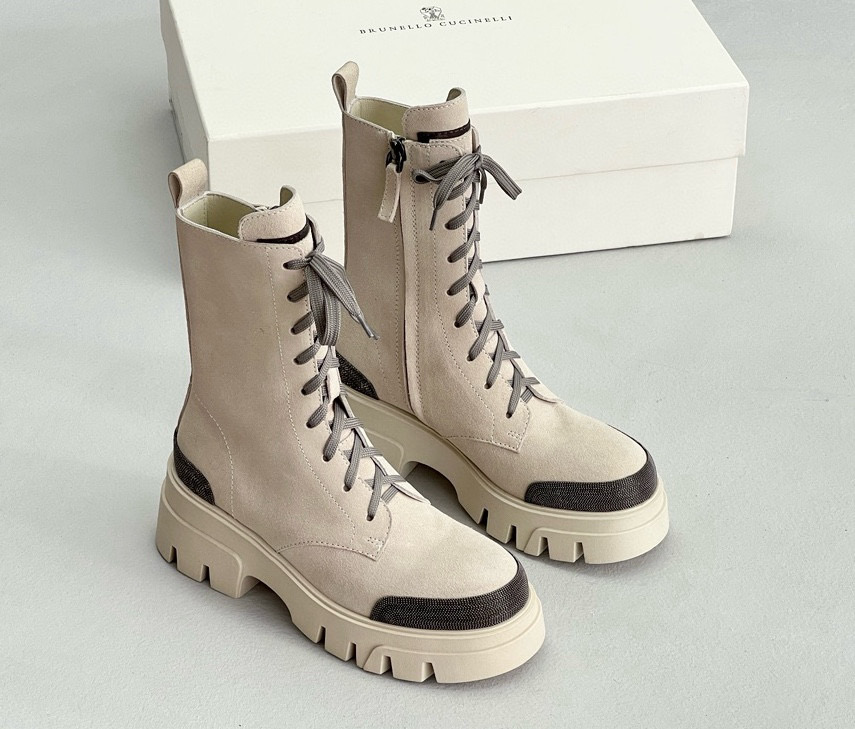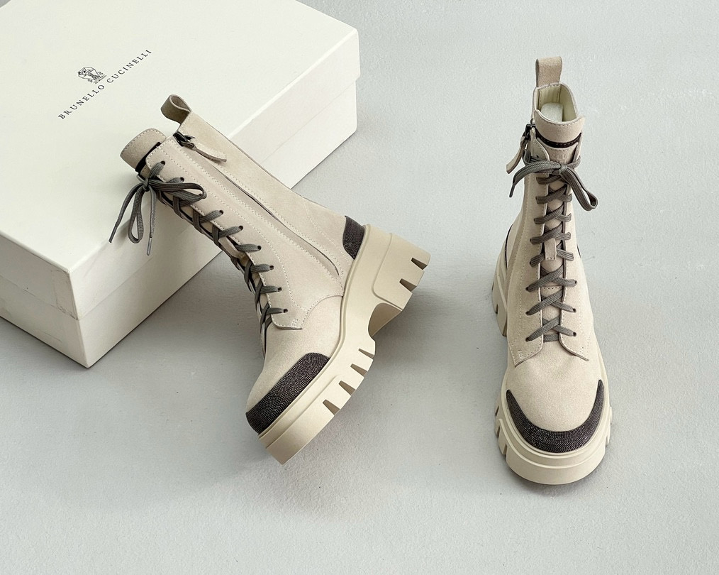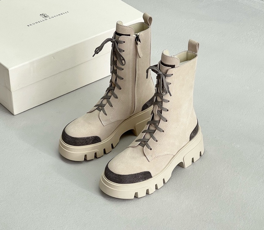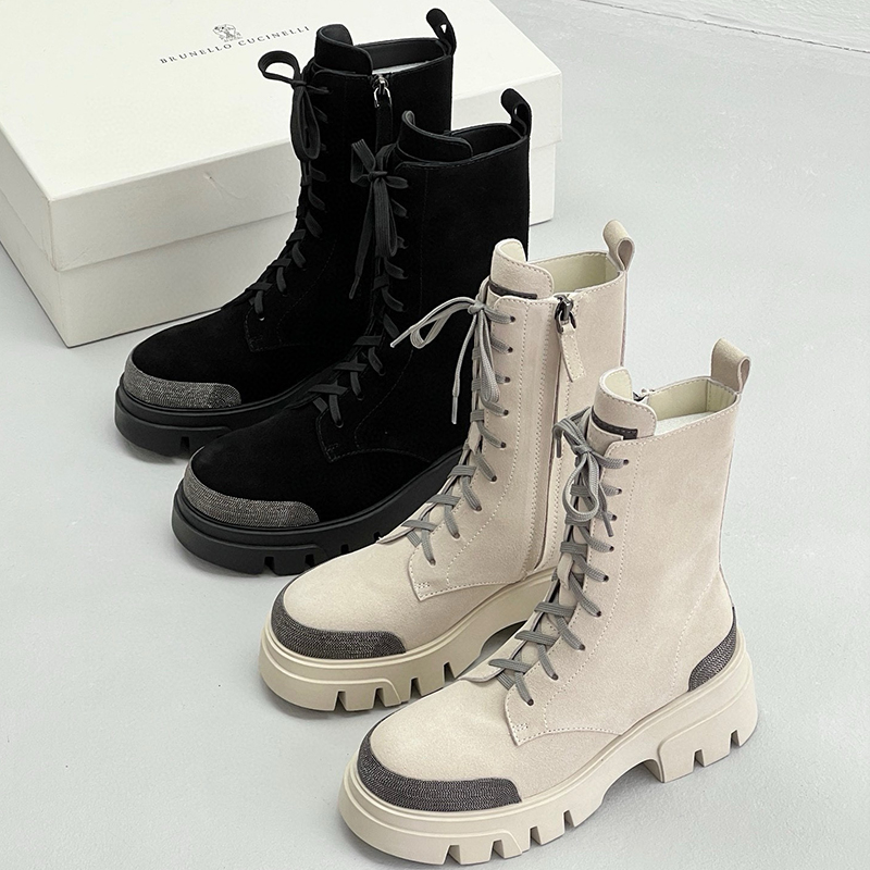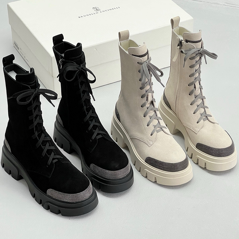 NIGO Brunello Cucinelli Women's Autumn And Winter Fashion Colorblocking Zipper Lace Casual Suede Mid Calf Boots Shoes Ngvp #nigo7394