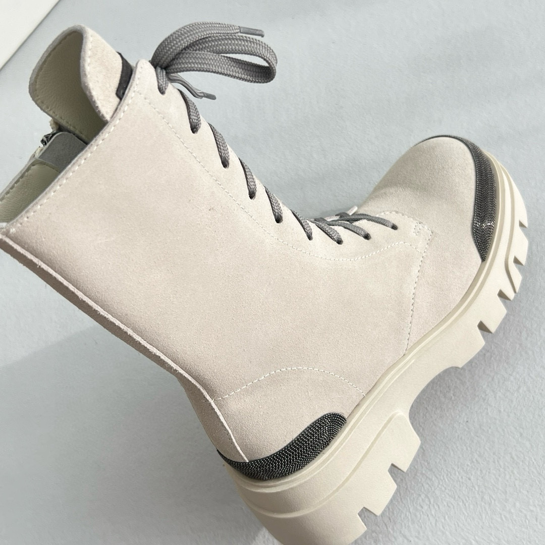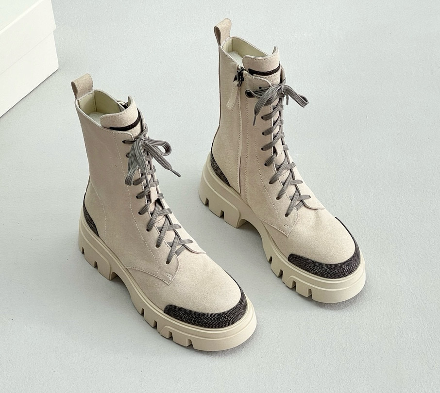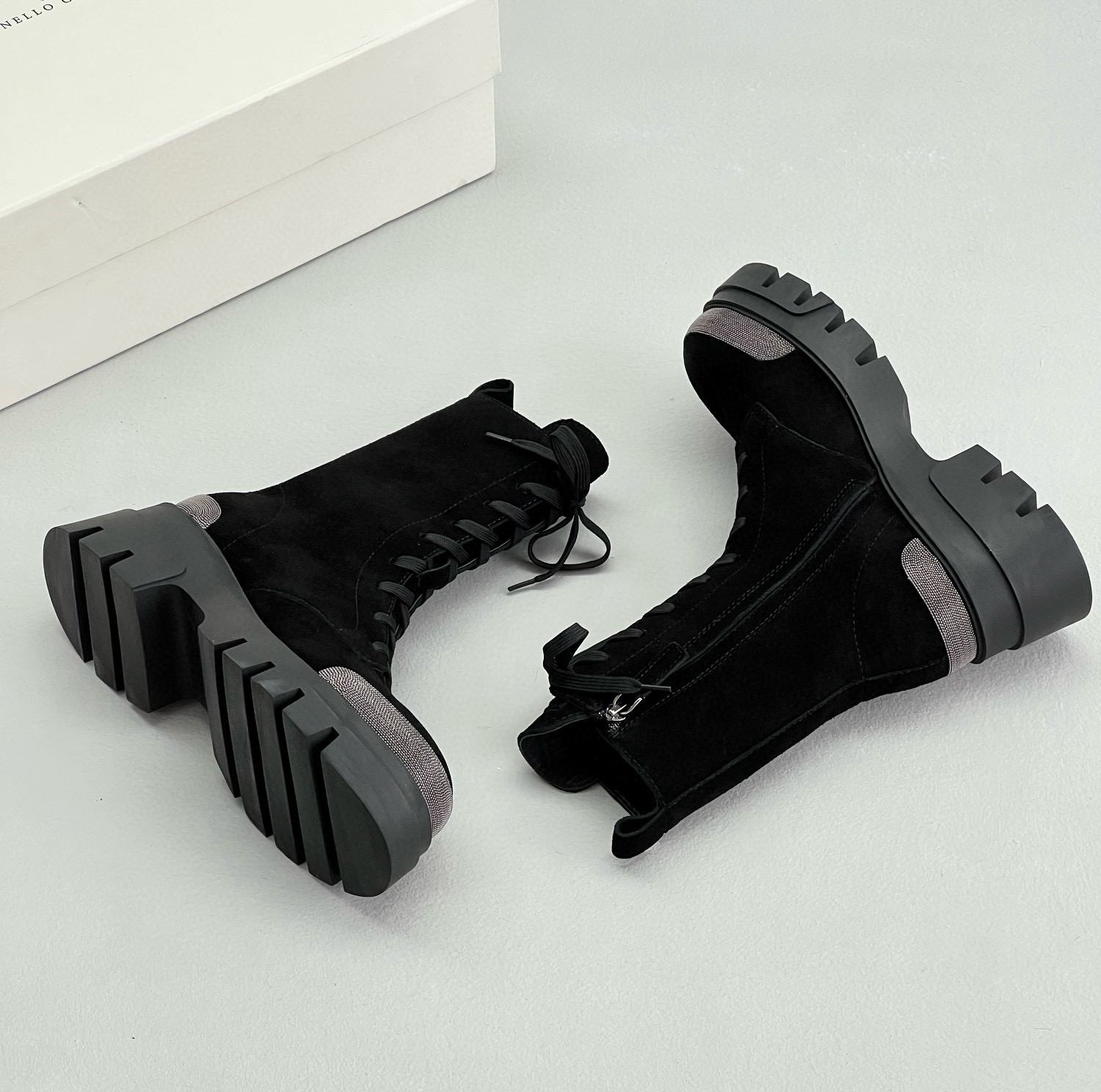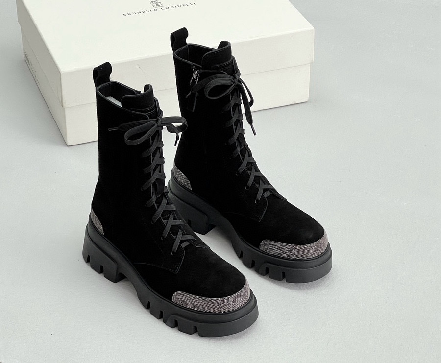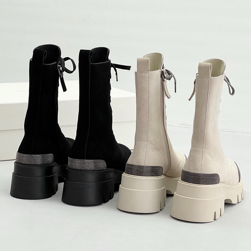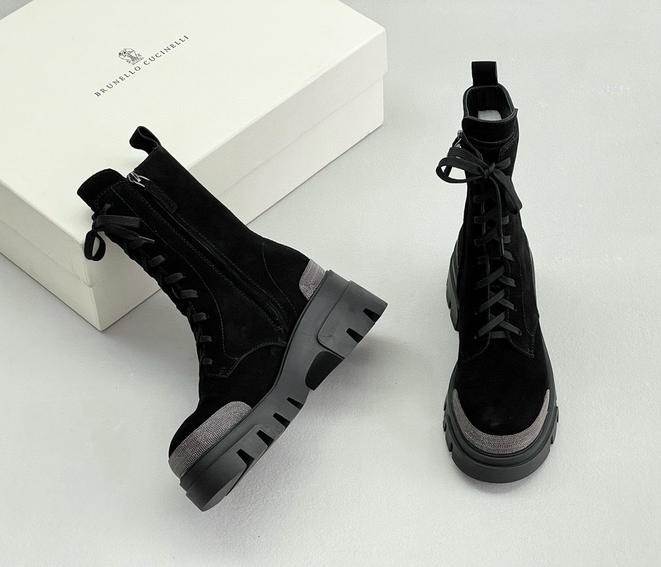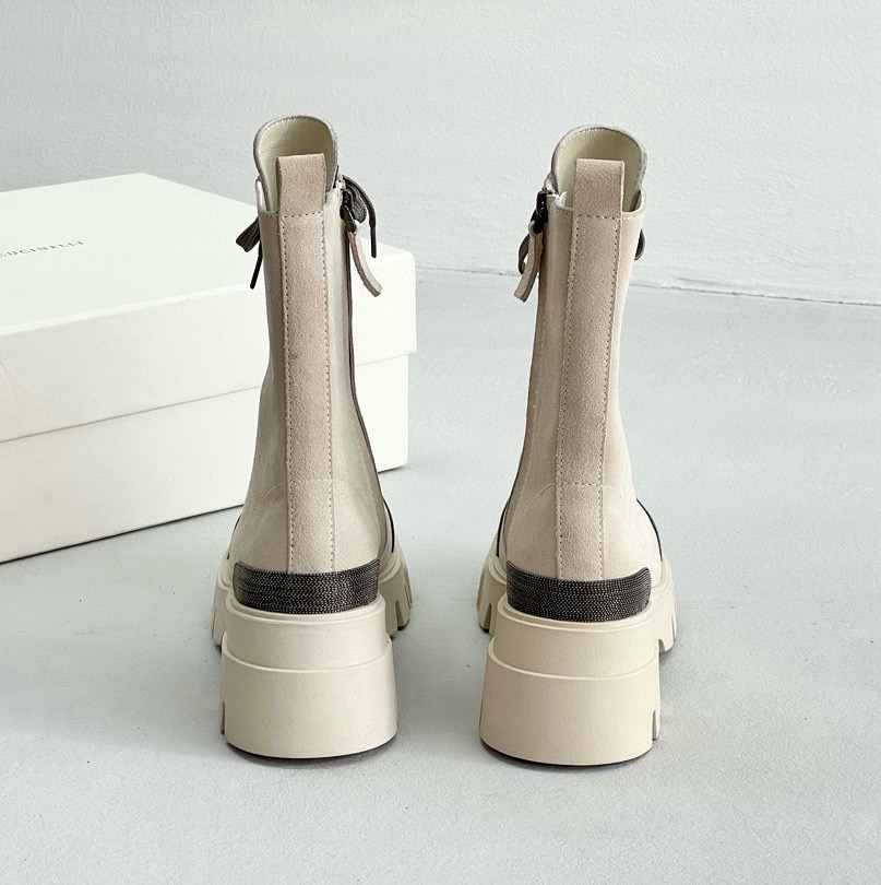 NIGO Brunello Cucinelli Women's Autumn And Winter Fashion Colorblocking Zipper Lace Casual Suede Mid Calf Boots Shoes Ngvp #nigo7394