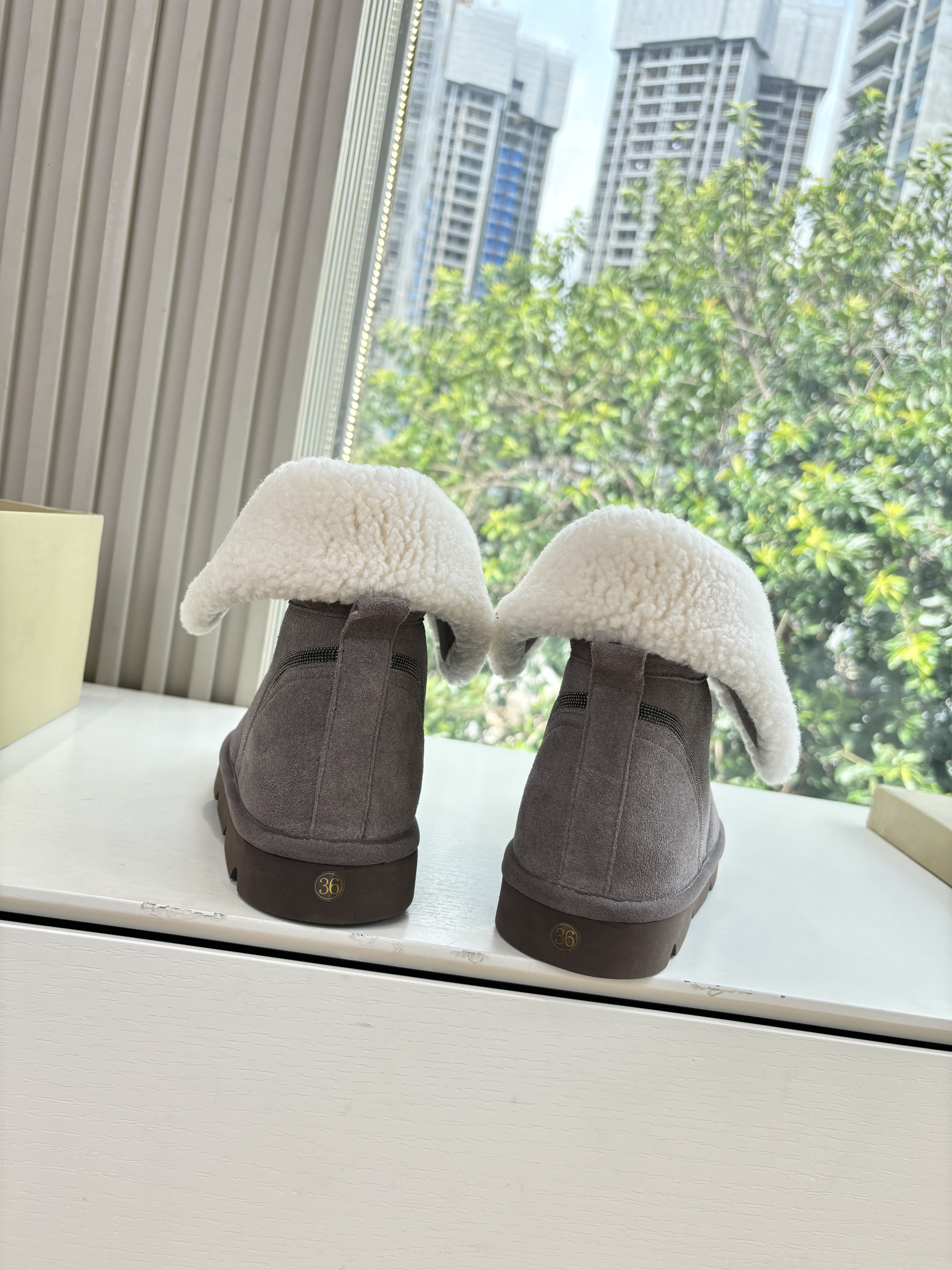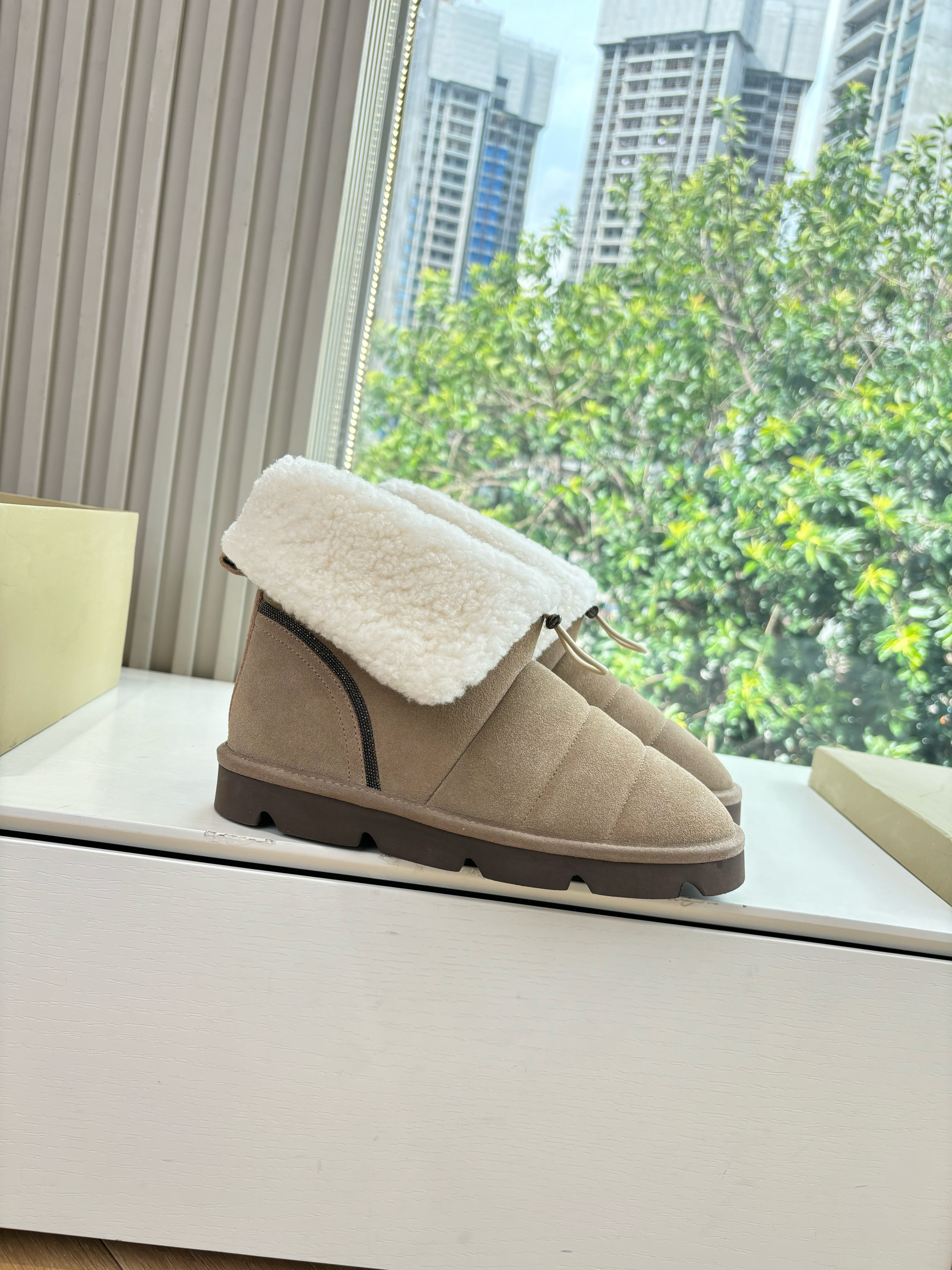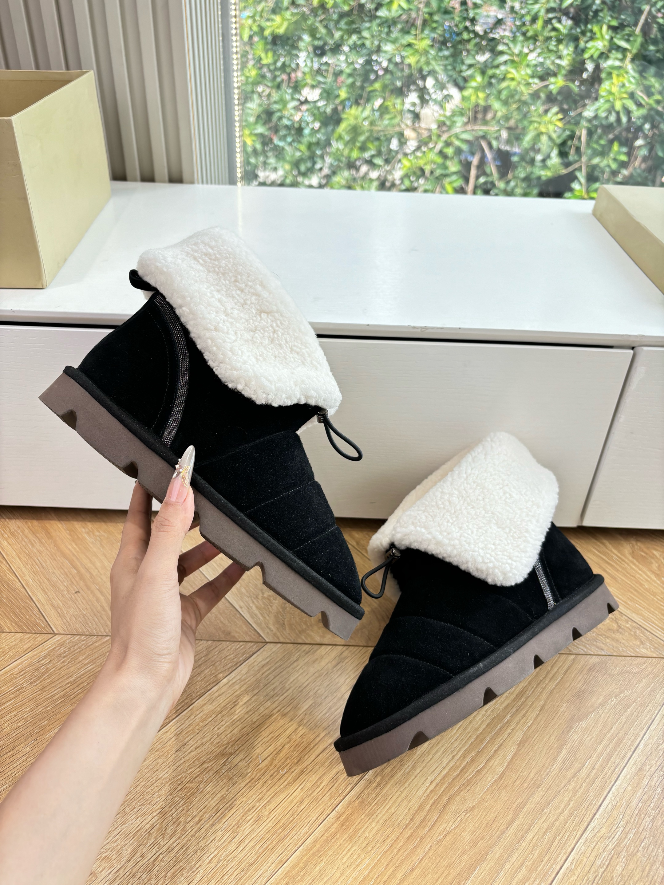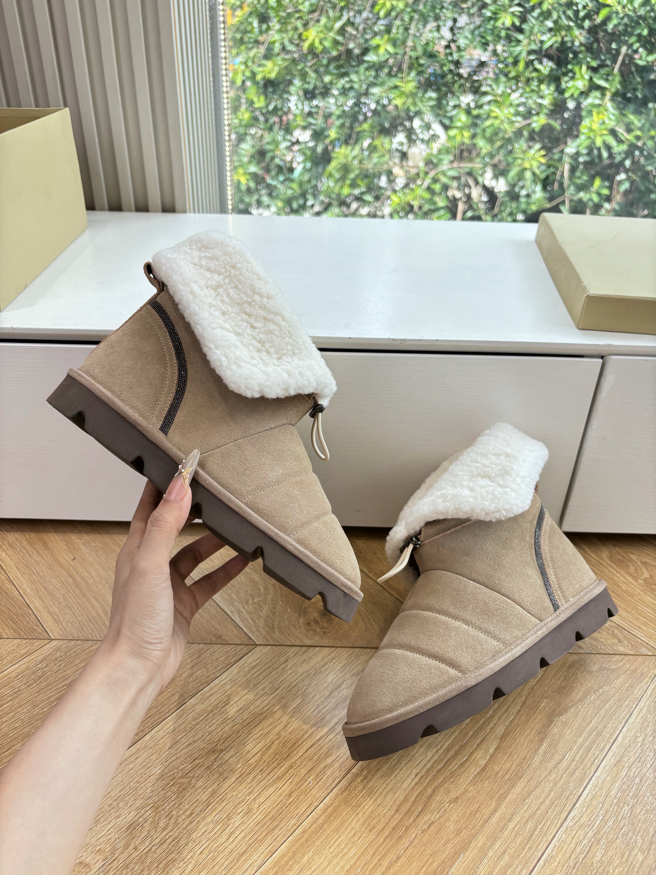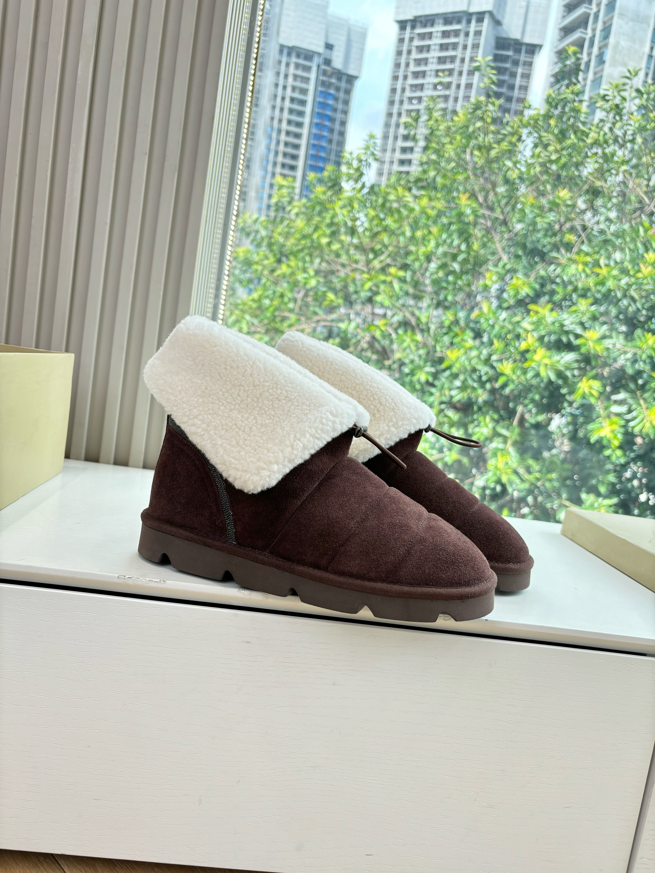NIGO Brunello Cucinelli Women's Fall/Winter Matte Leather Solid-Color Chunky-Heel Snow Boots Short Boots Casual Cotton Slippers Shoes #nigo81586