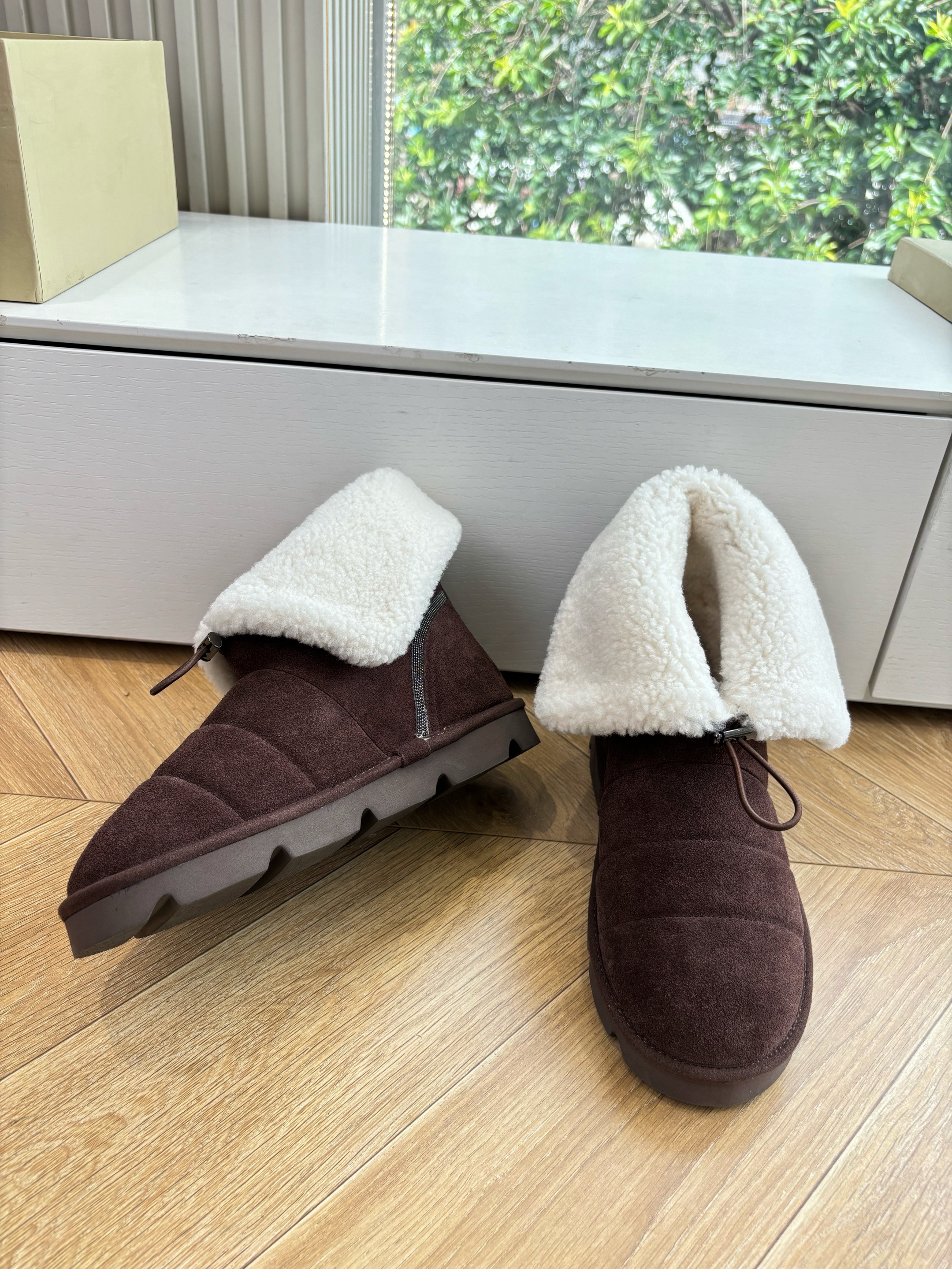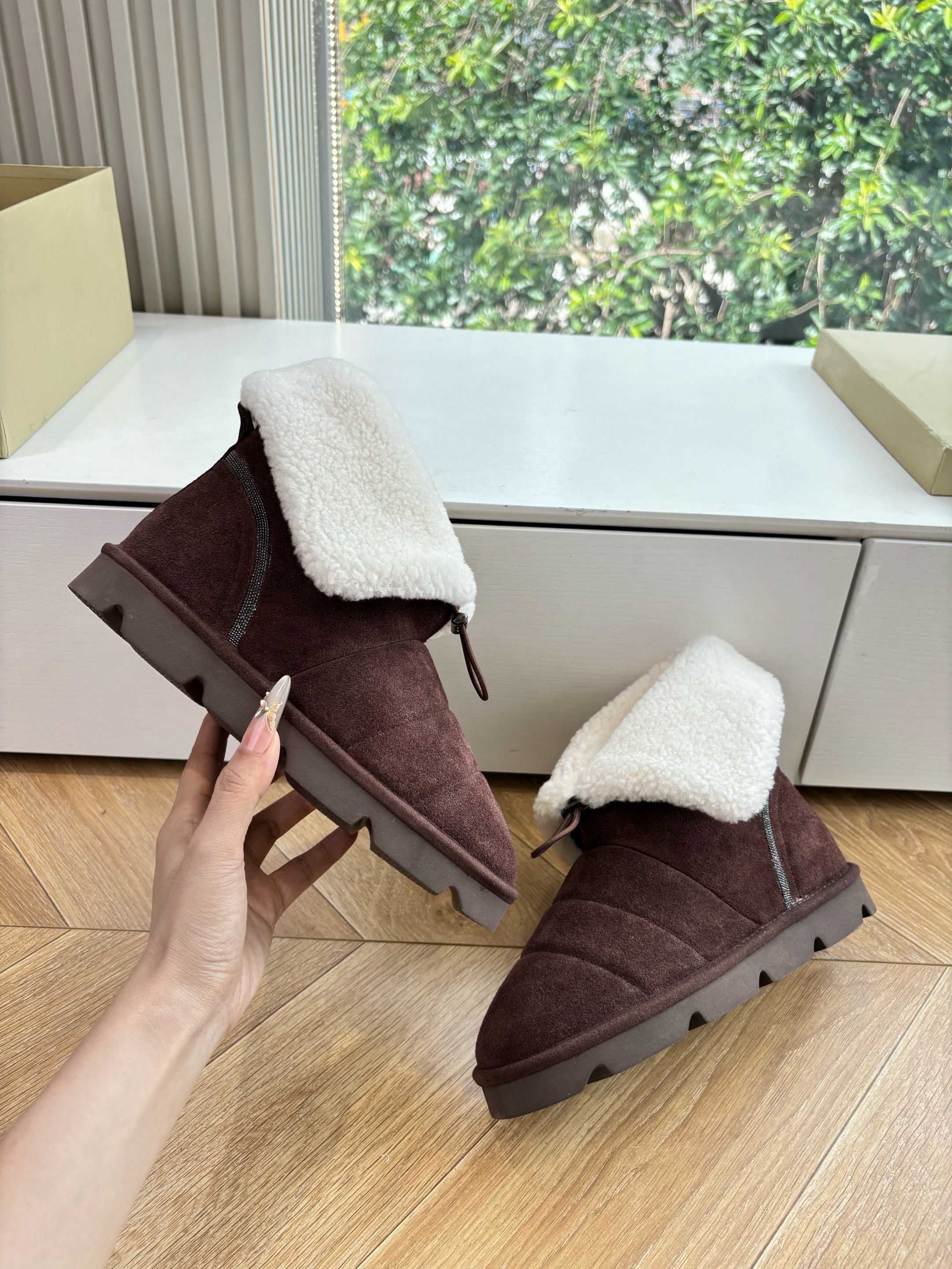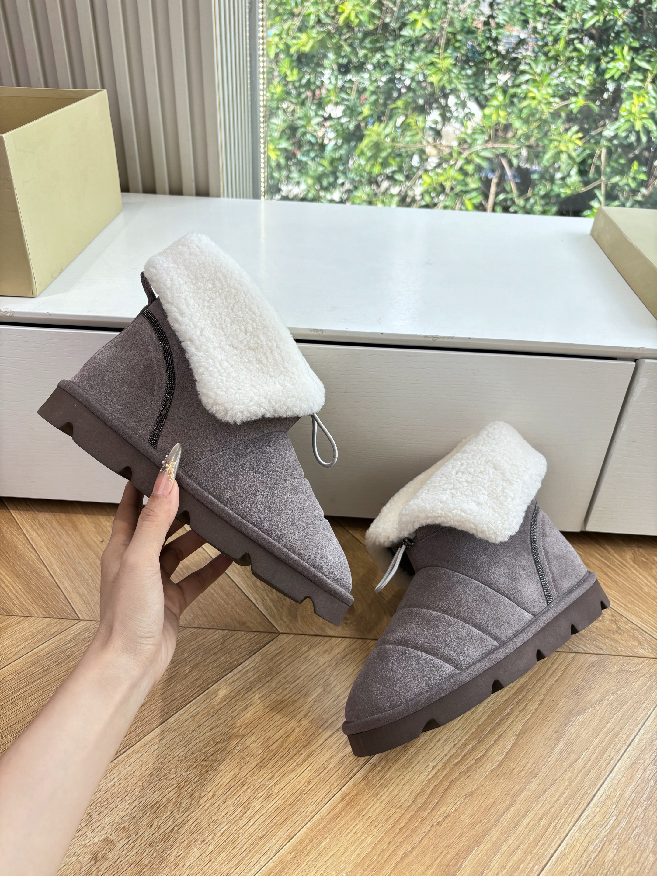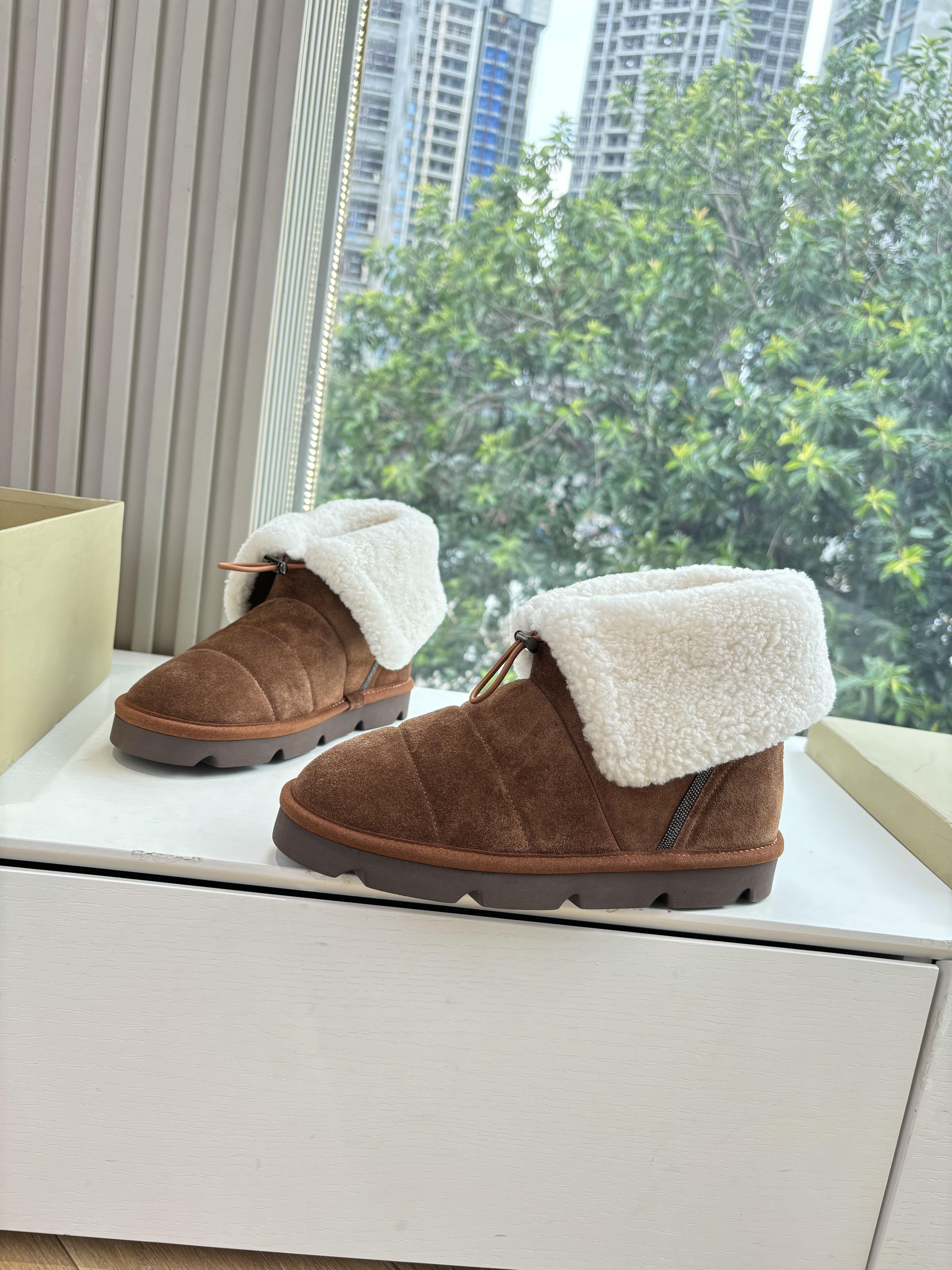 NIGO Brunello Cucinelli Women's Fall/Winter Matte Leather Solid-Color Chunky-Heel Snow Boots Short Boots Casual Cotton Slippers Shoes #nigo81586