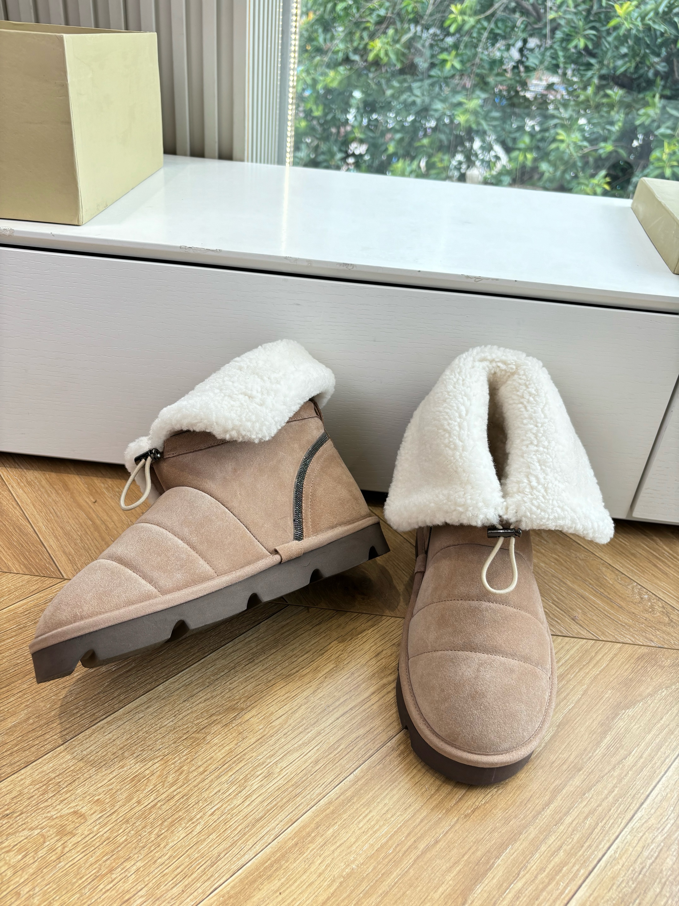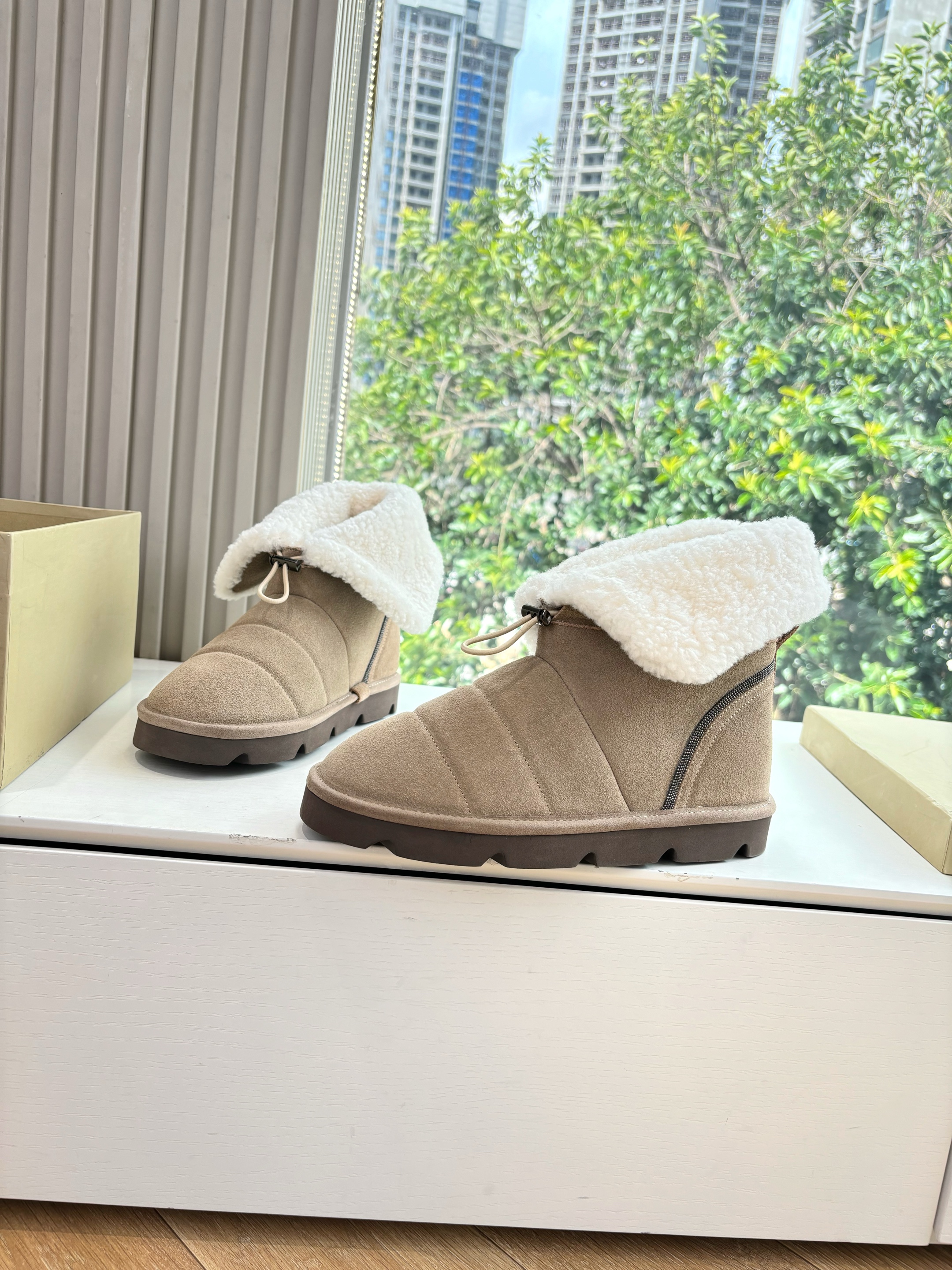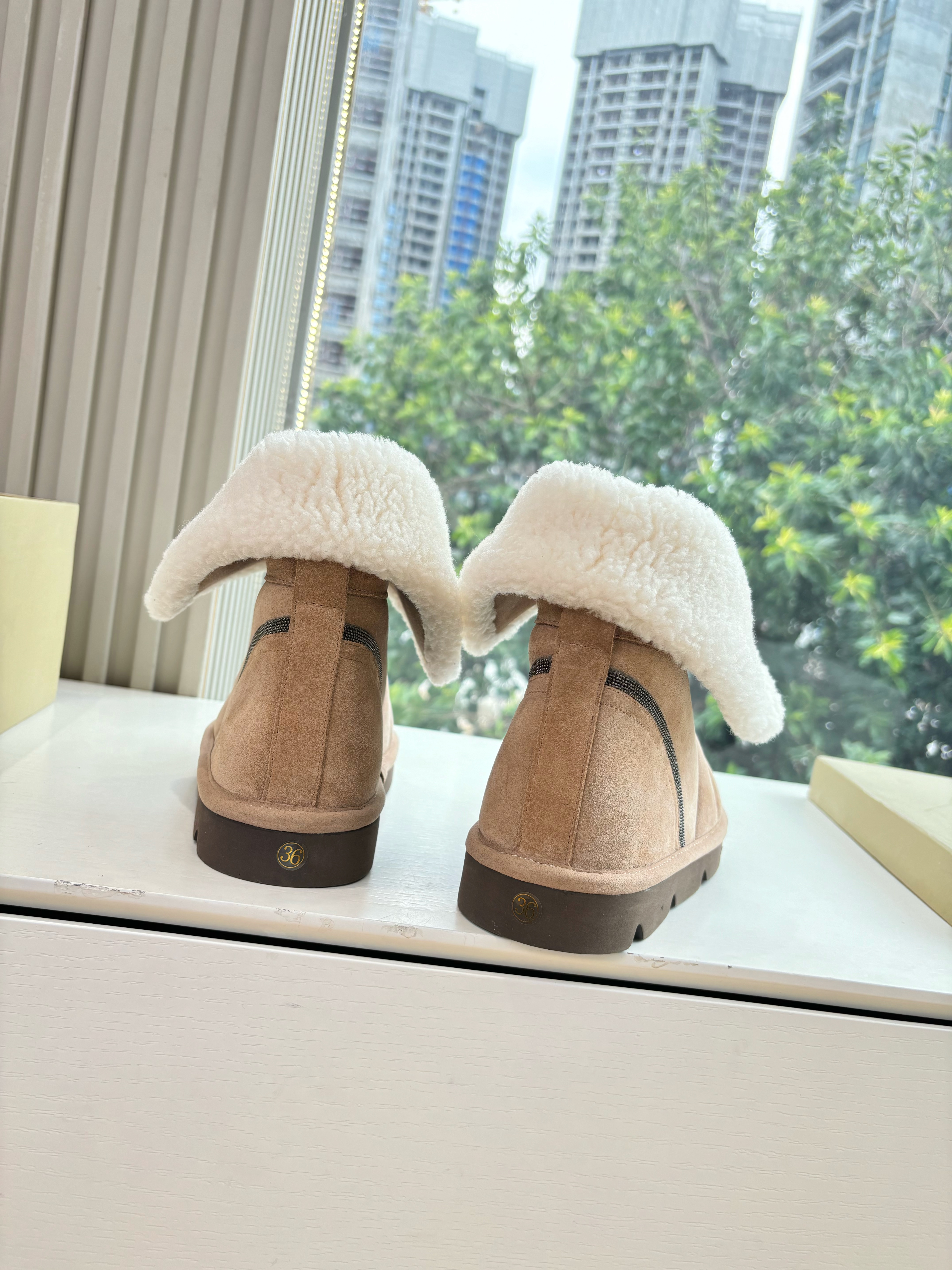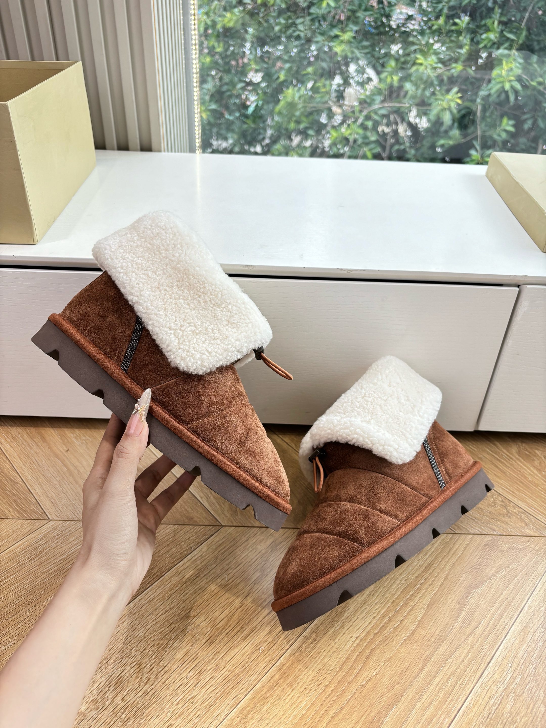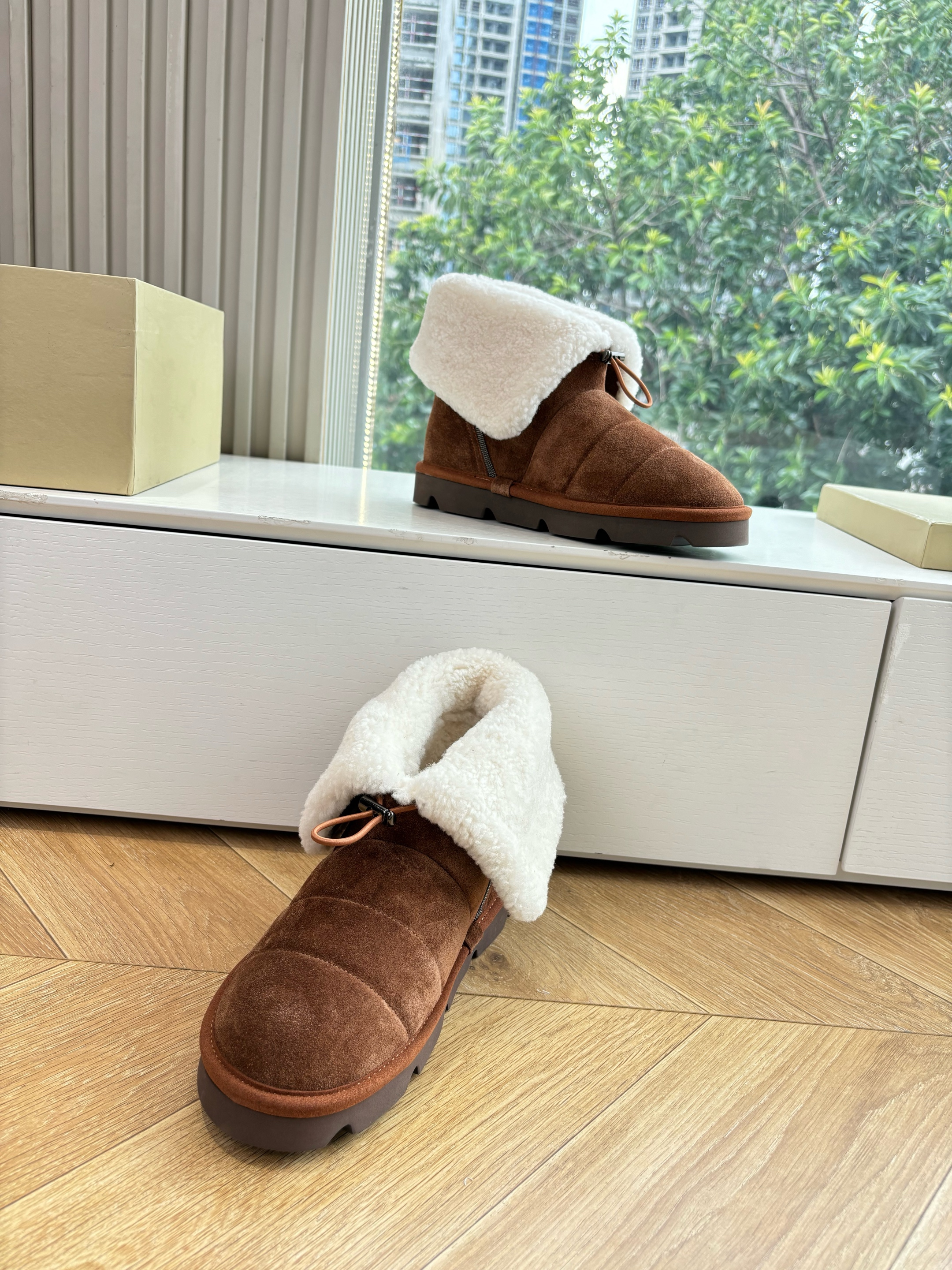 NIGO Brunello Cucinelli Women's Fall/Winter Matte Leather Solid-Color Chunky-Heel Snow Boots Short Boots Casual Cotton Slippers Shoes #nigo81586