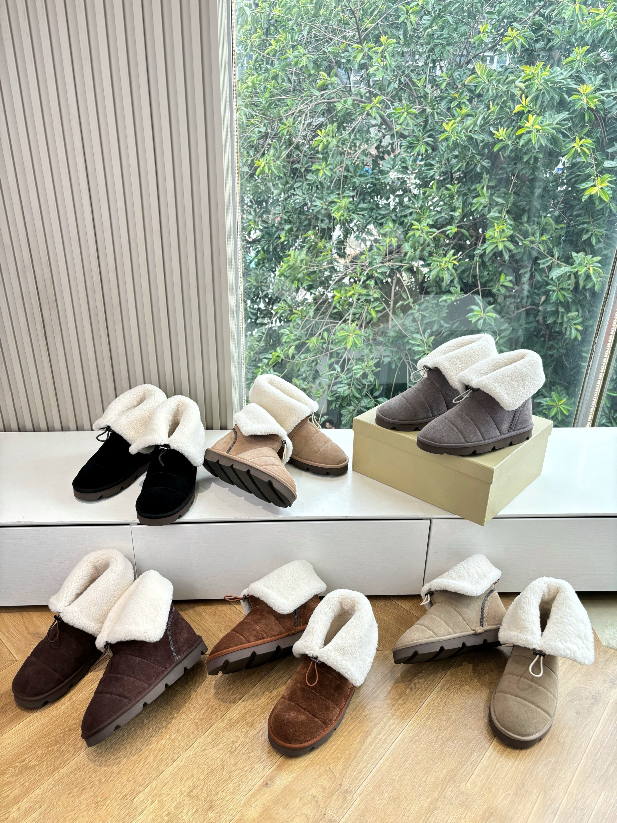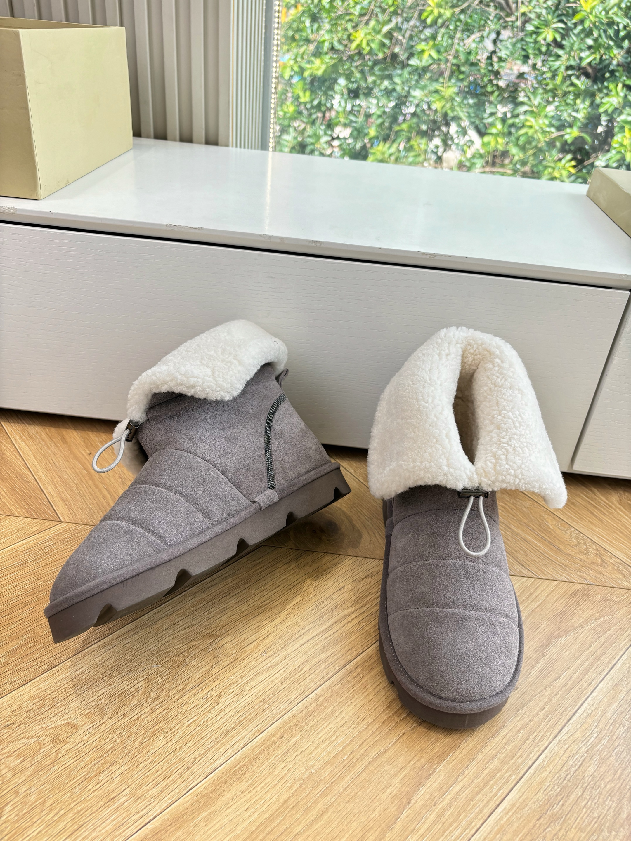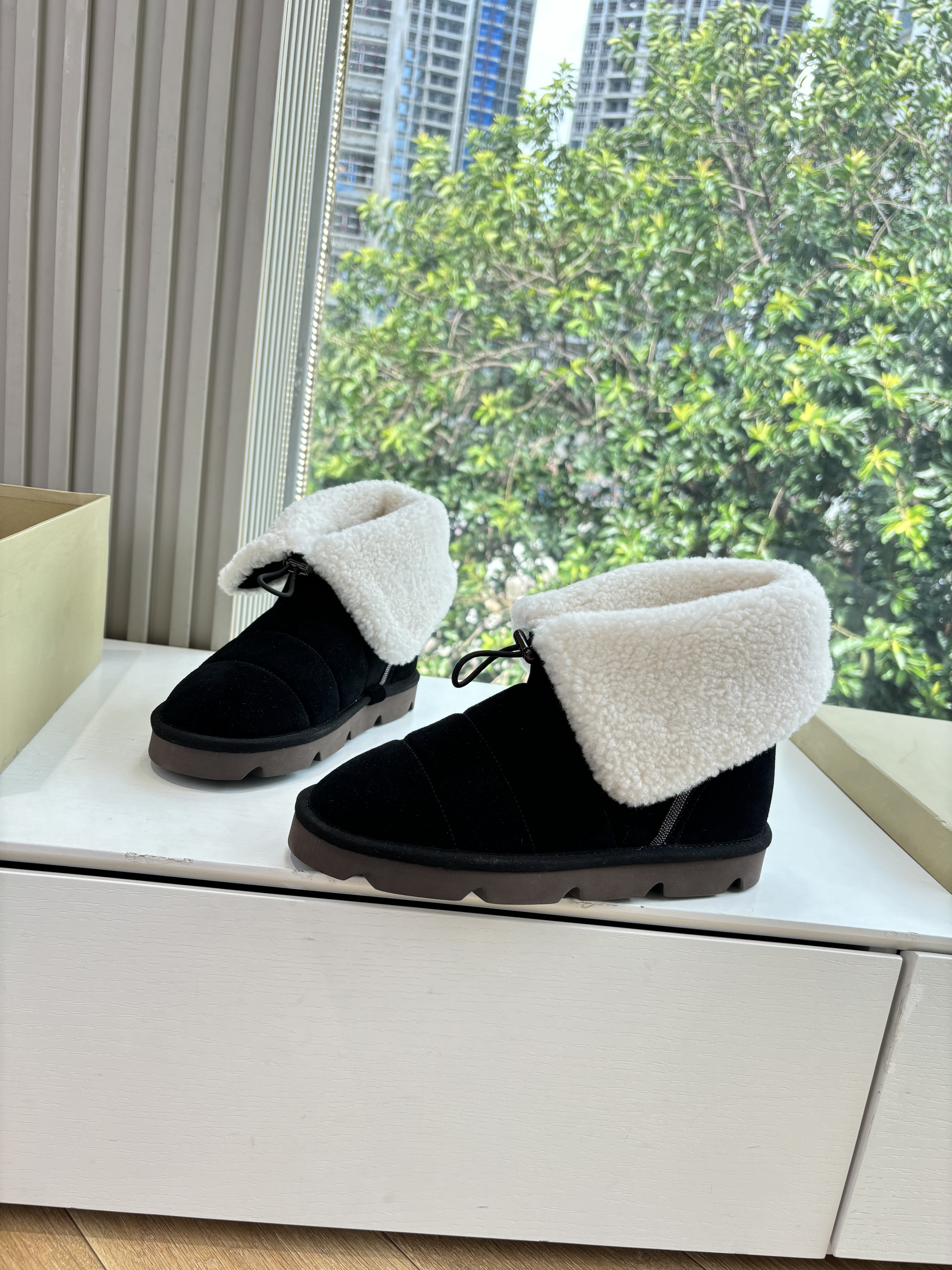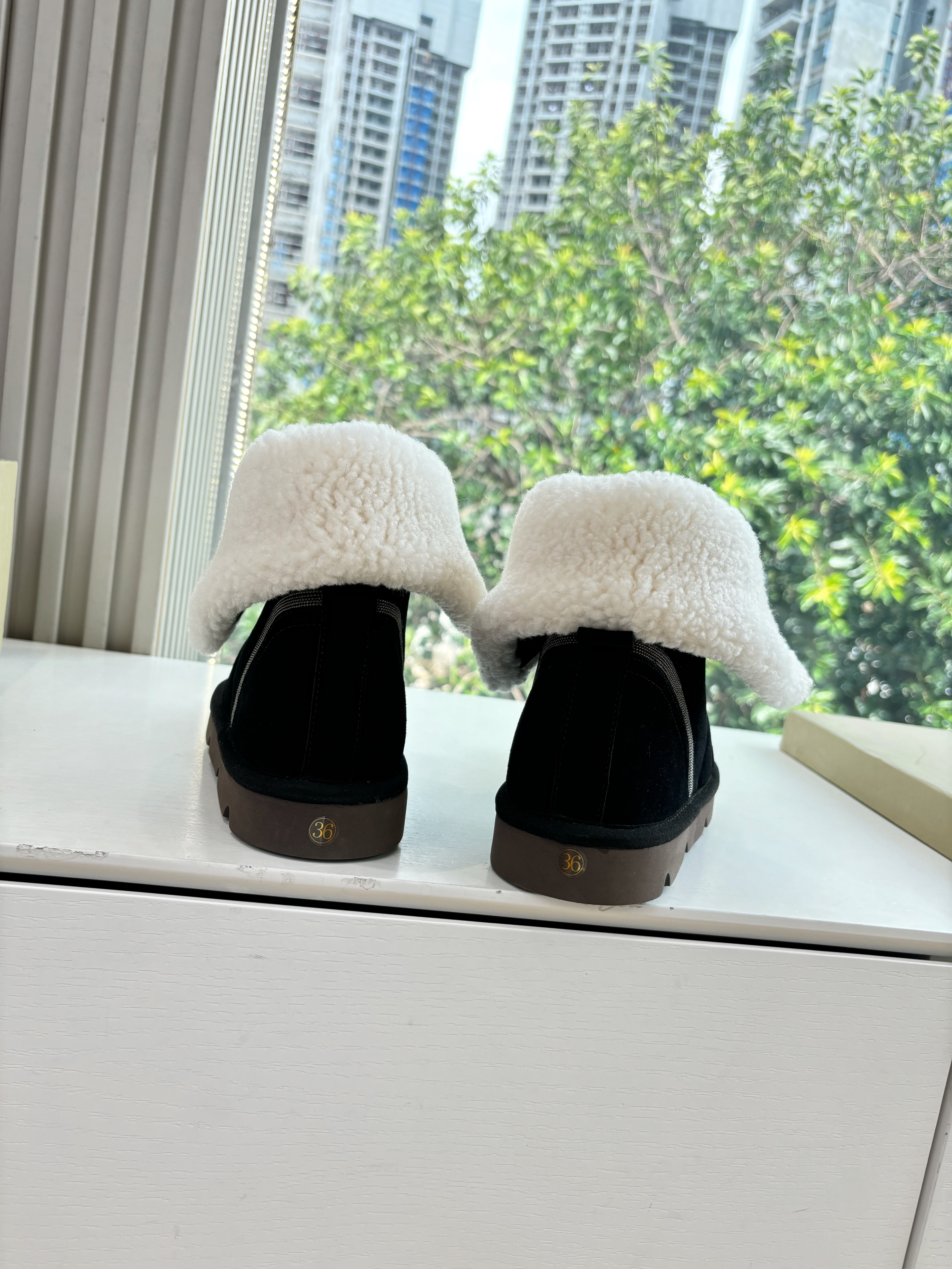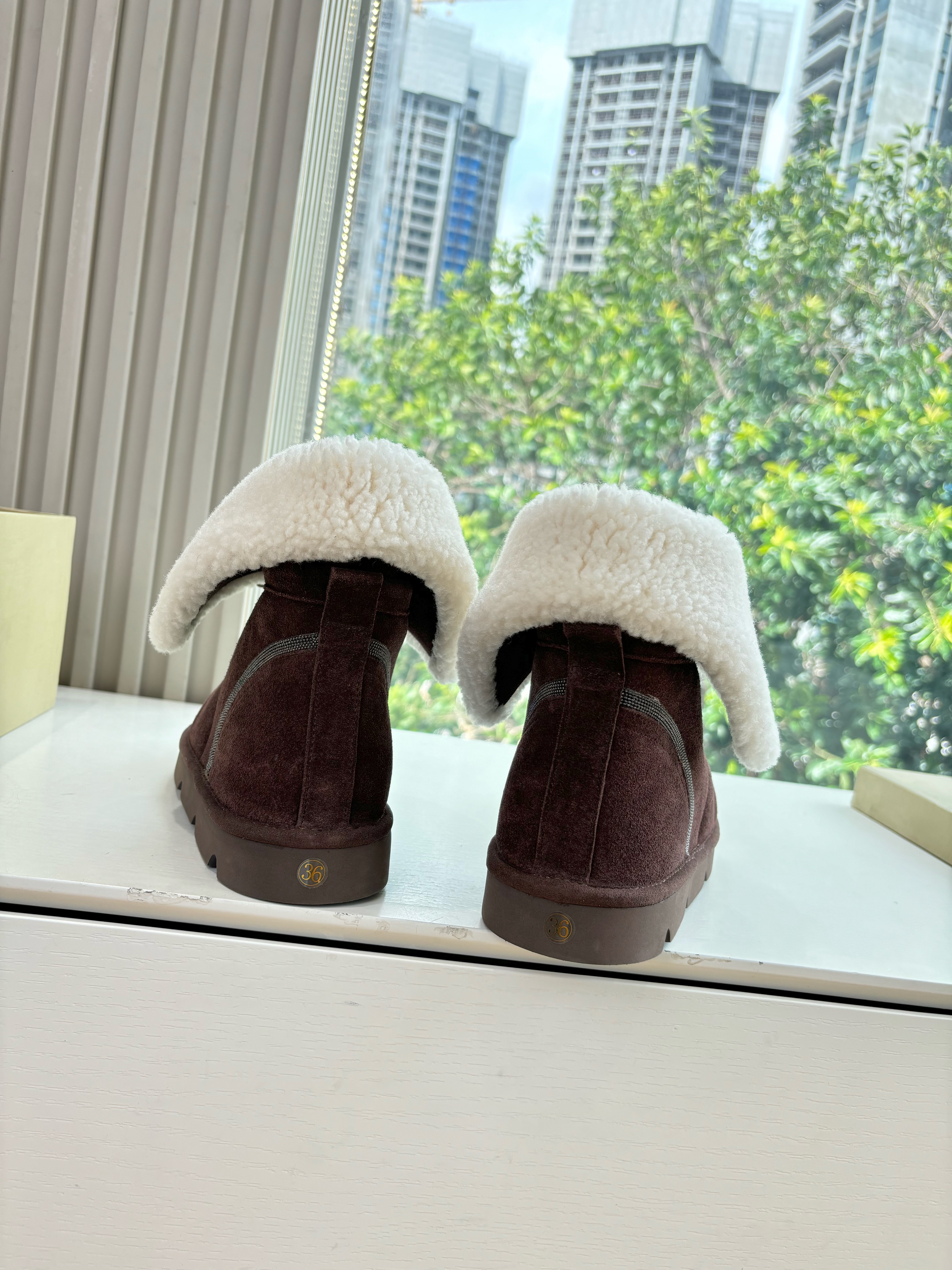 NIGO Brunello Cucinelli Women's Fall/Winter Matte Leather Solid-Color Chunky-Heel Snow Boots Short Boots Casual Cotton Slippers Shoes #nigo81586