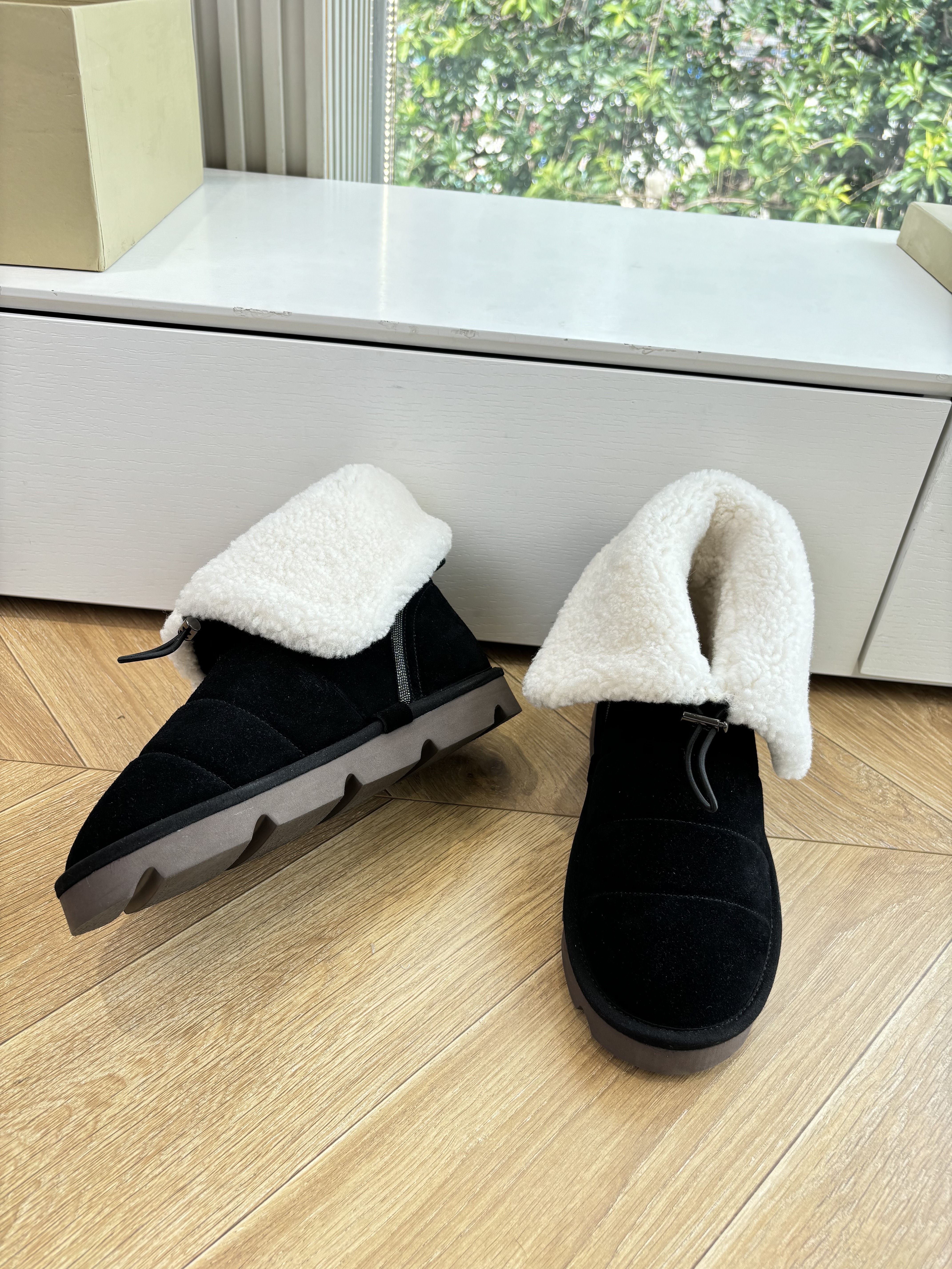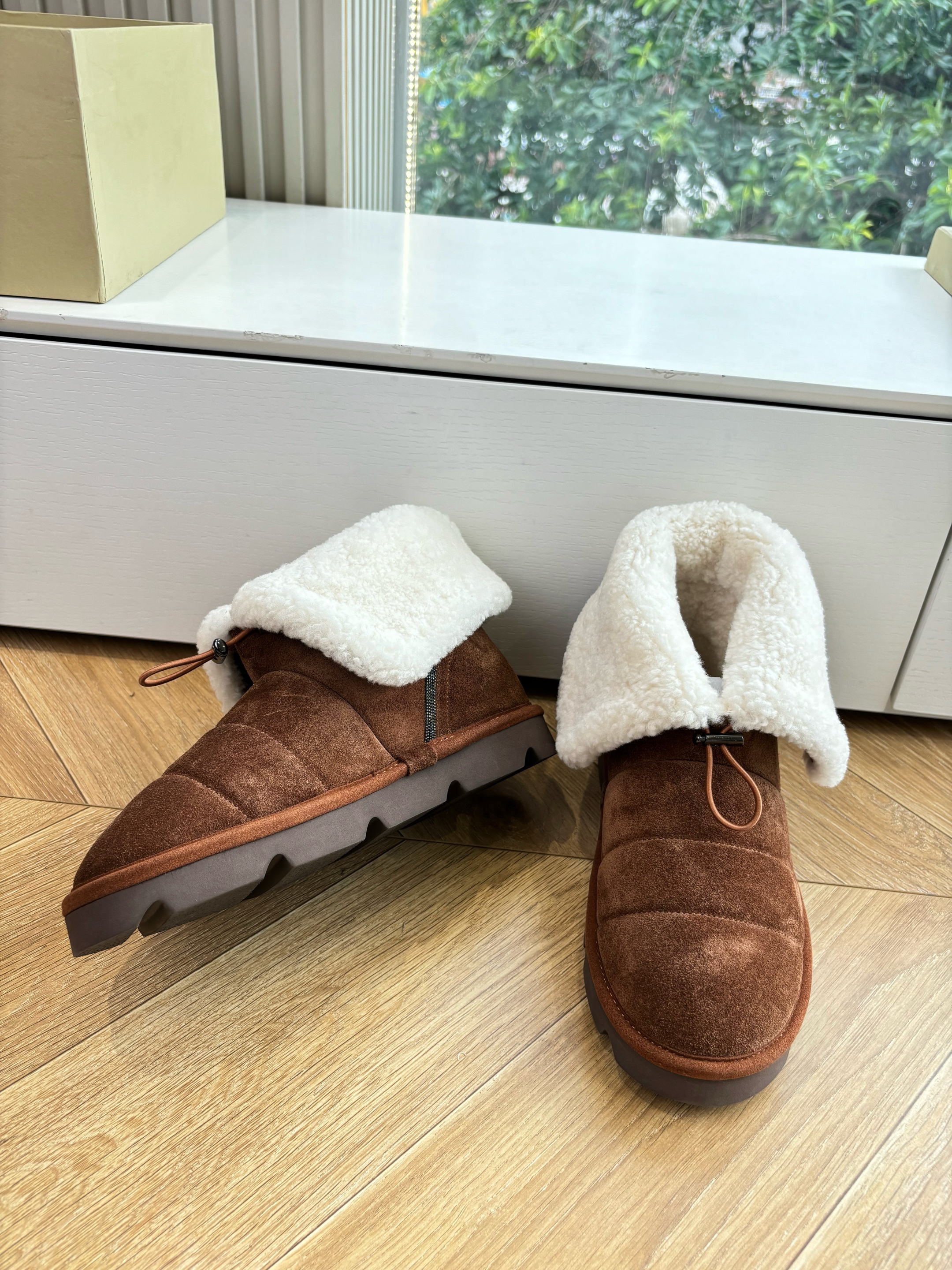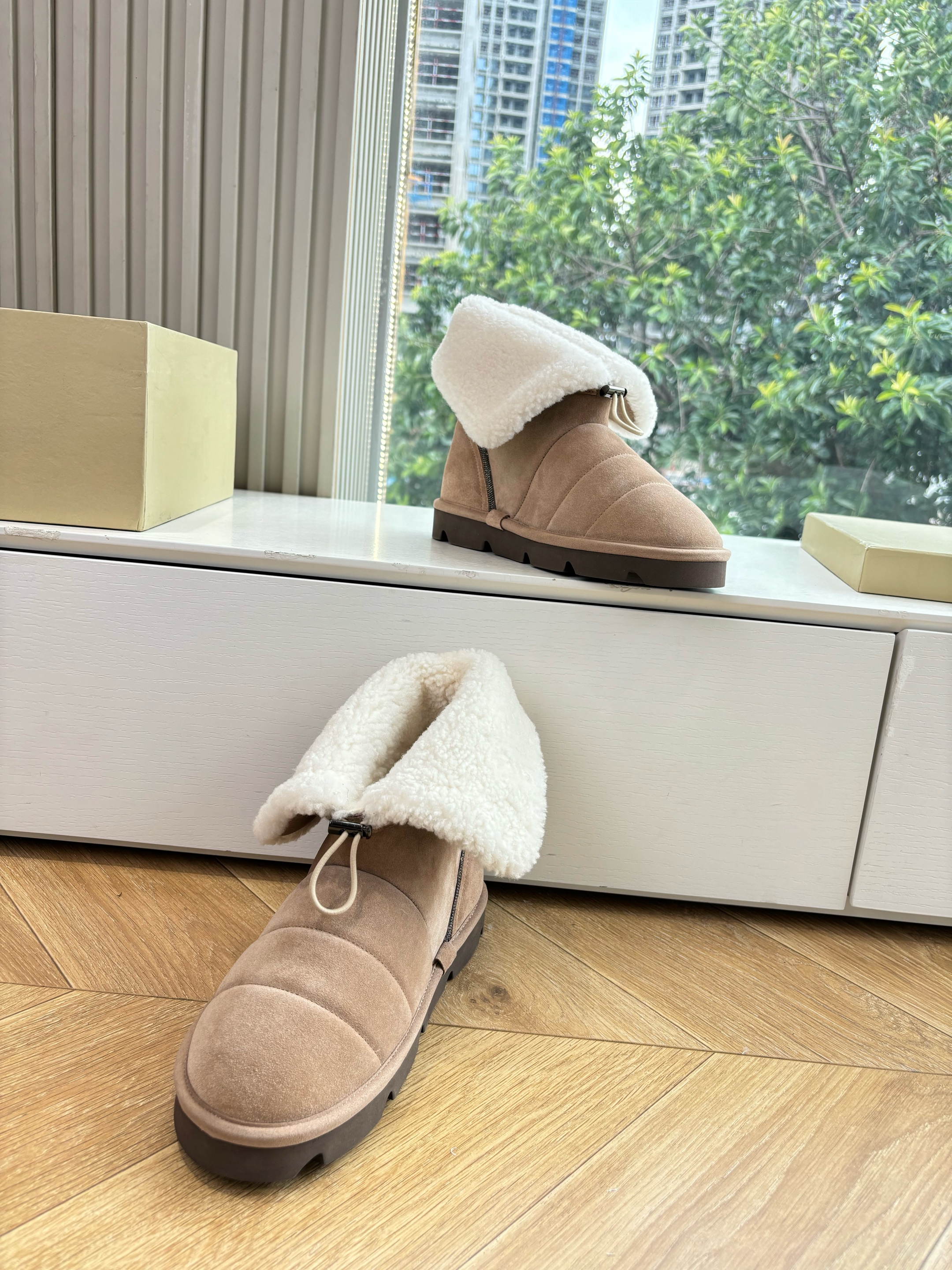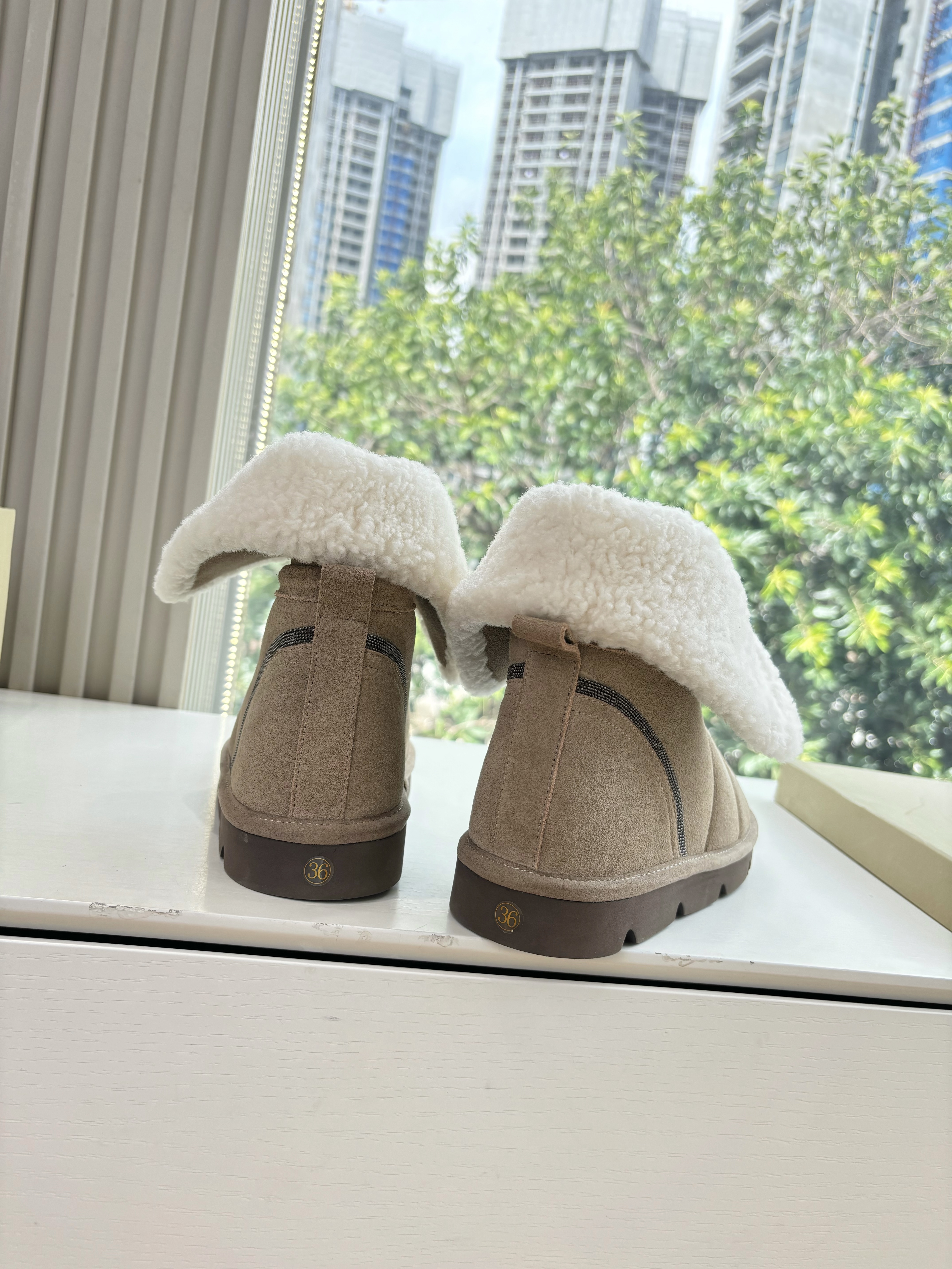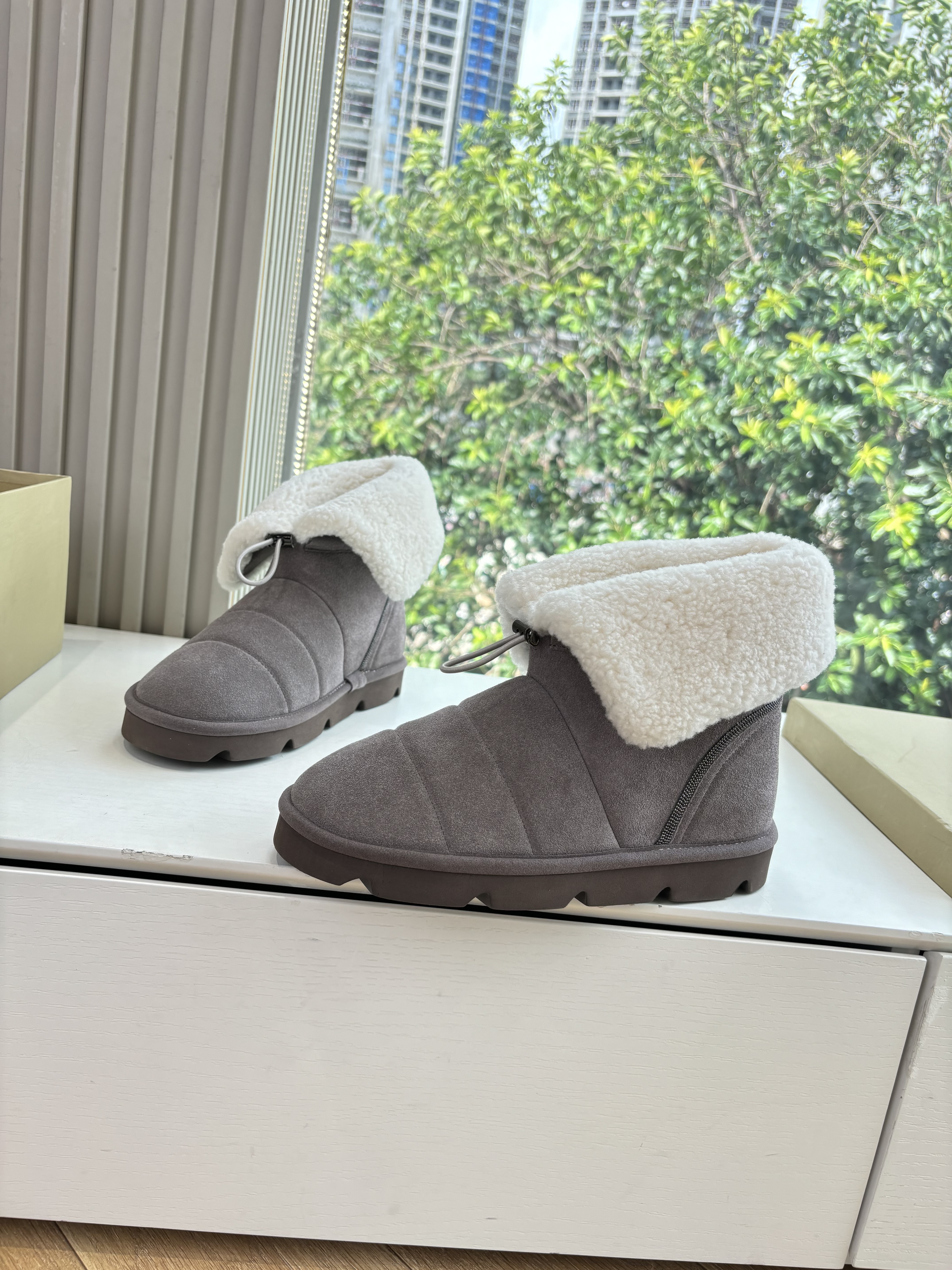 NIGO Brunello Cucinelli Women's Fall/Winter Matte Leather Solid-Color Chunky-Heel Snow Boots Short Boots Casual Cotton Slippers Shoes #nigo81586
