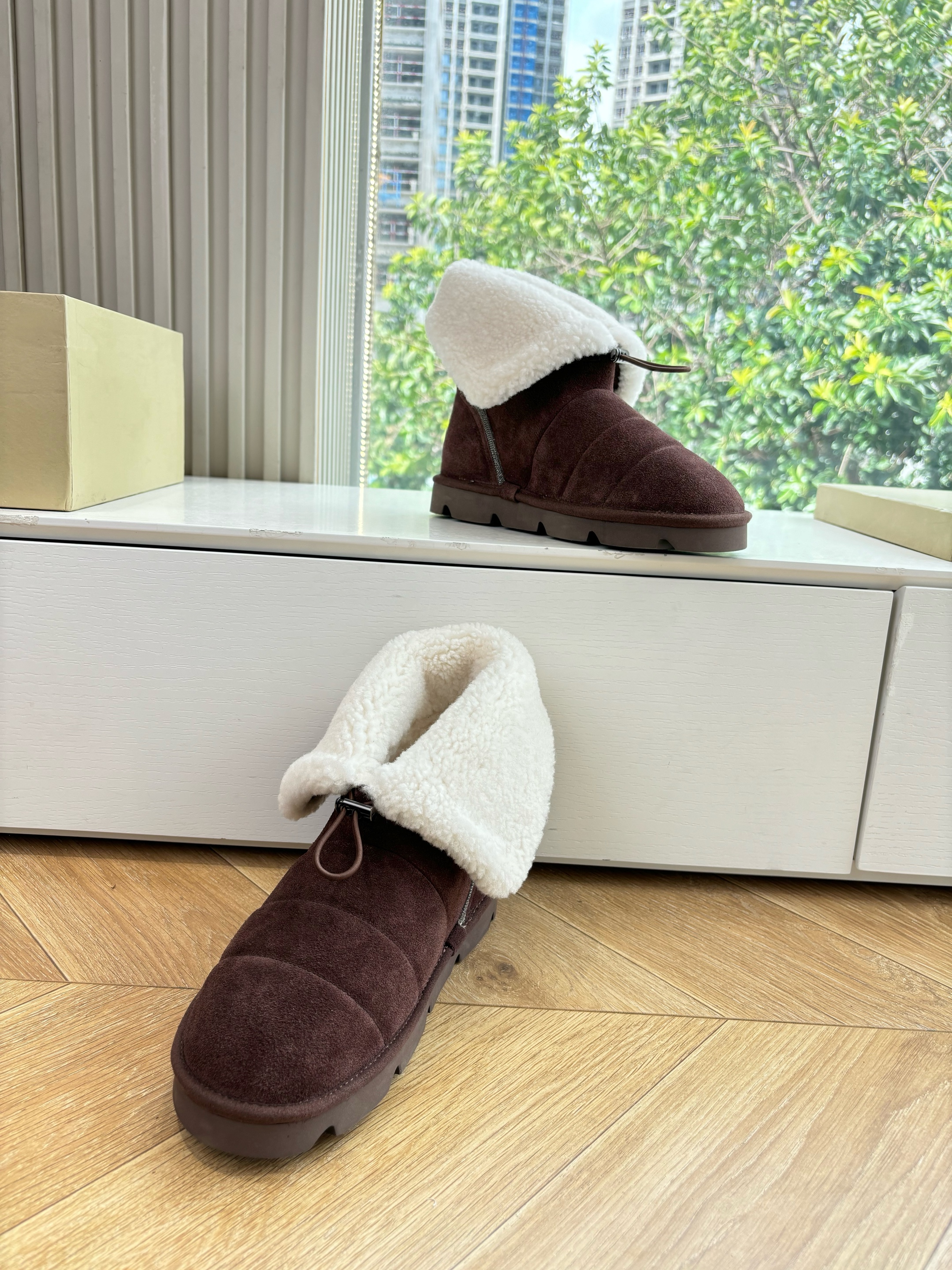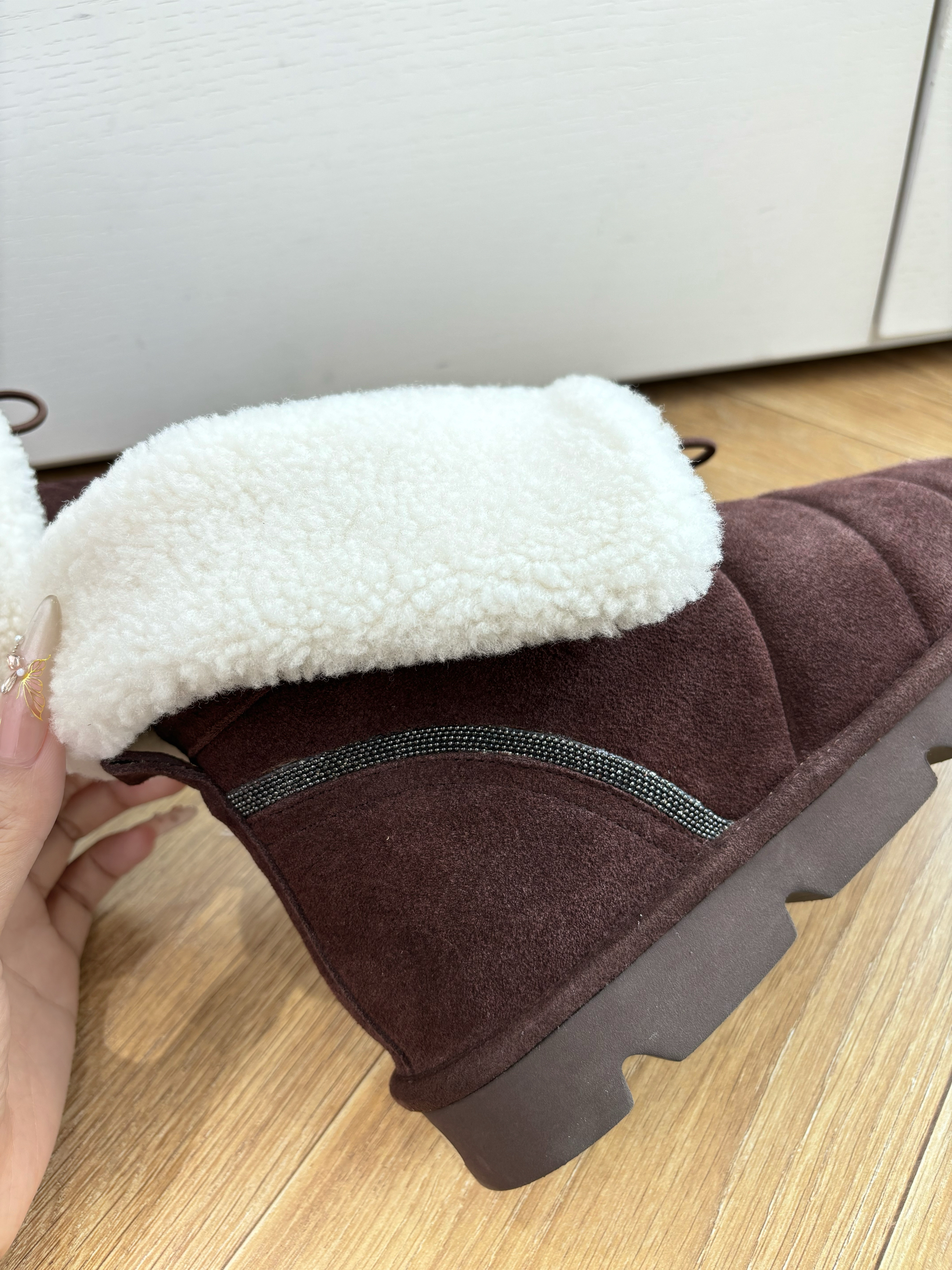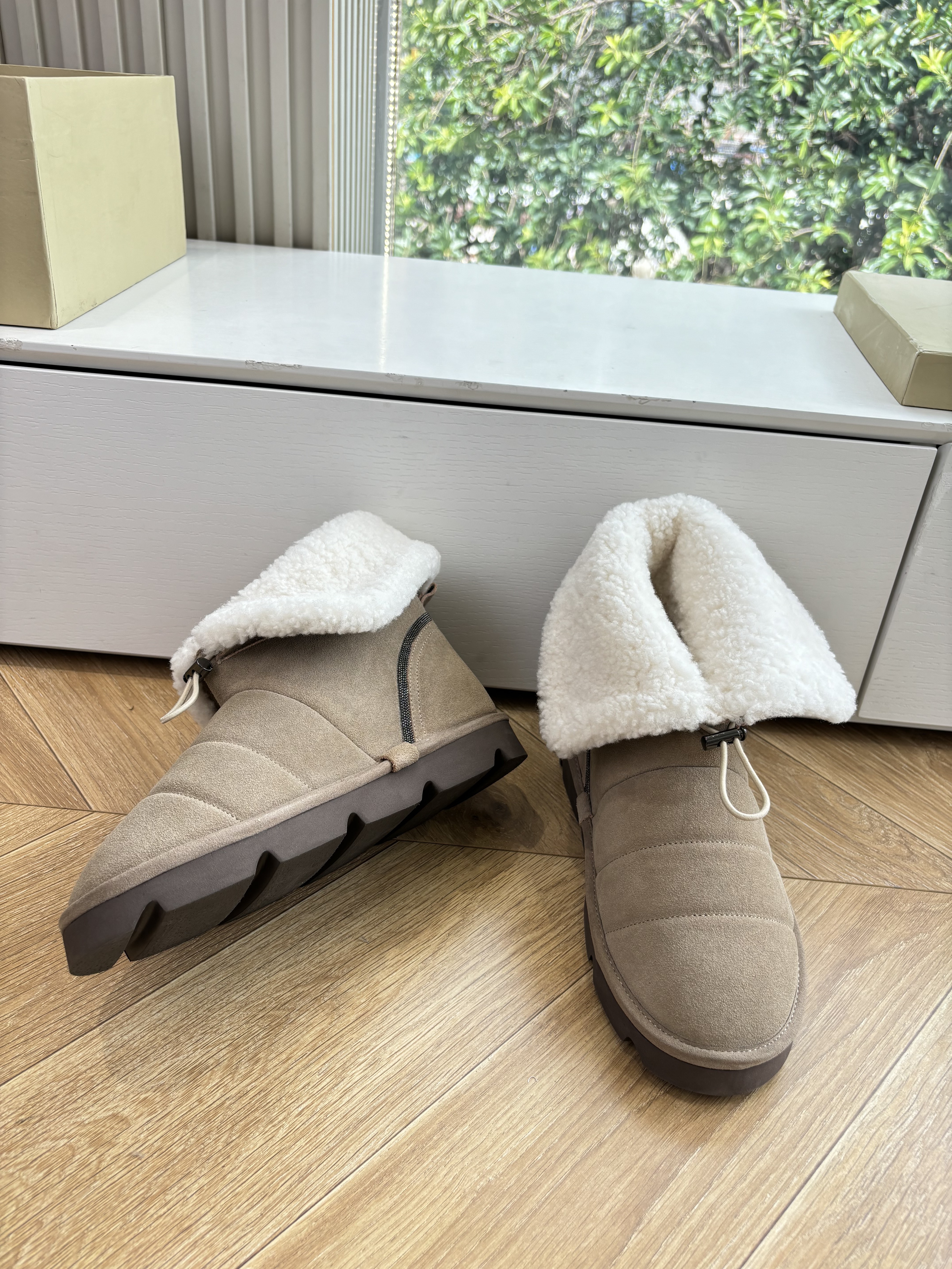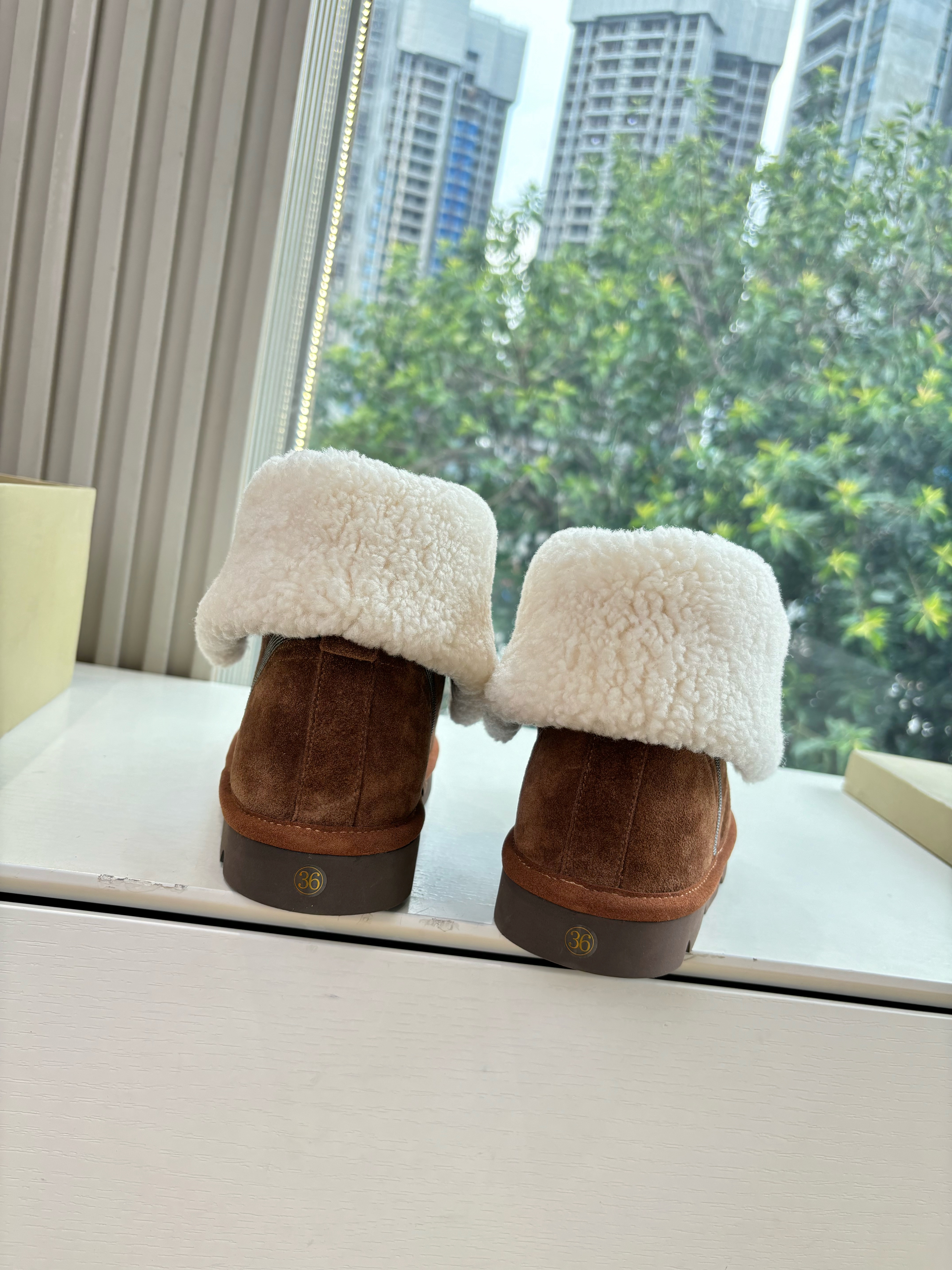 NIGO Brunello Cucinelli Women's Fall/Winter Matte Leather Solid-Color Chunky-Heel Snow Boots Short Boots Casual Cotton Slippers Shoes #nigo81586