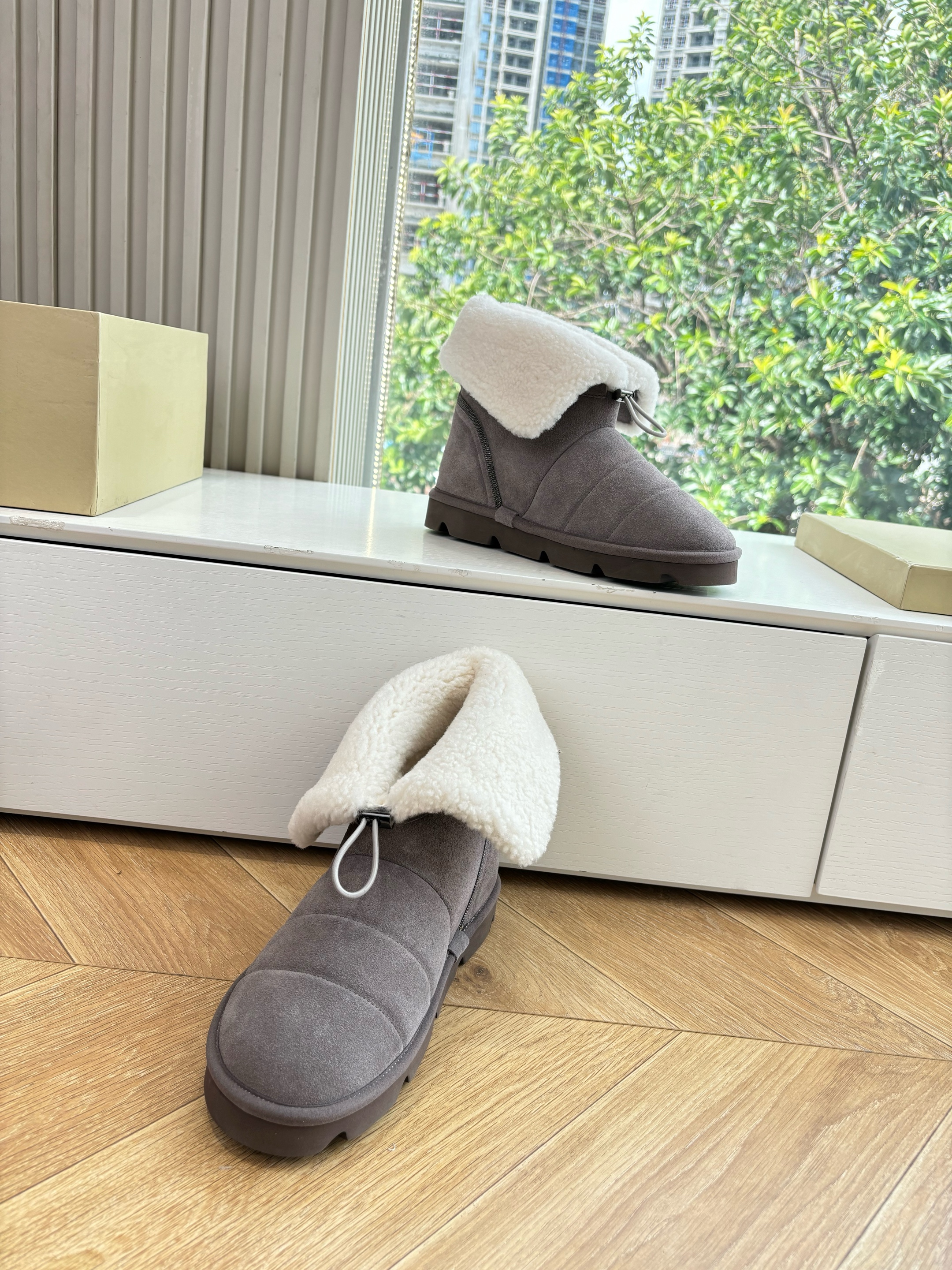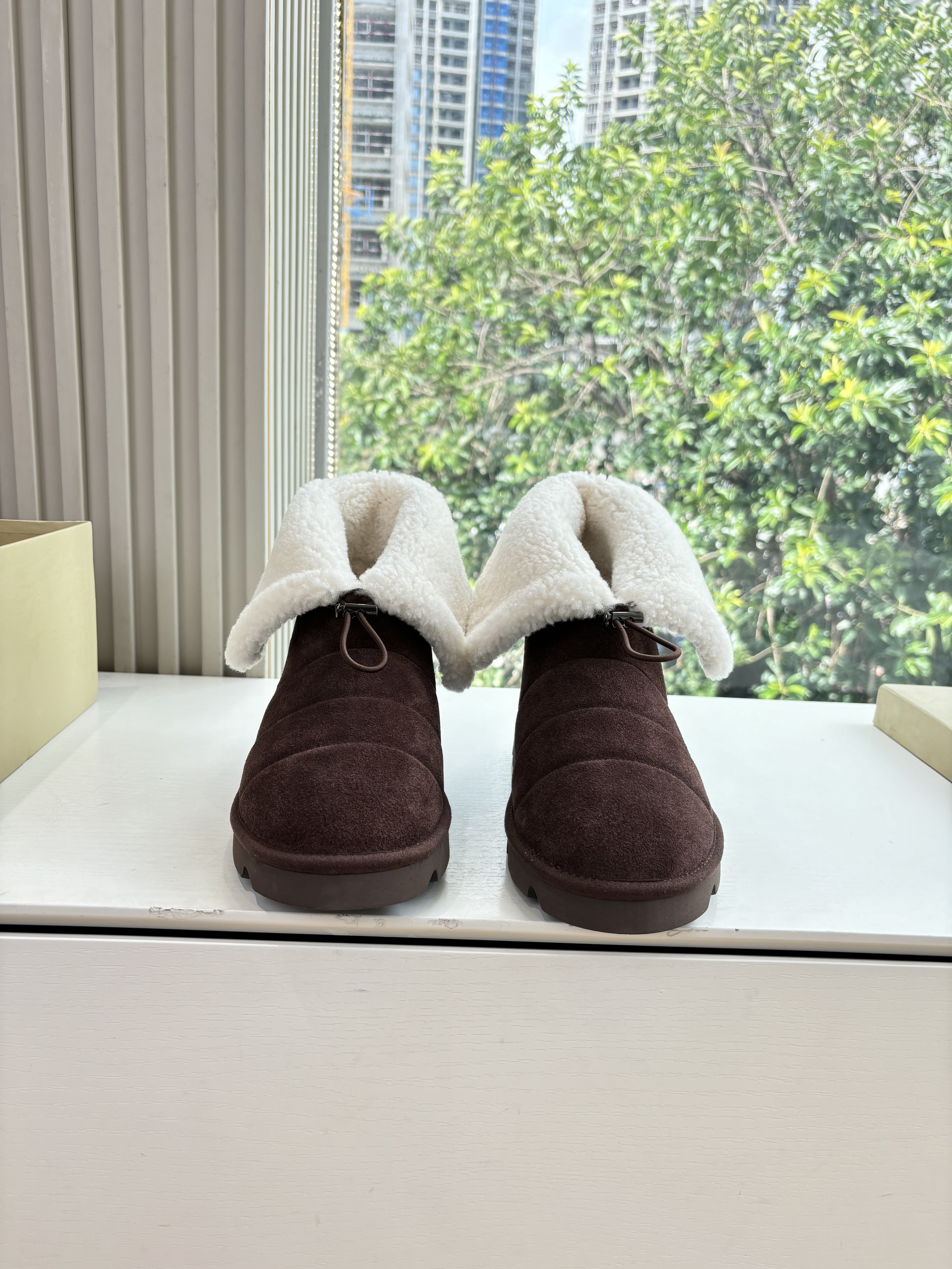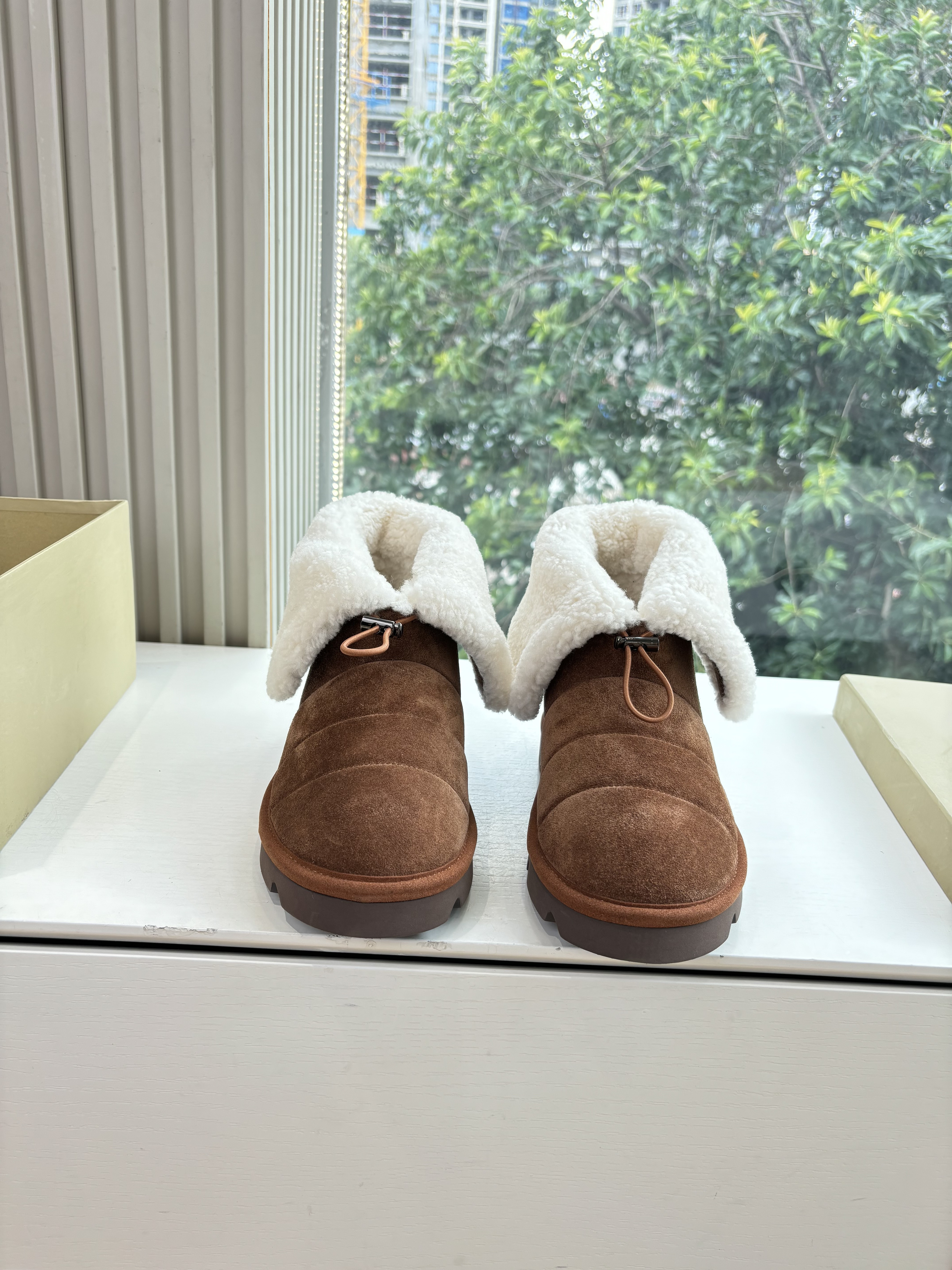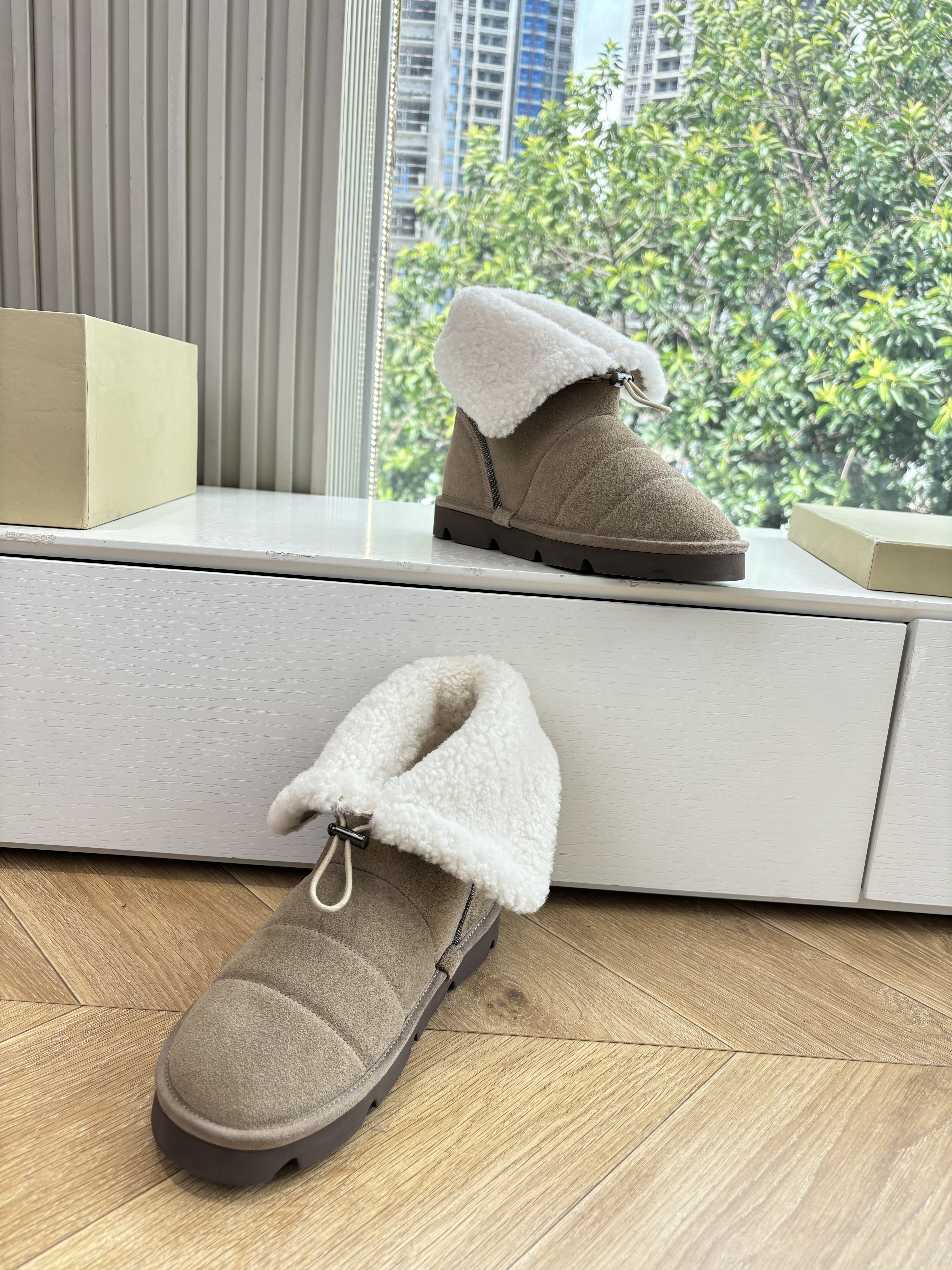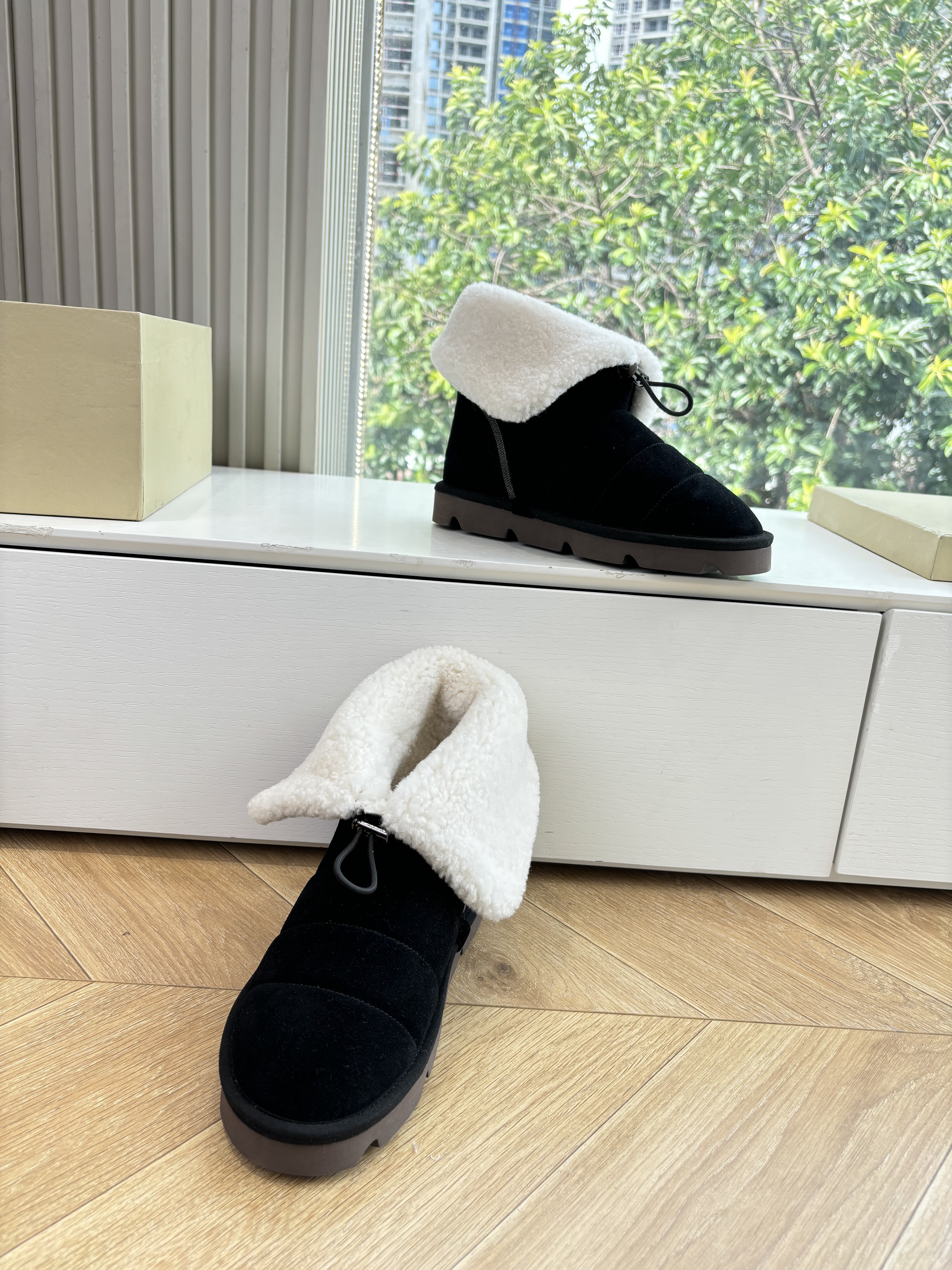 NIGO Brunello Cucinelli Women's Fall/Winter Matte Leather Solid-Color Chunky-Heel Snow Boots Short Boots Casual Cotton Slippers Shoes #nigo81586