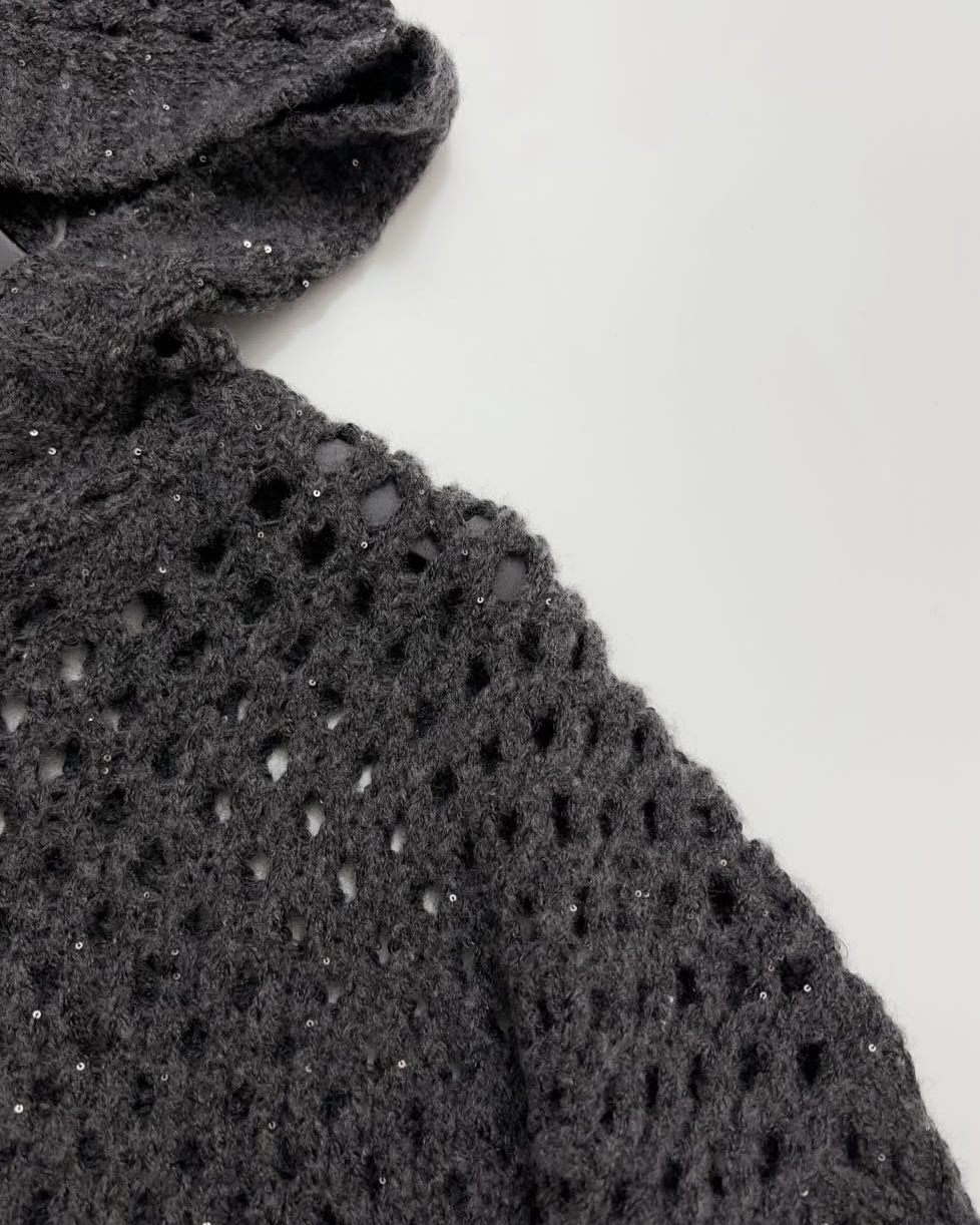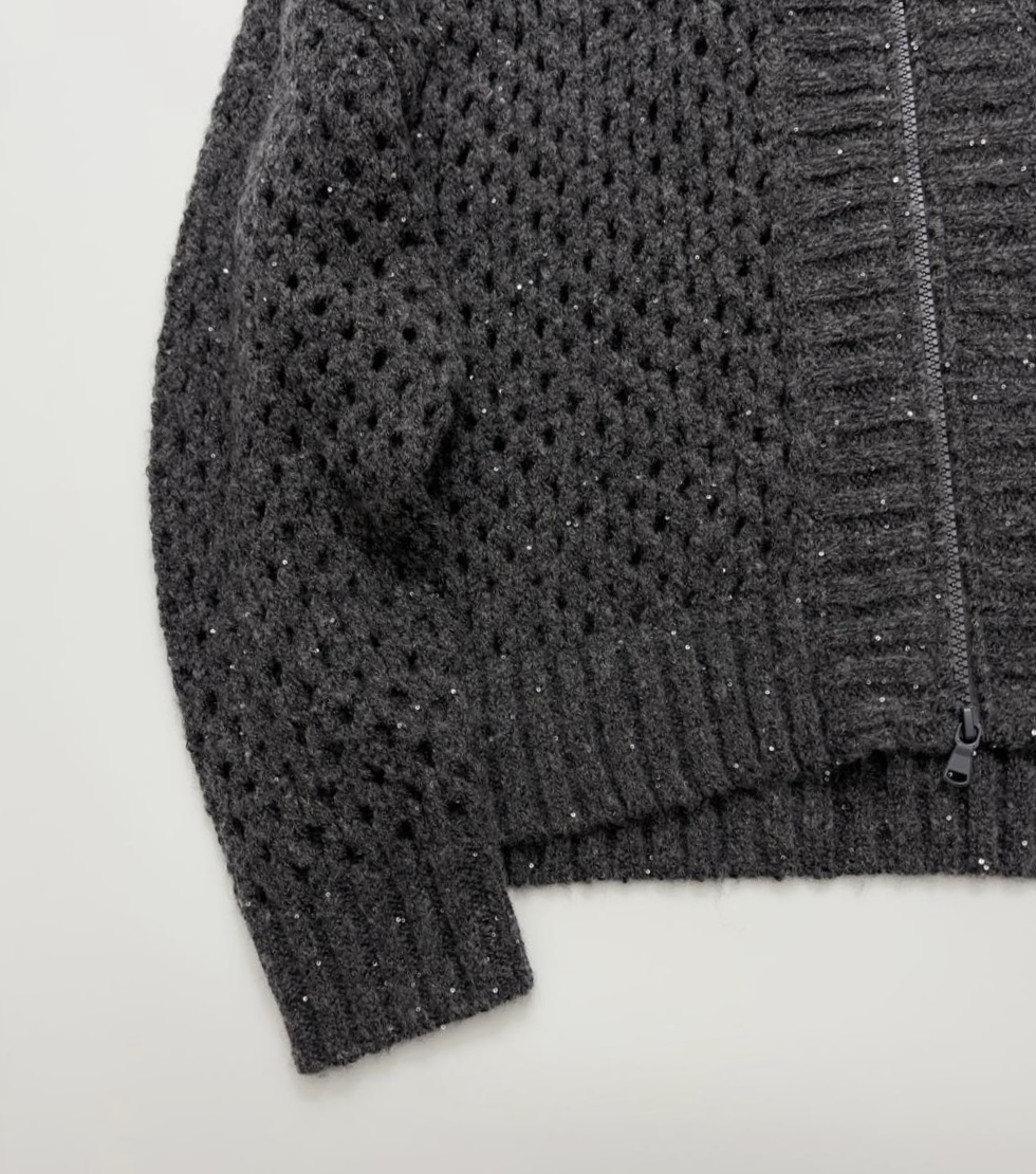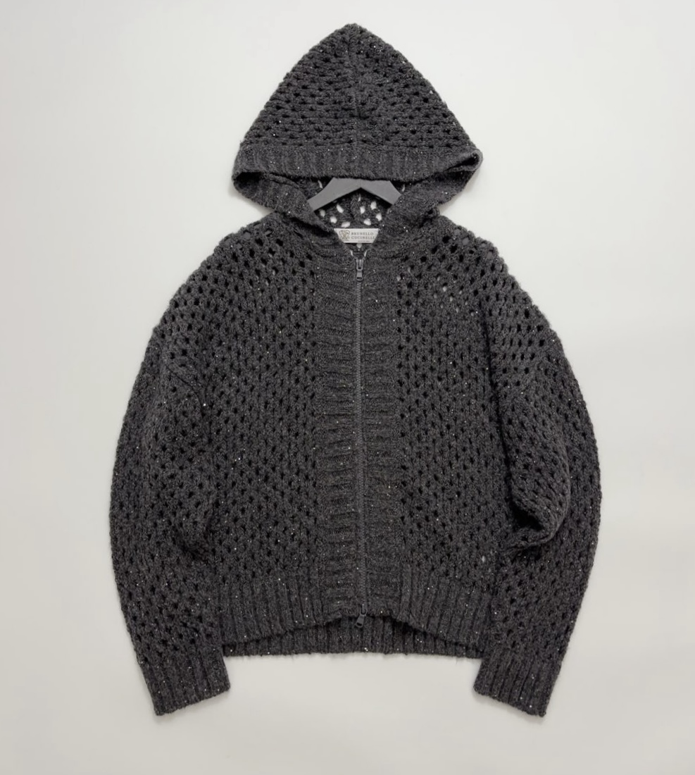 NIGO Brunello Cucinelli Women's Spring/Fall Vintage Sequined Lace-Up Oversized Zipper Knit Hooded Cardigan Ngvp #nigo2311