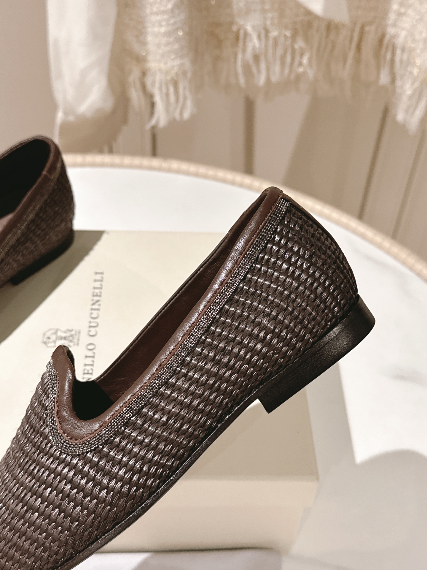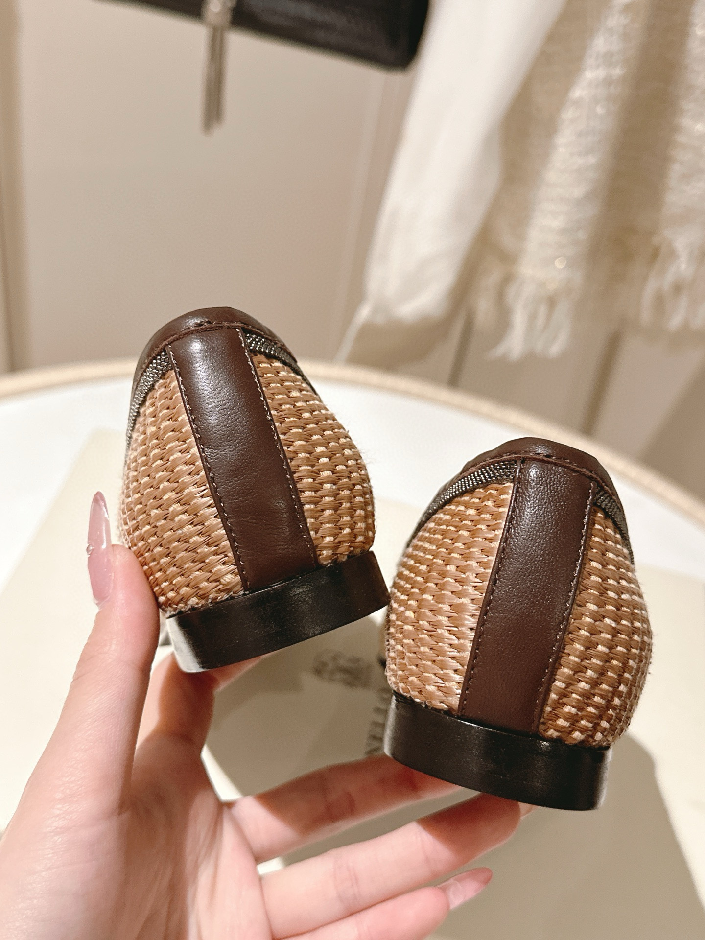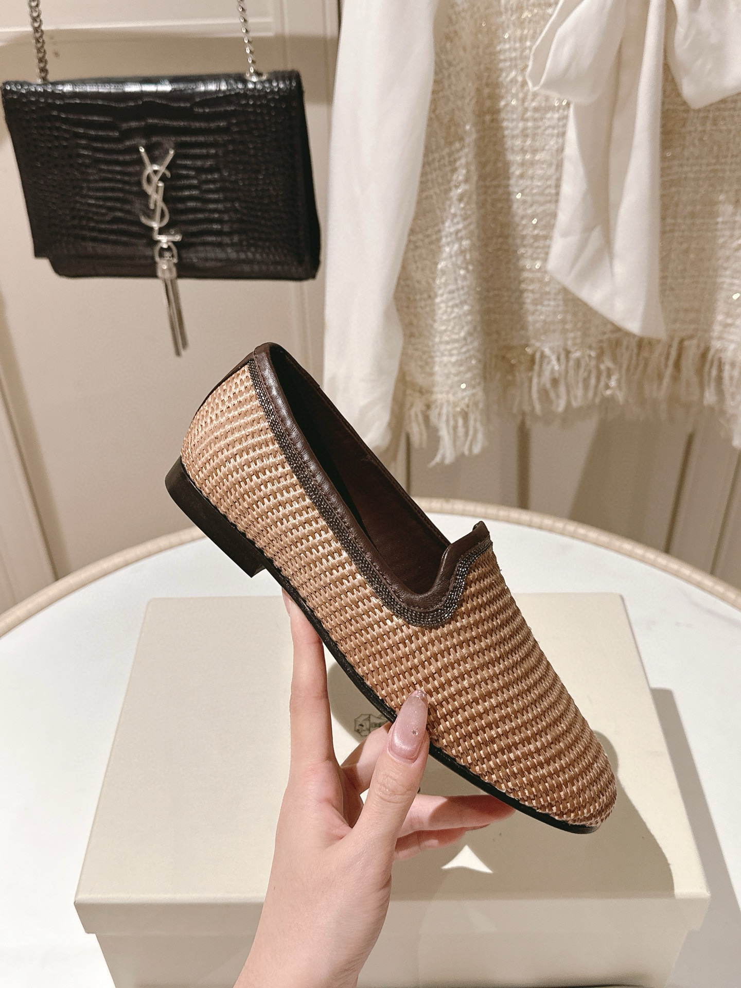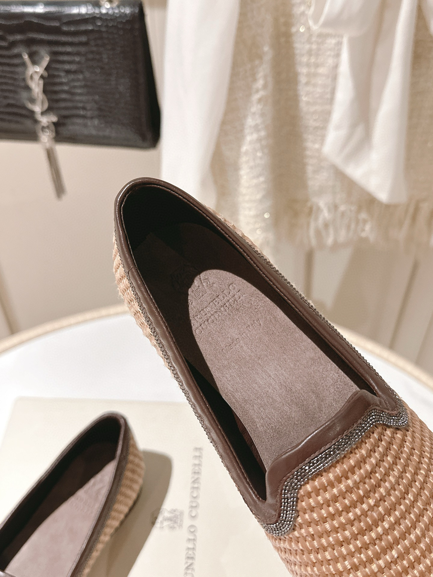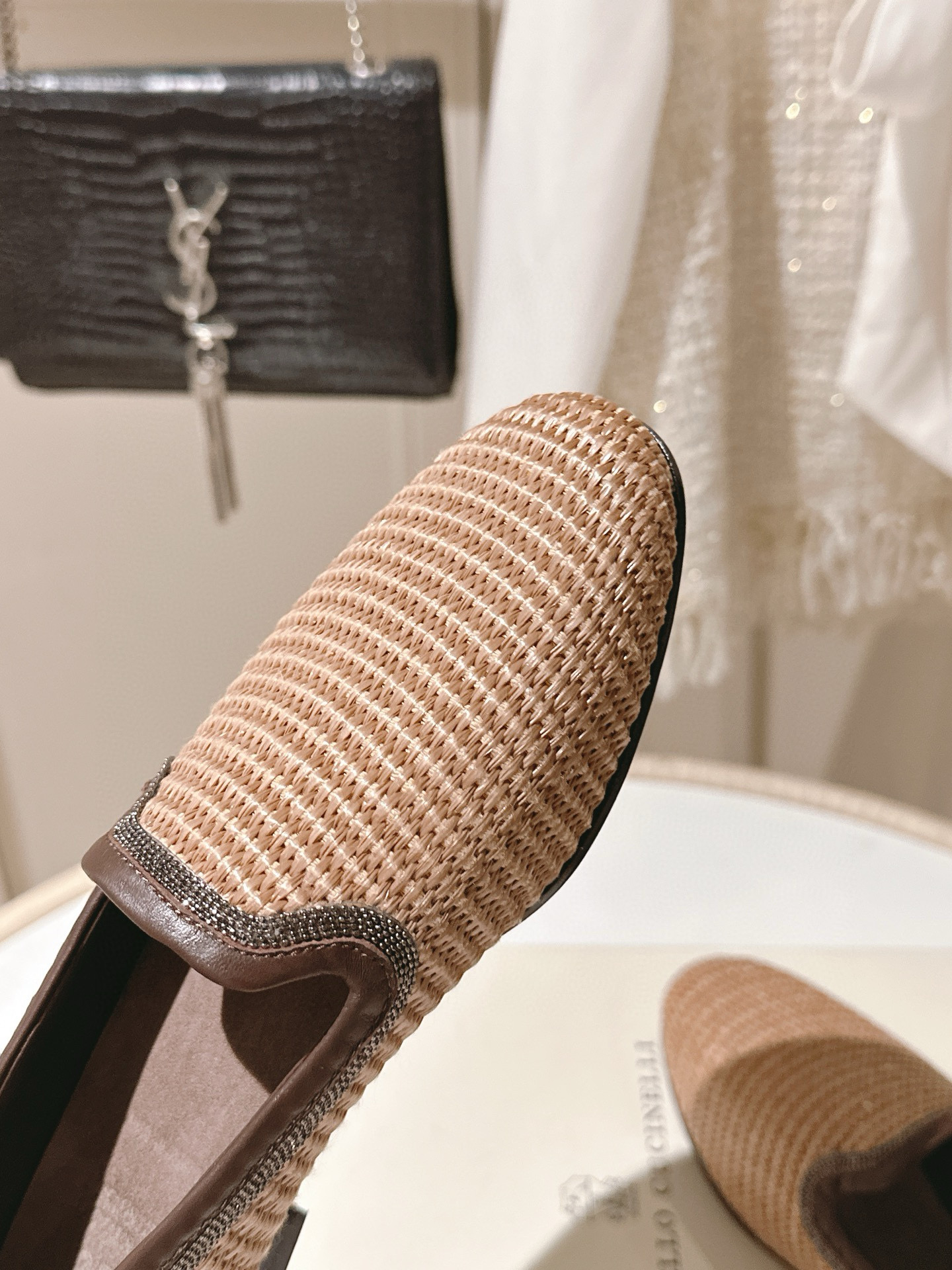 NIGO Brunello Cucinelli Women's Techno Raffia Slippers With Precious Trim Round Toe Solid Color Single Shoes Sheepskin Tassel Embellished Four Seasons Casual Flats Shoes Ngvp #nigo1537
