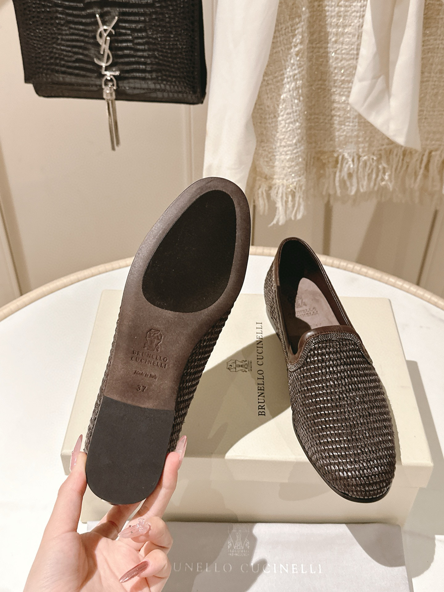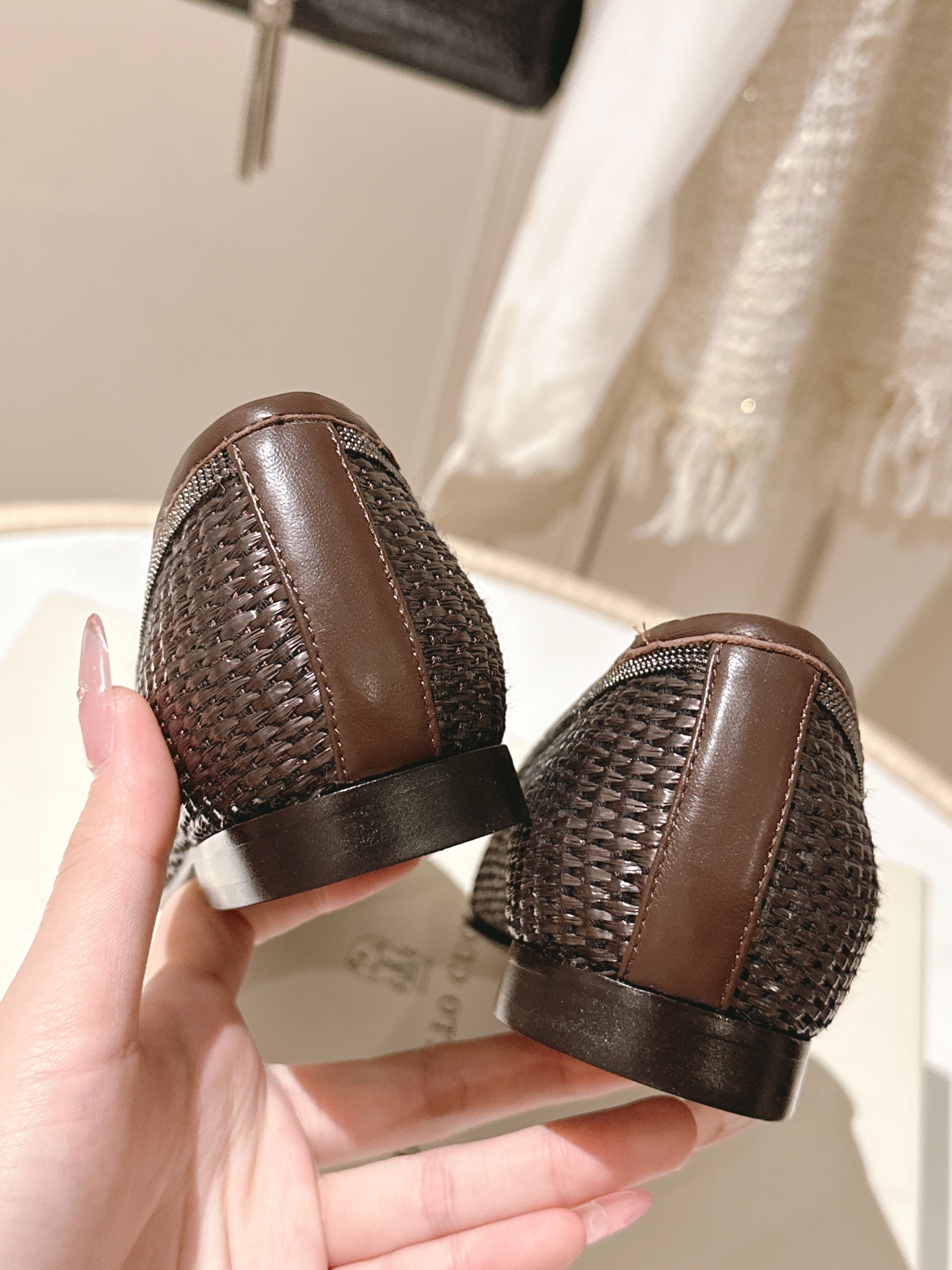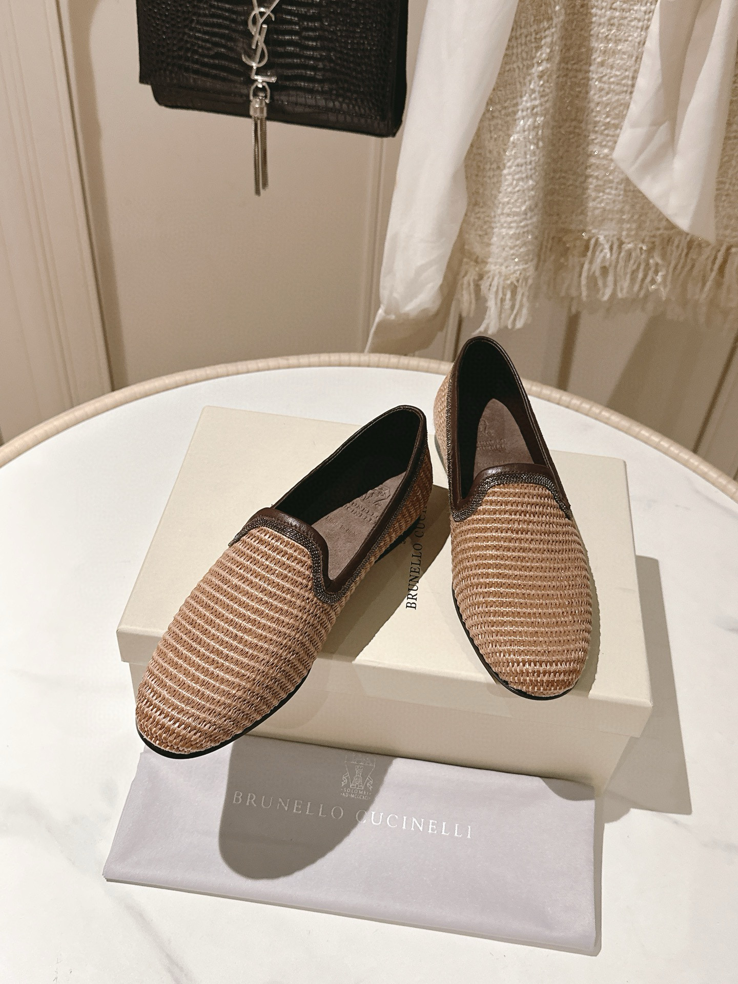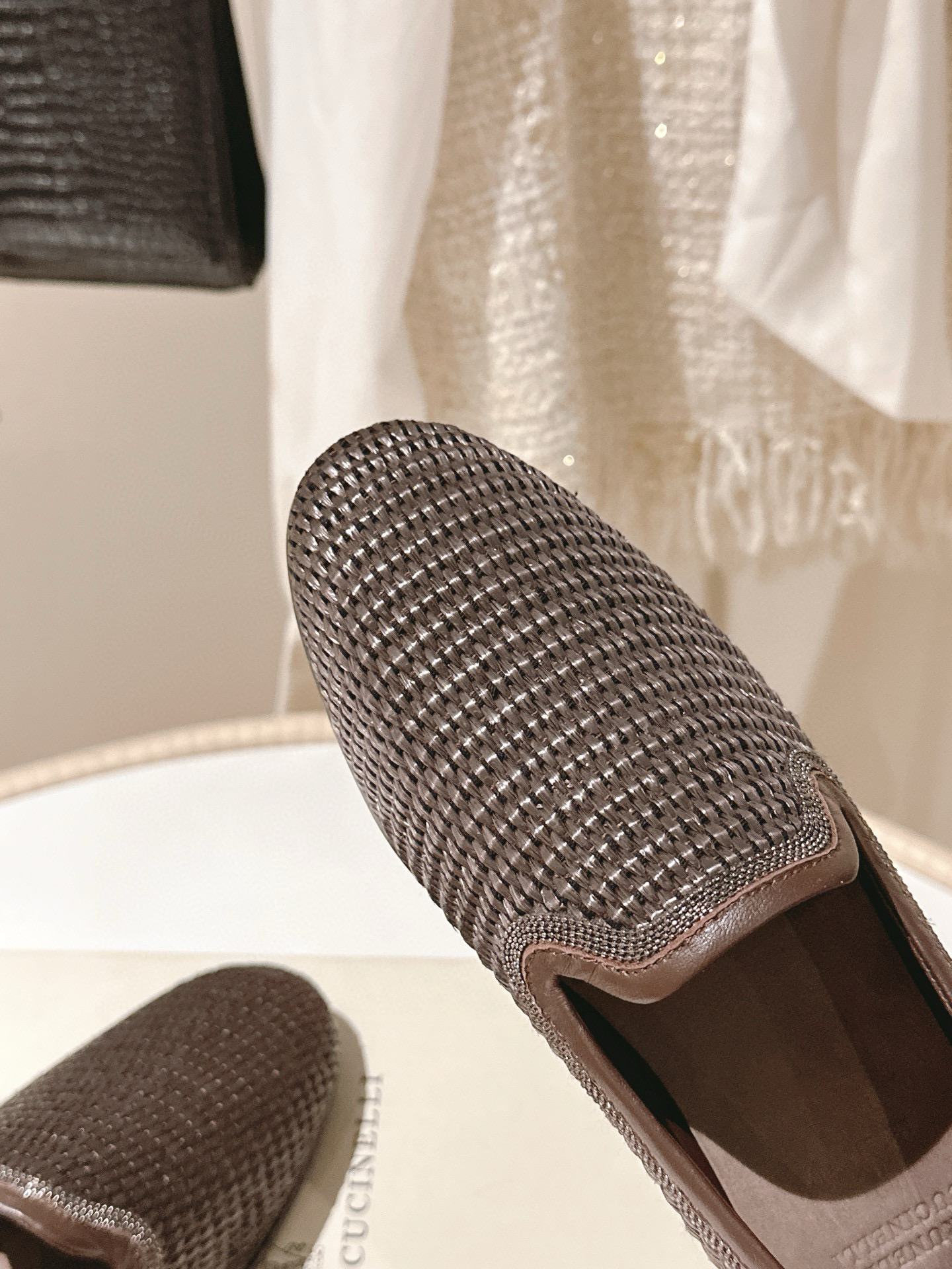 NIGO Brunello Cucinelli Women's Techno Raffia Slippers With Precious Trim Round Toe Solid Color Single Shoes Sheepskin Tassel Embellished Four Seasons Casual Flats Shoes Ngvp #nigo1537