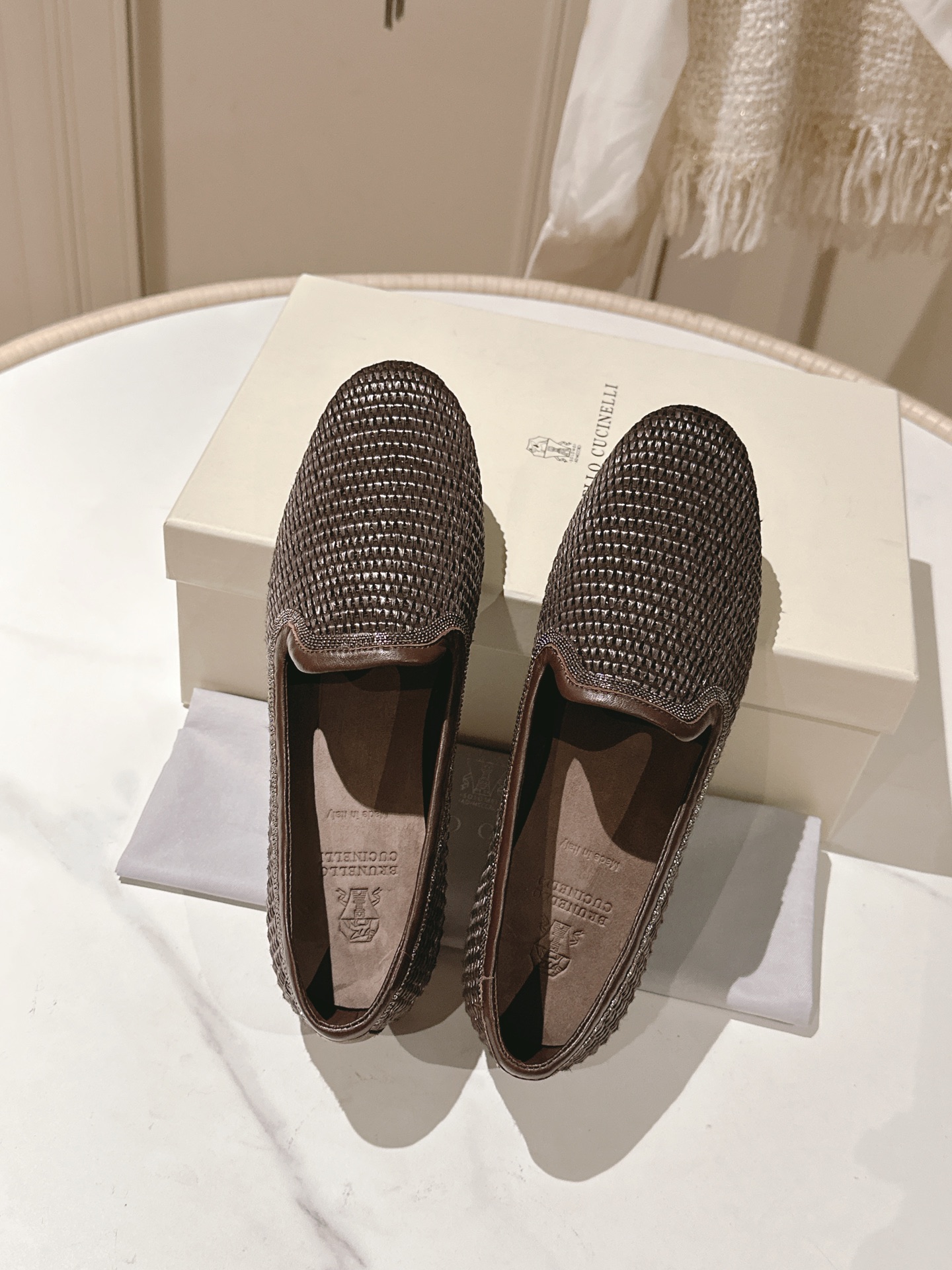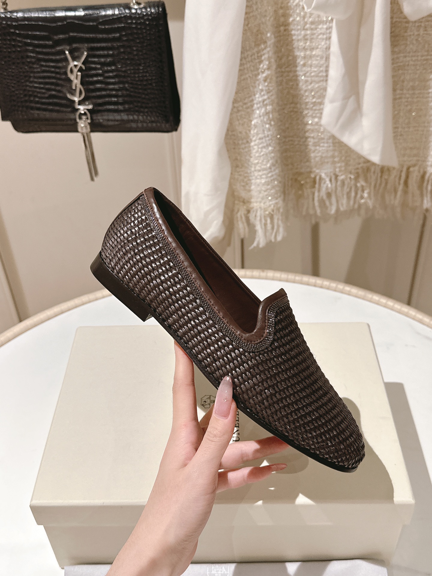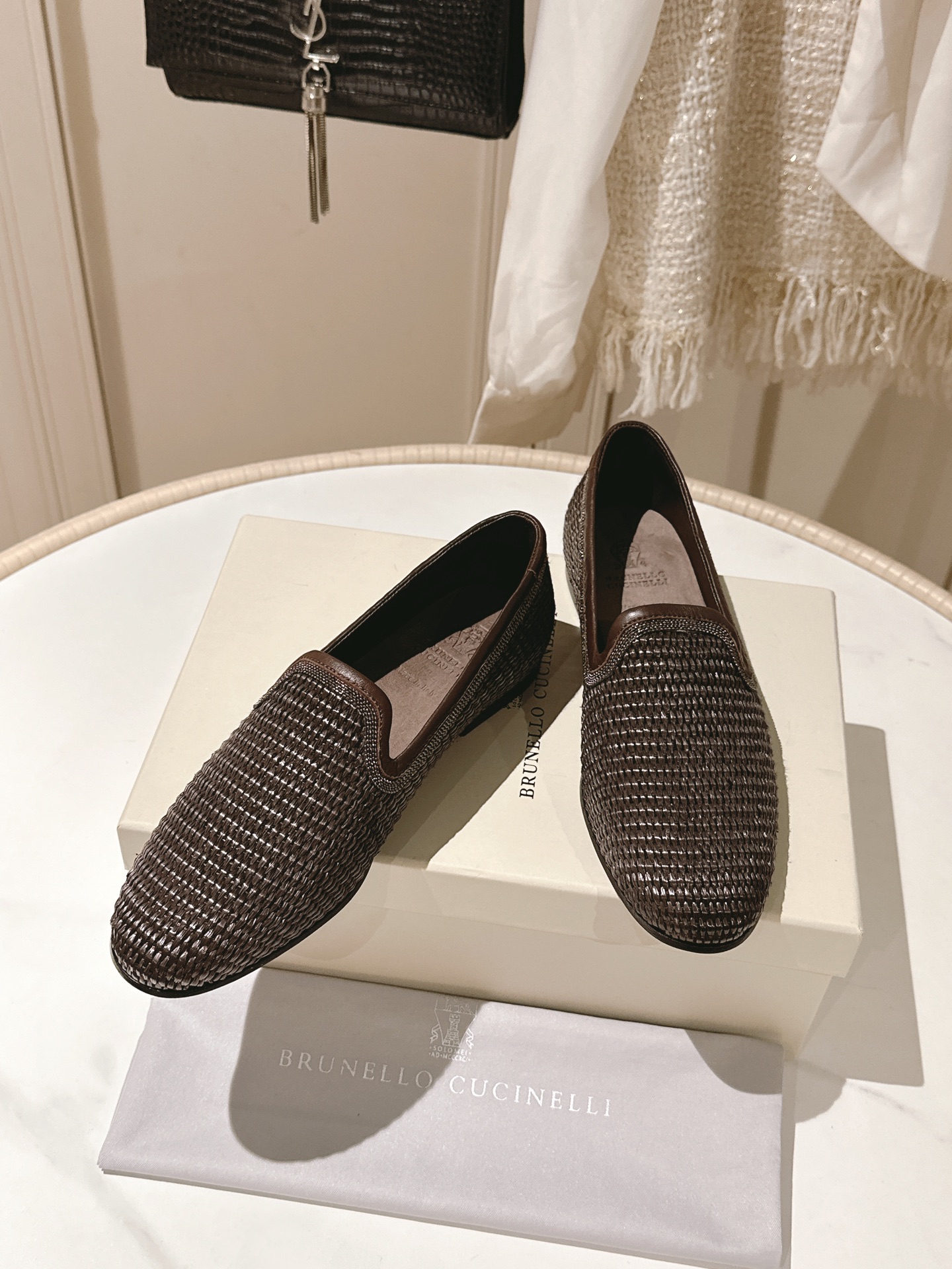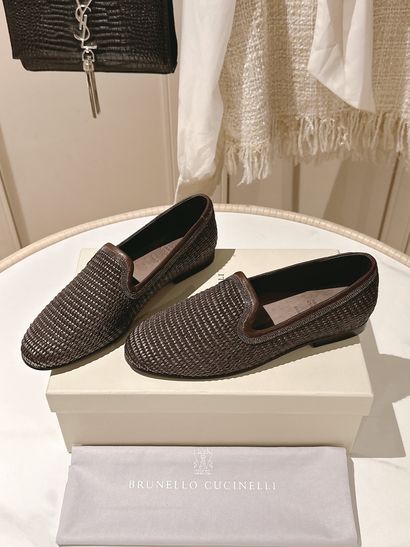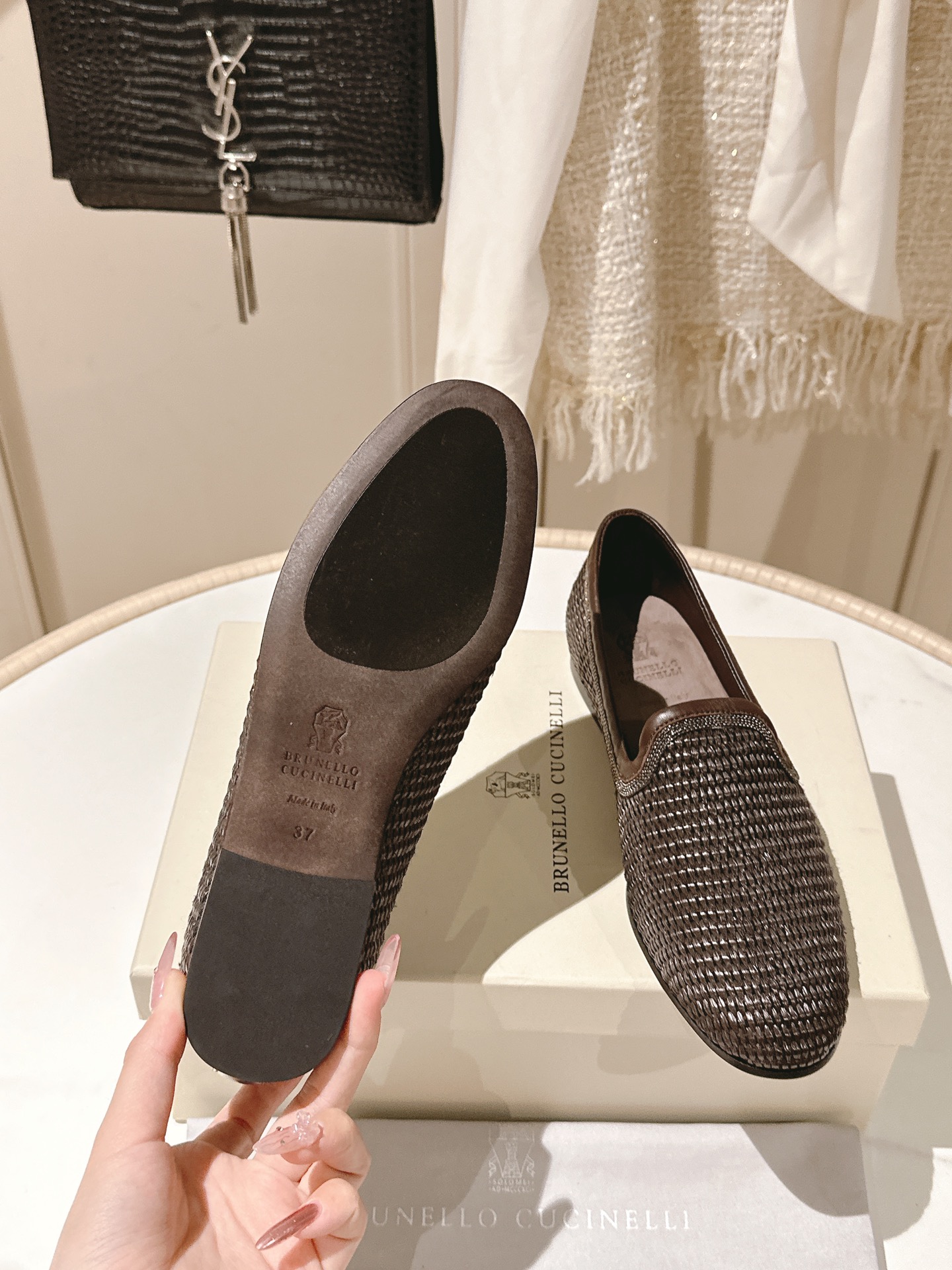 NIGO Brunello Cucinelli Women's Techno Raffia Slippers With Precious Trim Round Toe Solid Color Single Shoes Sheepskin Tassel Embellished Four Seasons Casual Flats Shoes Ngvp #nigo1537