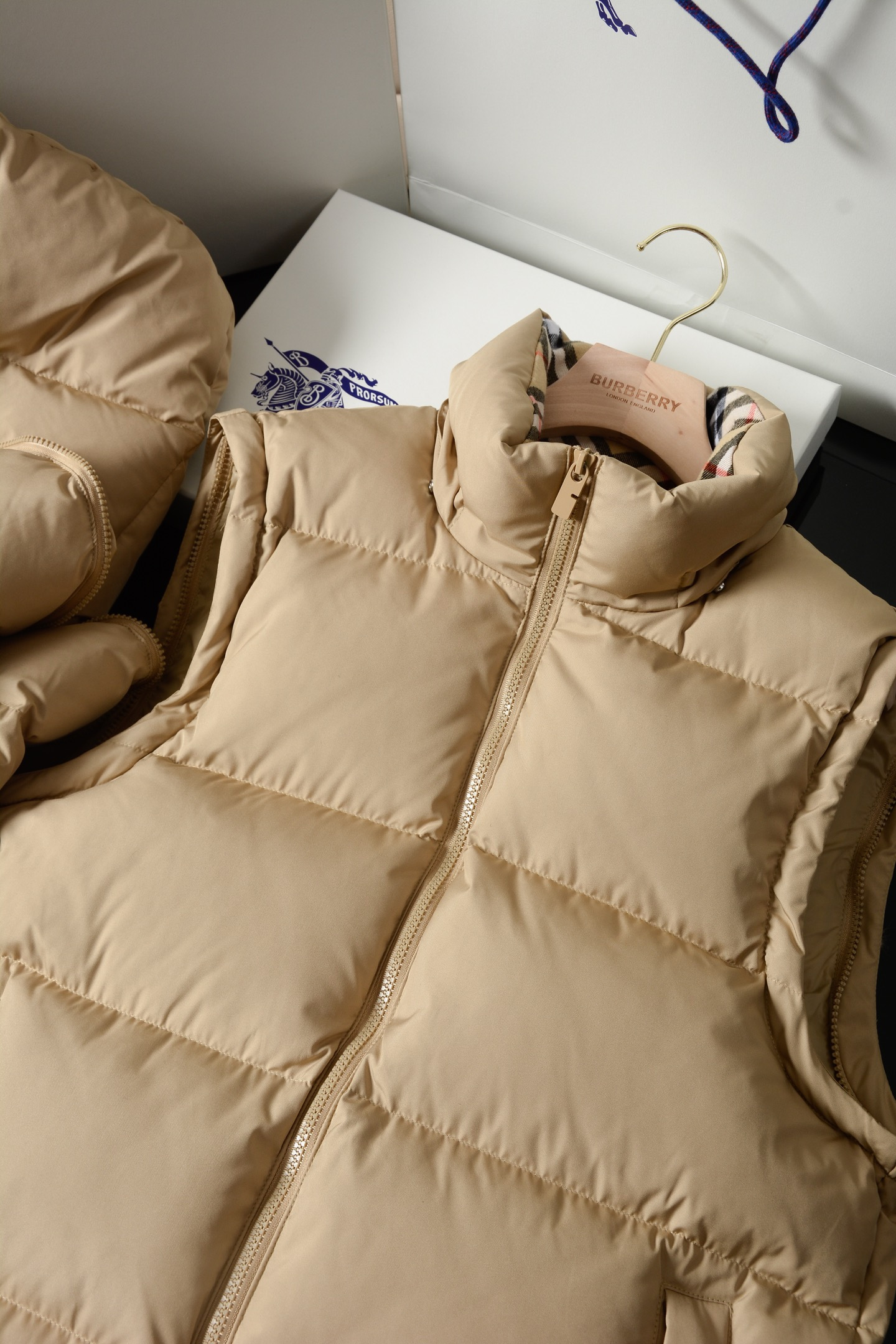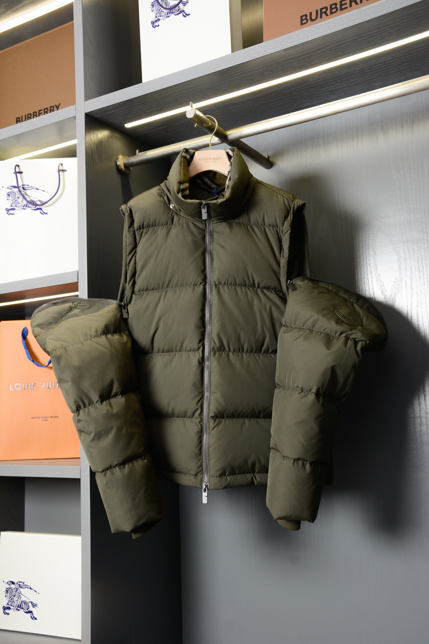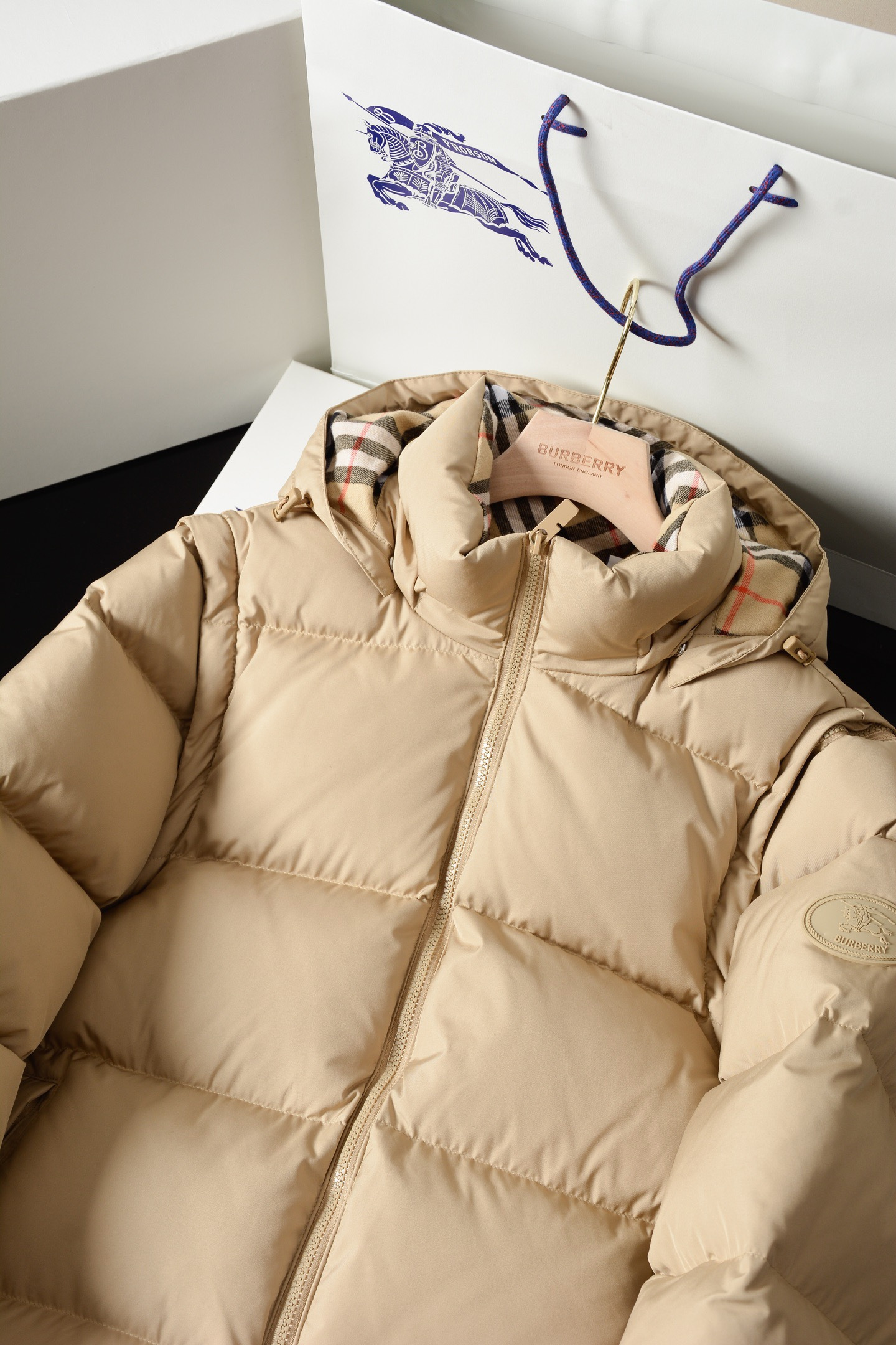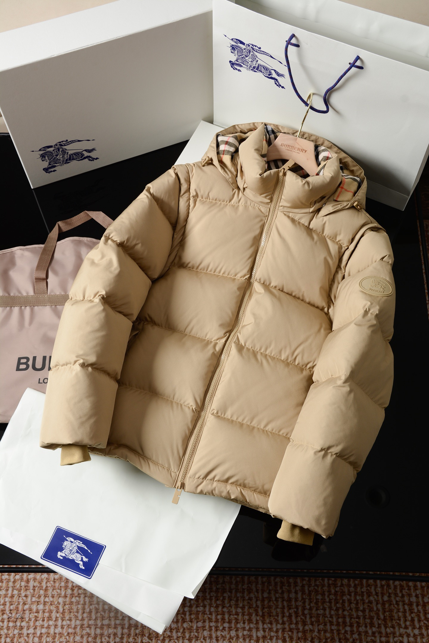 NIGO Burberry Detachable Sleeve Puffer Jacket in Flax Men's Nylon #nigo335005