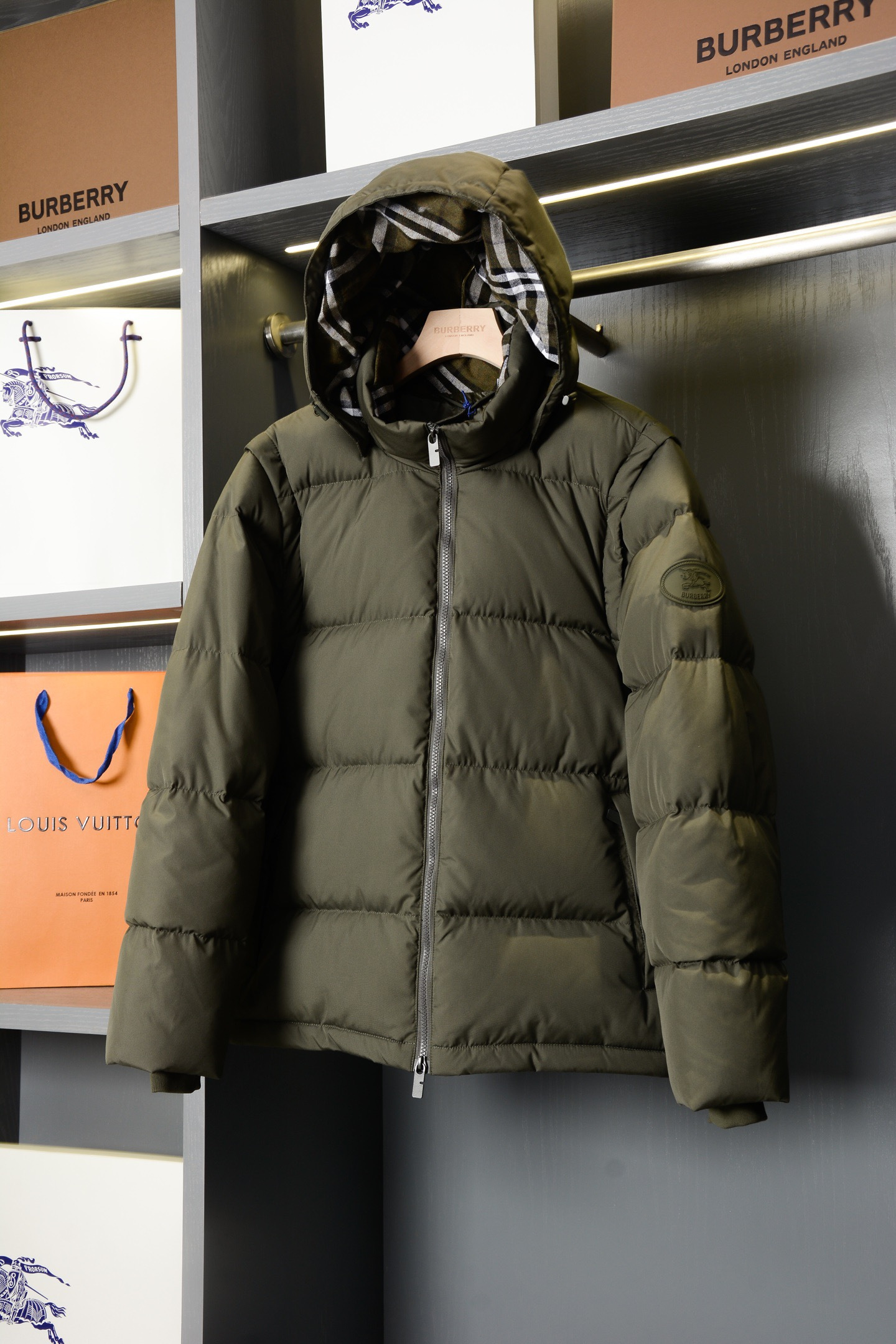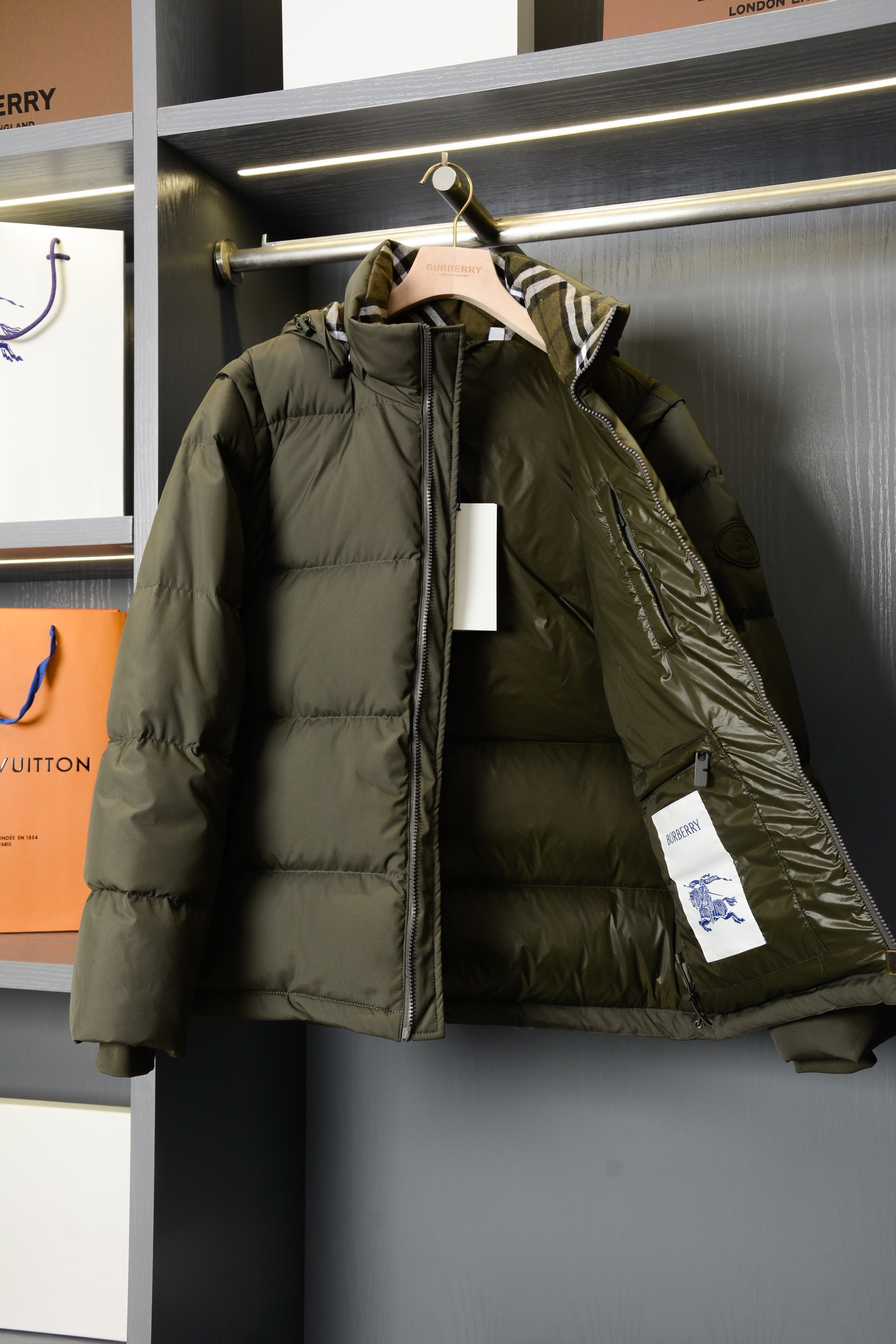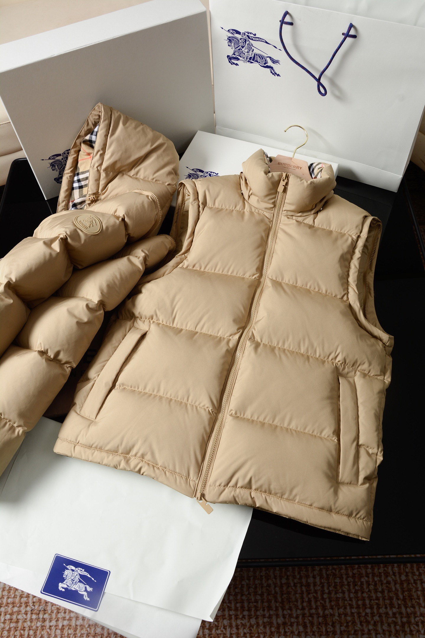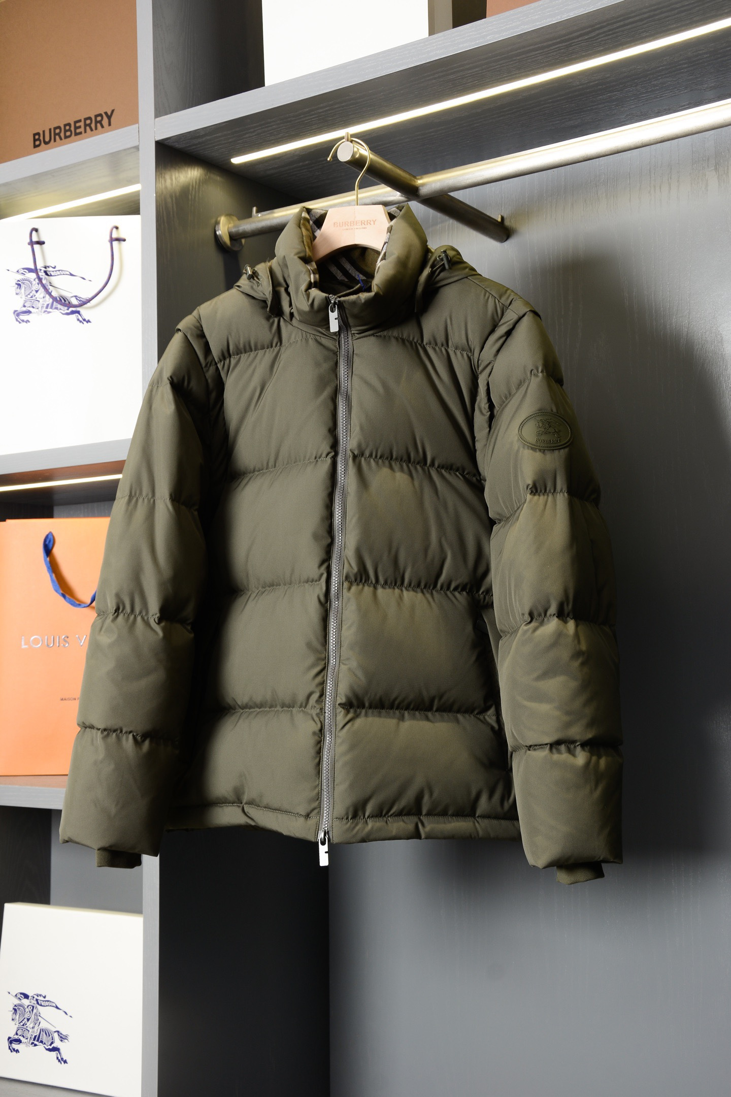 NIGO Burberry Detachable Sleeve Puffer Jacket in Flax Men's Nylon #nigo335005