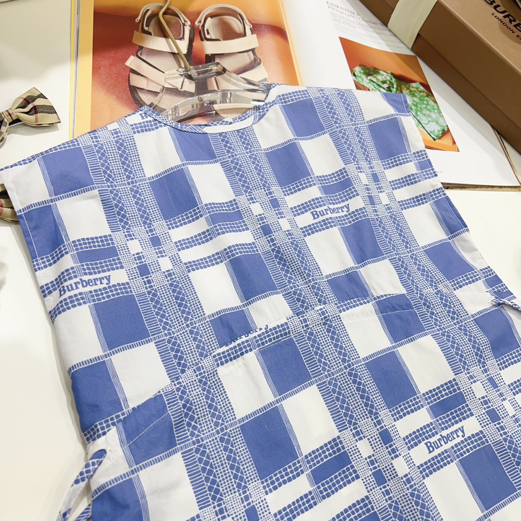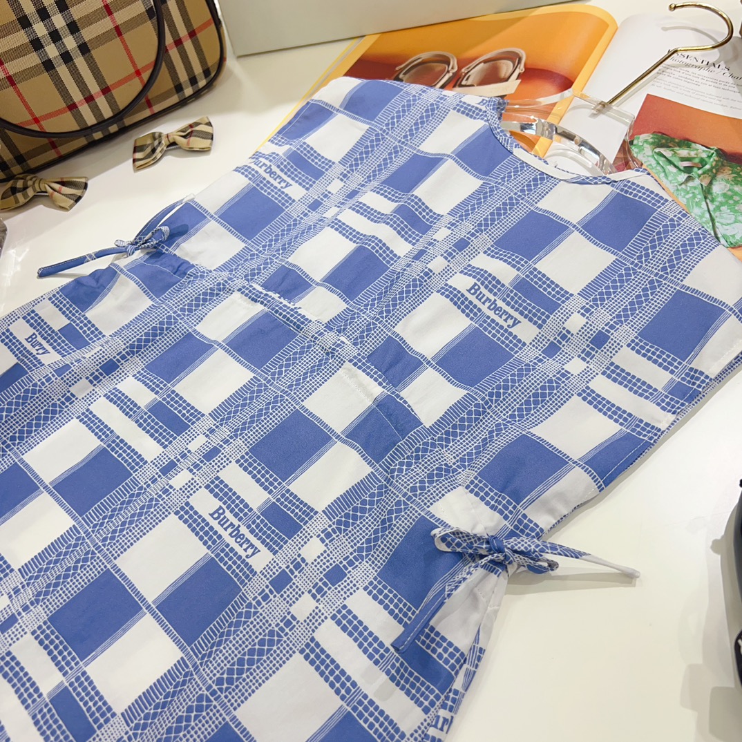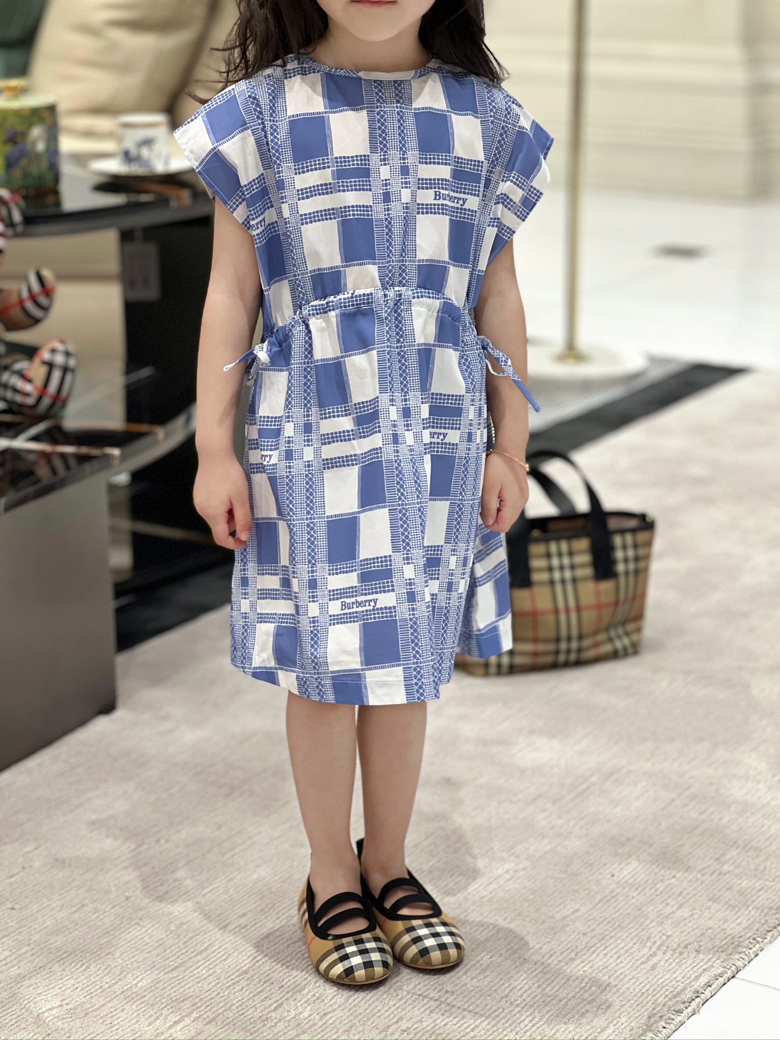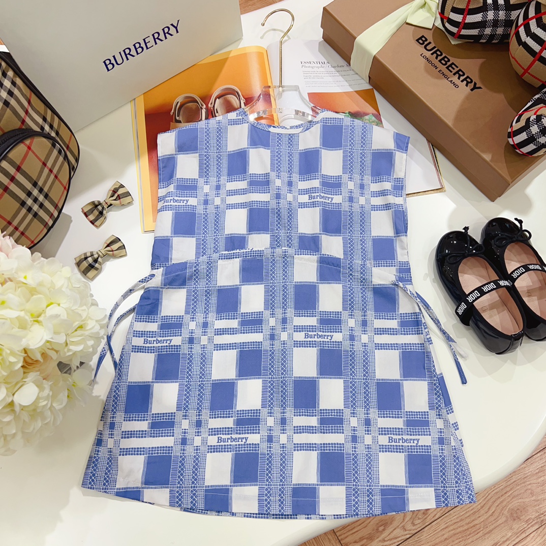 NIGO Burberry Kid's Summer Colorblocking Plaid Letter Print Cotton Sleeveless Round Neck Fitted Short Solid Color Dress #nigo31289