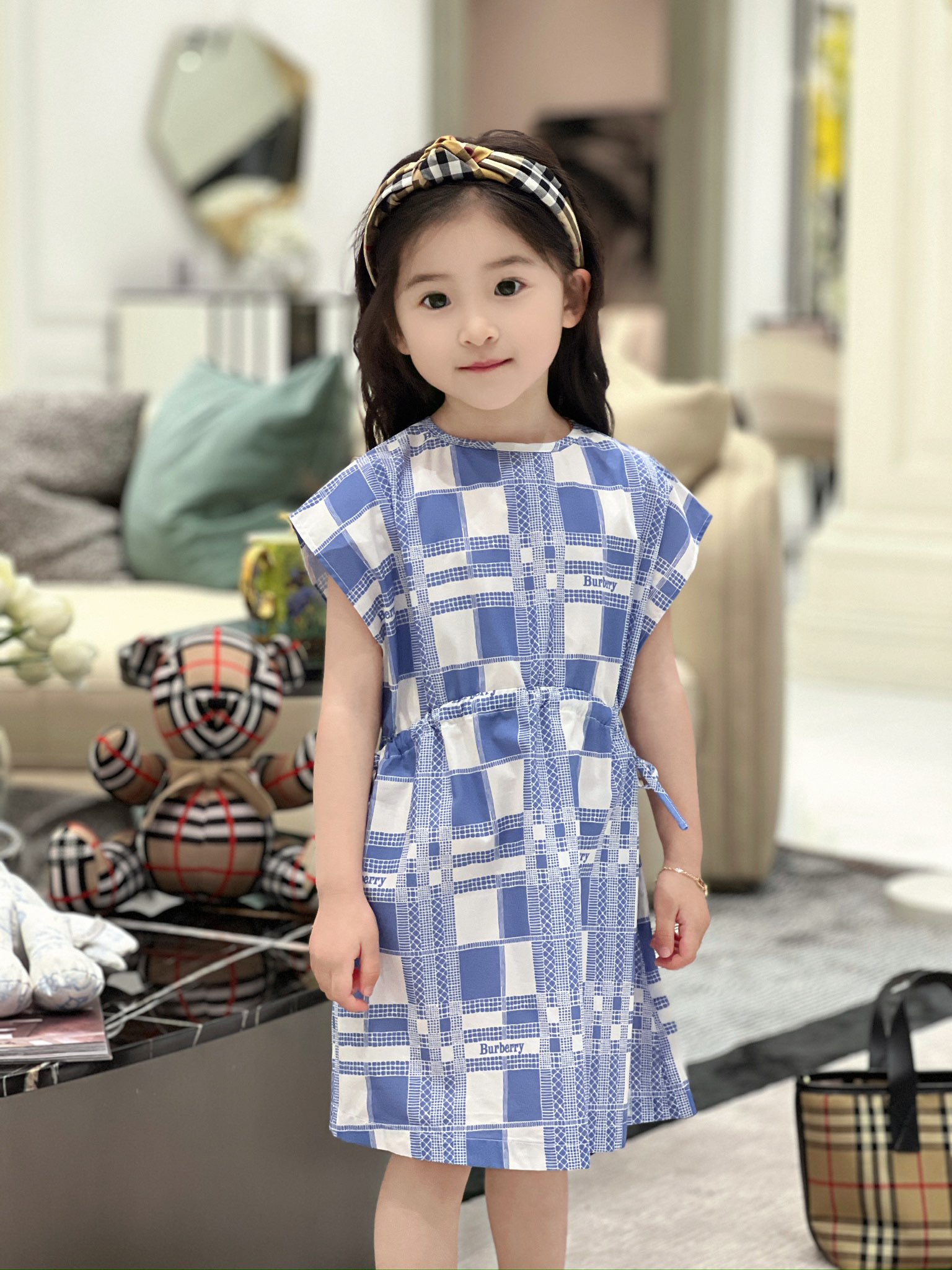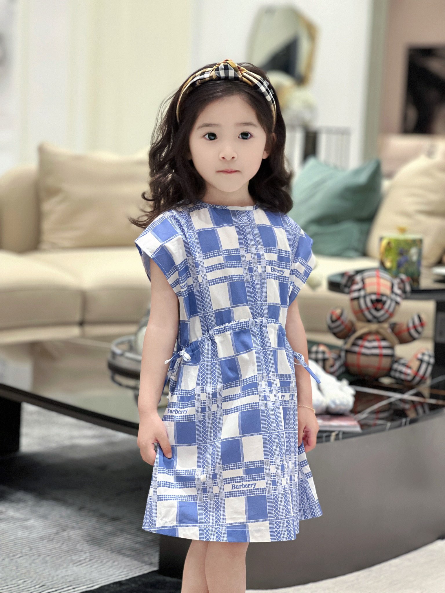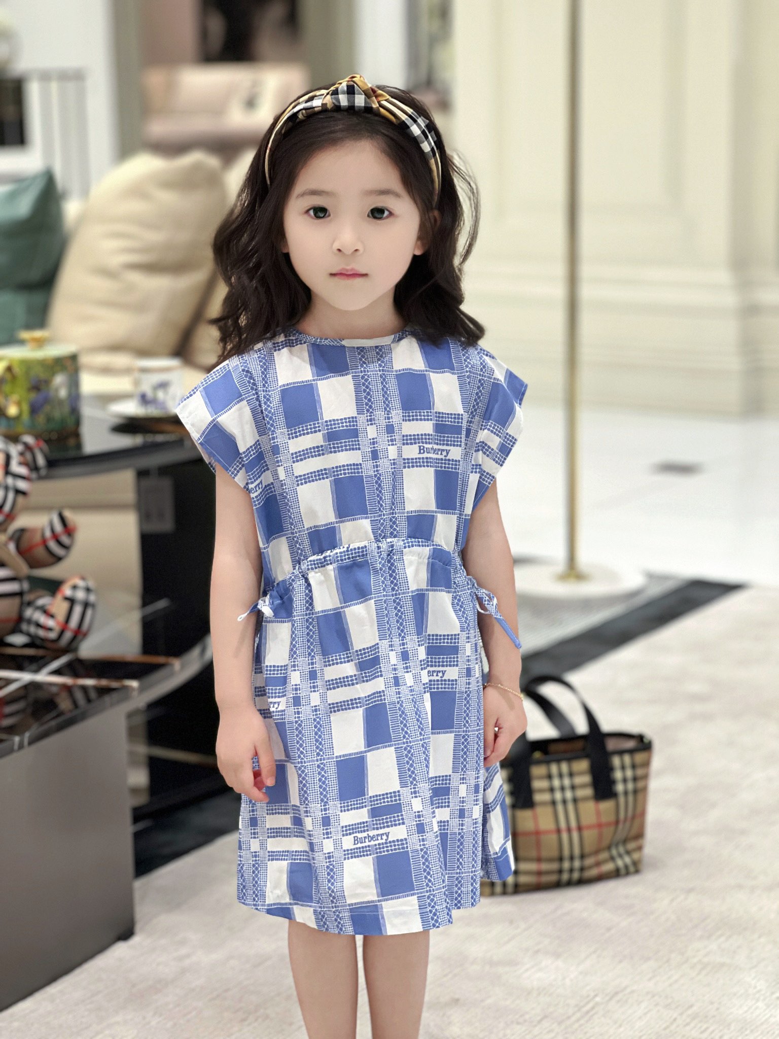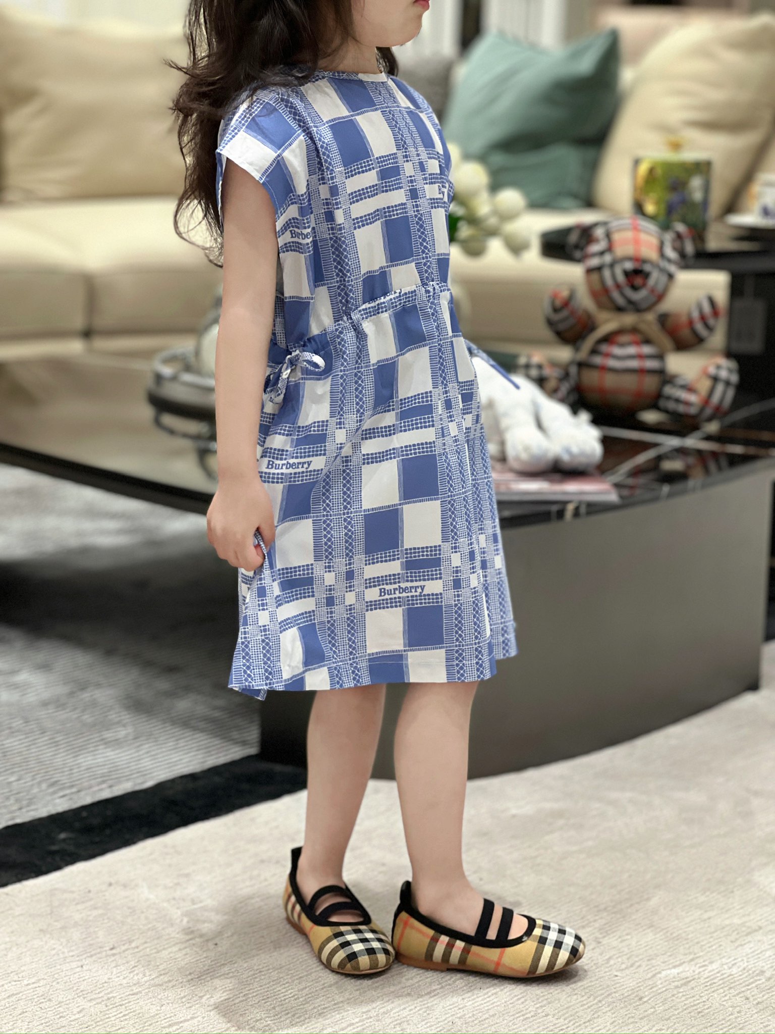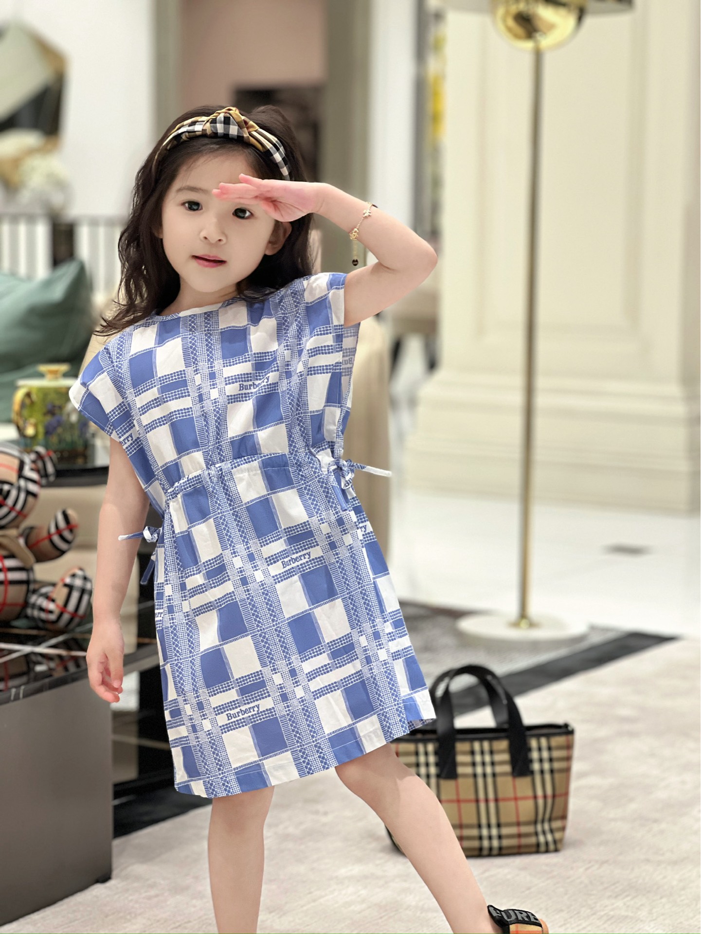 NIGO Burberry Kid's Summer Colorblocking Plaid Letter Print Cotton Sleeveless Round Neck Fitted Short Solid Color Dress #nigo31289